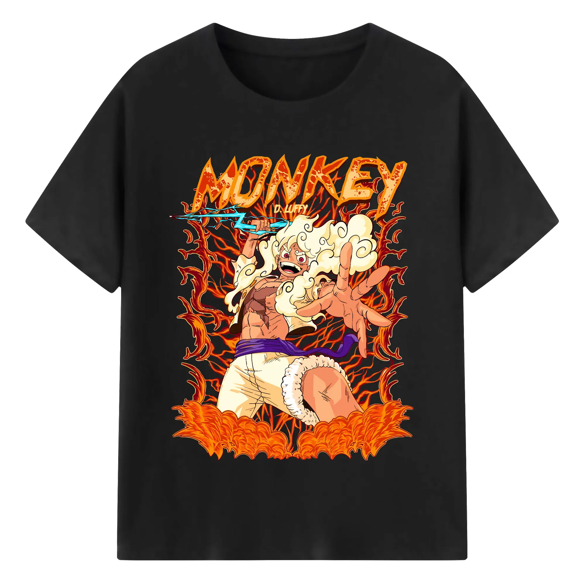 ワンピース グッズ モンキー・D・ルフィ - 綿100% 半袖Tシャツ ・ バックプリント ・ 快適 通気性 ・ 日常使い 散歩 スポーツ用