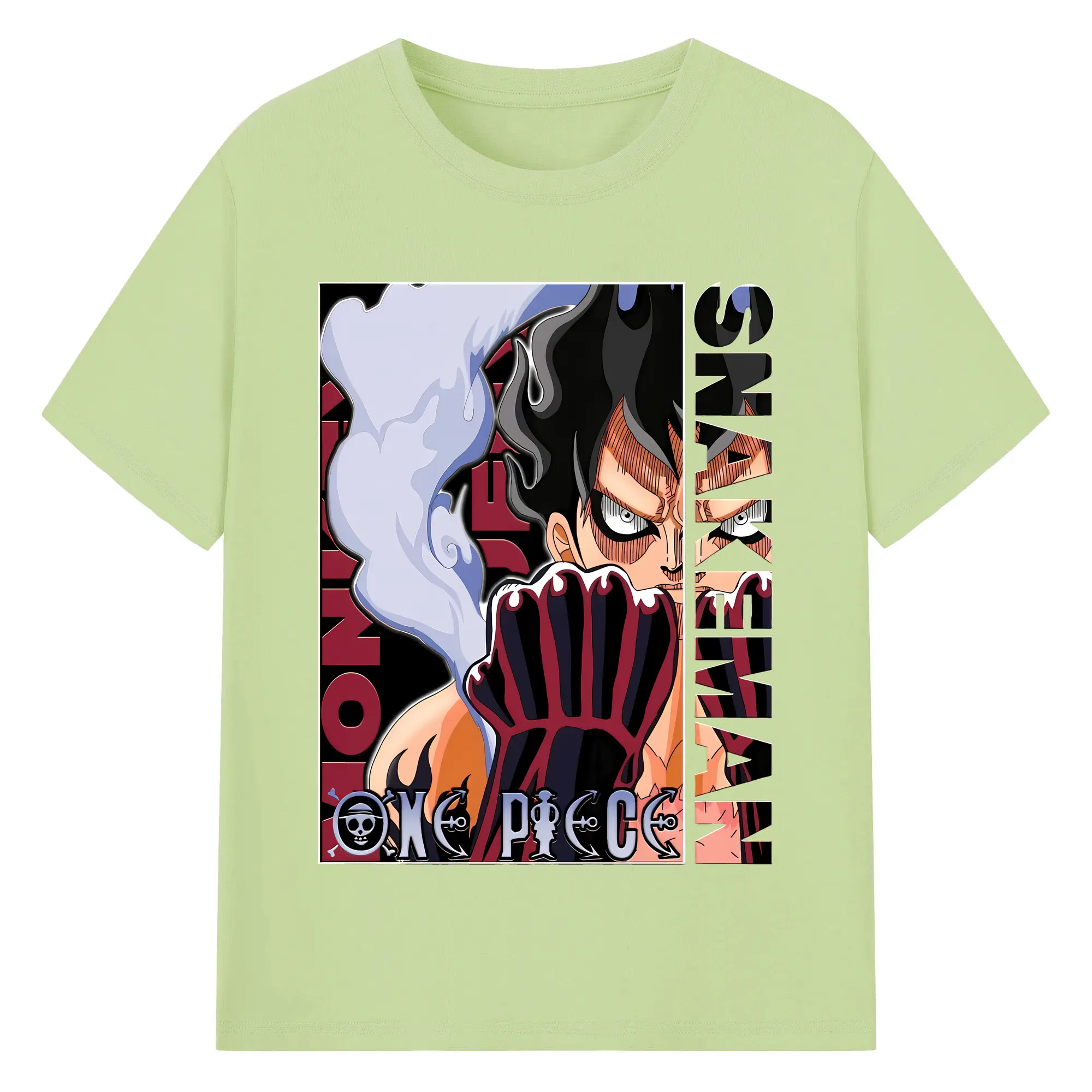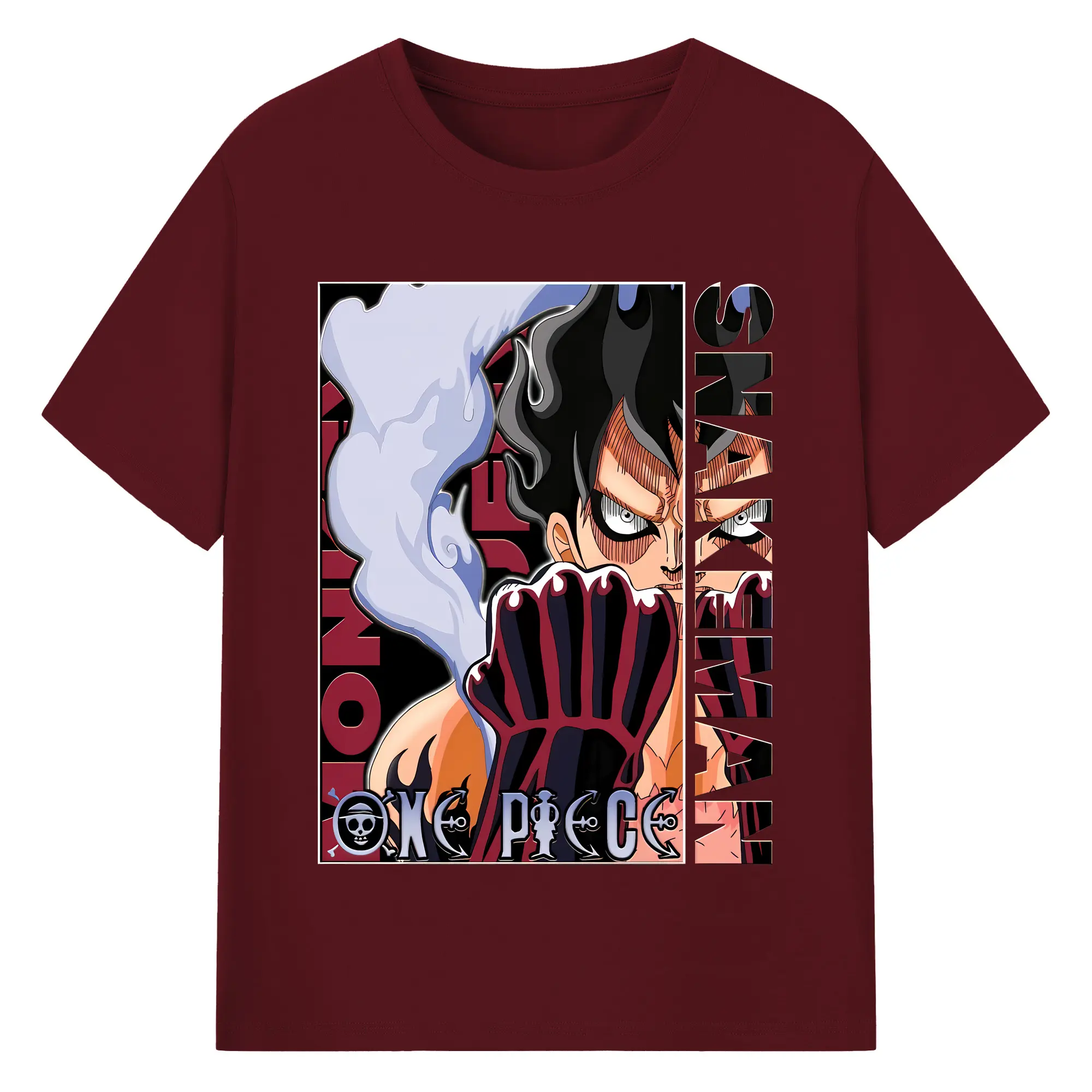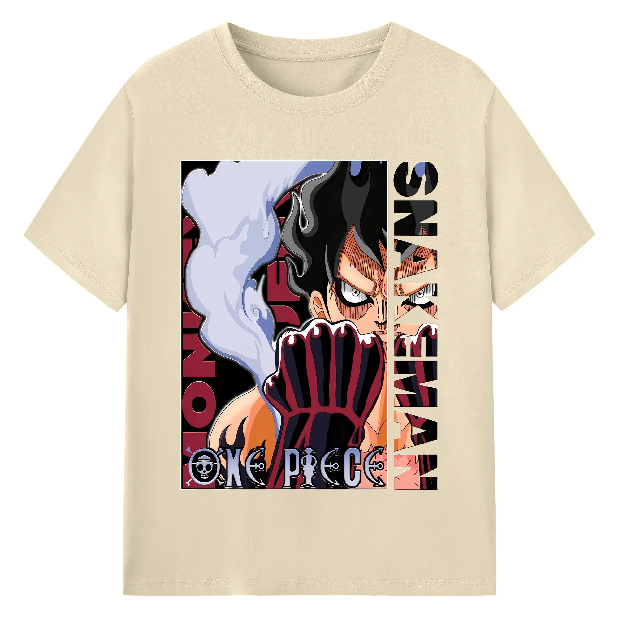 ワンピース グッズ モンキー・D・ルフィ - 綿100% ヴィンテージ風 半袖Tシャツ ・ フロントプリント ・ 柔らか肌触り ・ 通気性 快適 ・ スポーツ カジュアル 外出用