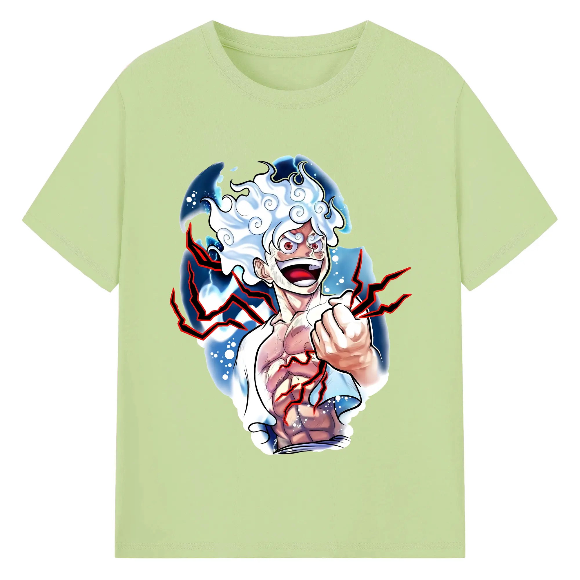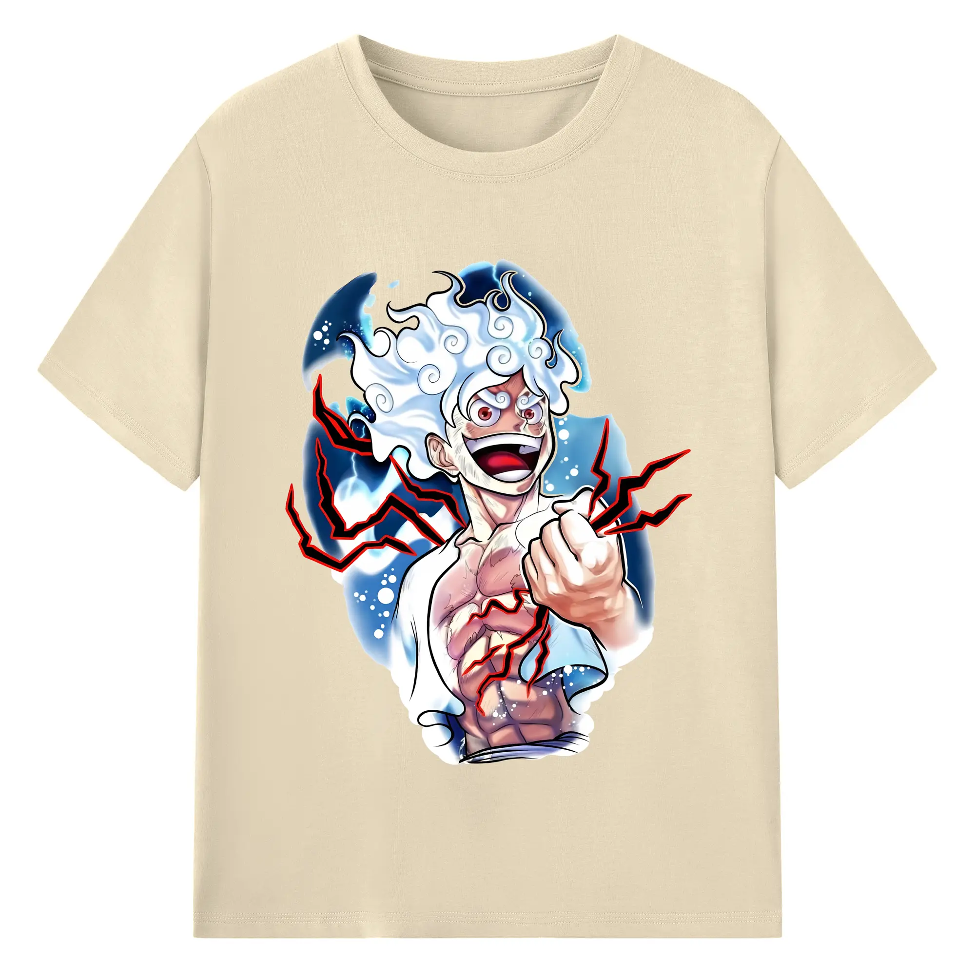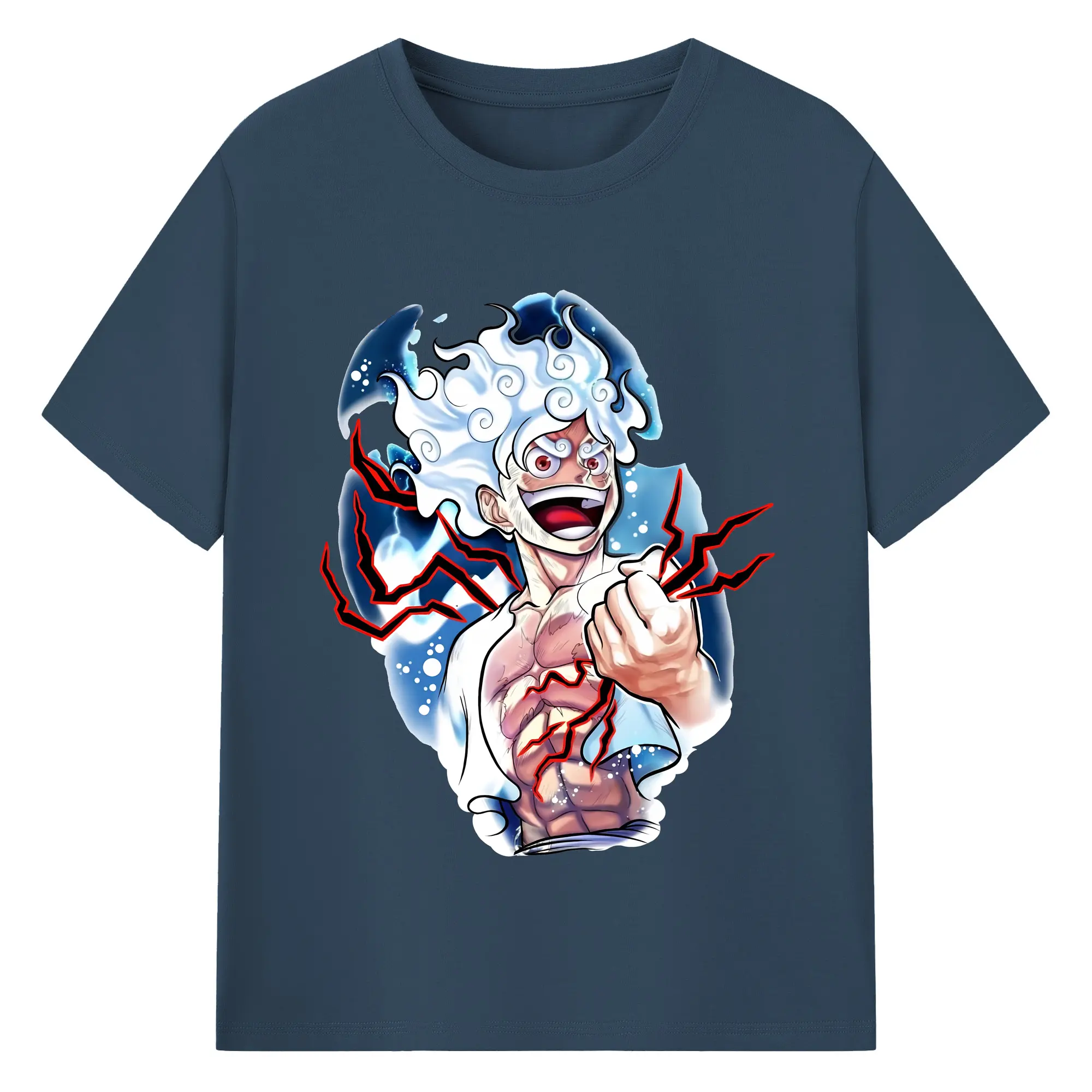 ワンピース グッズ モンキー・D・ルフィ - 綿100% ヴィンテージ風 半袖Tシャツ ・ フロントプリント ・ 柔らか肌触り ・ 通気性 快適 ・ スポーツ カジュアル 外出用