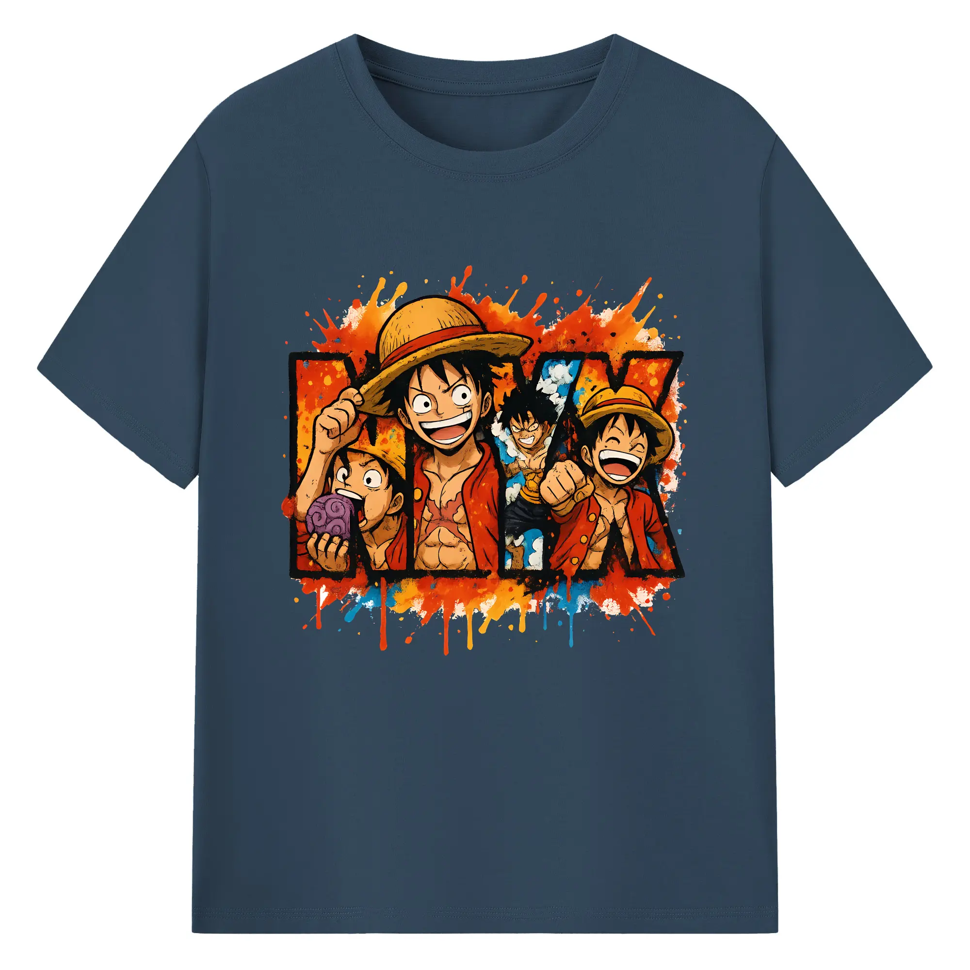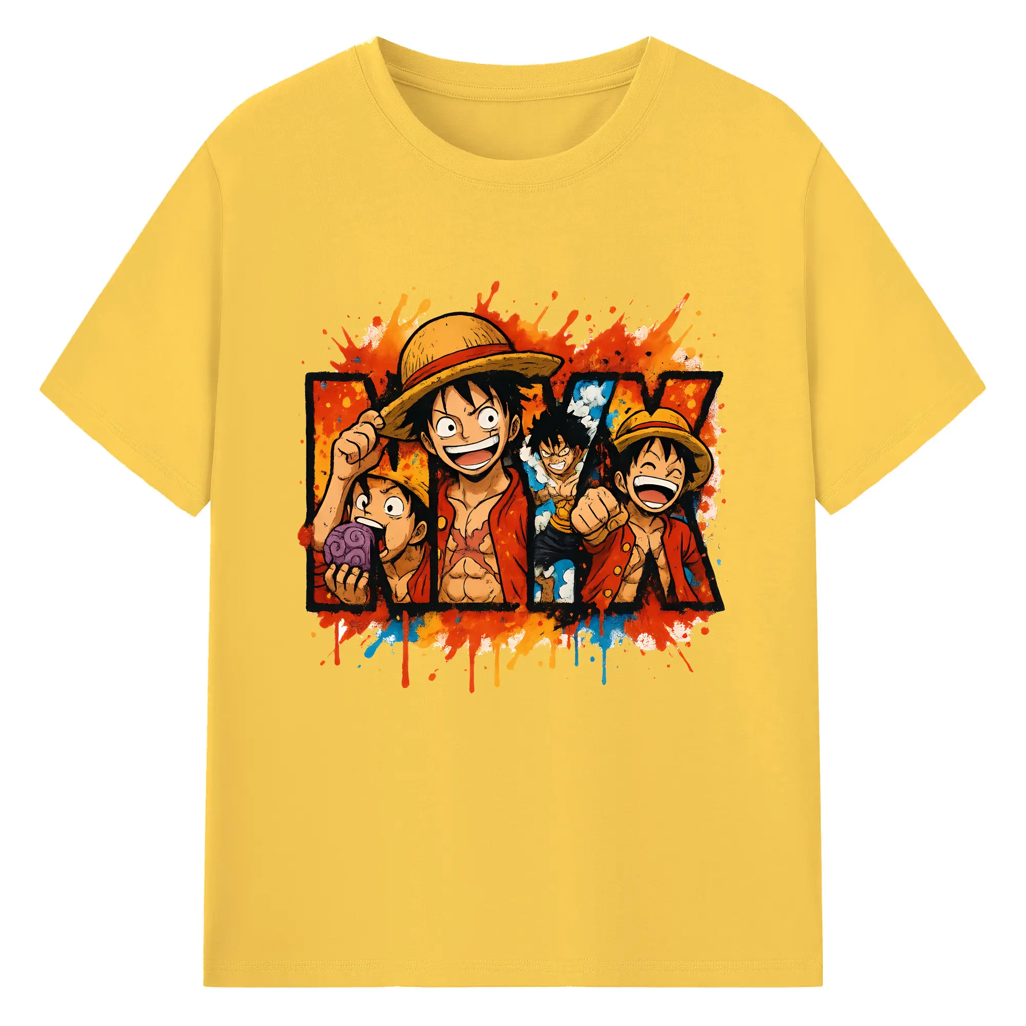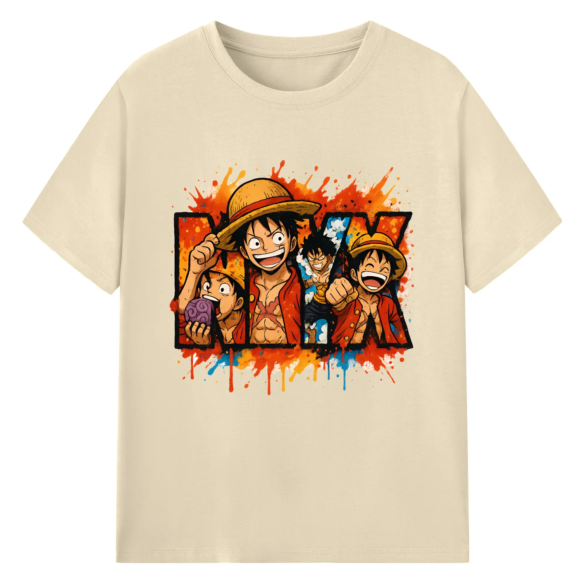 ワンピース グッズ モンキー・D・ルフィ - 綿100% ヴィンテージ風 半袖Tシャツ ・ フロントプリント ・ 柔らか肌触り ・ 通気性 快適 ・ スポーツ カジュアル 外出用