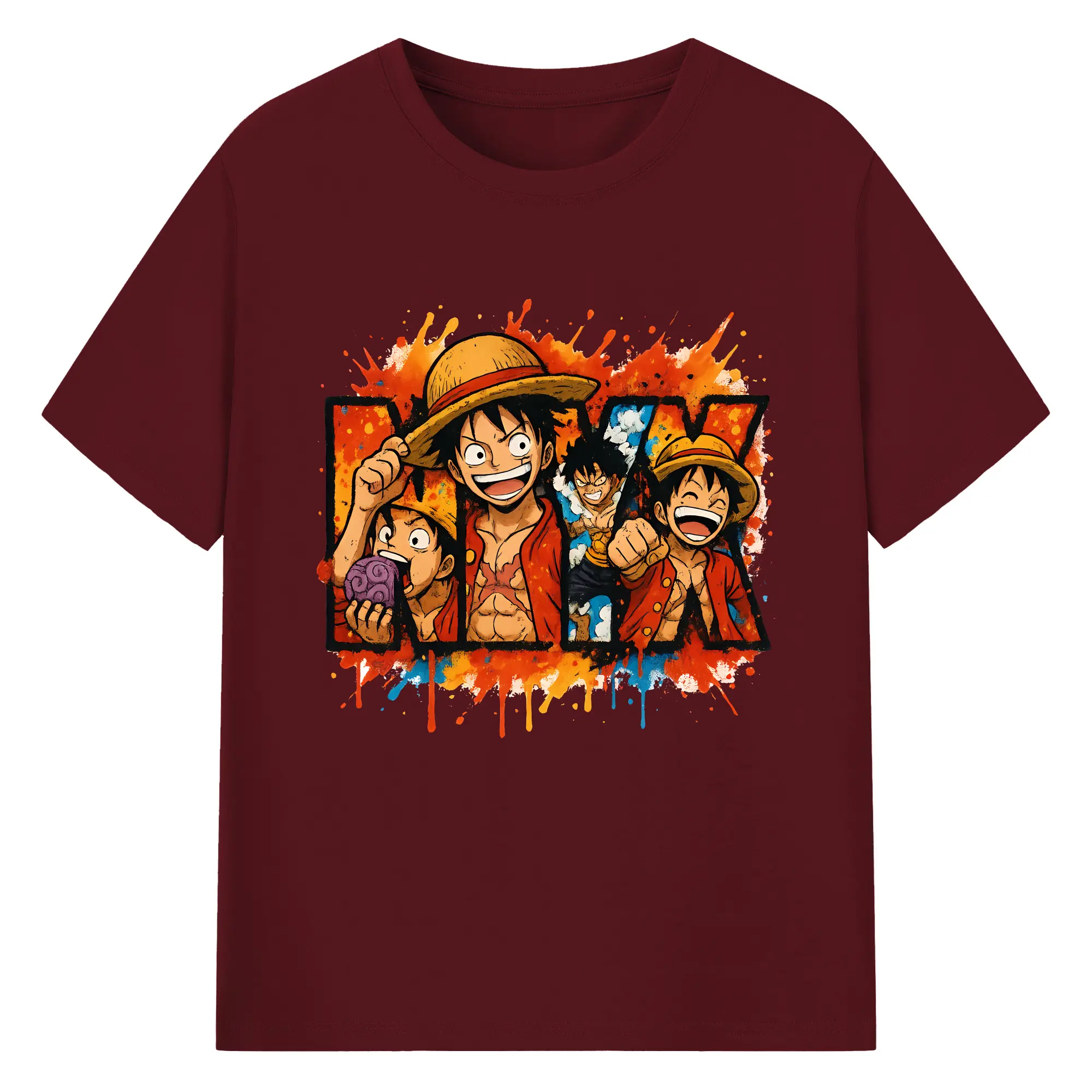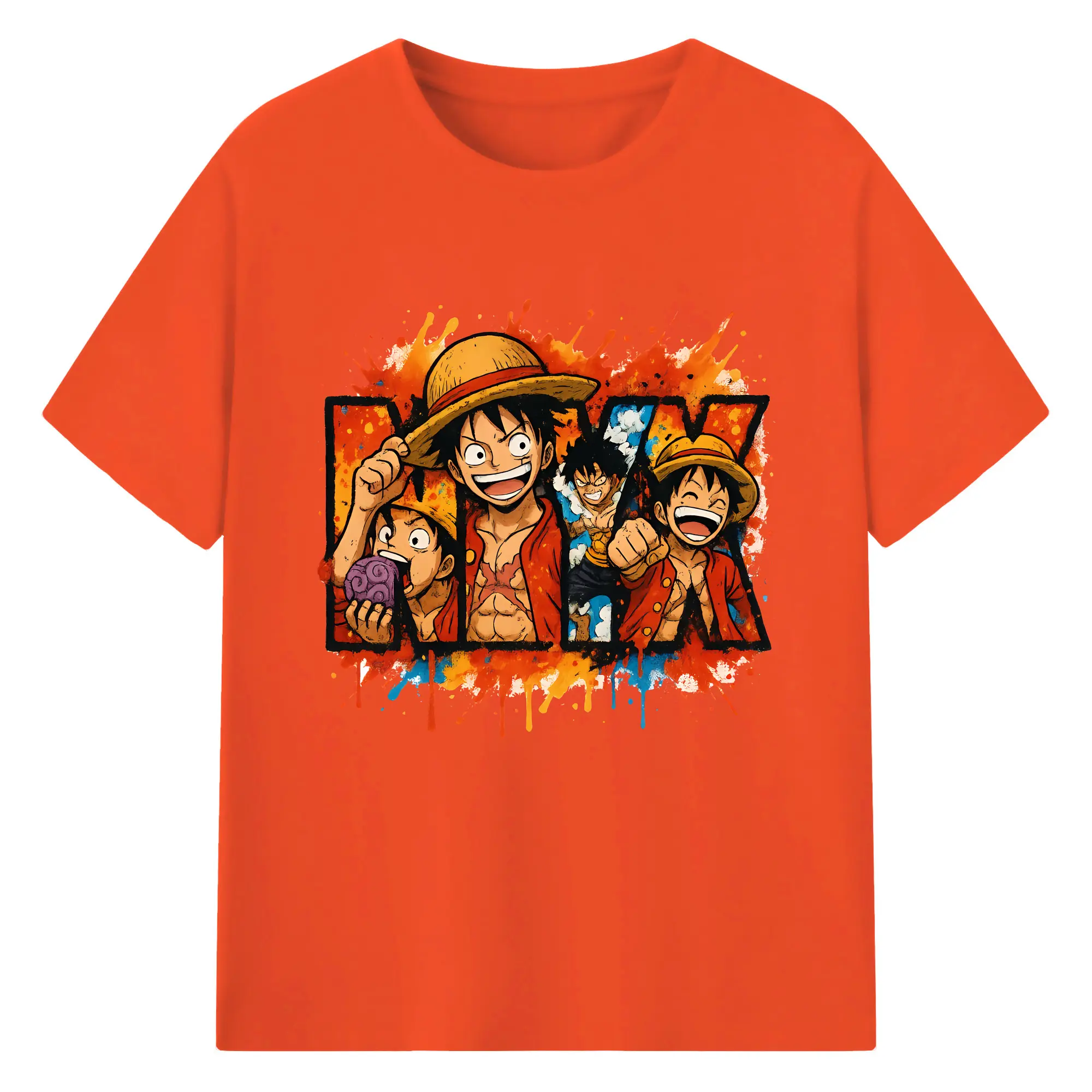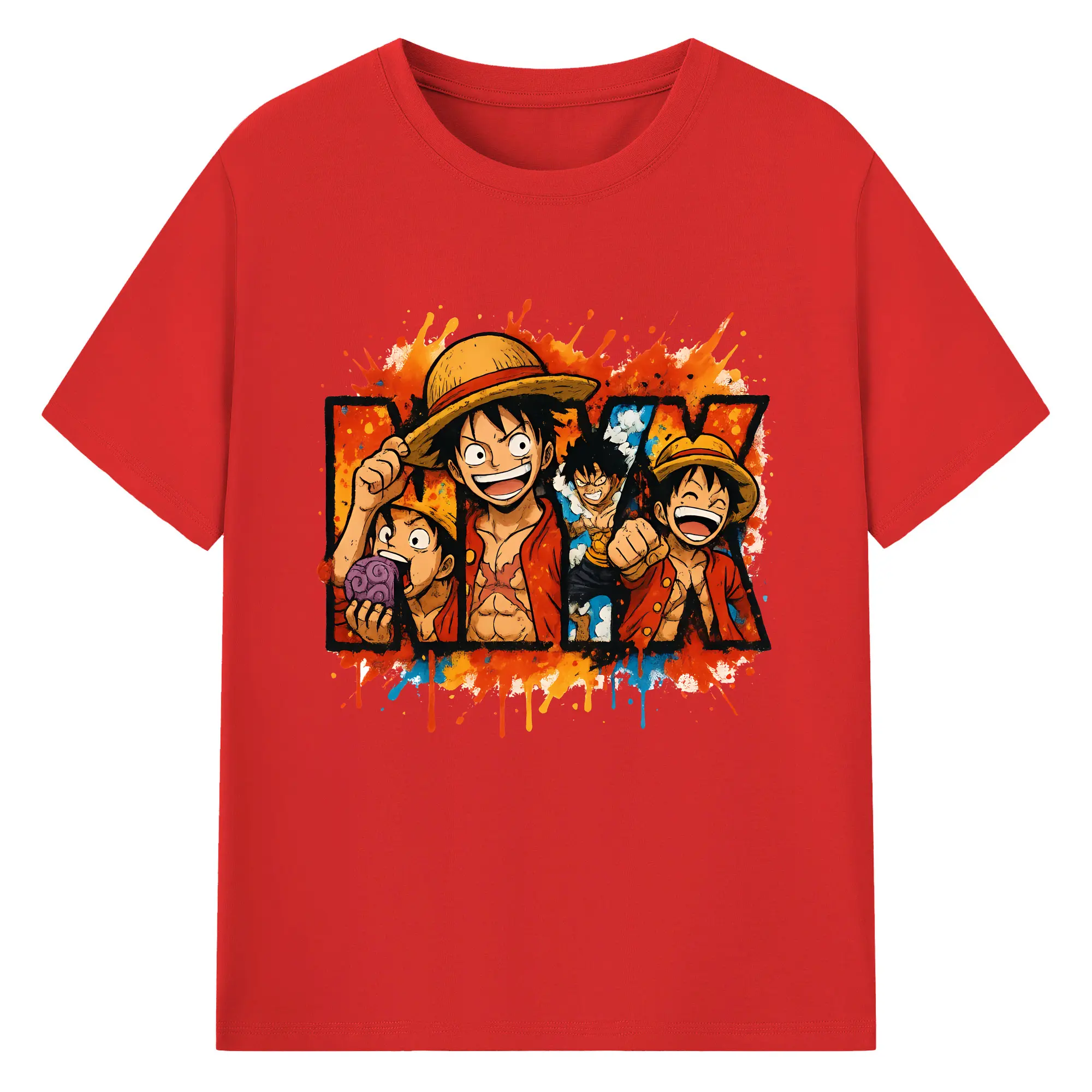 ワンピース グッズ モンキー・D・ルフィ - 綿100% 半袖Tシャツ ・ バックプリント ・ 快適 通気性 ・ 日常使い 散歩 スポーツ用