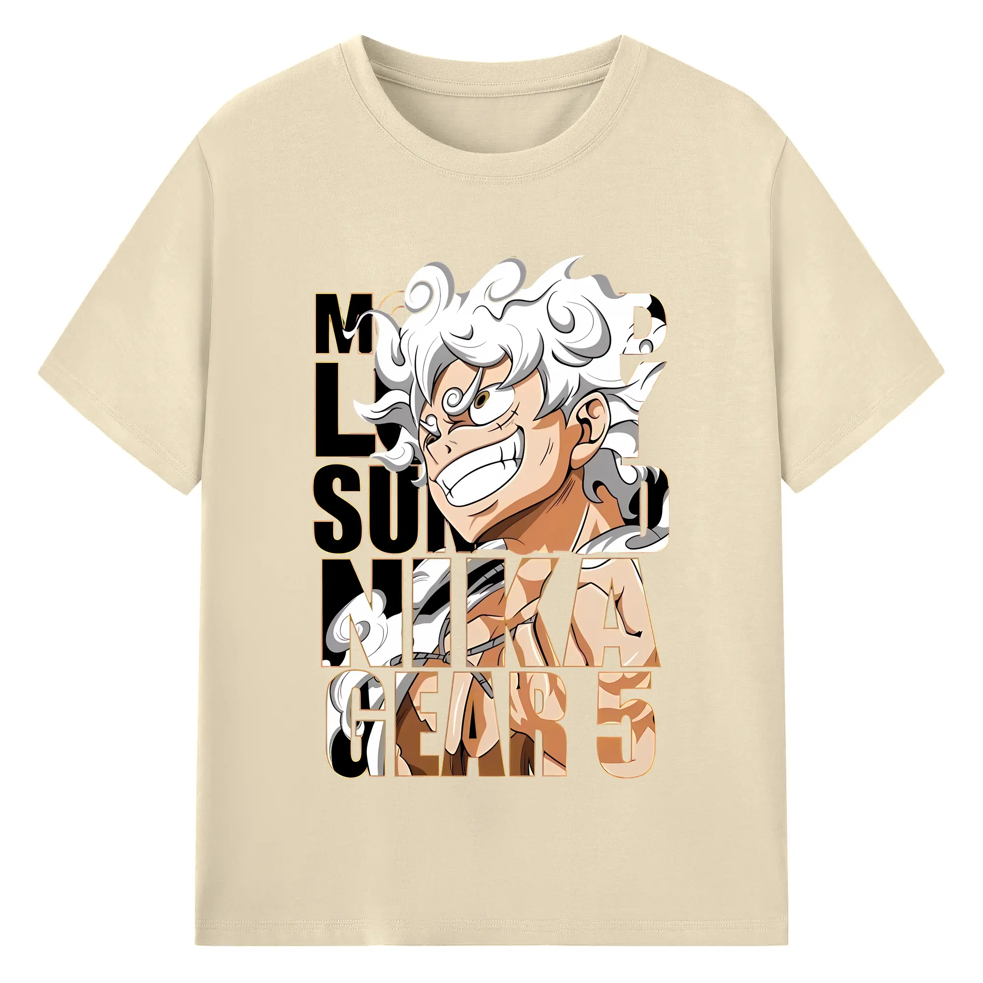 ワンピース グッズ モンキー・D・ルフィ - 綿100% ヴィンテージ風 半袖Tシャツ ・ フロントプリント ・ 柔らか肌触り ・ 通気性 快適 ・ スポーツ カジュアル 外出用