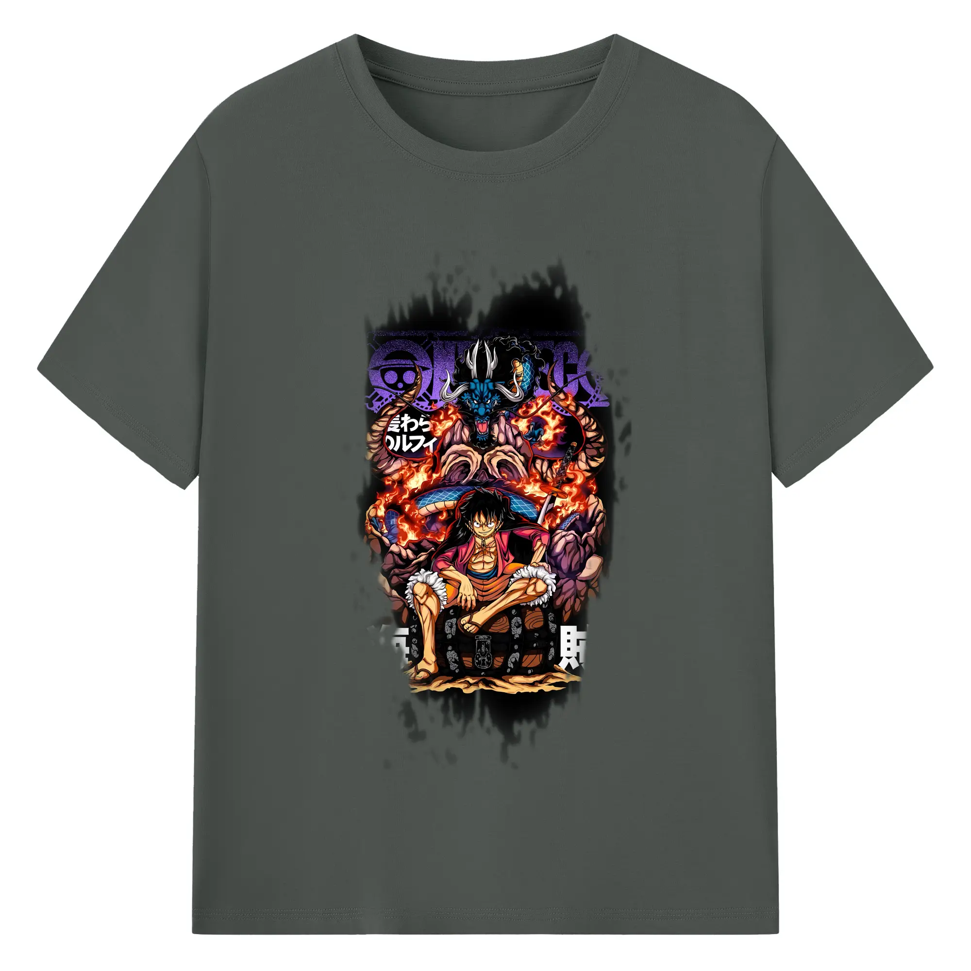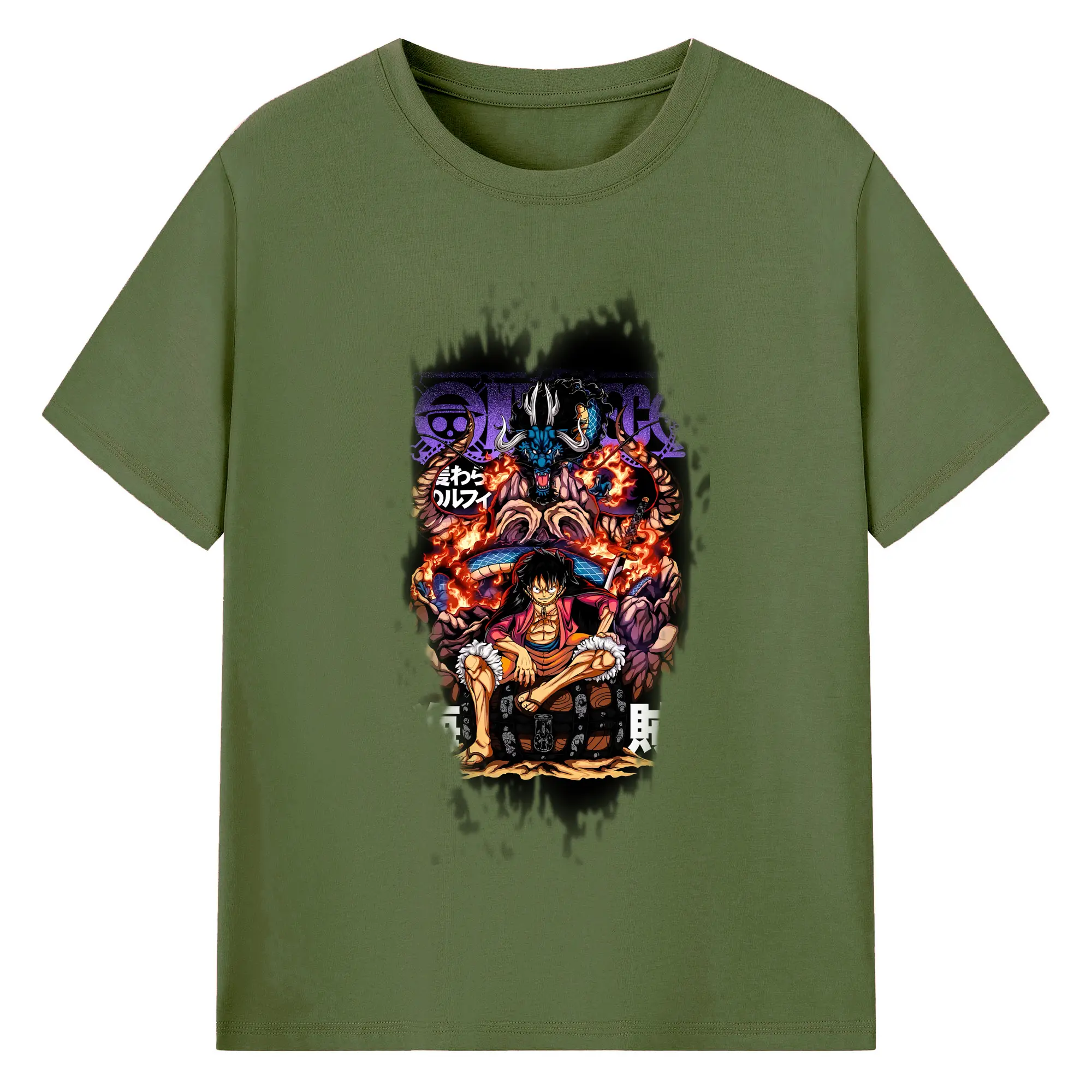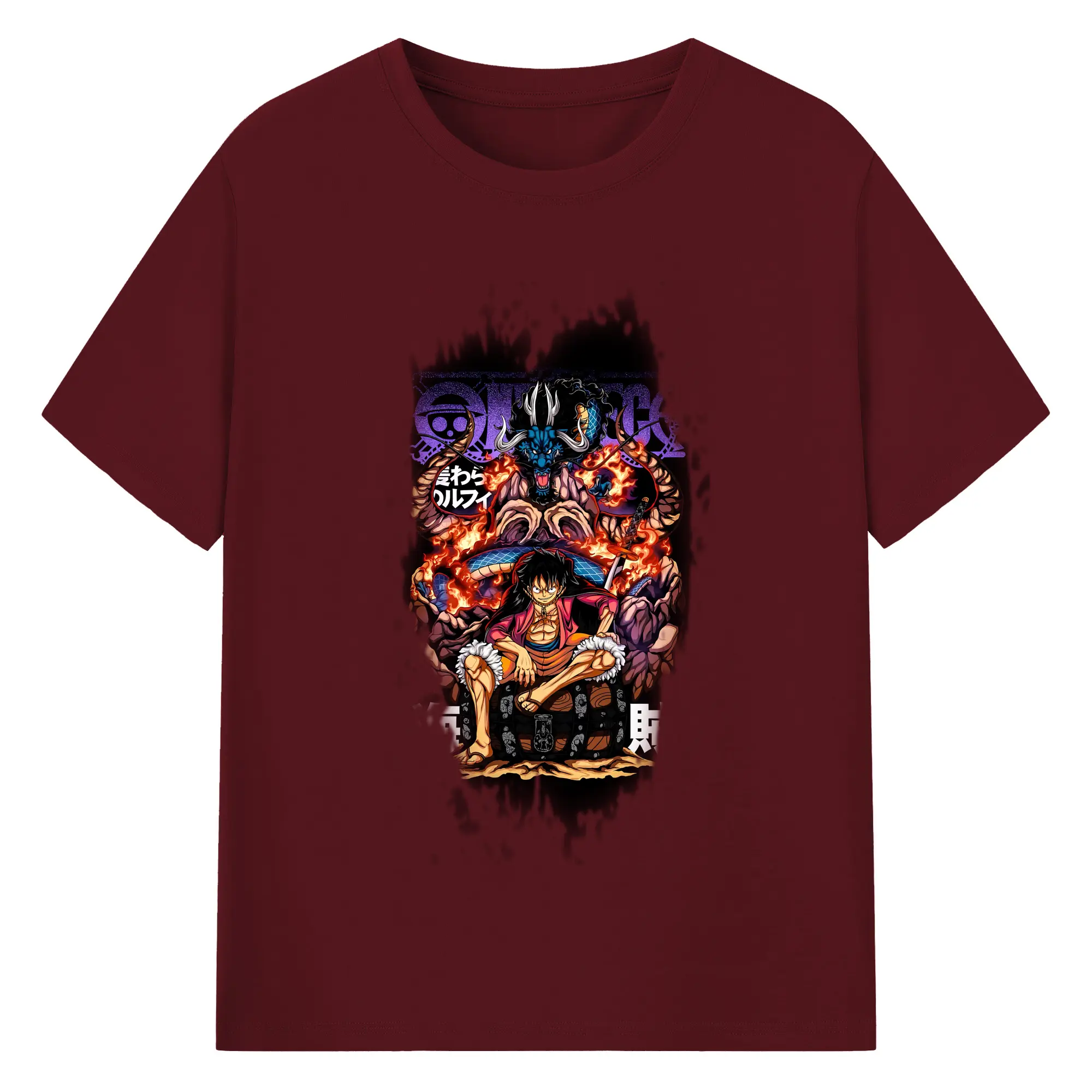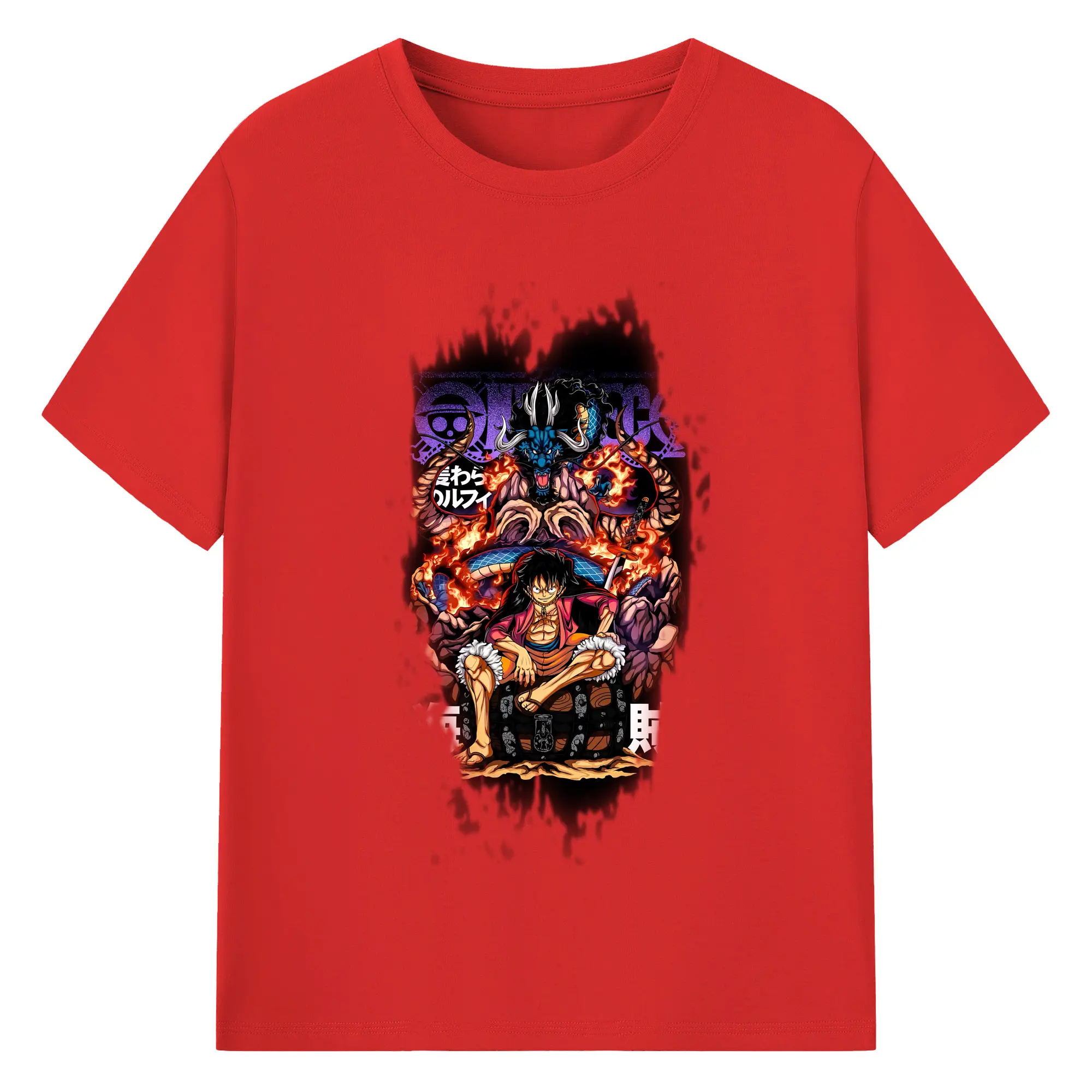 ワンピース グッズ モンキー・D・ルフィ - 綿100% 半袖Tシャツ ・ フロントプリント ・ 快適 通気性 ・ 日常使い 散歩 スポーツ用