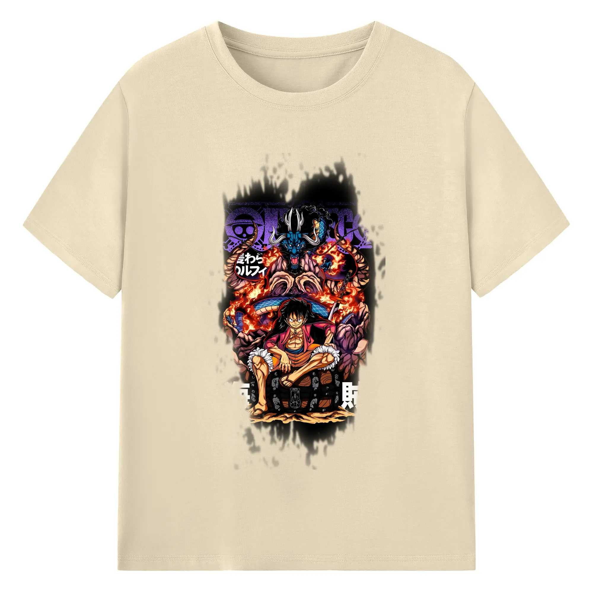 ワンピース グッズ モンキー・D・ルフィ - 綿100% ヴィンテージ風 半袖Tシャツ ・ フロントプリント ・ 柔らか肌触り ・ 通気性 快適 ・ スポーツ カジュアル 外出用