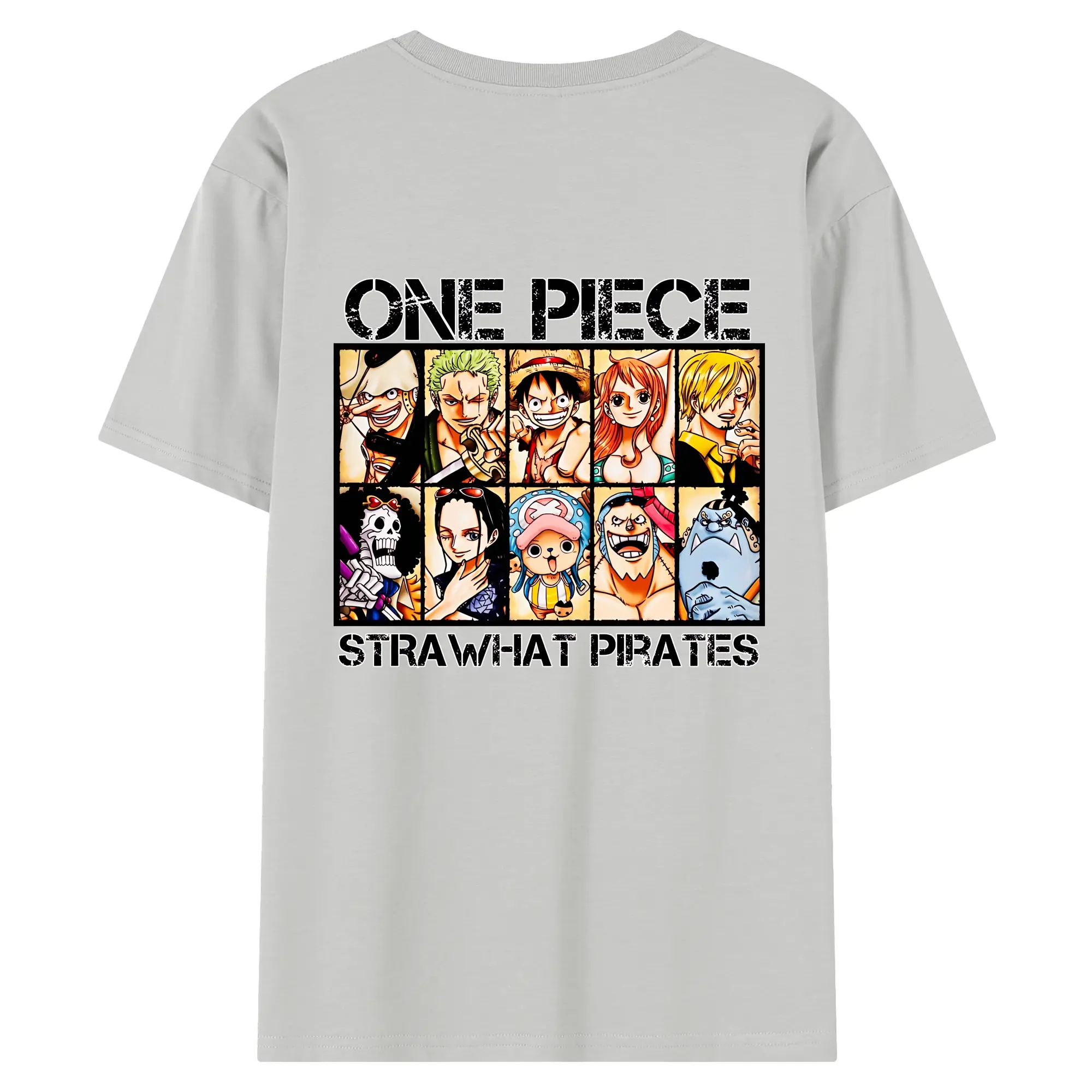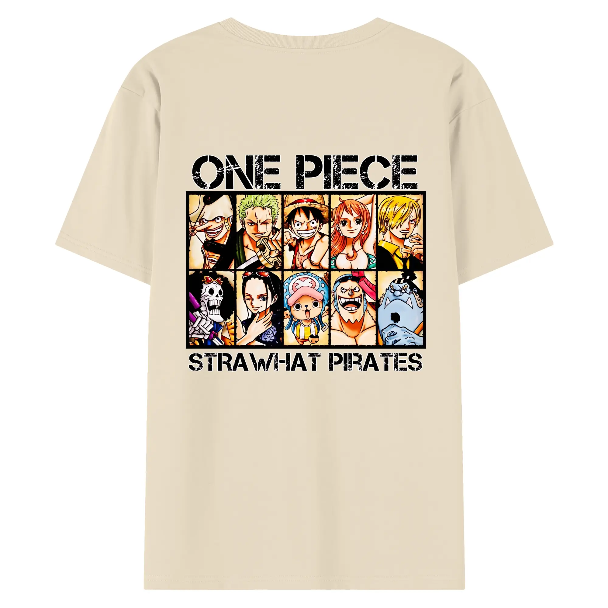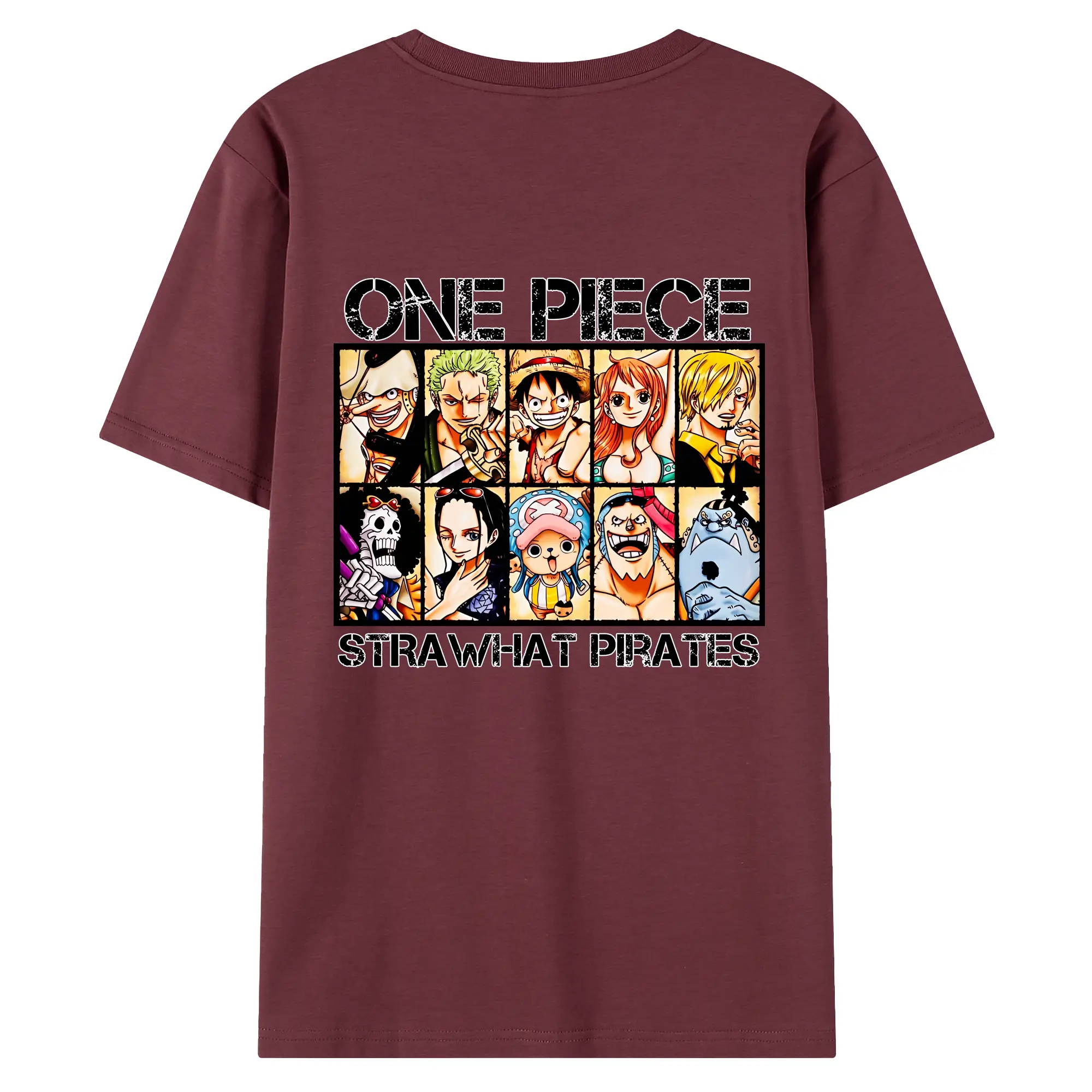 ワンピース グッズ モンキー・D・ルフィ - 綿100% ヴィンテージ風 半袖Tシャツ ・ 背面プリント ・ 柔らか肌触り ・ 通気性 快適 ・ スポーツ カジュアル 外出用