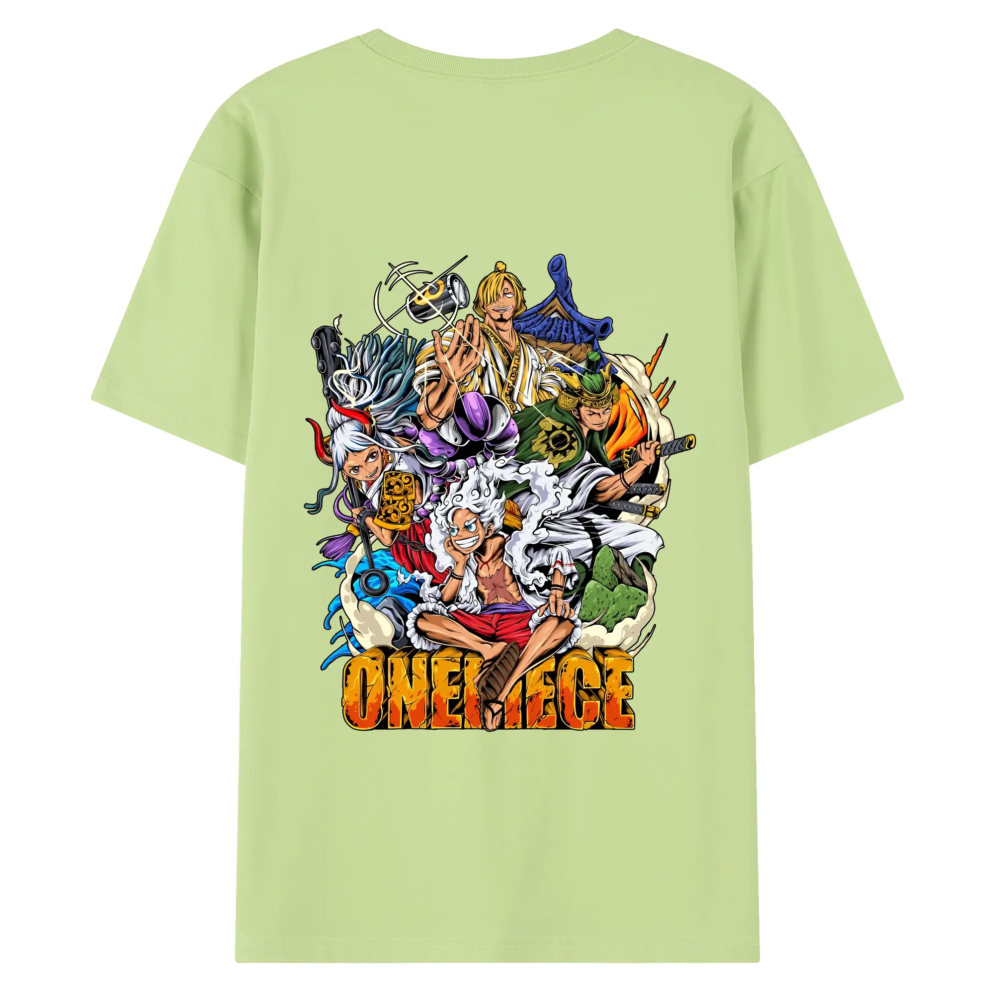 ワンピース グッズ モンキー・D・ルフィ - 綿100% ヴィンテージ風 半袖Tシャツ ・ 背面プリント ・ 柔らか肌触り ・ 通気性 快適 ・ スポーツ カジュアル 外出用