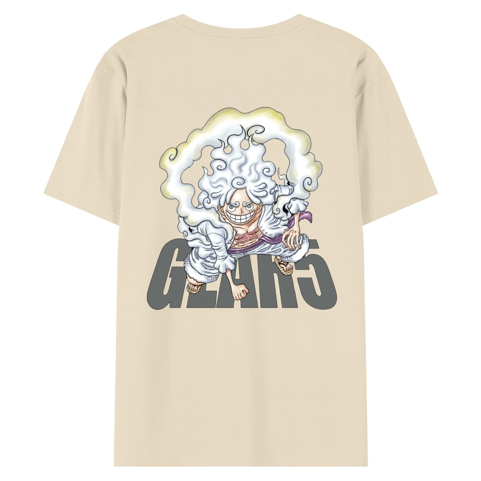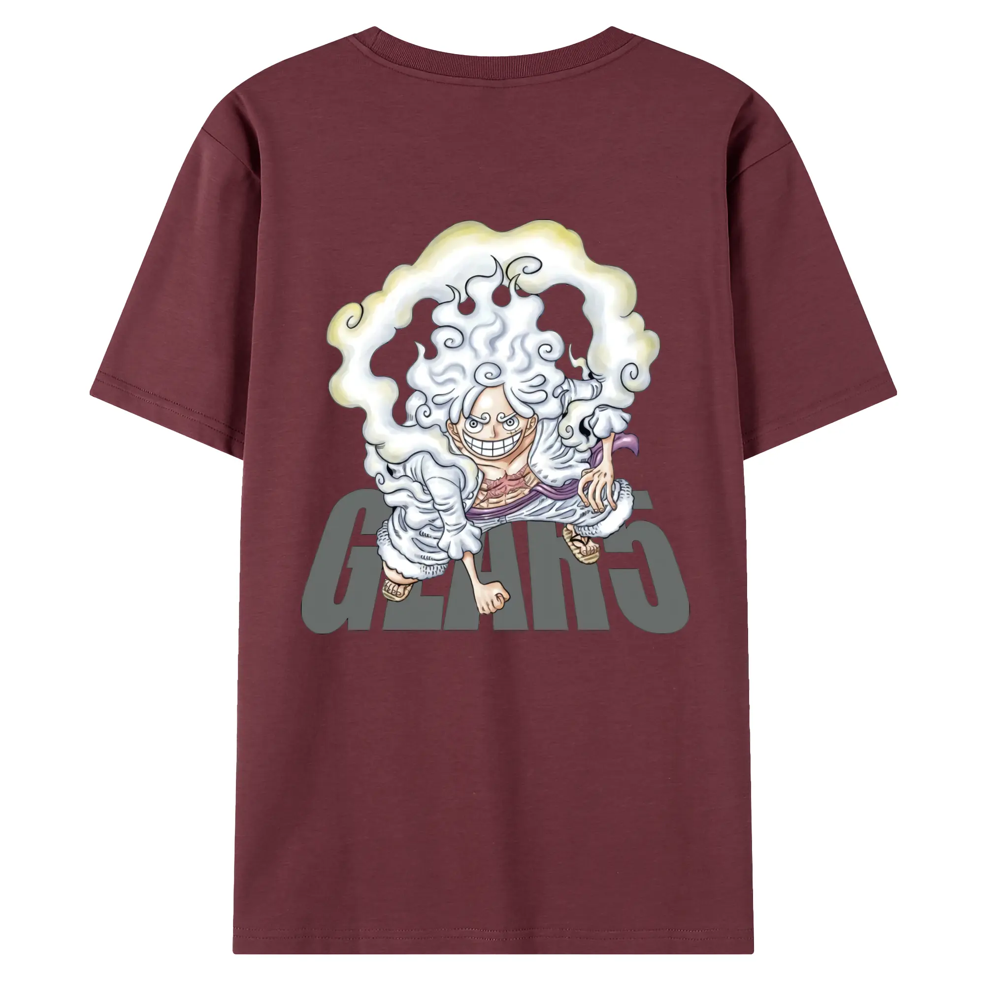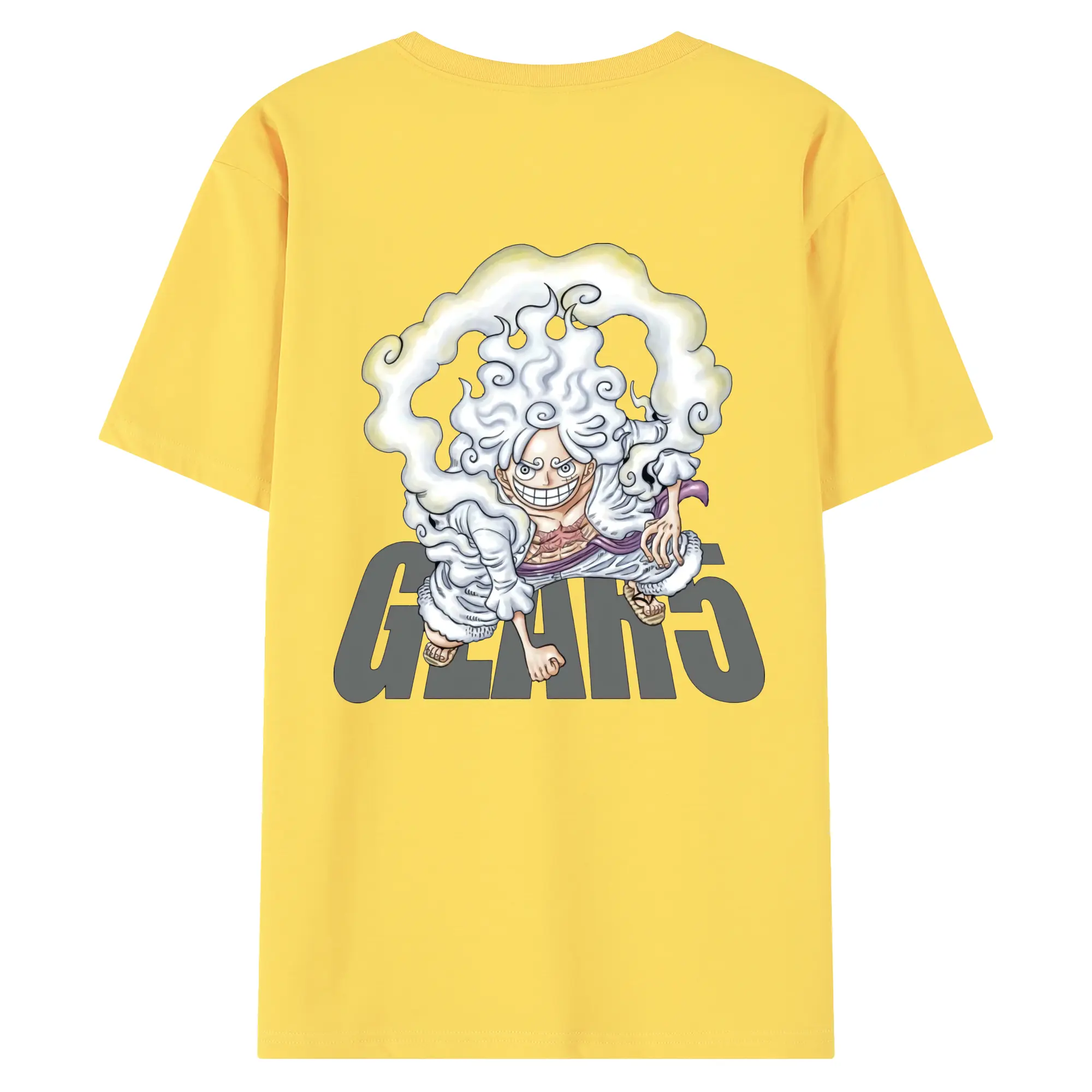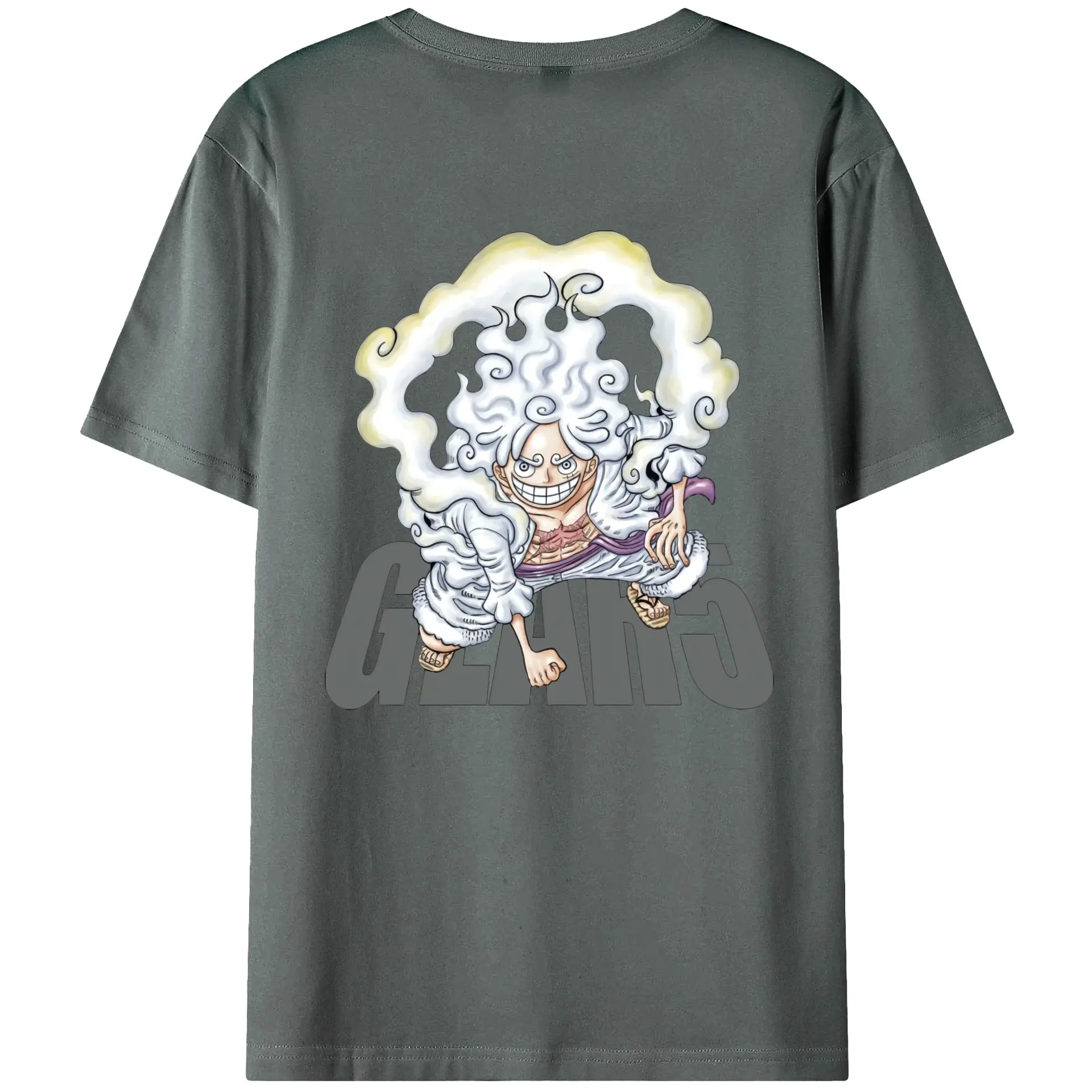 ワンピース グッズ モンキー・D・ルフィ - 綿100% ヴィンテージ風 半袖Tシャツ ・ 背面プリント ・ 柔らか肌触り ・ 通気性 快適 ・ スポーツ カジュアル 外出用