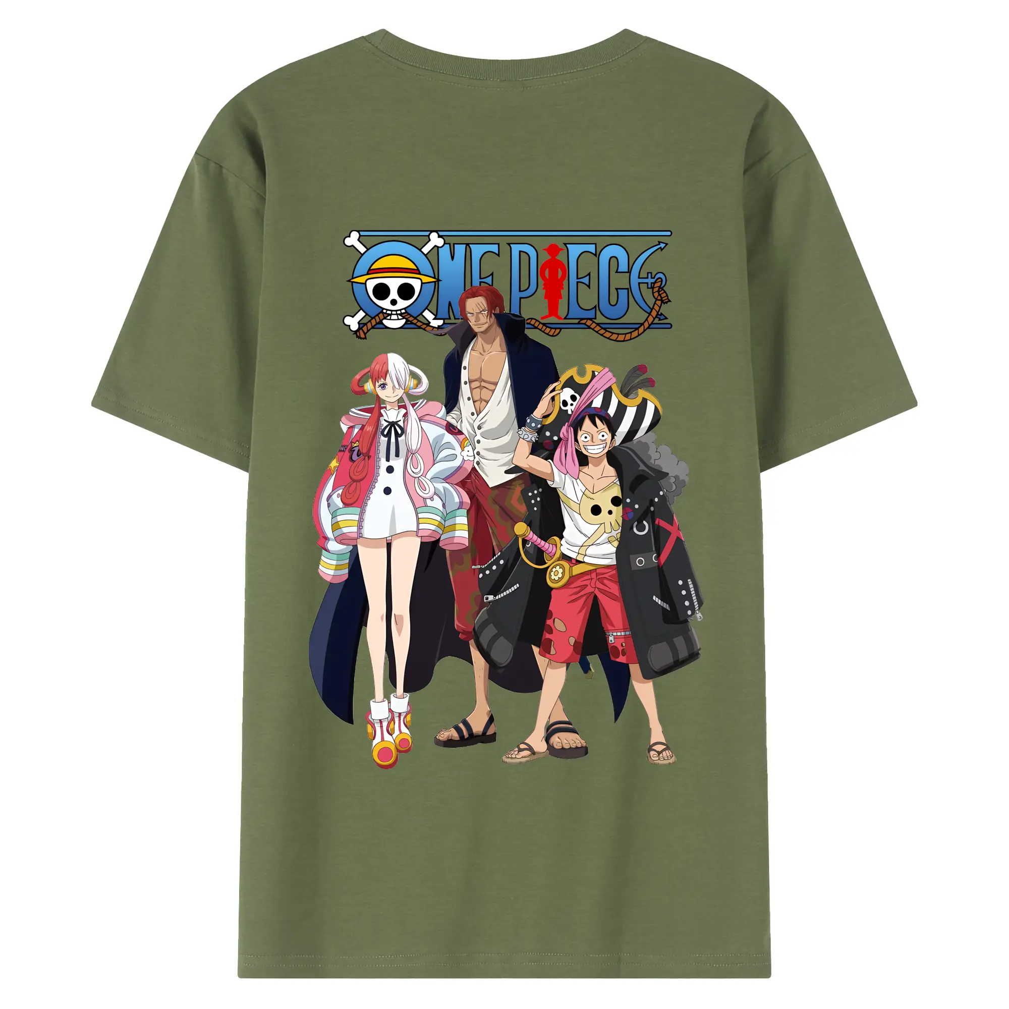 ワンピース グッズ モンキー・D・ルフィ - 綿100% 半袖Tシャツ ・ フロントプリント ・ 快適 通気性 ・ 日常使い 散歩 スポーツ用