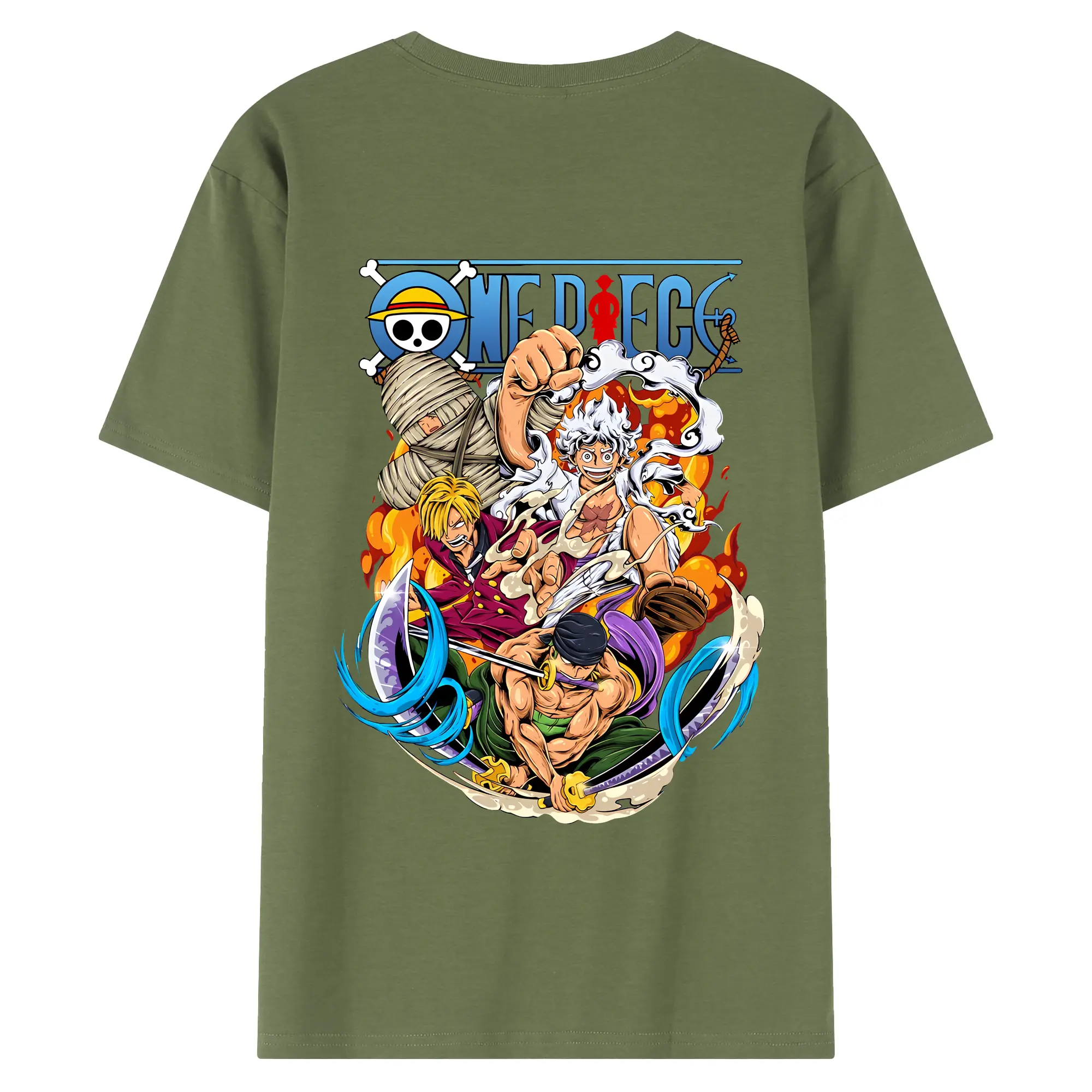 ワンピース グッズ モンキー・D・ルフィ - 綿100% 半袖Tシャツ ・ フロントプリント ・ 快適 通気性 ・ 日常使い 散歩 スポーツ用