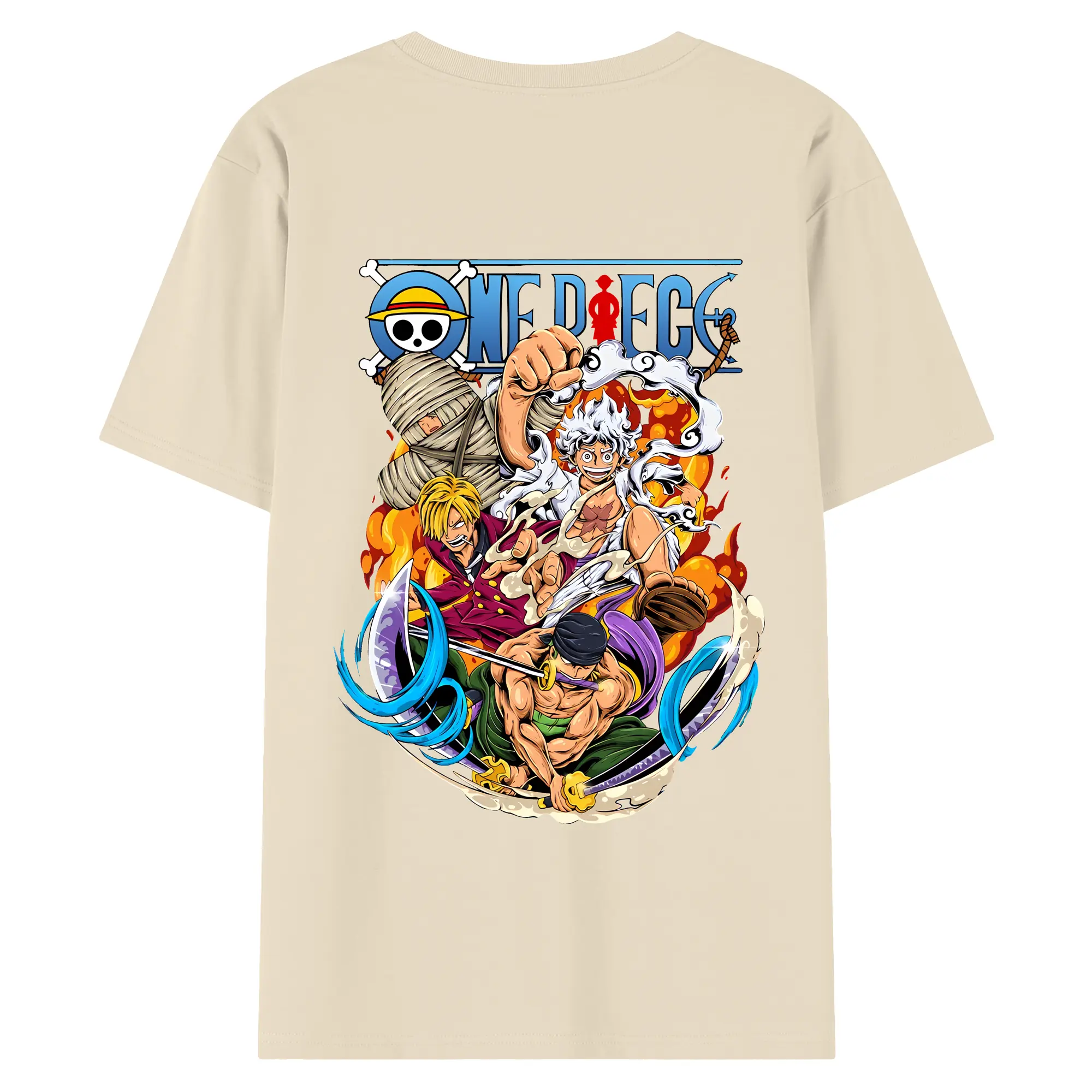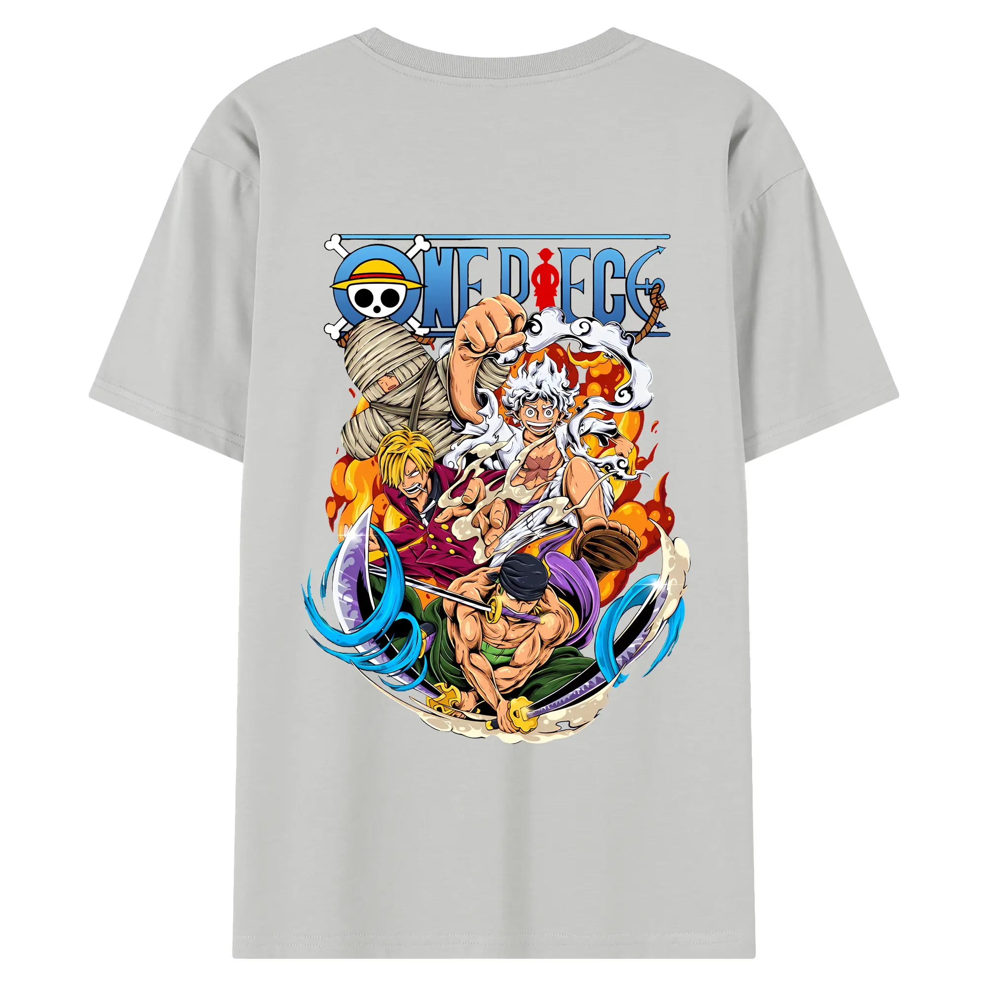 ワンピース グッズ モンキー・D・ルフィ - 綿100% ヴィンテージ風 半袖Tシャツ ・ 背面プリント ・ 柔らか肌触り ・ 通気性 快適 ・ スポーツ カジュアル 外出用
