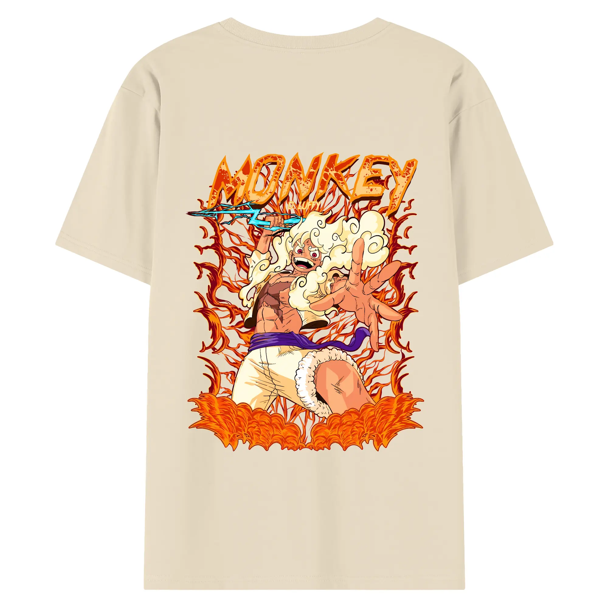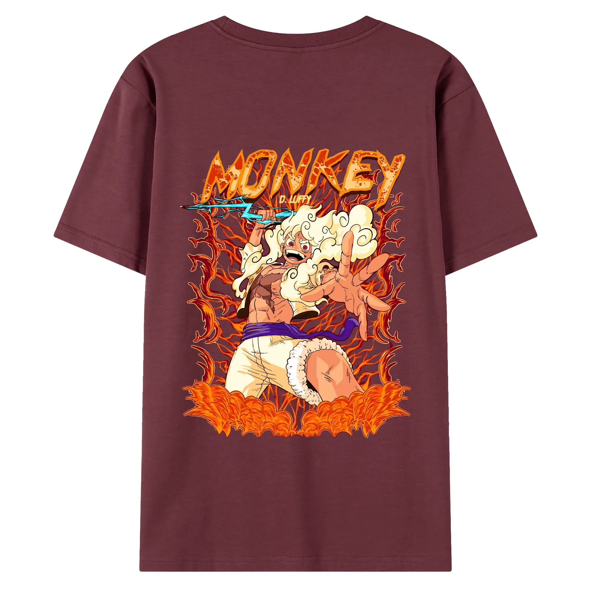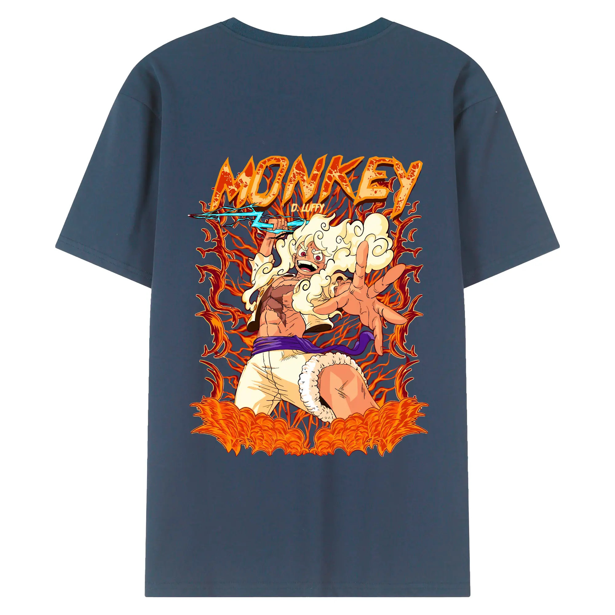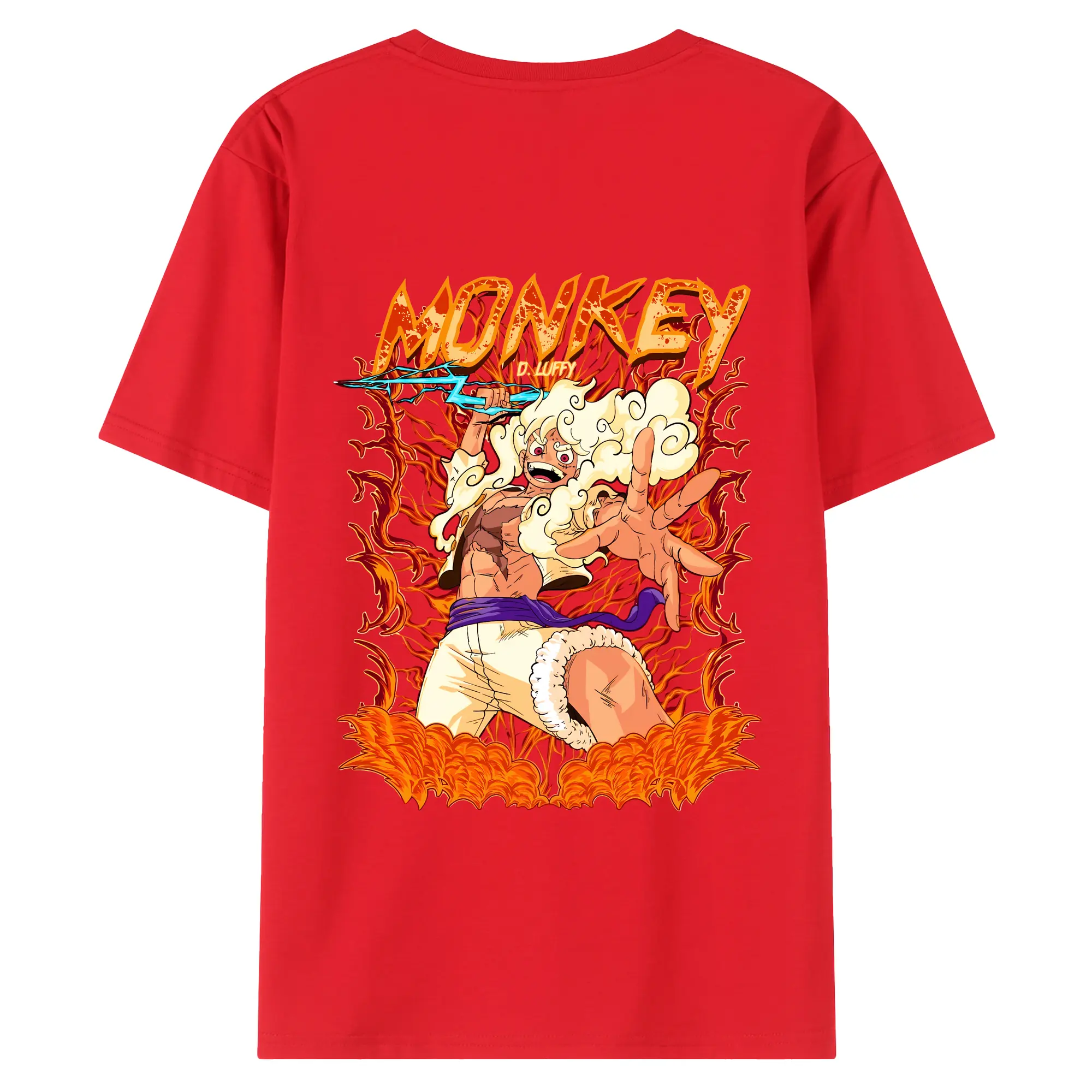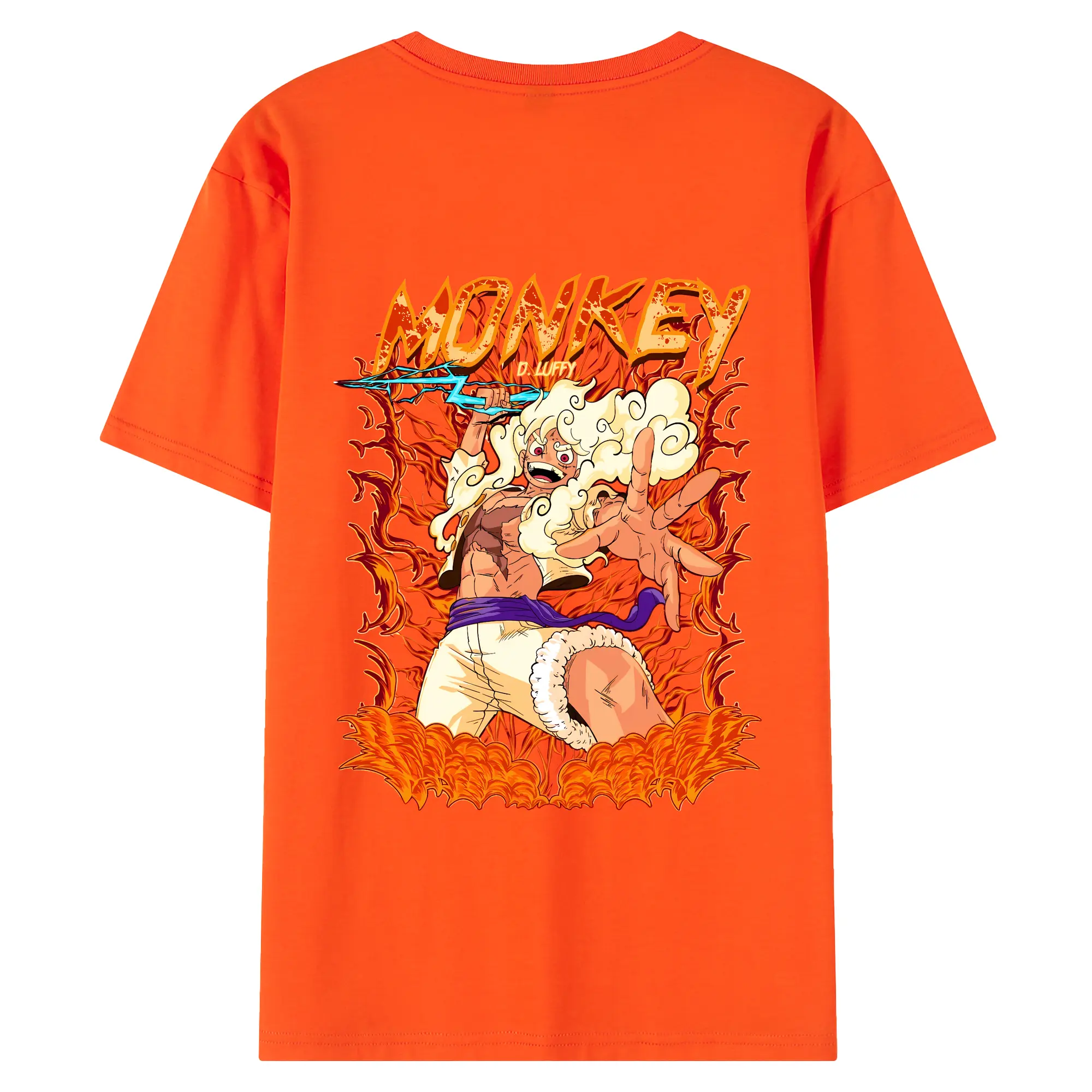 ワンピース グッズ モンキー・D・ルフィ - 綿100% ヴィンテージ風 半袖Tシャツ ・ 背面プリント ・ 柔らか肌触り ・ 通気性 快適 ・ スポーツ カジュアル 外出用