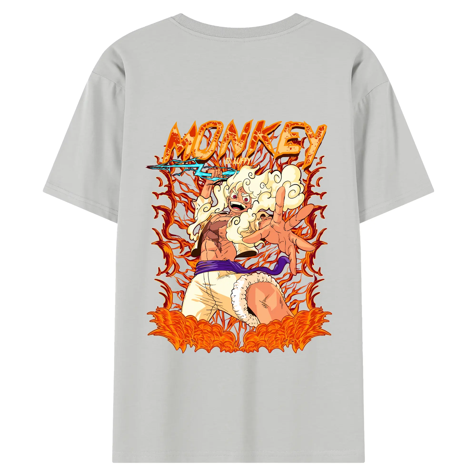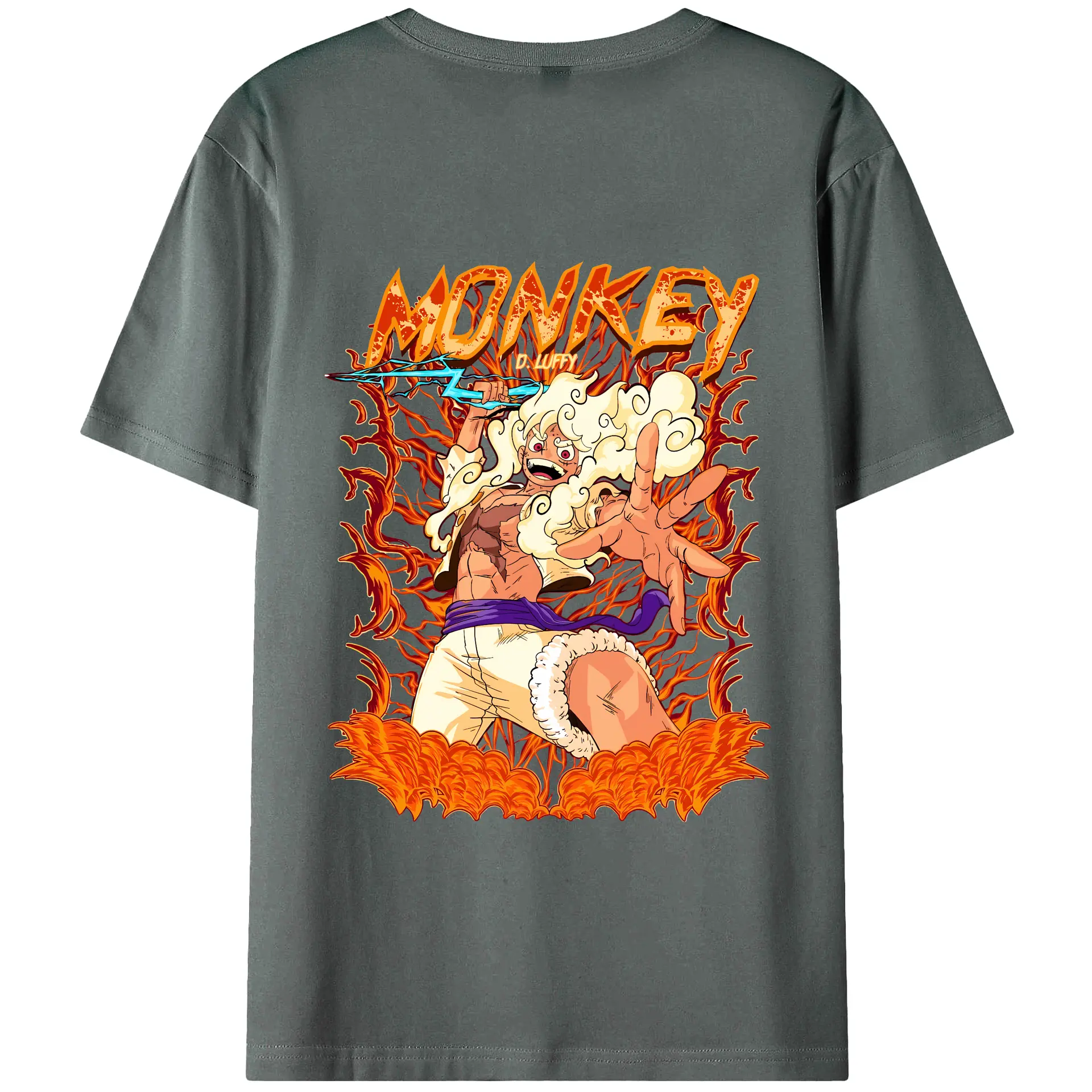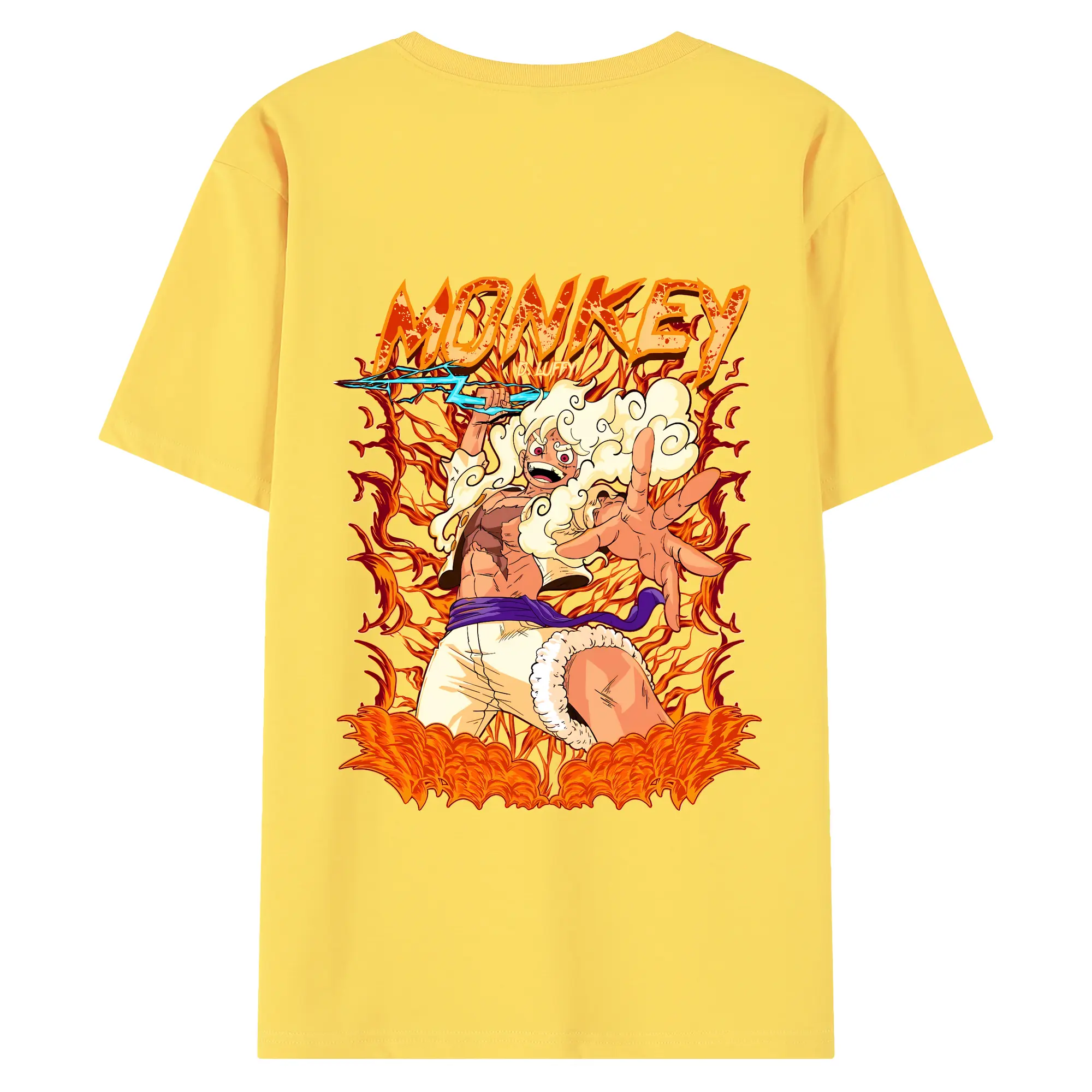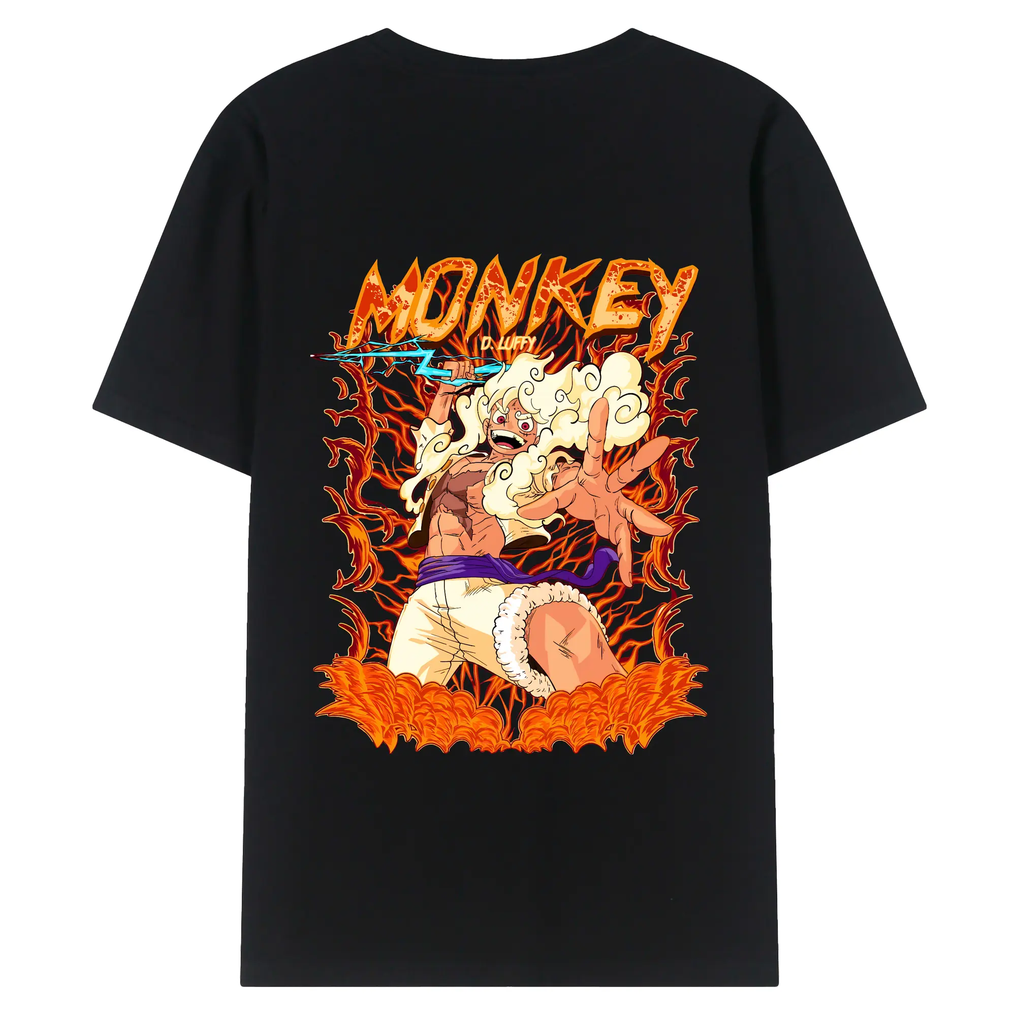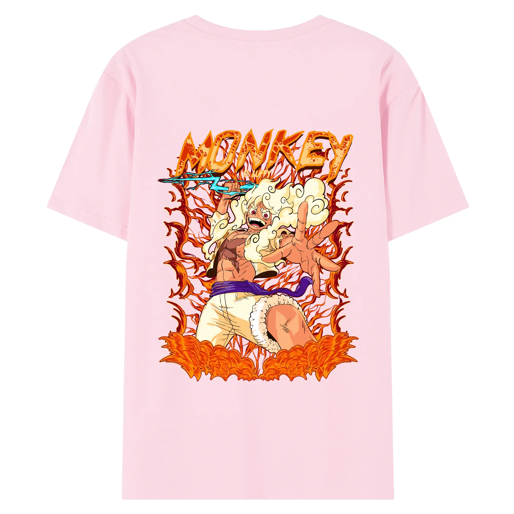 ワンピース グッズ モンキー・D・ルフィ - 綿100% ヴィンテージ風 半袖Tシャツ ・ 背面プリント ・ 柔らか肌触り ・ 通気性 快適 ・ スポーツ カジュアル 外出用