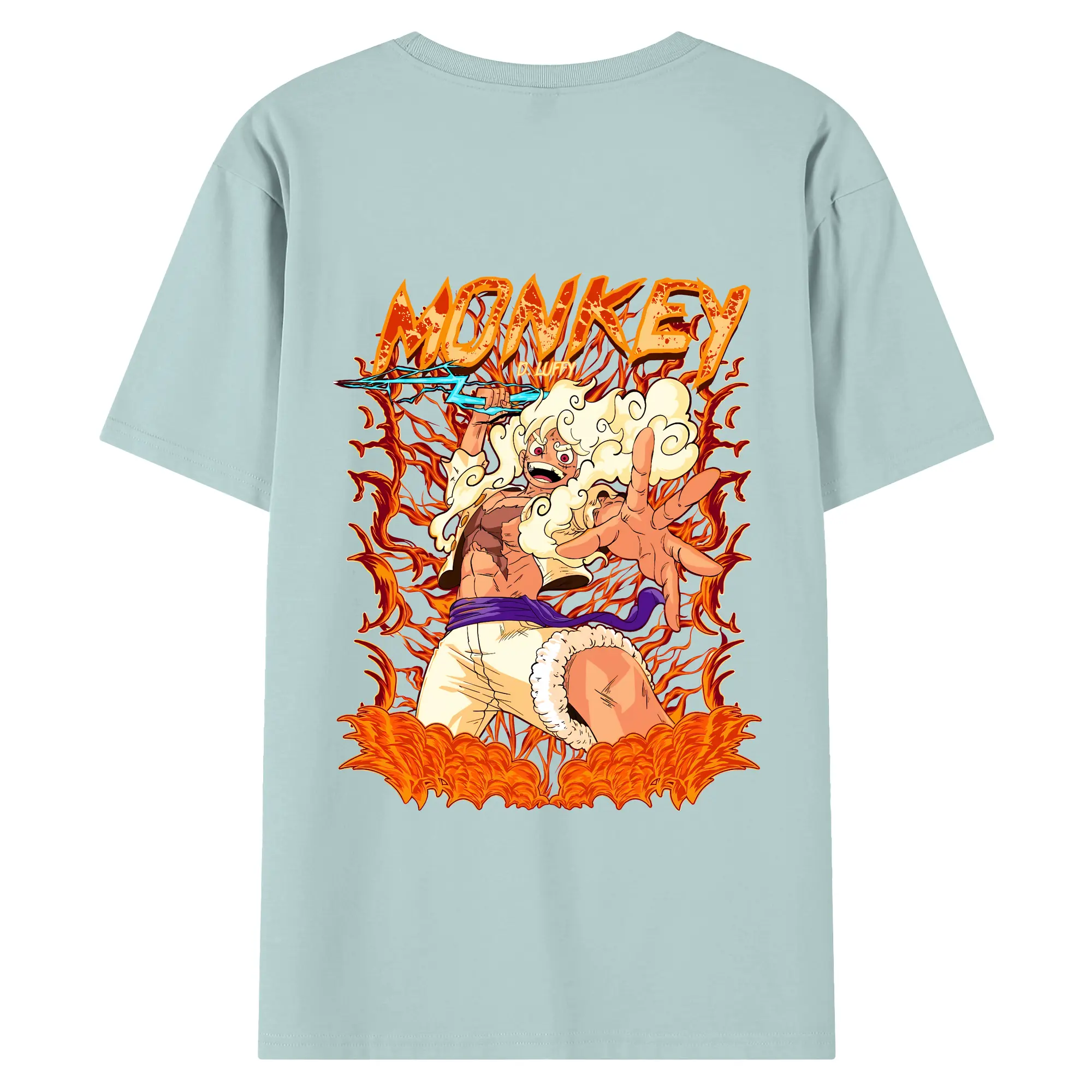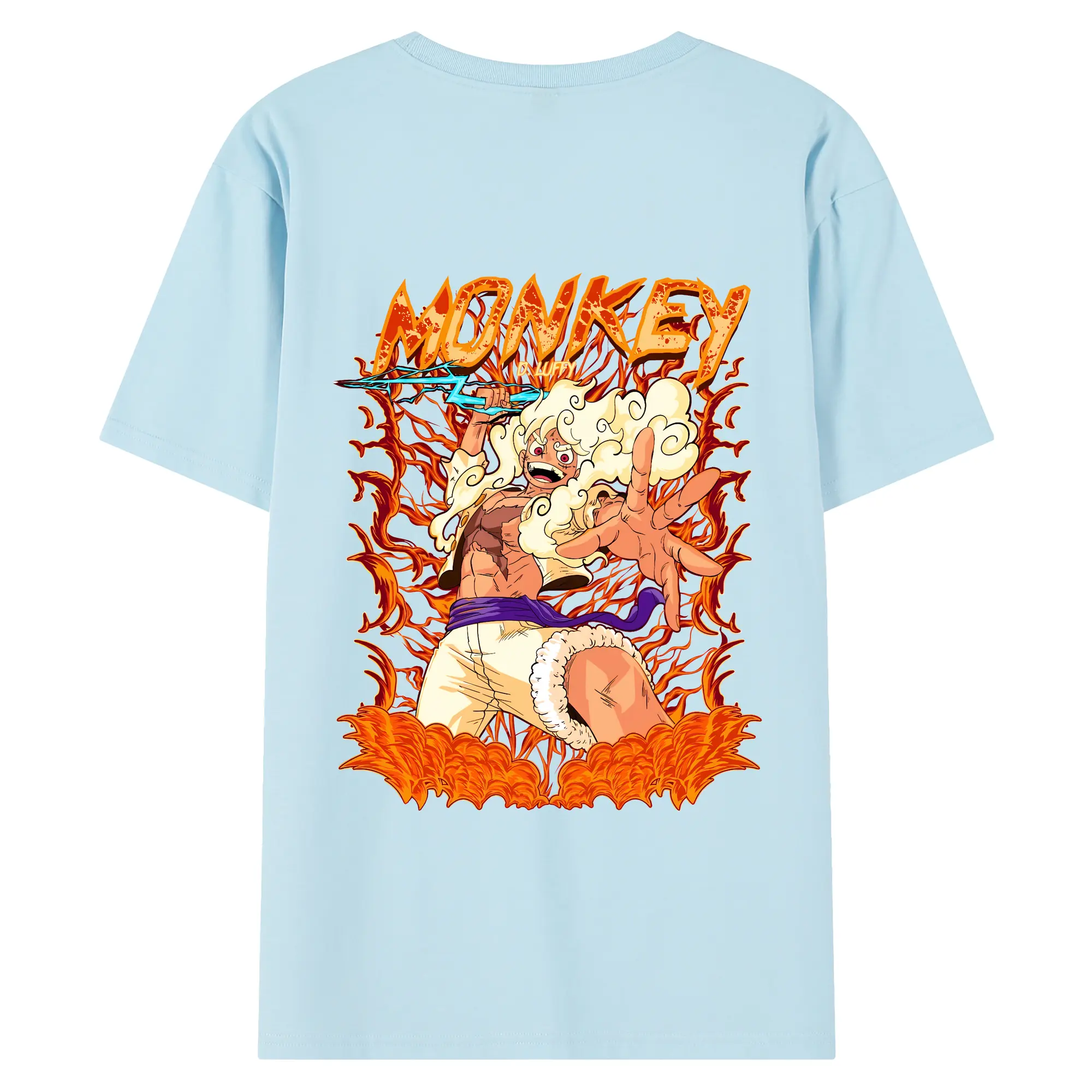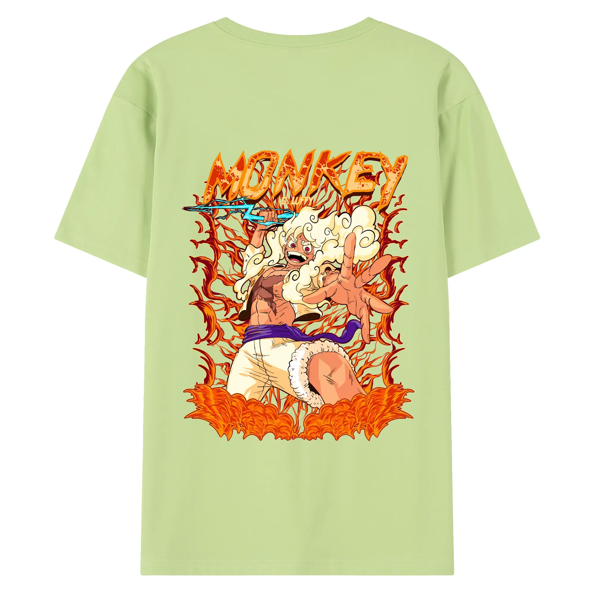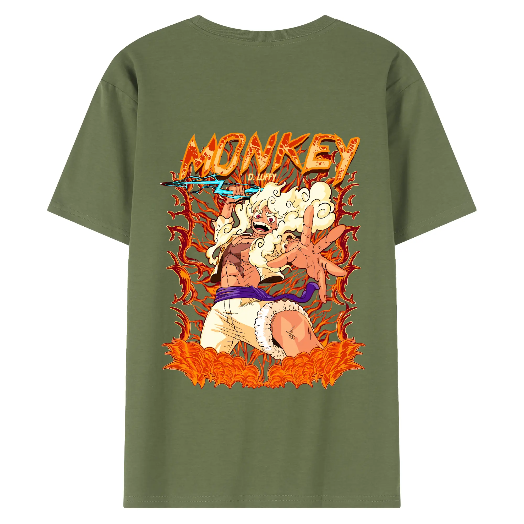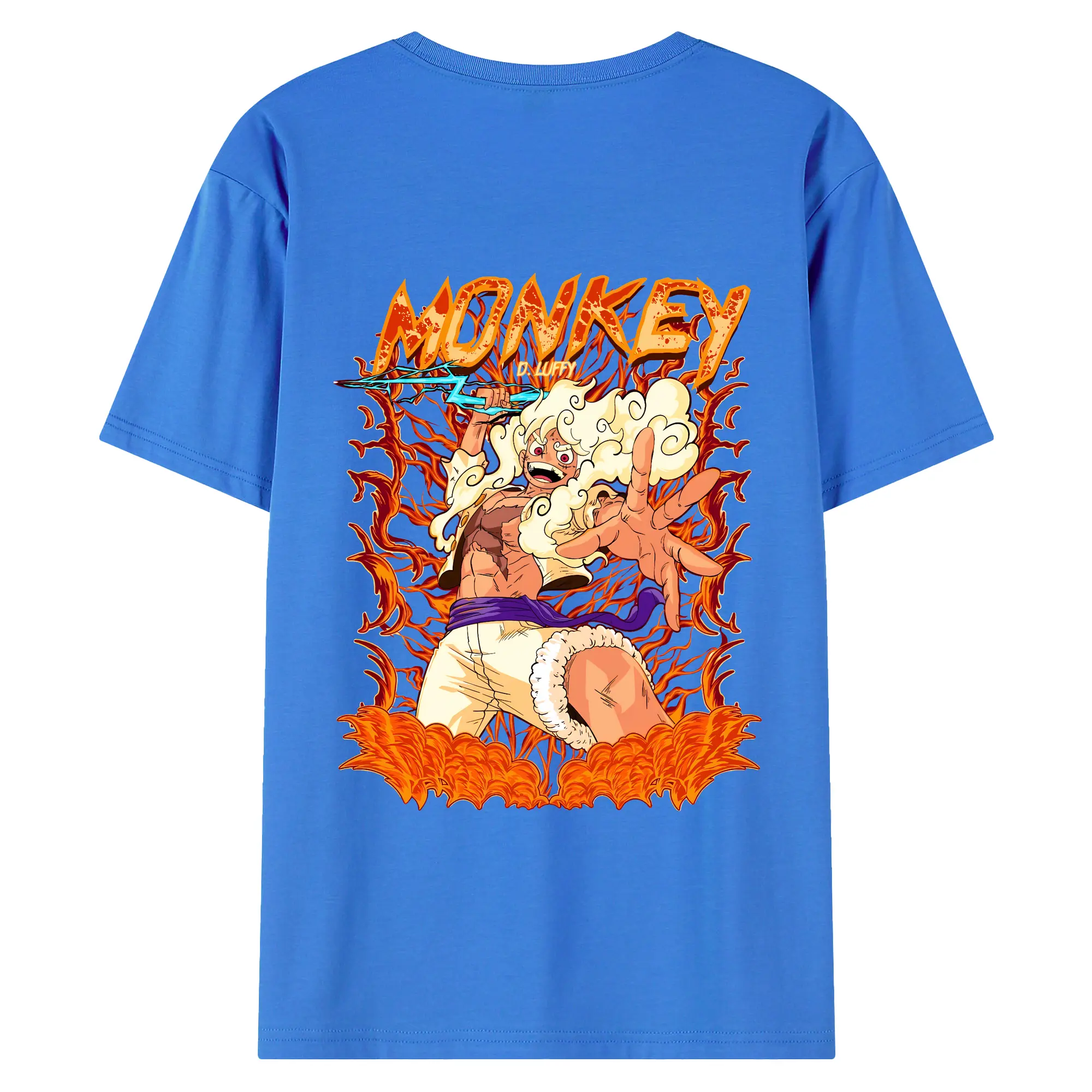ワンピース グッズ モンキー・D・ルフィ - 綿100% ヴィンテージ風 半袖Tシャツ ・ 背面プリント ・ 柔らか肌触り ・ 通気性 快適 ・ スポーツ カジュアル 外出用