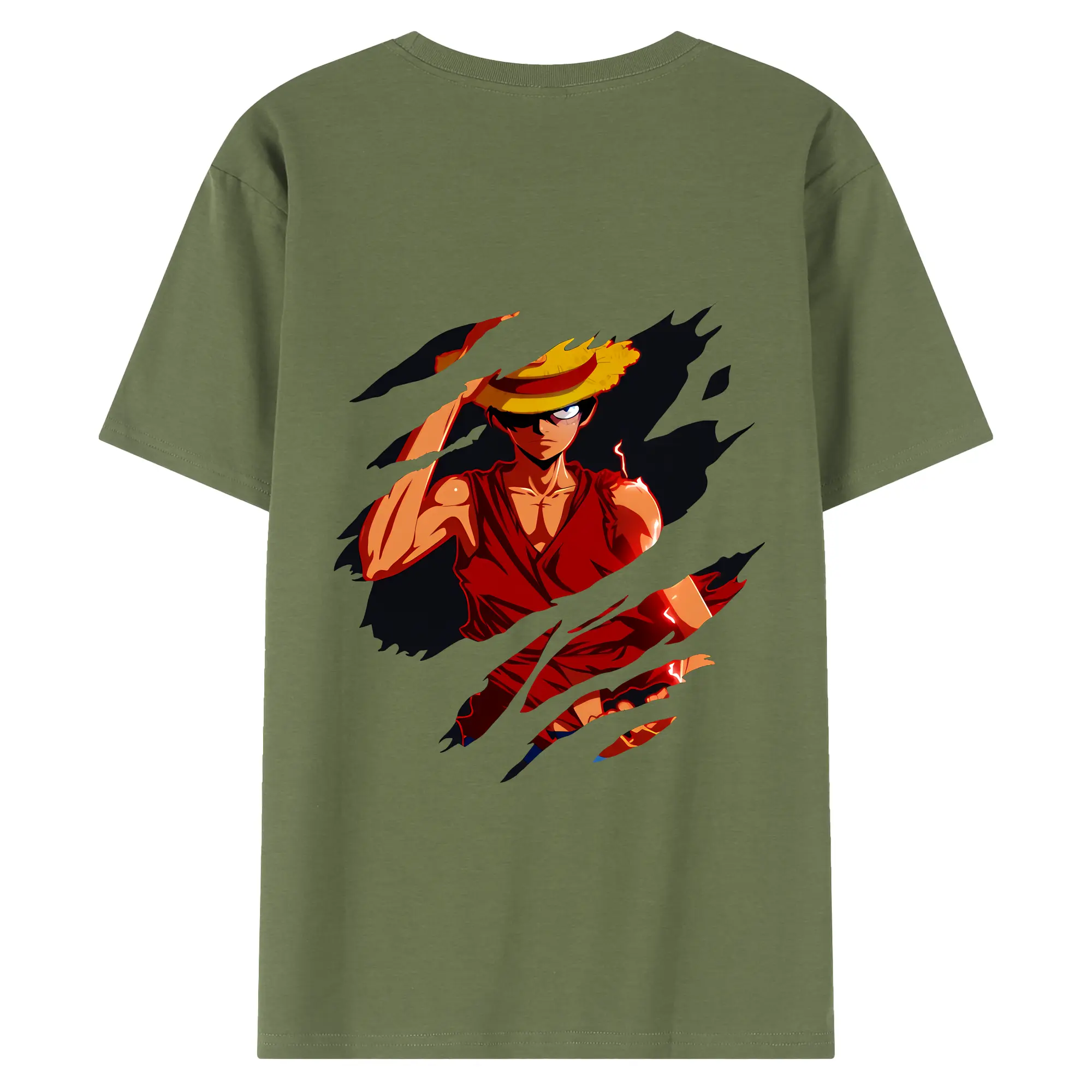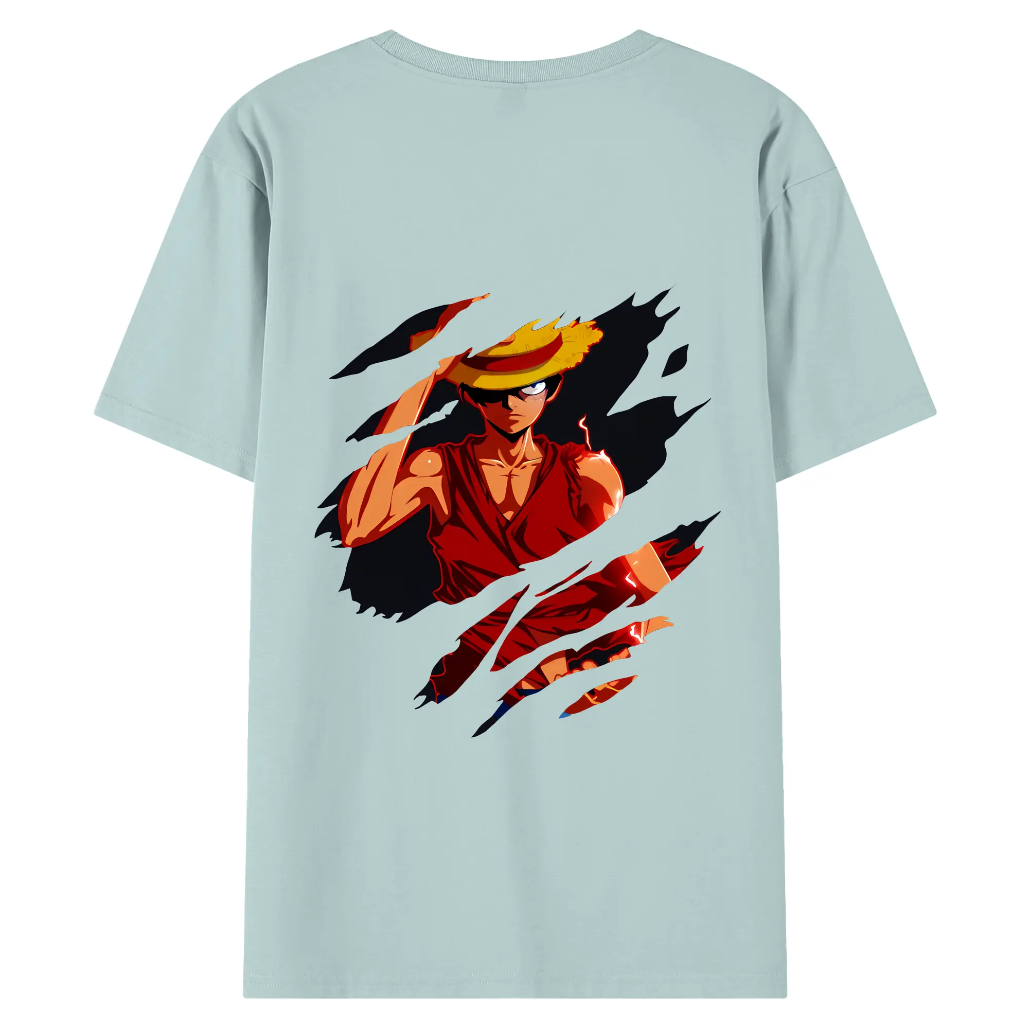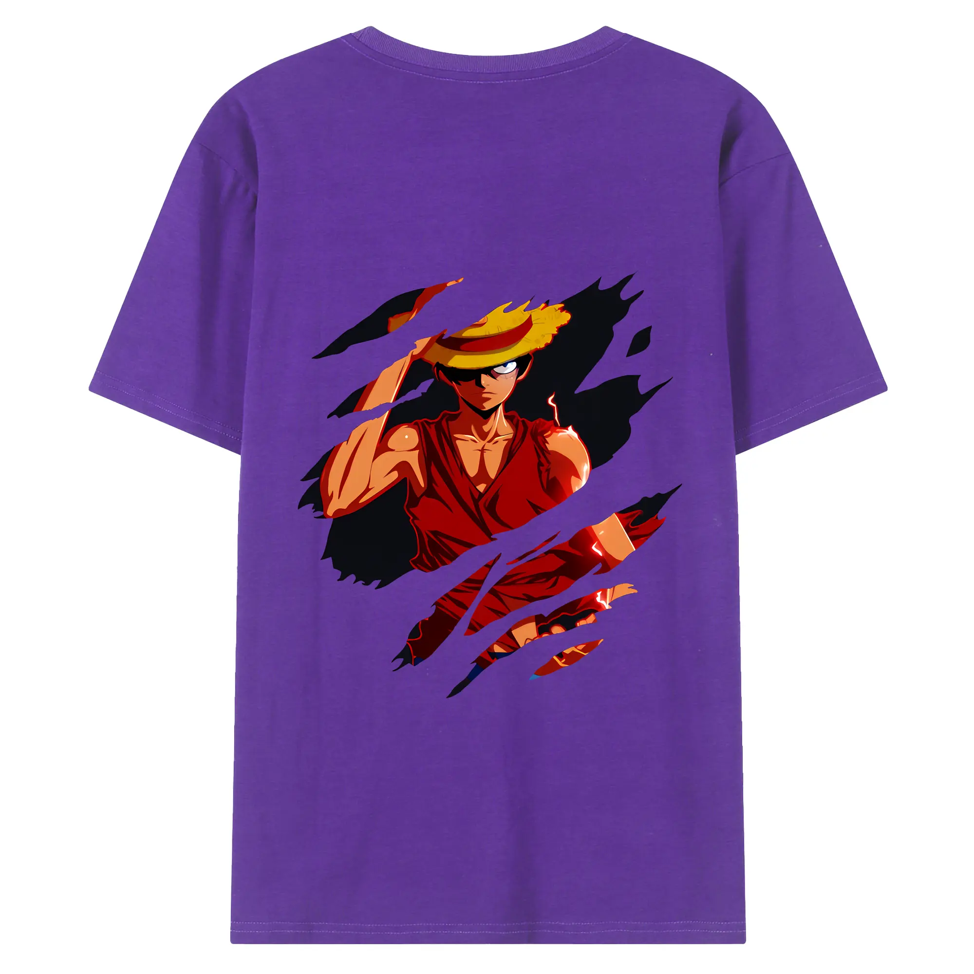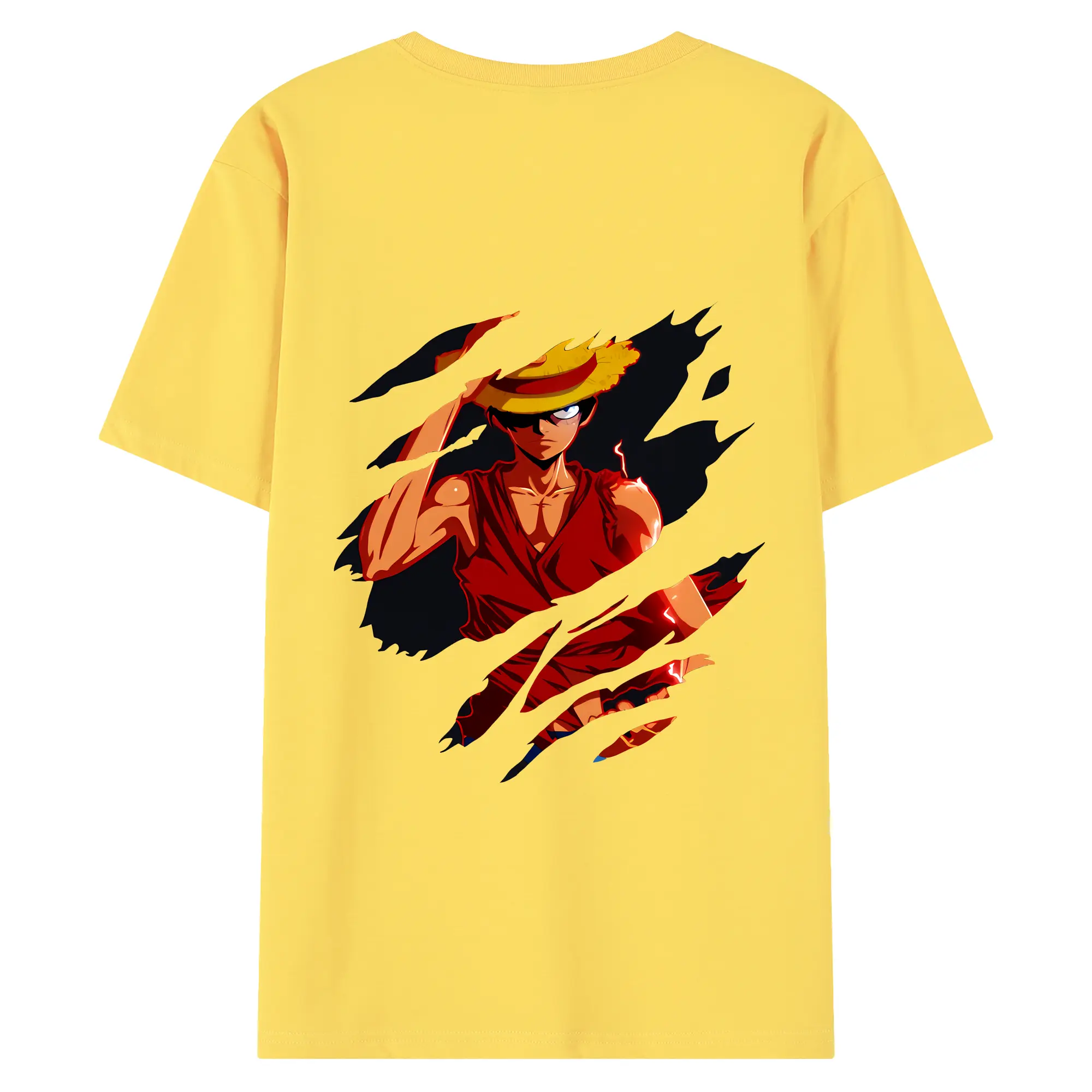 ワンピース グッズ モンキー・D・ルフィ - 綿100% ヴィンテージ風 半袖Tシャツ ・ 背面プリント ・ 柔らか肌触り ・ 通気性 快適 ・ スポーツ カジュアル 外出用