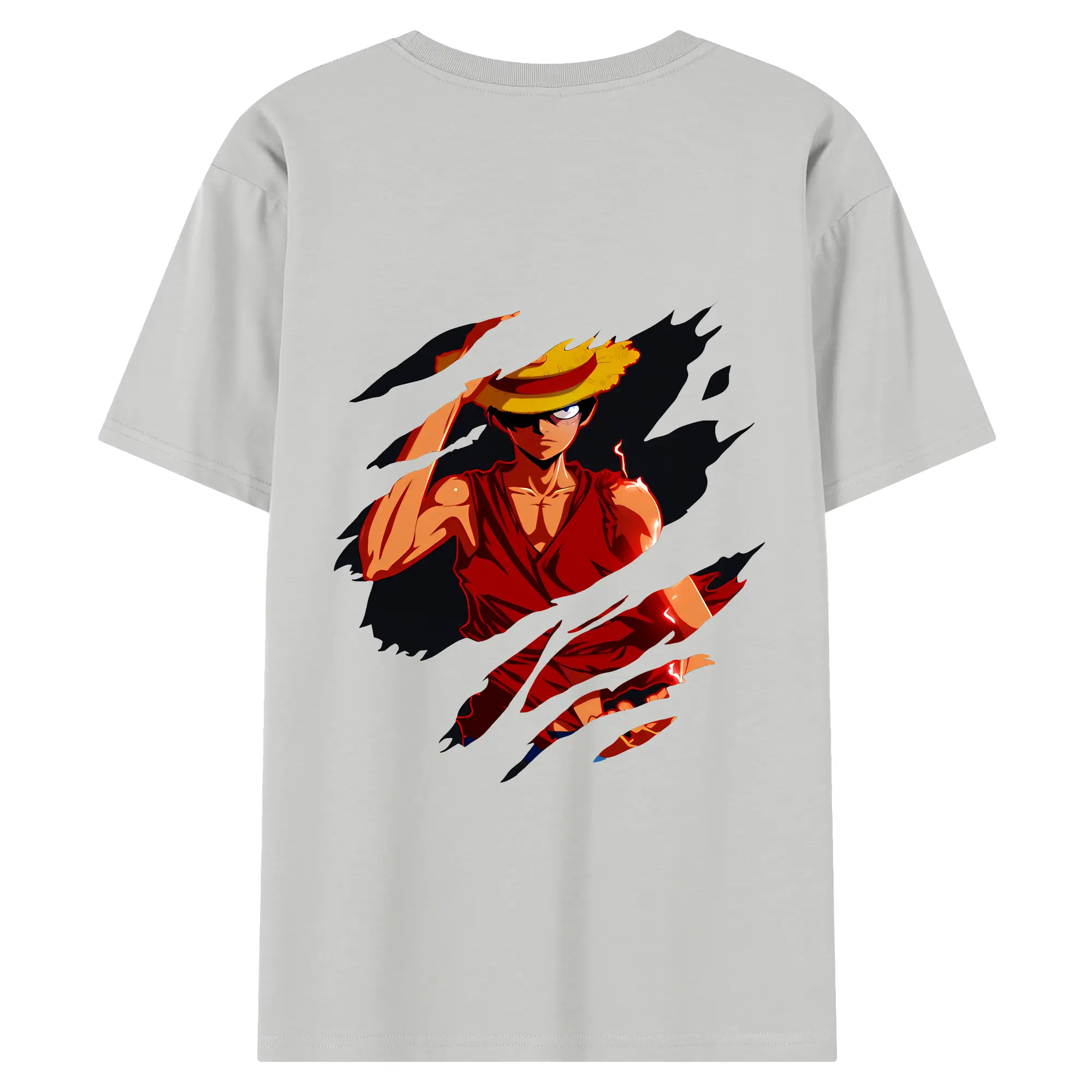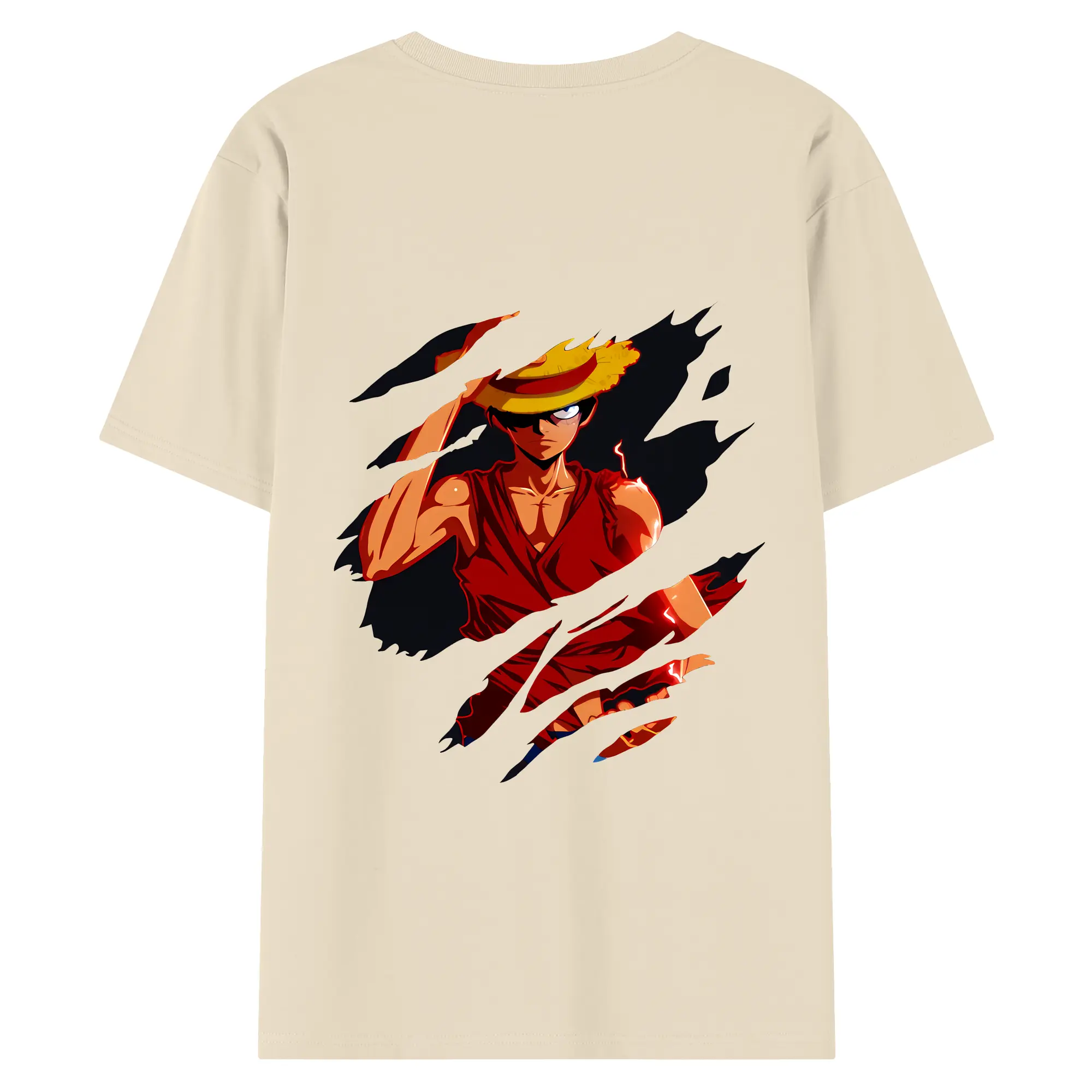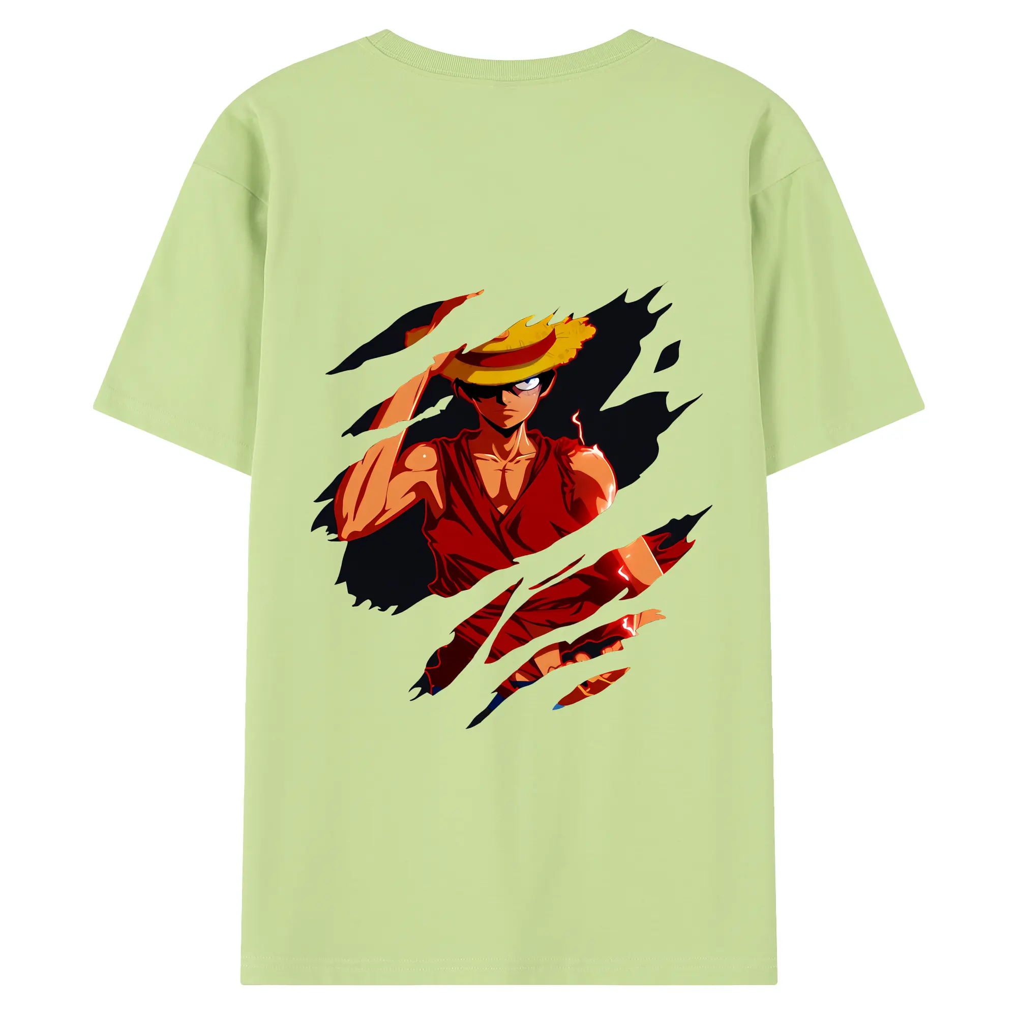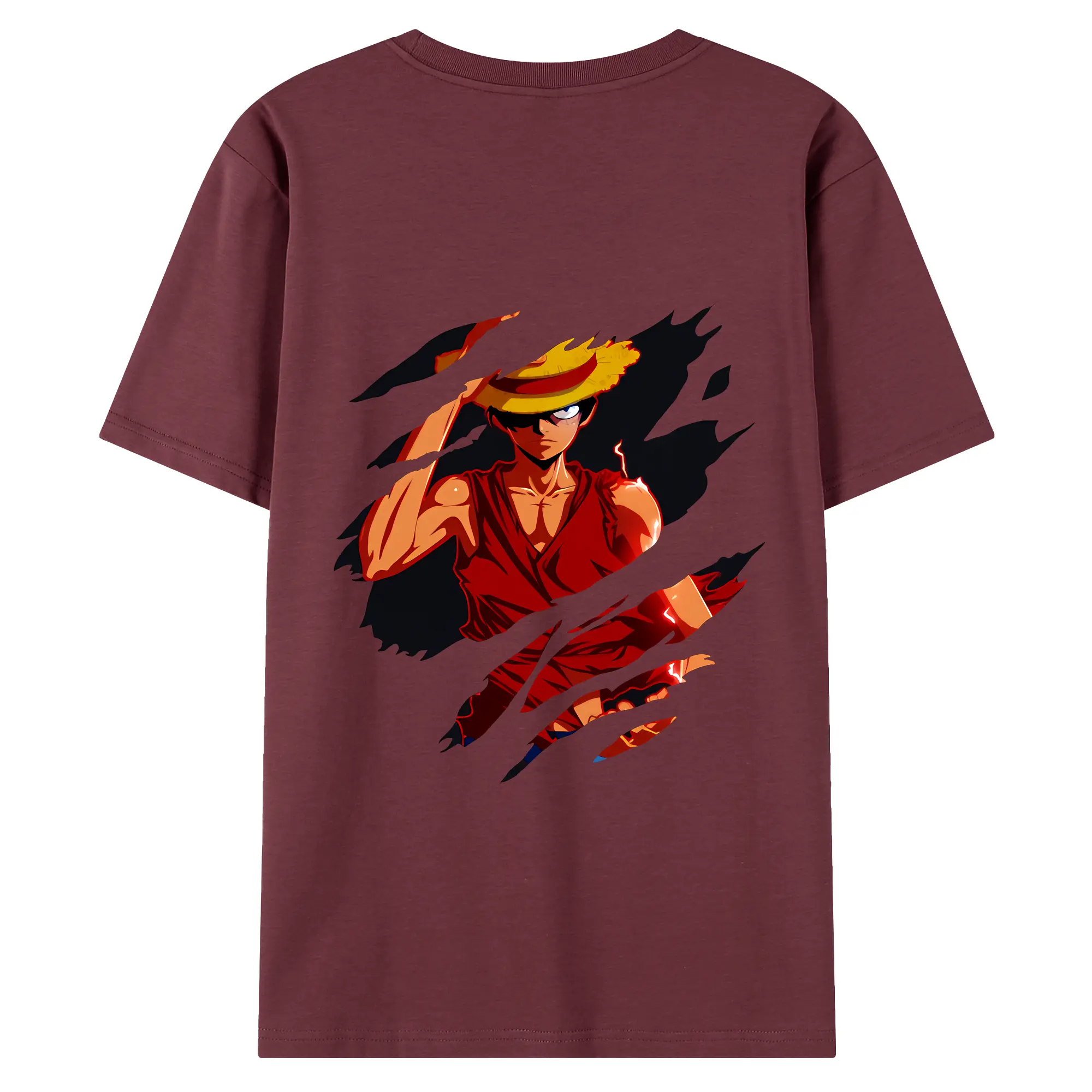 ワンピース グッズ モンキー・D・ルフィ - 綿100% ヴィンテージ風 半袖Tシャツ ・ 背面プリント ・ 柔らか肌触り ・ 通気性 快適 ・ スポーツ カジュアル 外出用