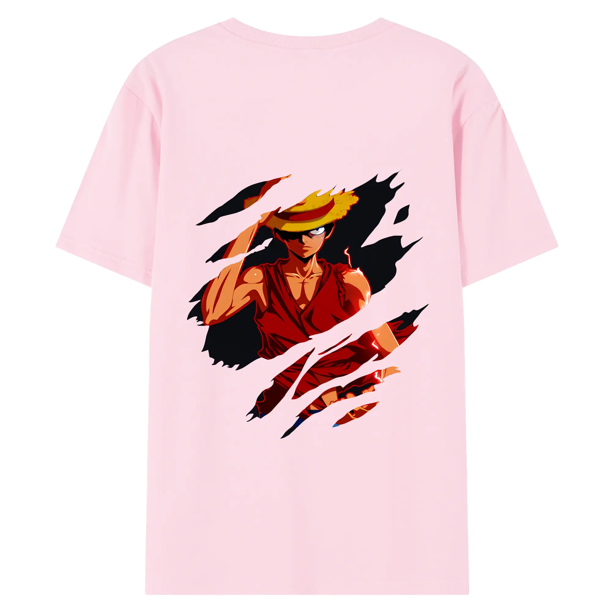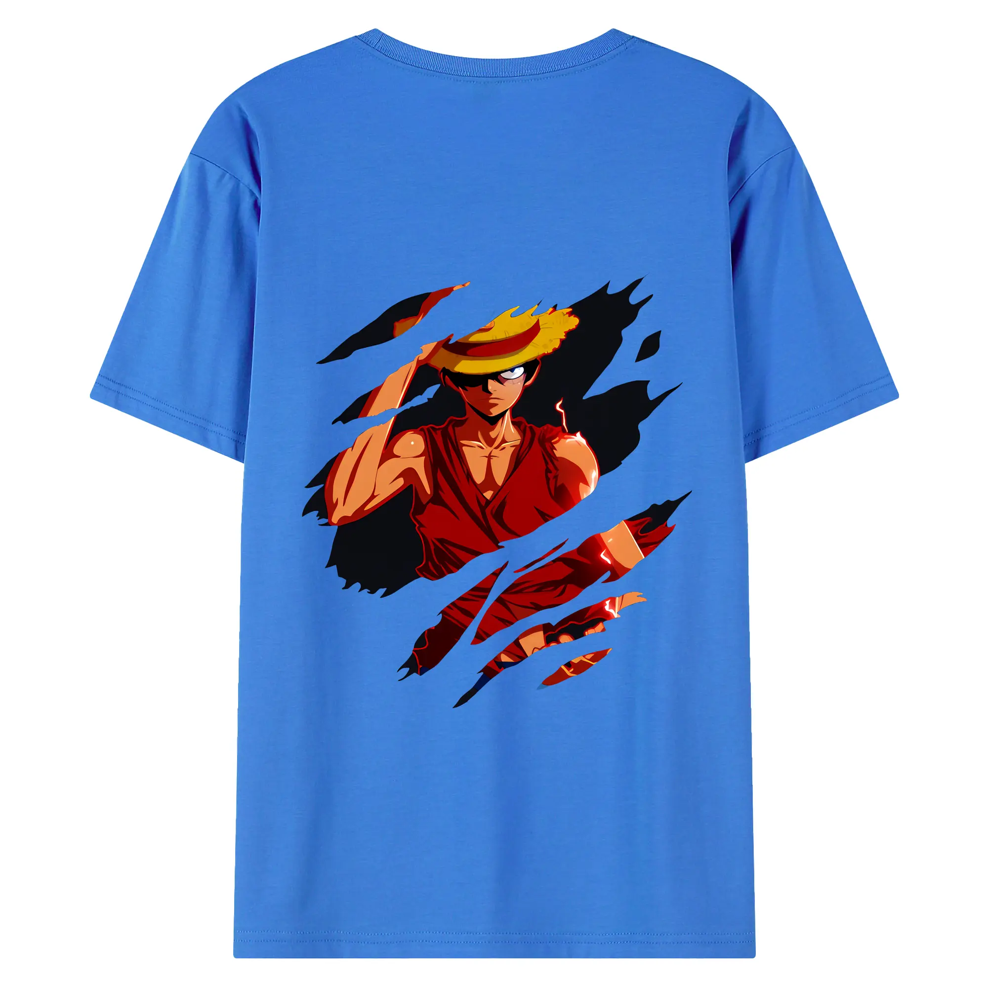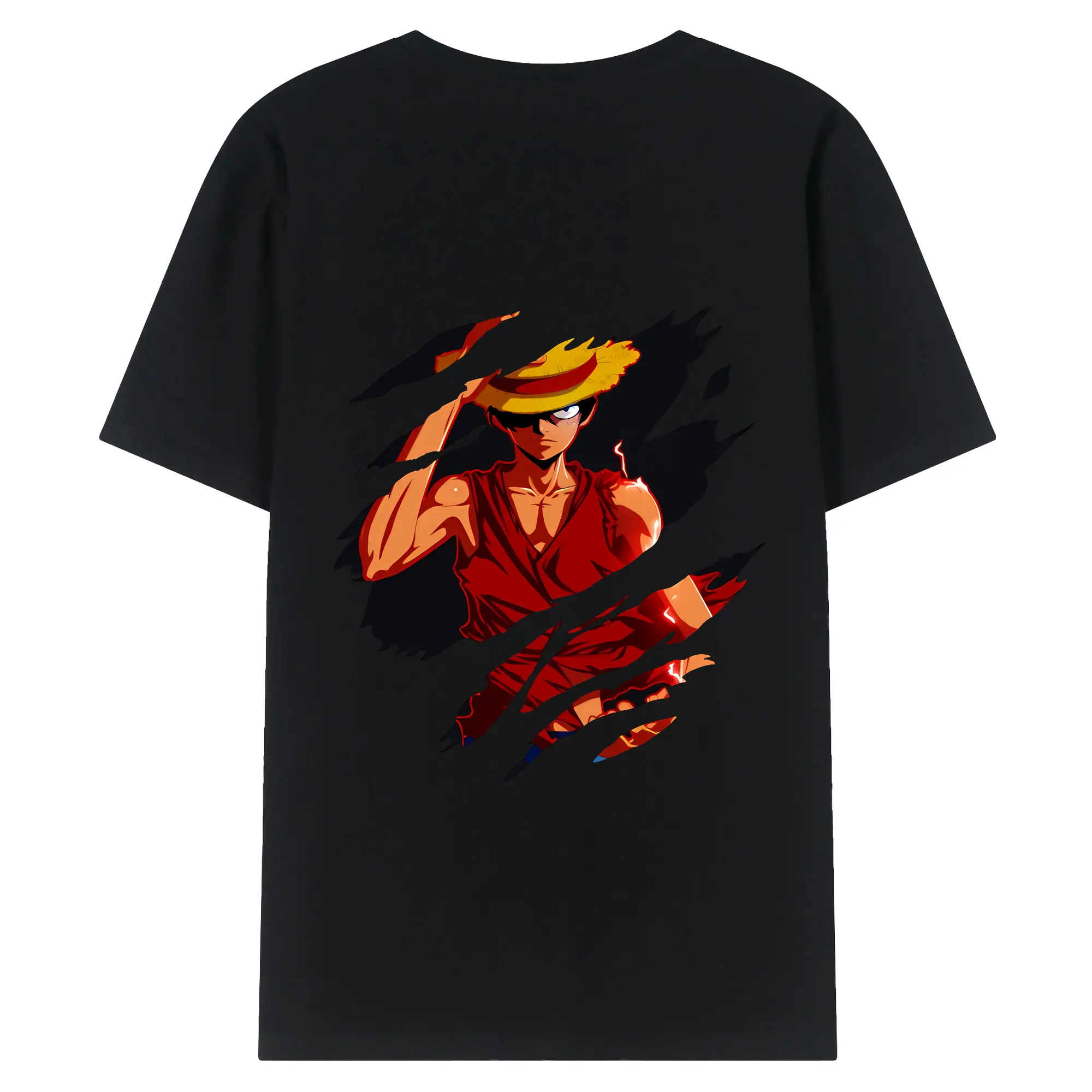 ワンピース グッズ モンキー・D・ルフィ - 綿100% 半袖Tシャツ ・ フロントプリント ・ 快適 通気性 ・ 日常使い 散歩 スポーツ用