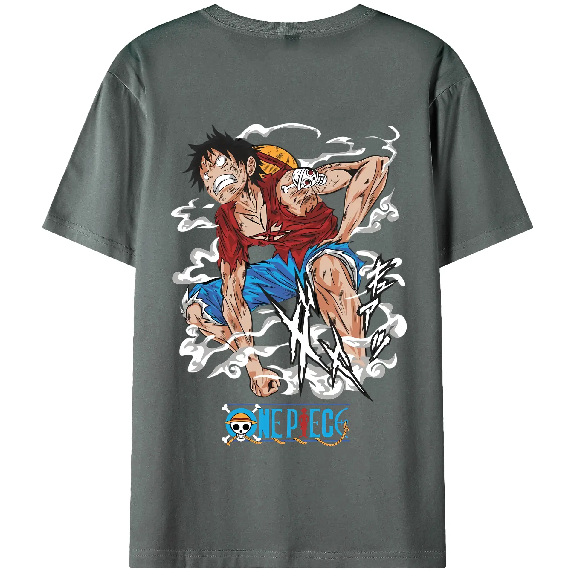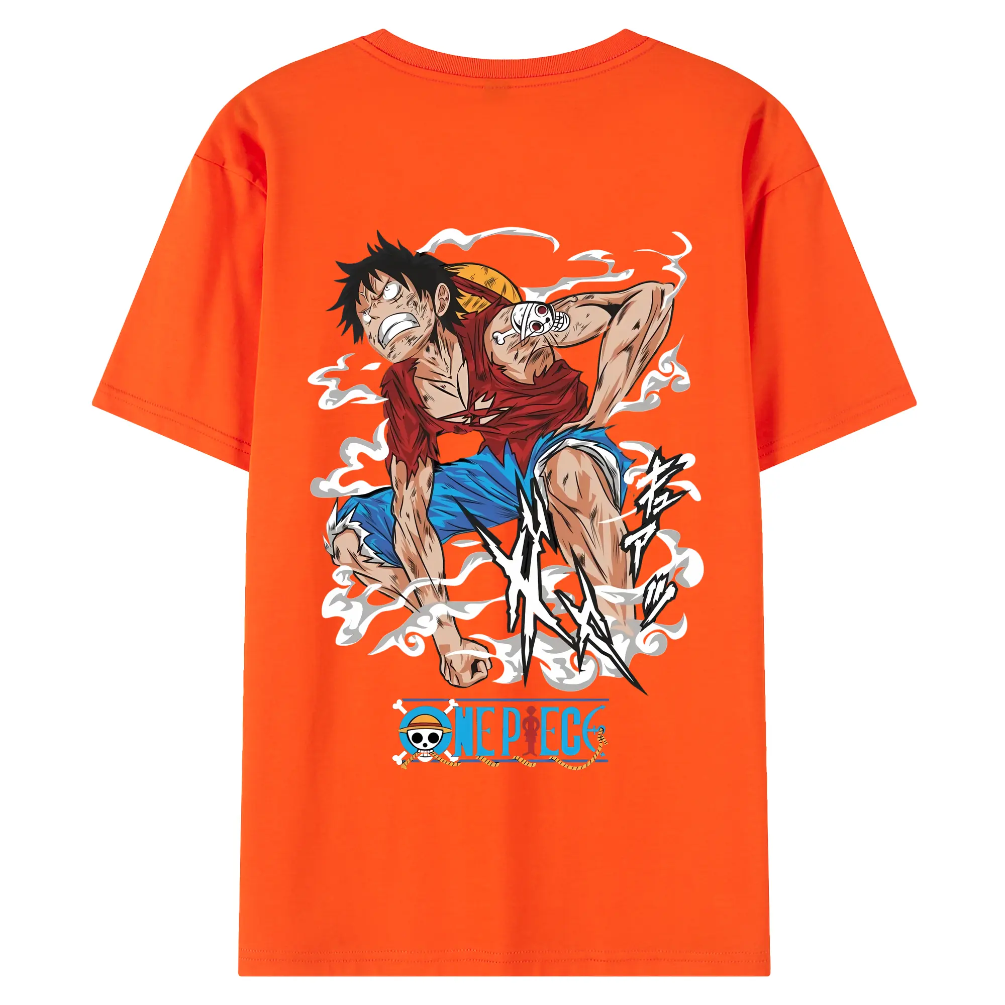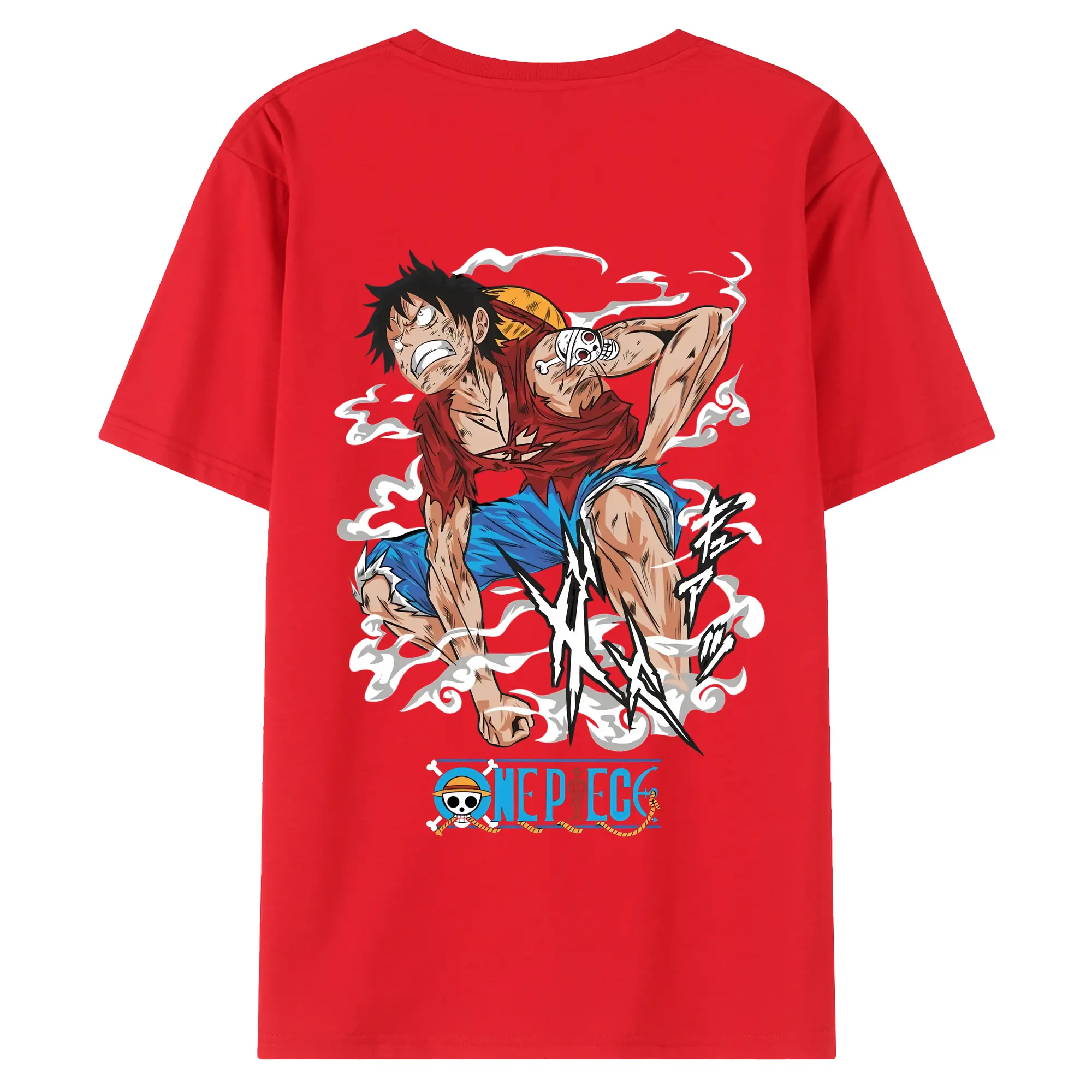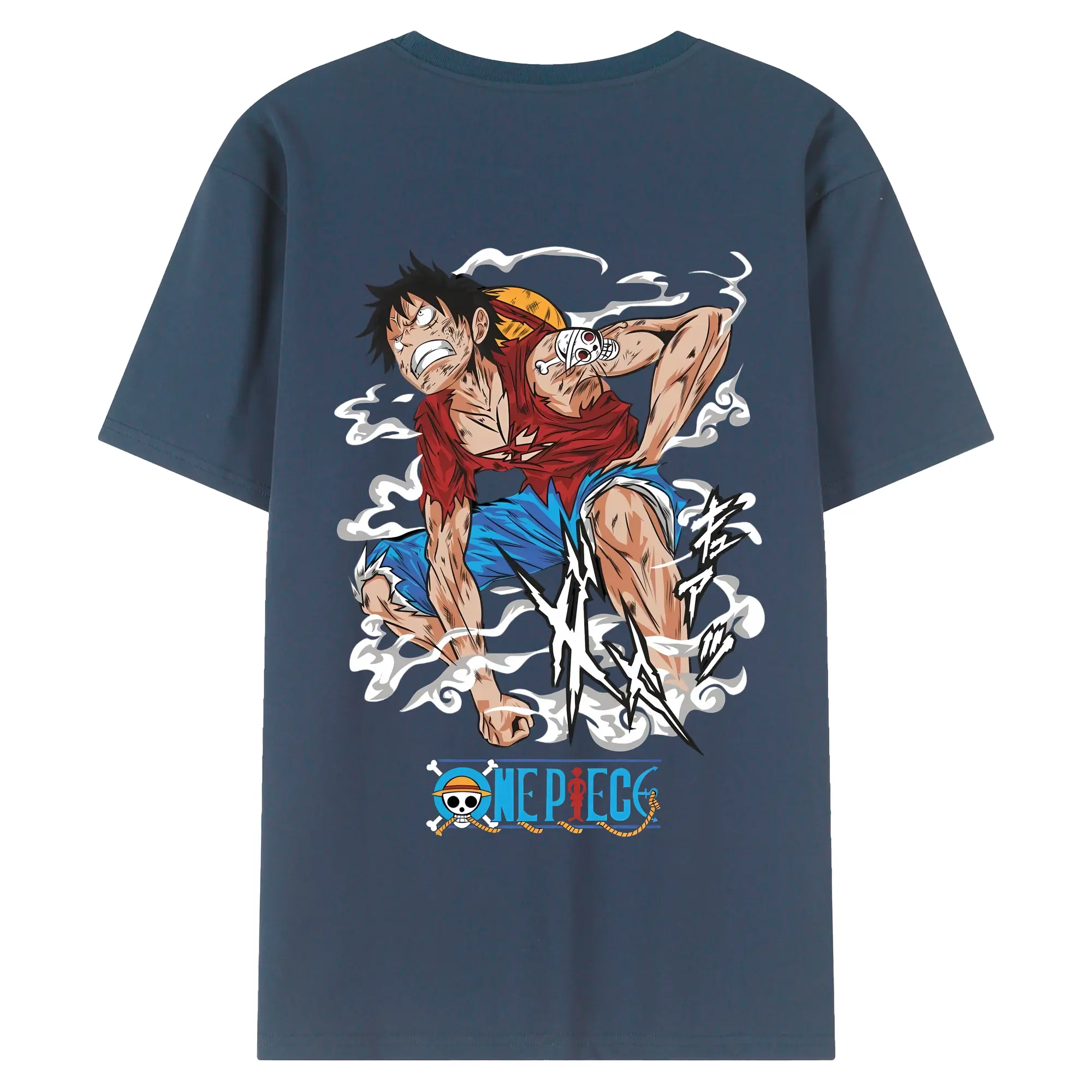 ワンピース グッズ モンキー・D・ルフィ - 綿100% ヴィンテージ風 半袖Tシャツ ・ 背面プリント ・ 柔らか肌触り ・ 通気性 快適 ・ スポーツ カジュアル 外出用
