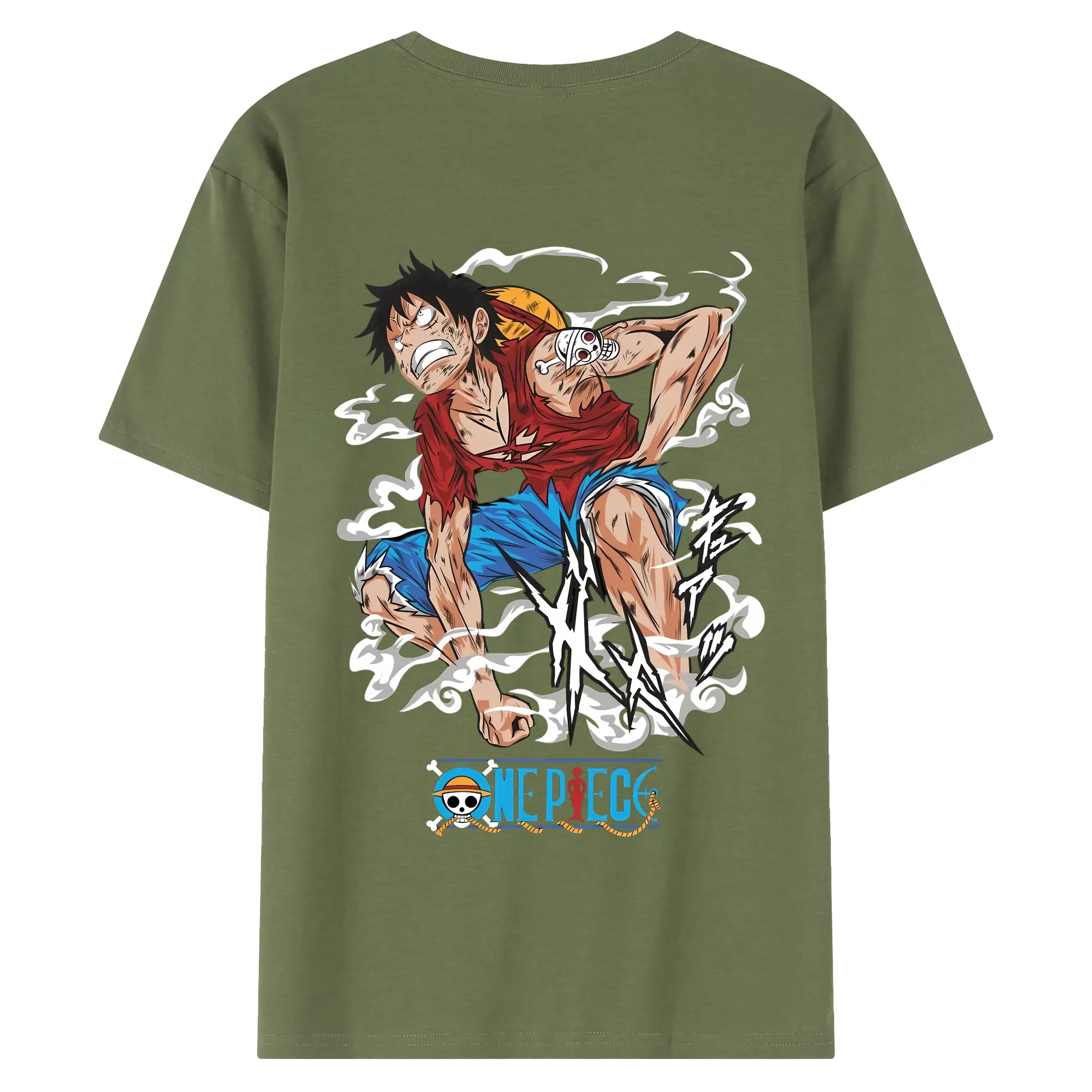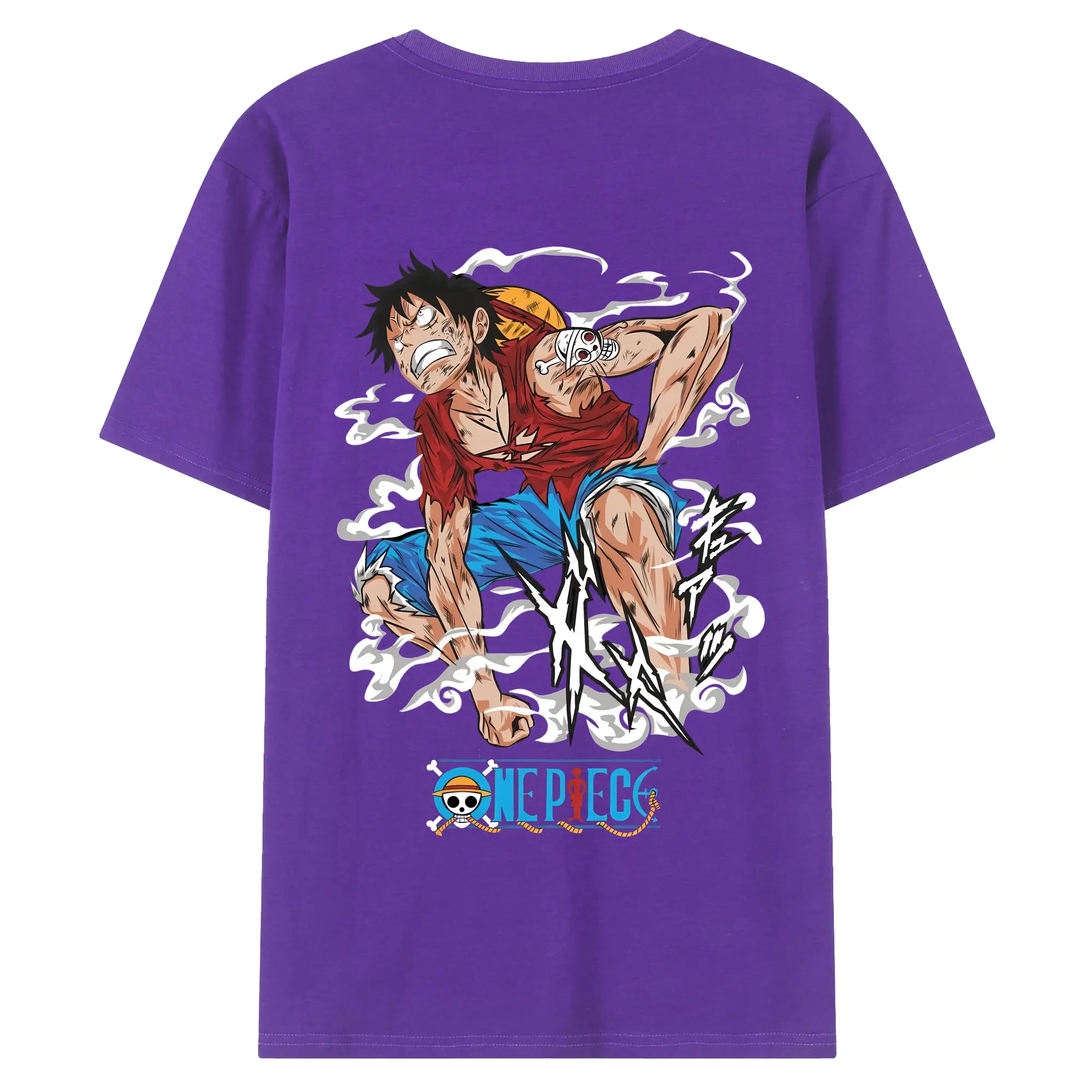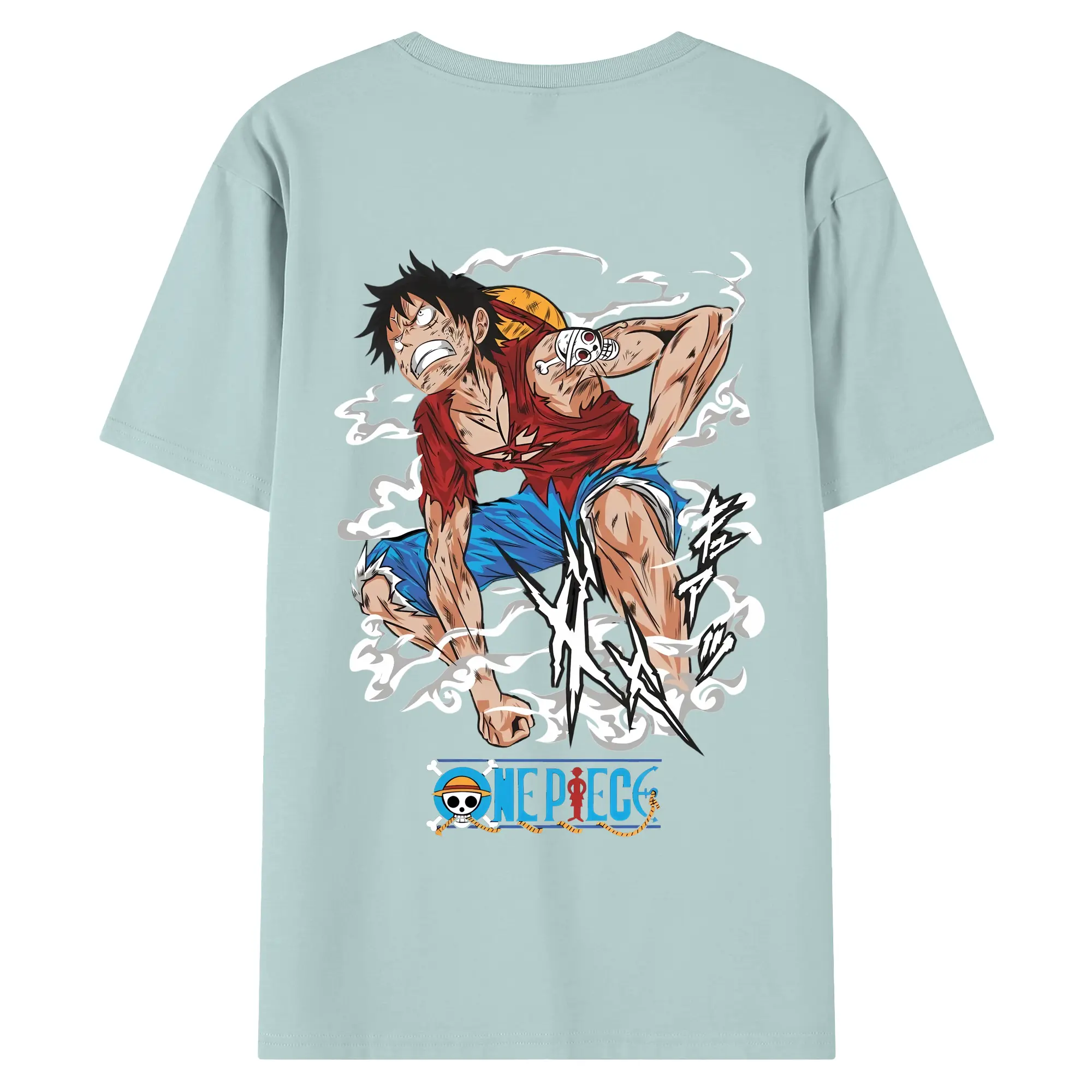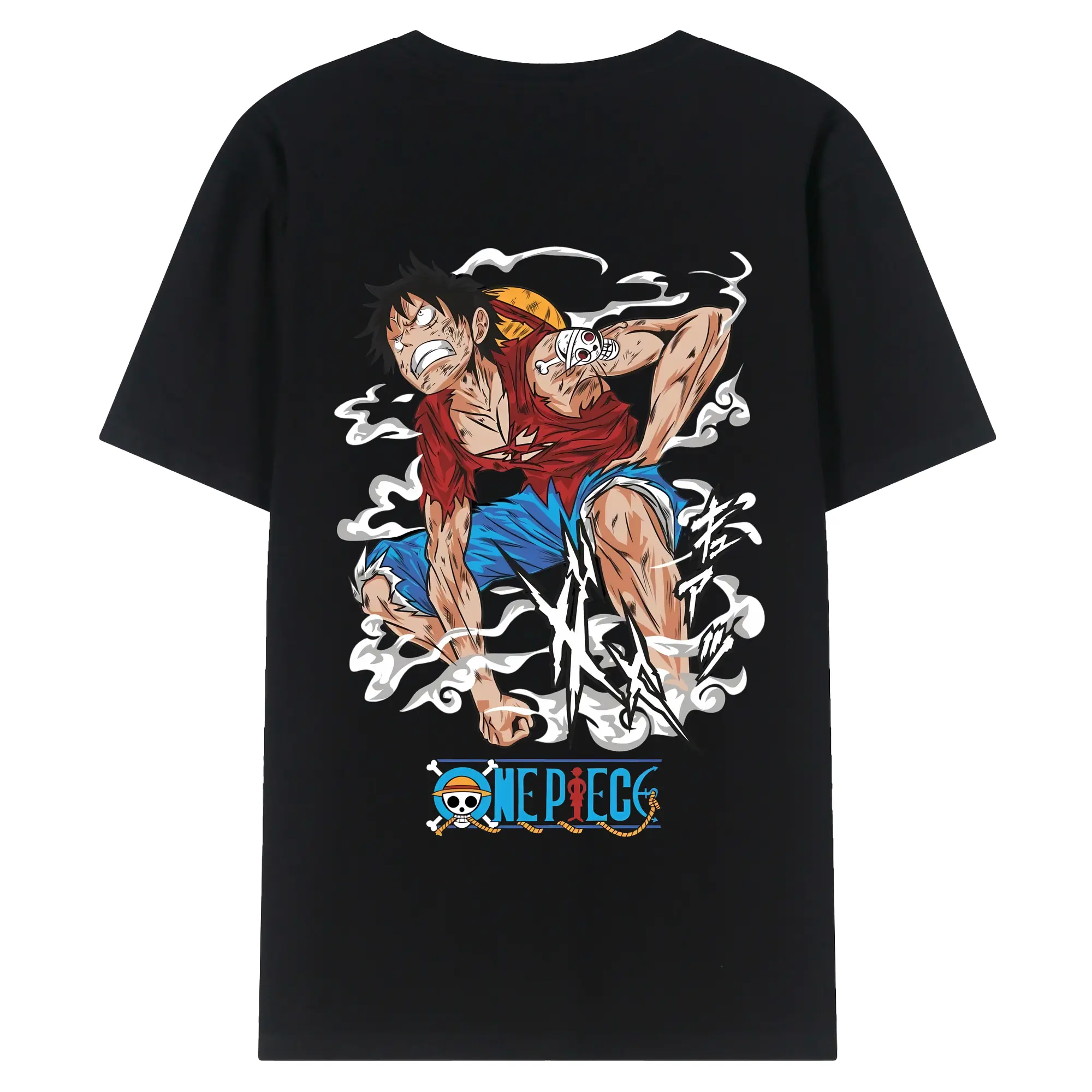 ワンピース グッズ モンキー・D・ルフィ - 綿100% ヴィンテージ風 半袖Tシャツ ・ 背面プリント ・ 柔らか肌触り ・ 通気性 快適 ・ スポーツ カジュアル 外出用