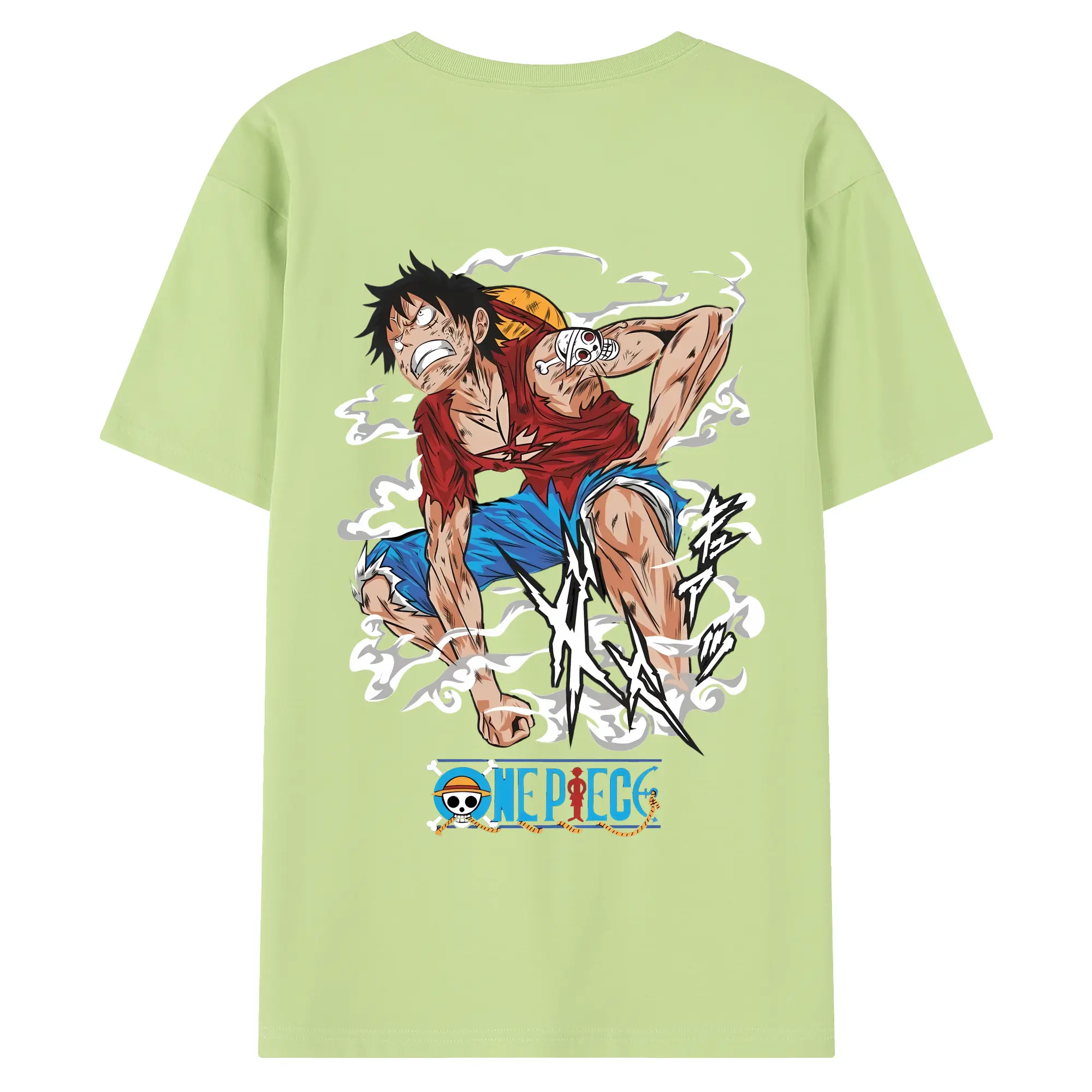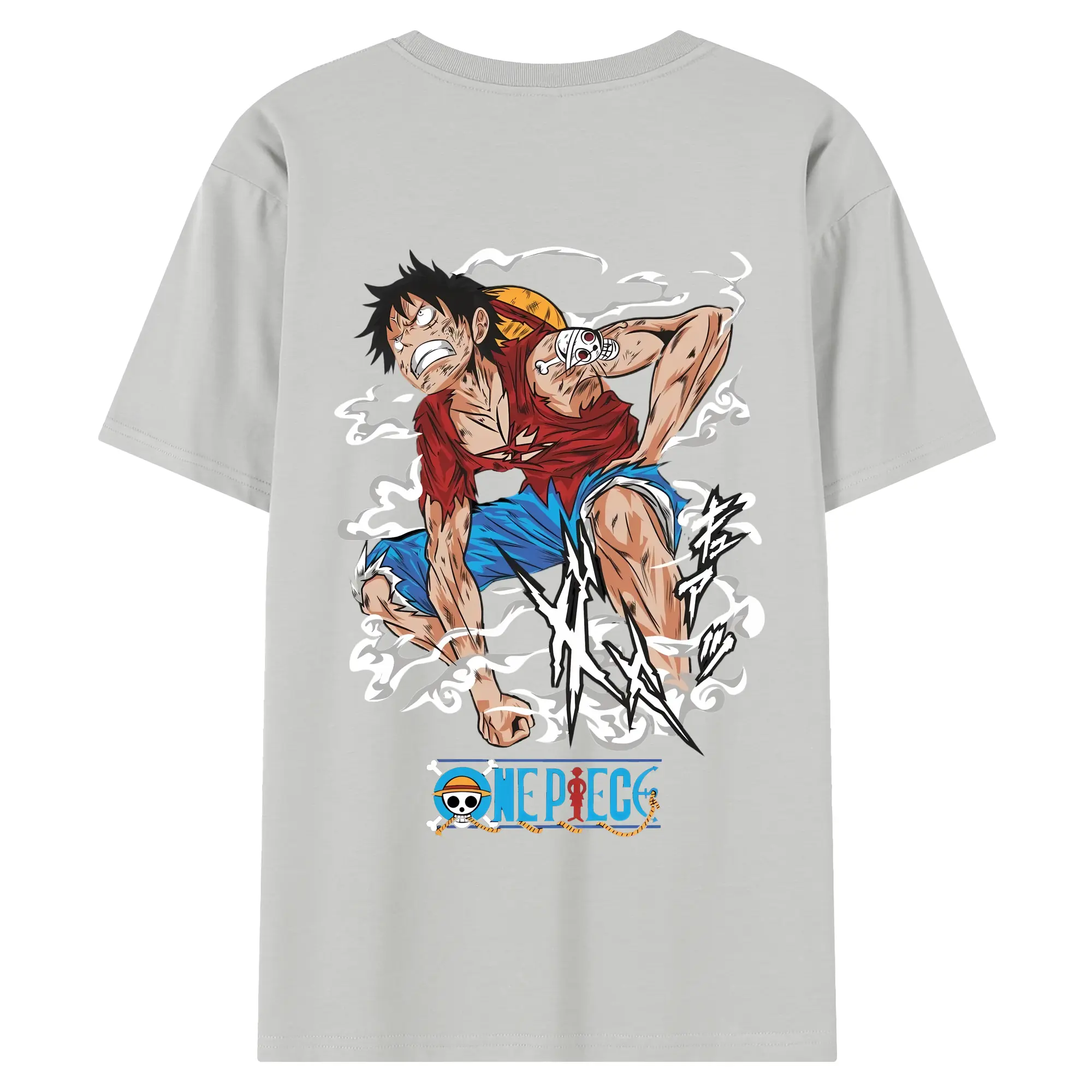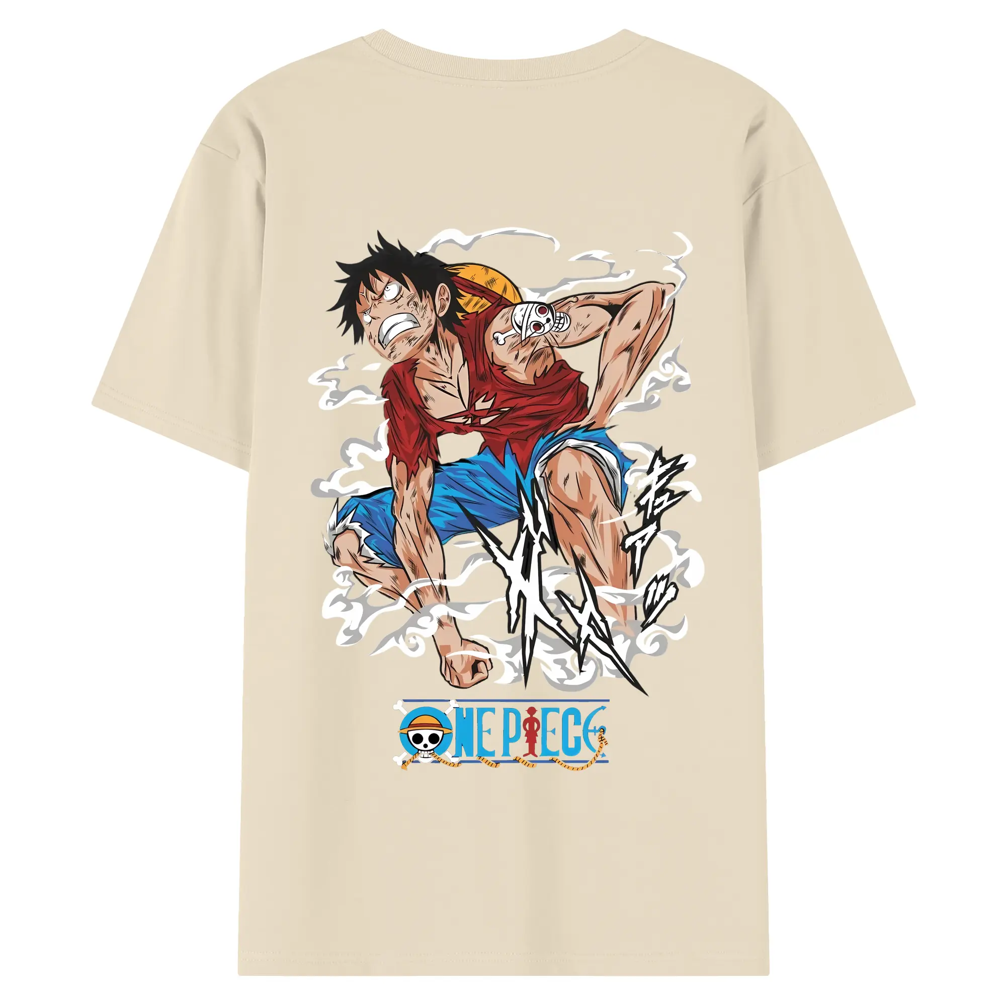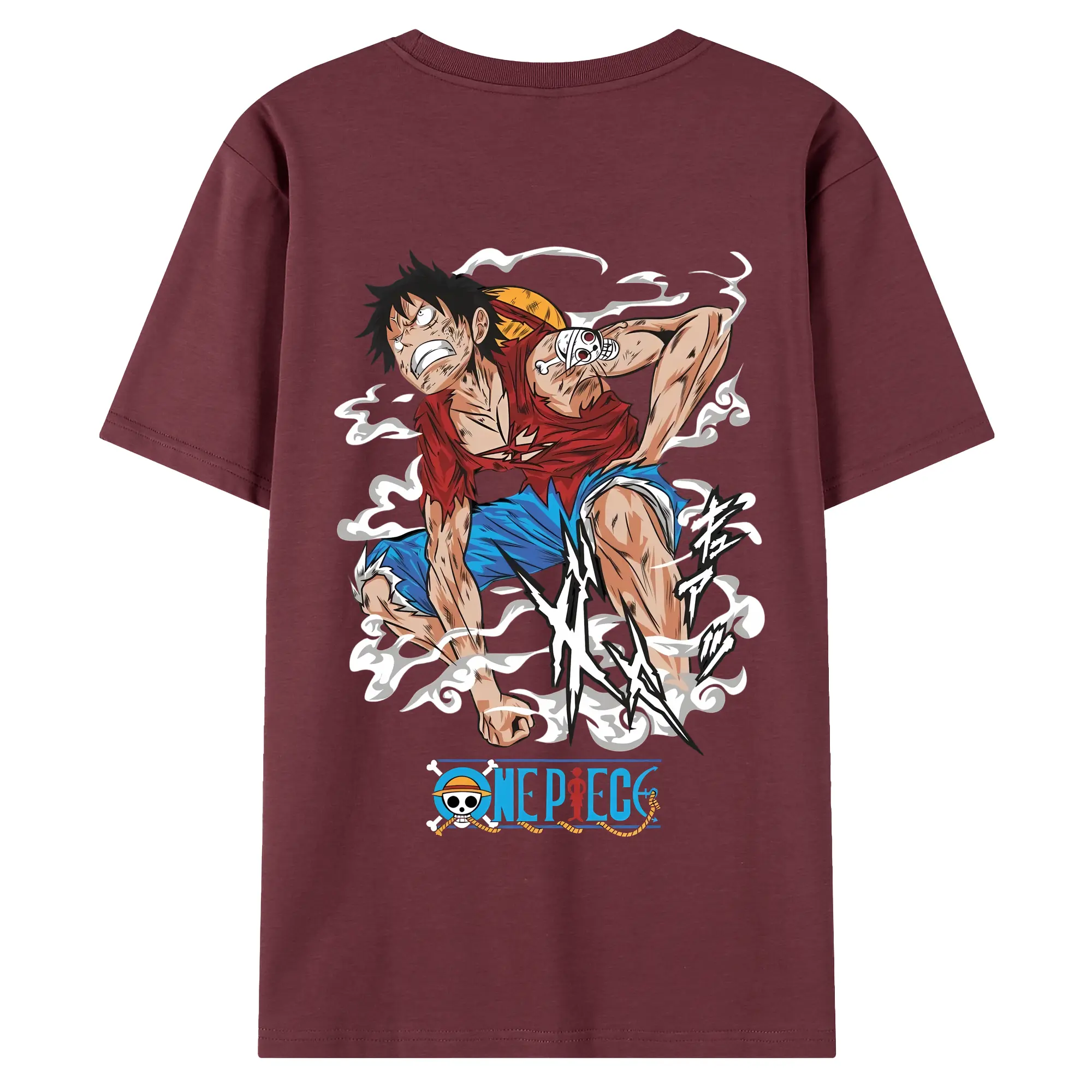 ワンピース グッズ モンキー・D・ルフィ - 綿100% ヴィンテージ風 半袖Tシャツ ・ 背面プリント ・ 柔らか肌触り ・ 通気性 快適 ・ スポーツ カジュアル 外出用
