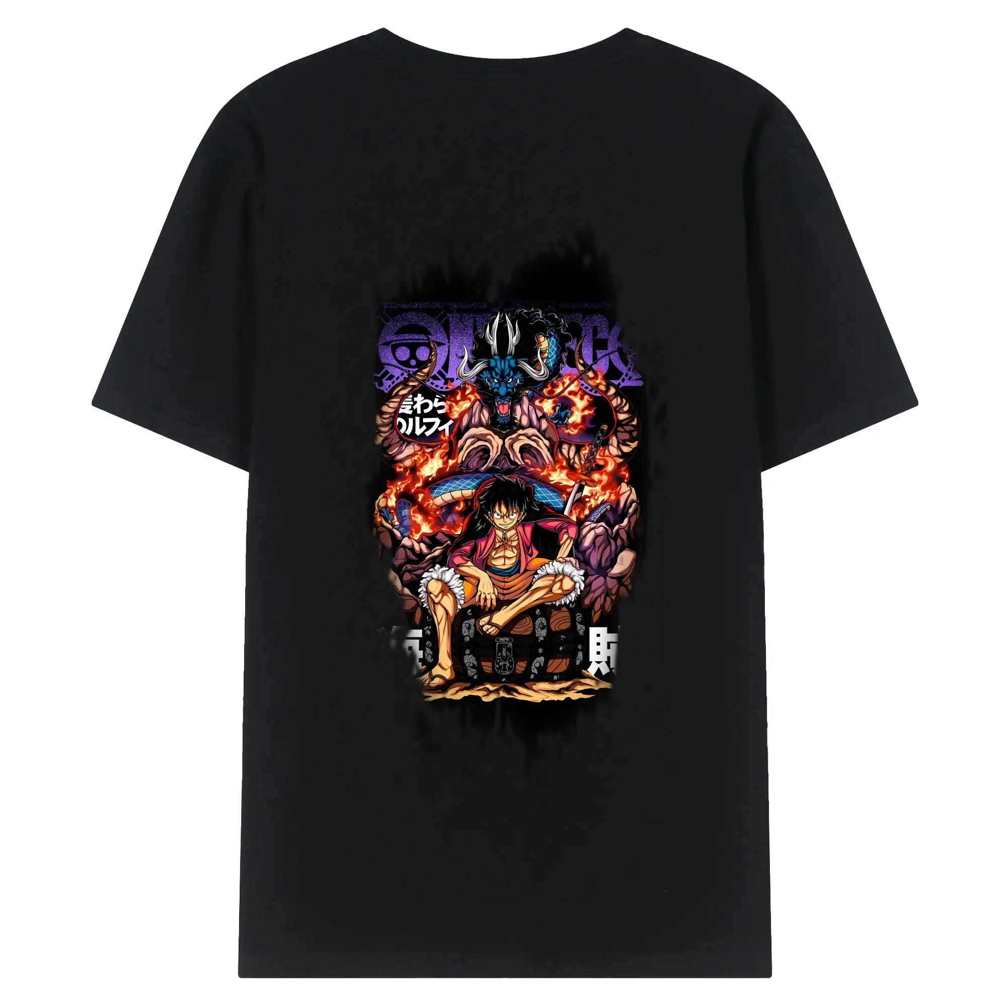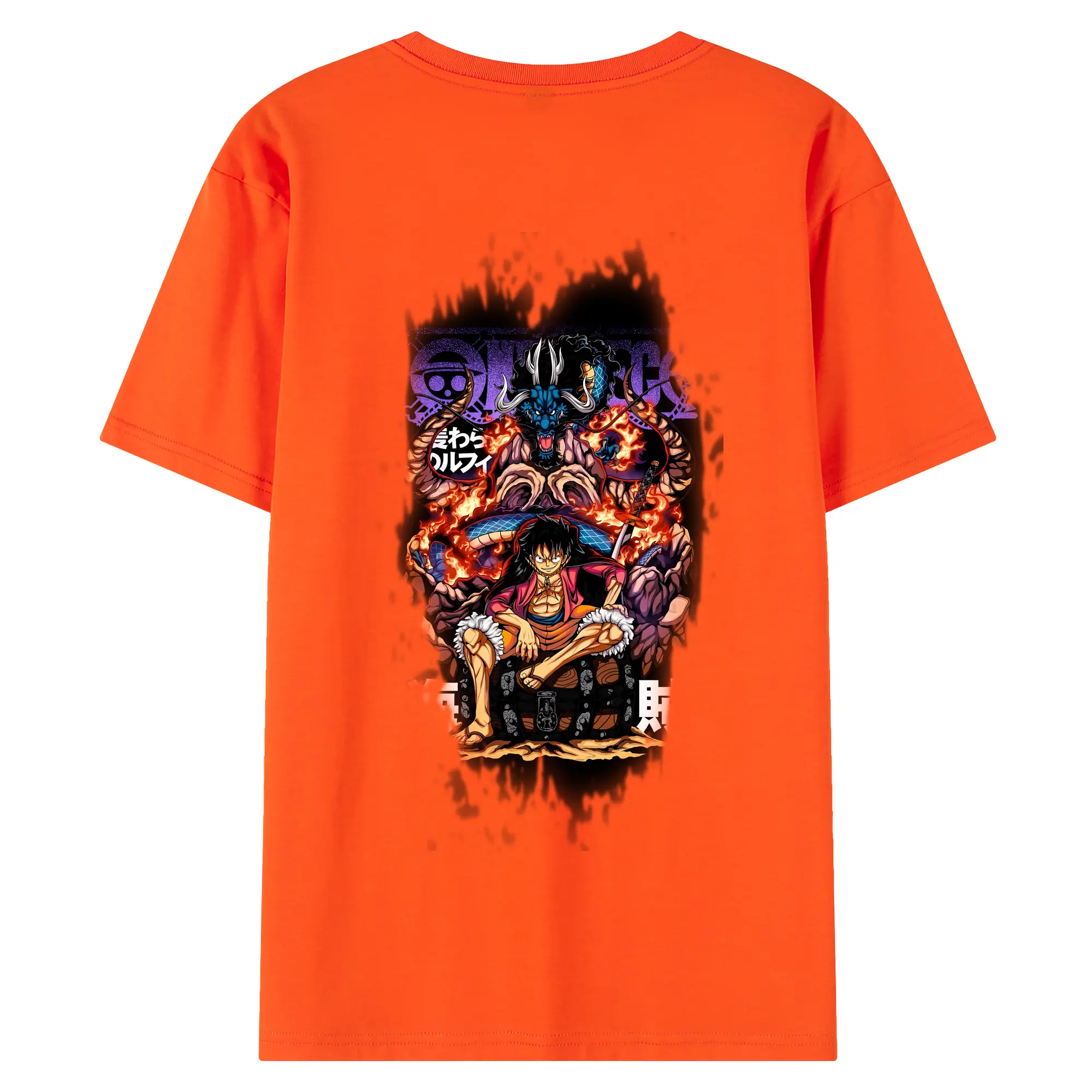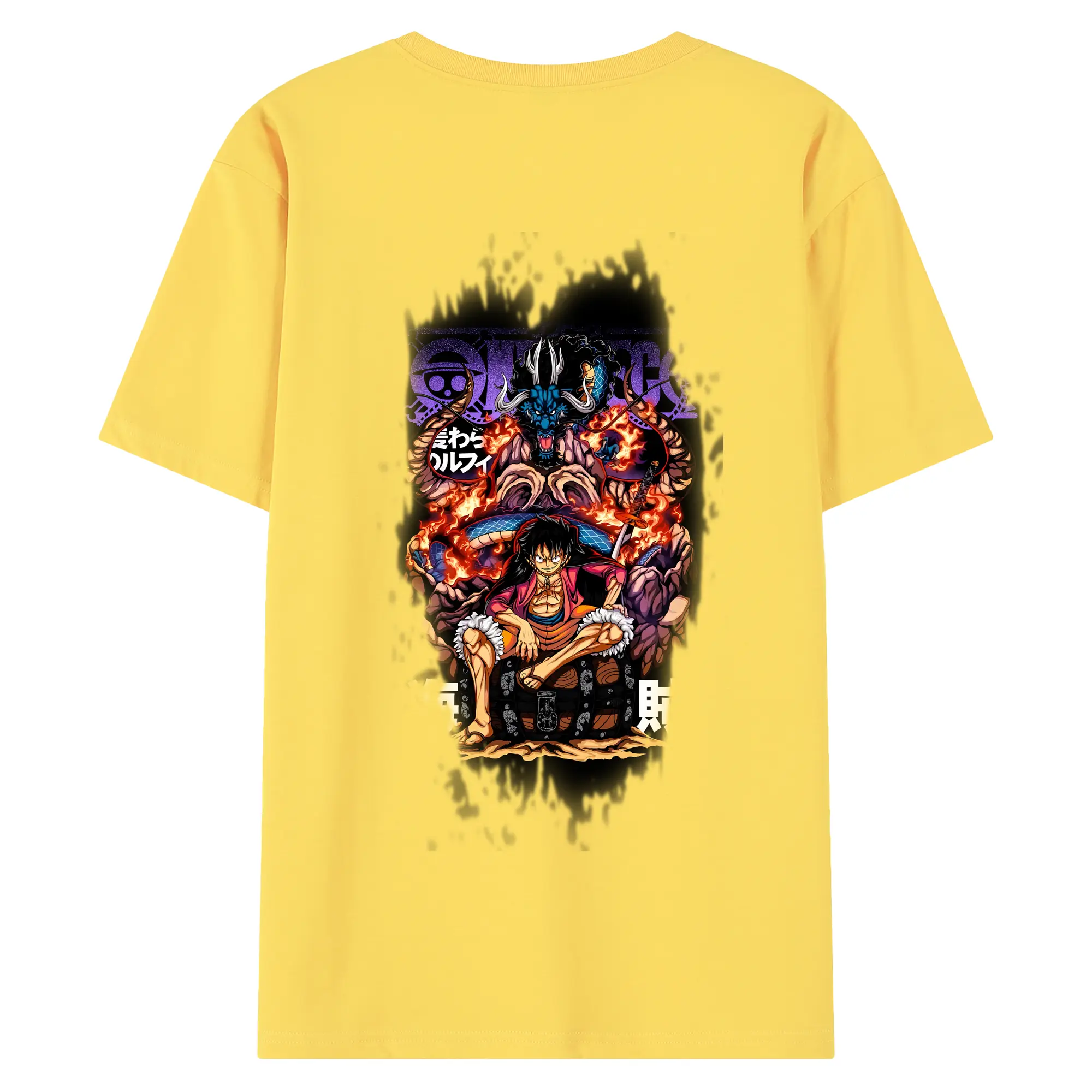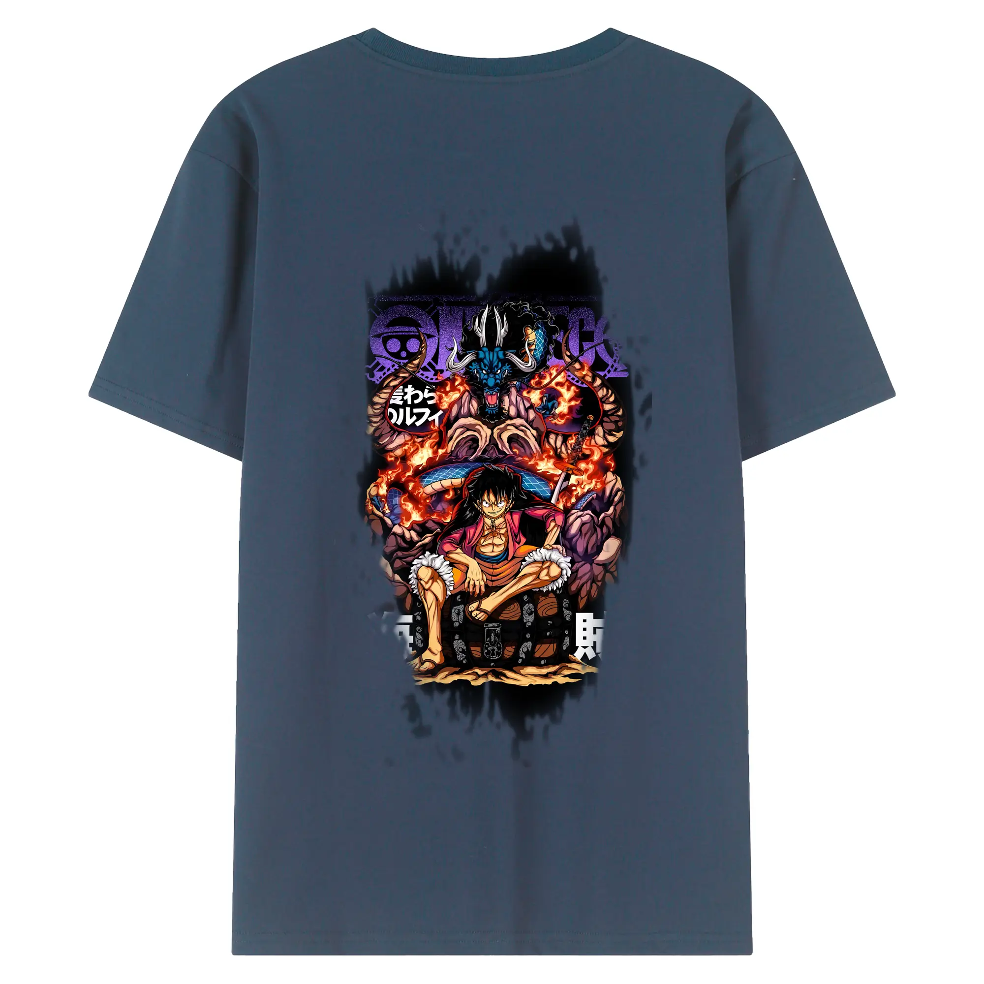 ワンピース グッズ モンキー・D・ルフィ - 綿100% ヴィンテージ風 半袖Tシャツ ・ 背面プリント ・ 柔らか肌触り ・ 通気性 快適 ・ スポーツ カジュアル 外出用