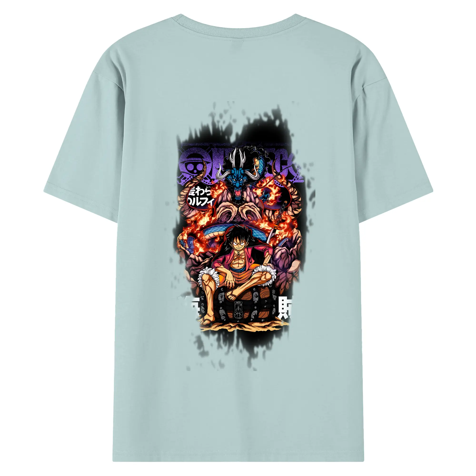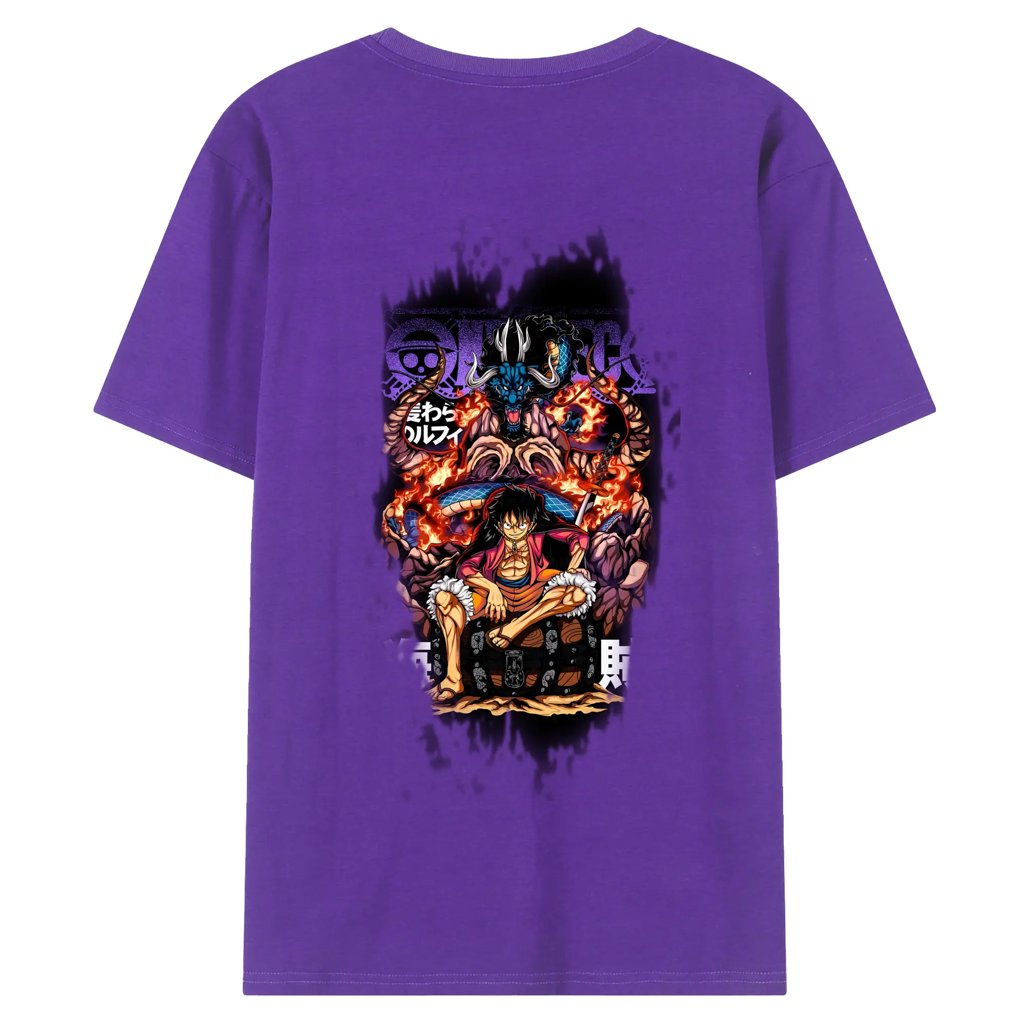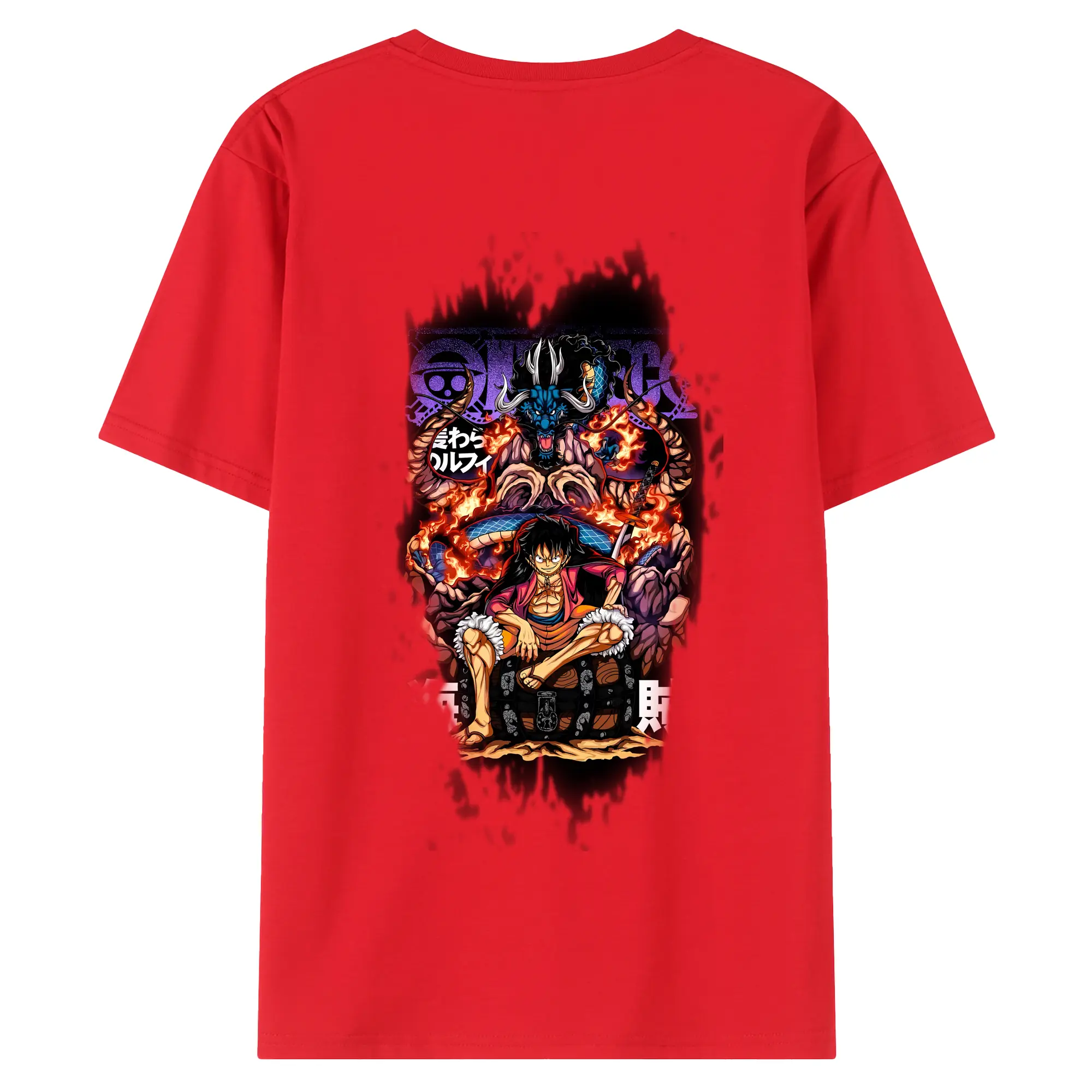 ワンピース グッズ モンキー・D・ルフィ - 綿100% ヴィンテージ風 半袖Tシャツ ・ 背面プリント ・ 柔らか肌触り ・ 通気性 快適 ・ スポーツ カジュアル 外出用