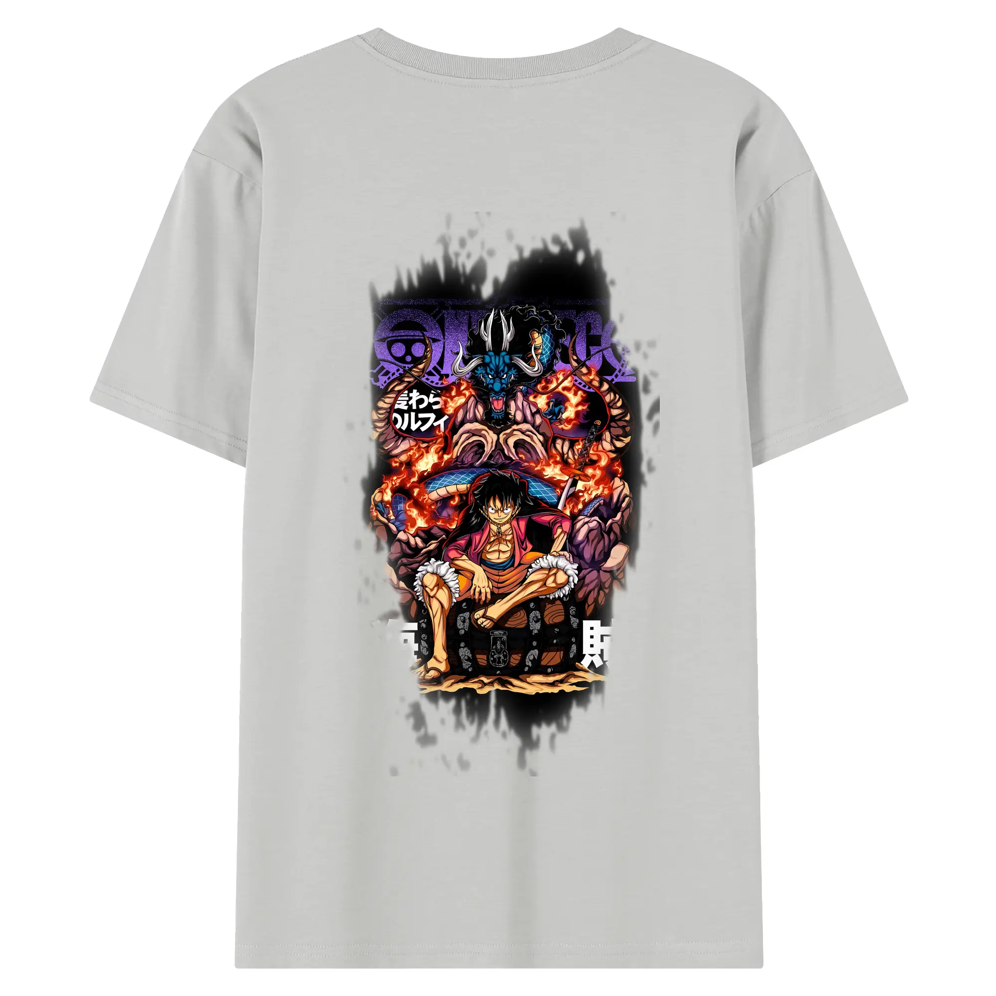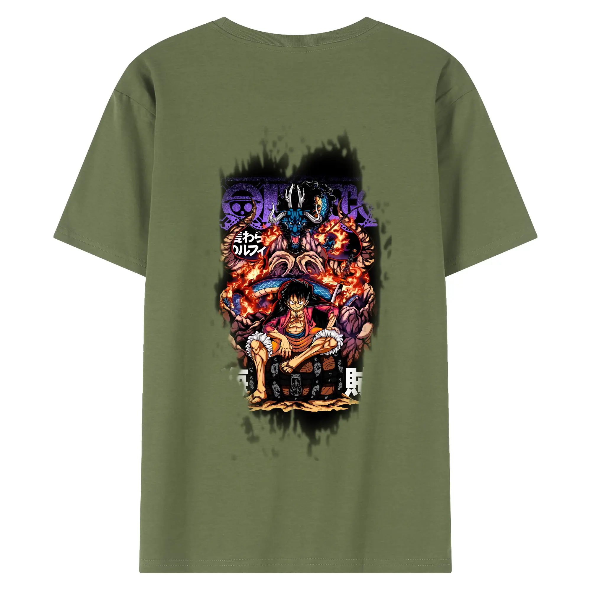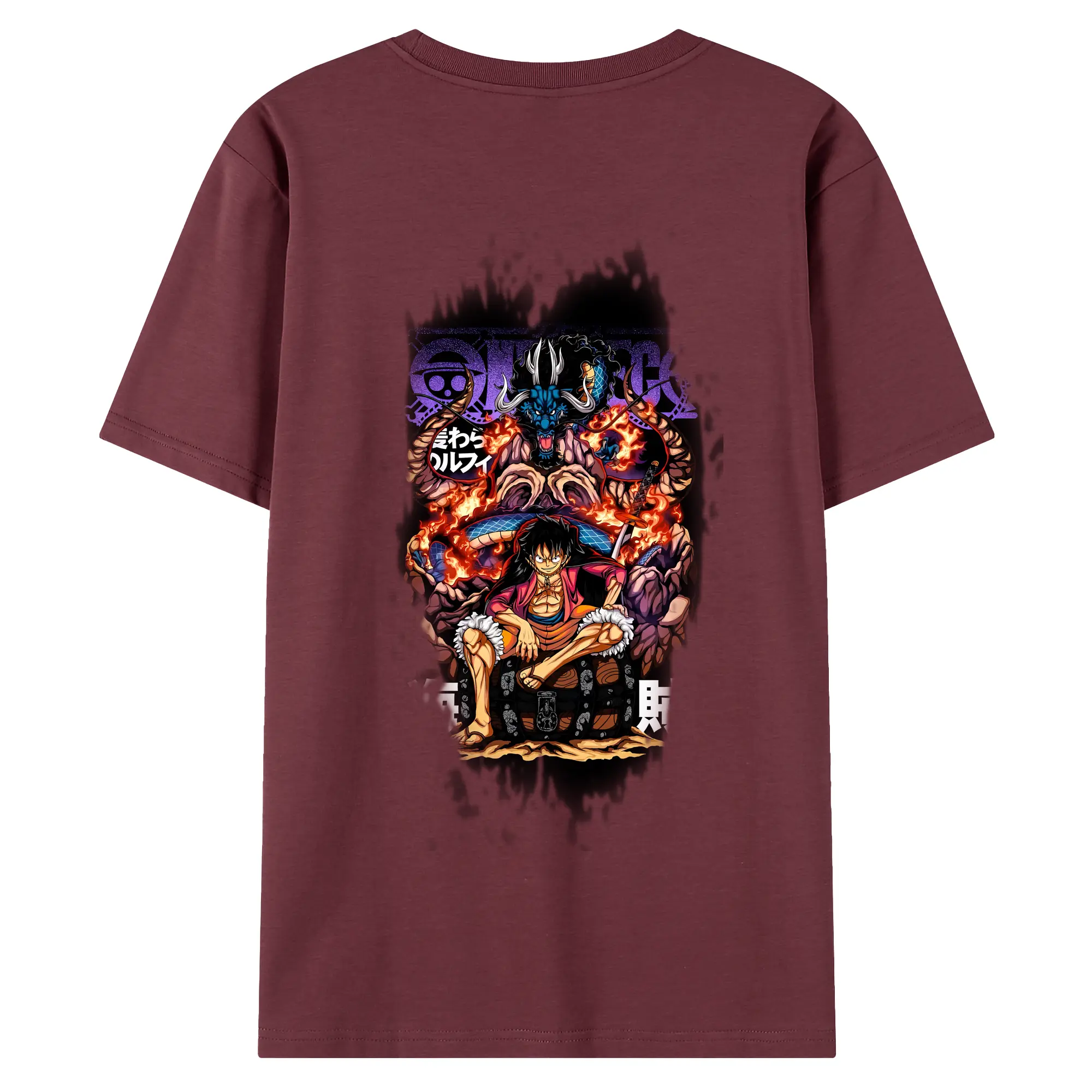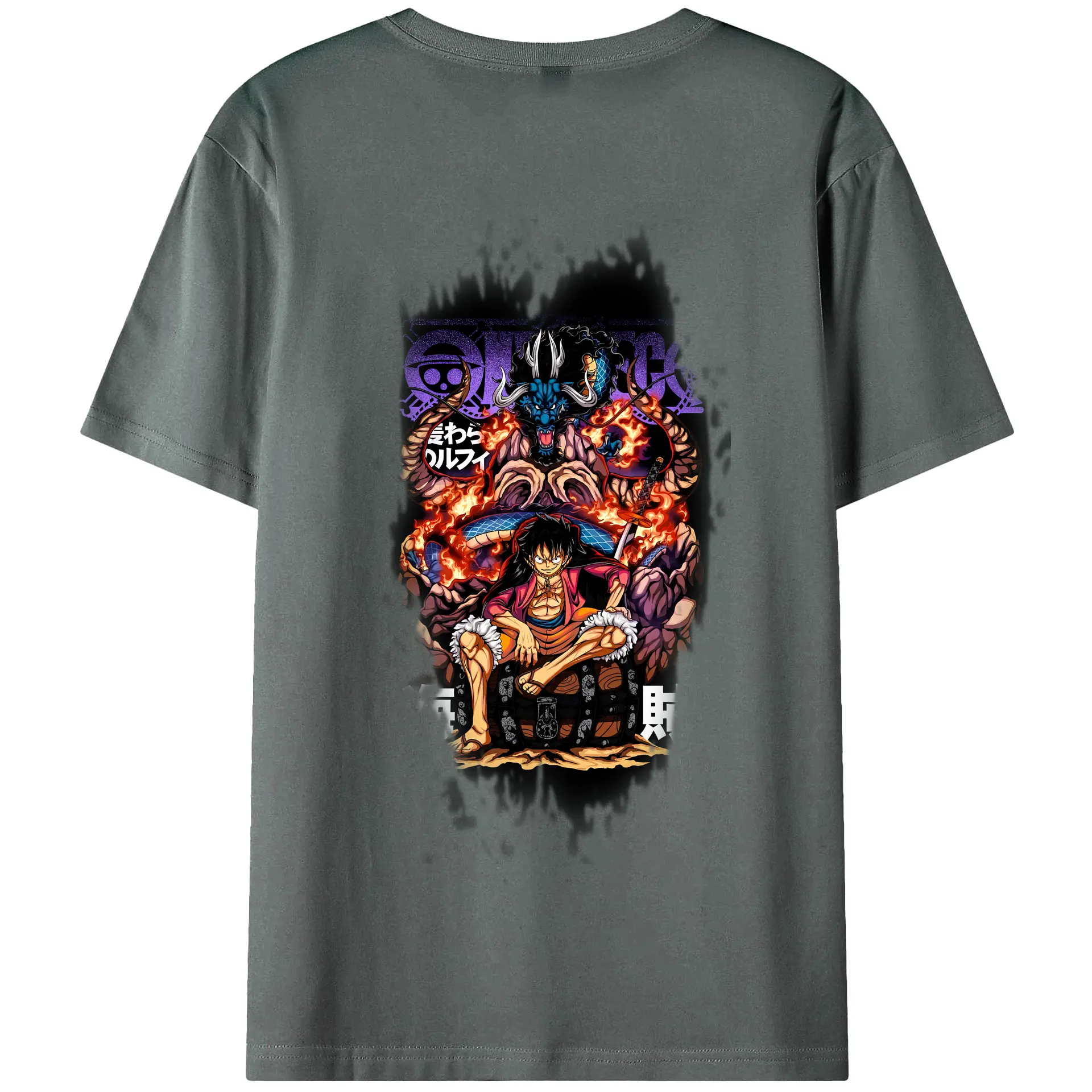 ワンピース グッズ モンキー・D・ルフィ - 綿100% ヴィンテージ風 半袖Tシャツ ・ 背面プリント ・ 柔らか肌触り ・ 通気性 快適 ・ スポーツ カジュアル 外出用