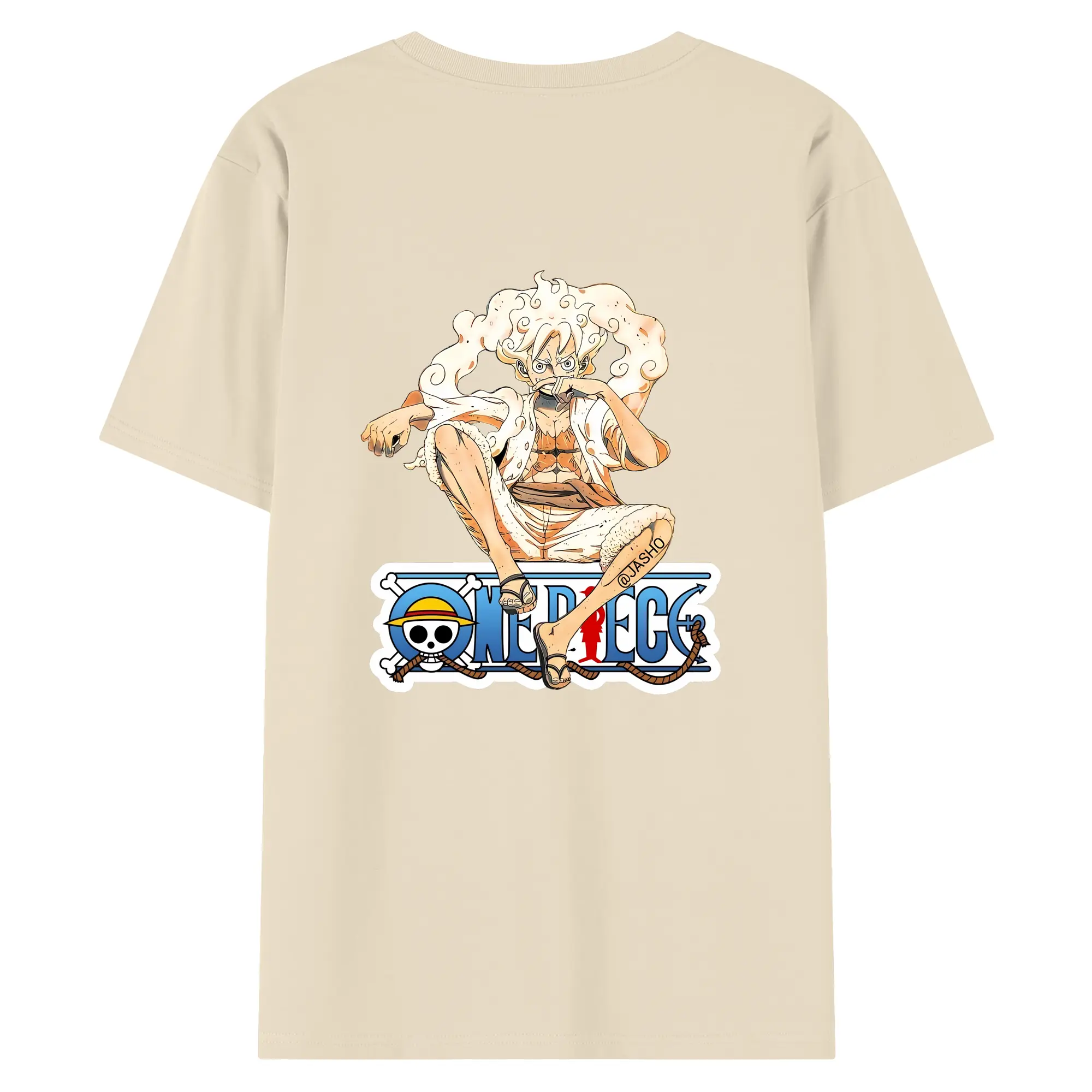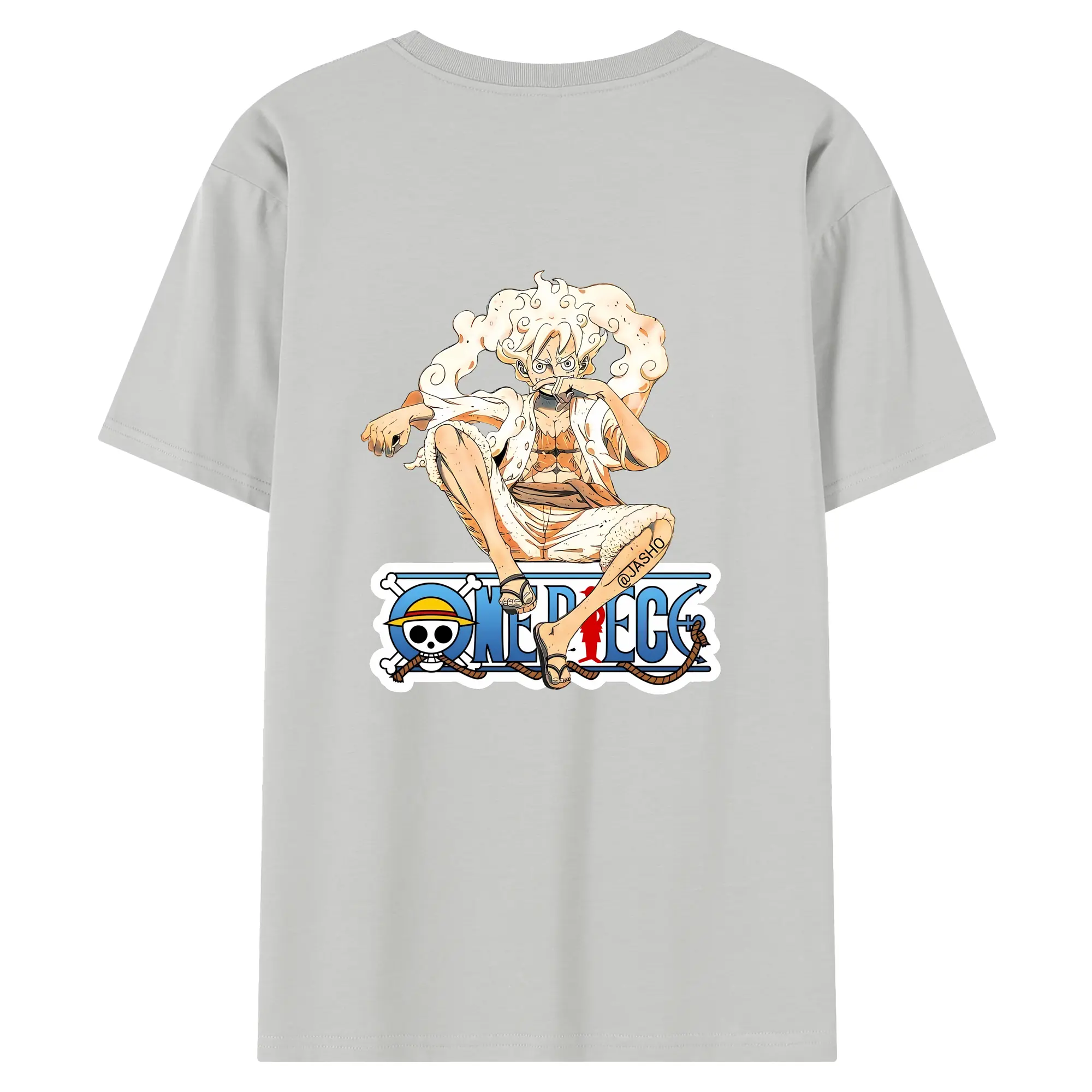 ワンピース グッズ モンキー・D・ルフィ - 綿100% ヴィンテージ風 半袖Tシャツ ・ 背面プリント ・ 柔らか肌触り ・ 通気性 快適 ・ スポーツ カジュアル 外出用