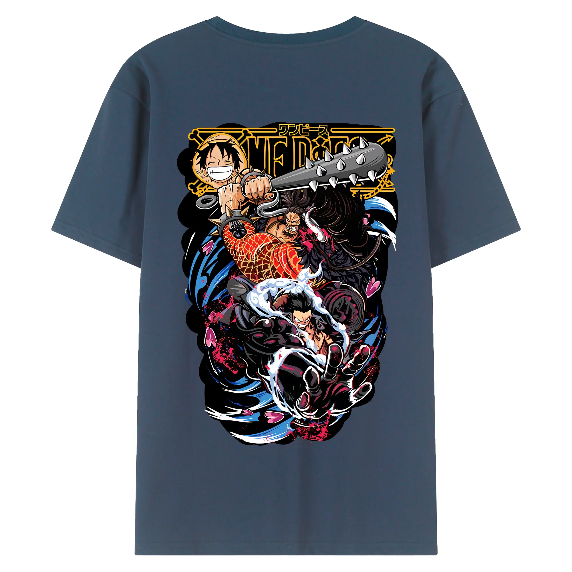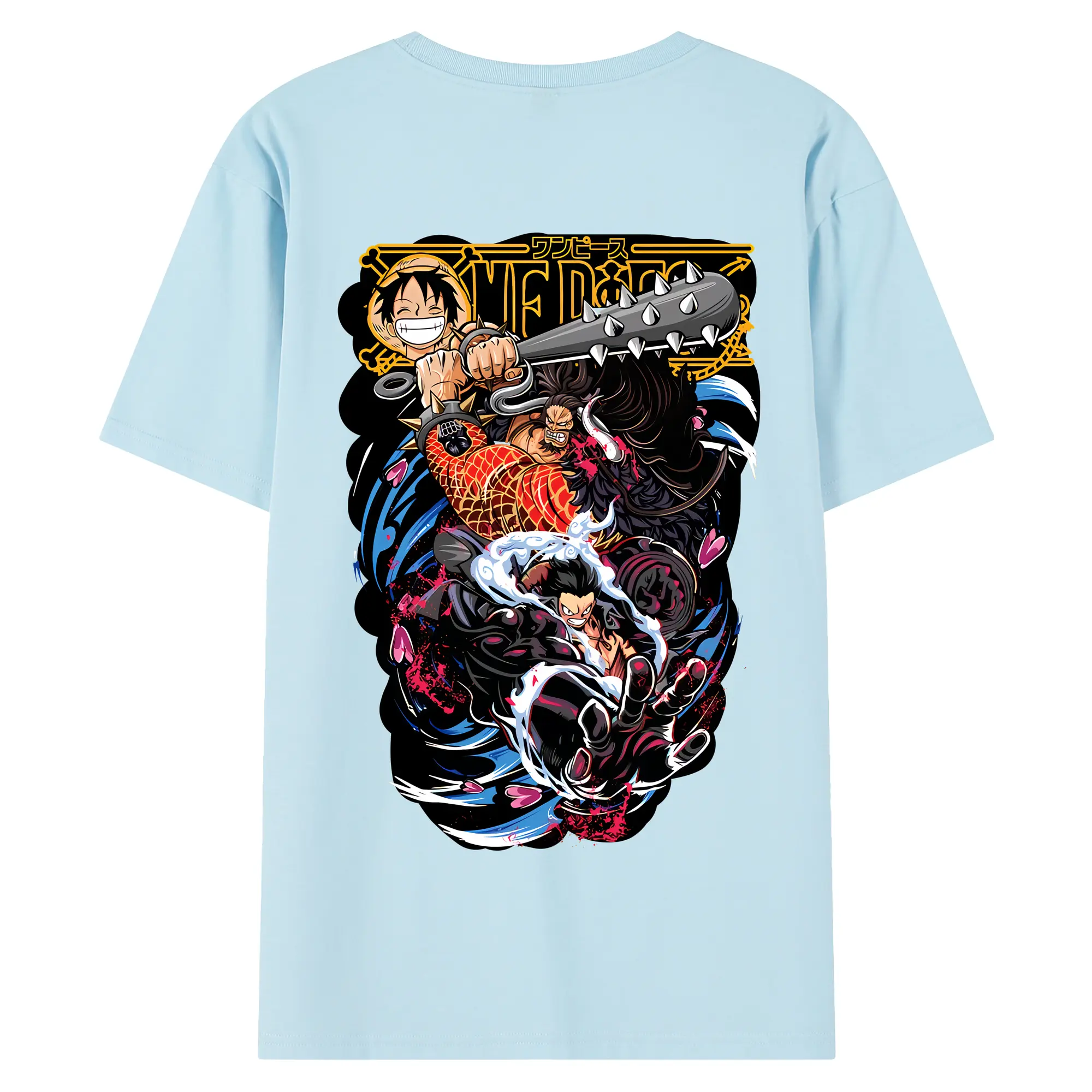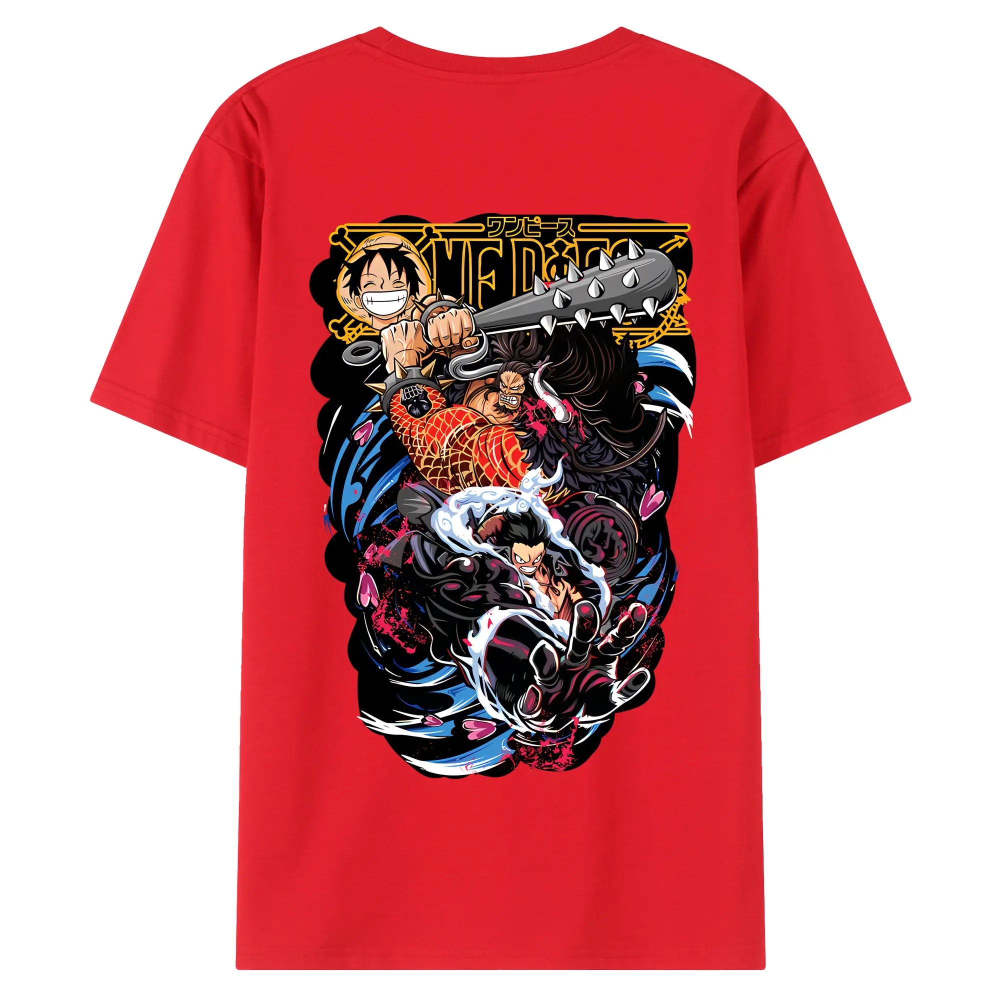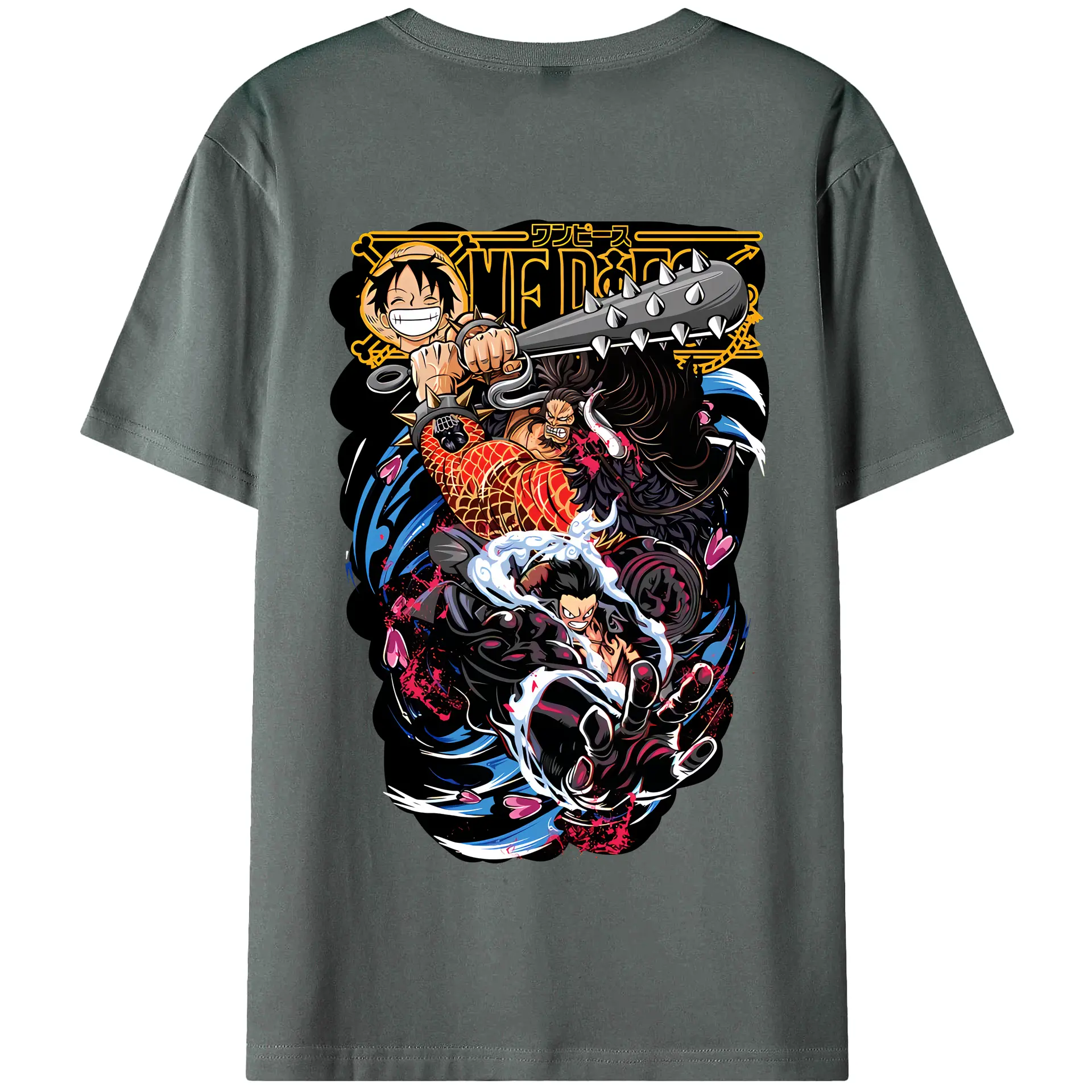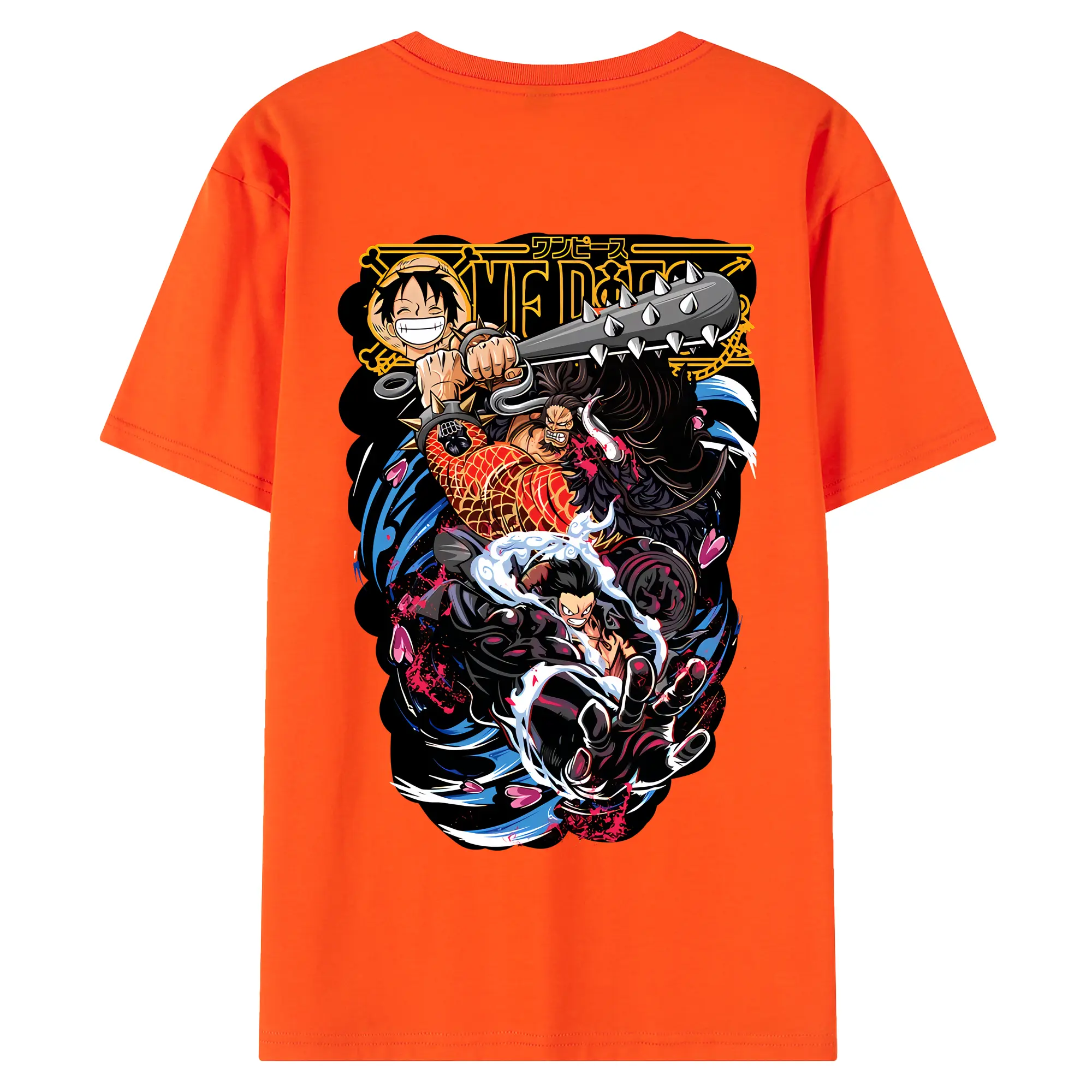 ワンピース グッズ モンキー・D・ルフィ - 綿100% ヴィンテージ風 半袖Tシャツ ・ 背面プリント ・ 柔らか肌触り ・ 通気性 快適 ・ スポーツ カジュアル 外出用