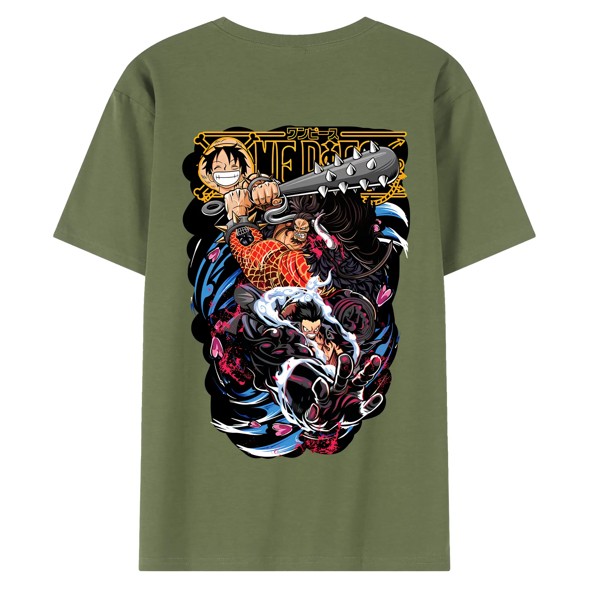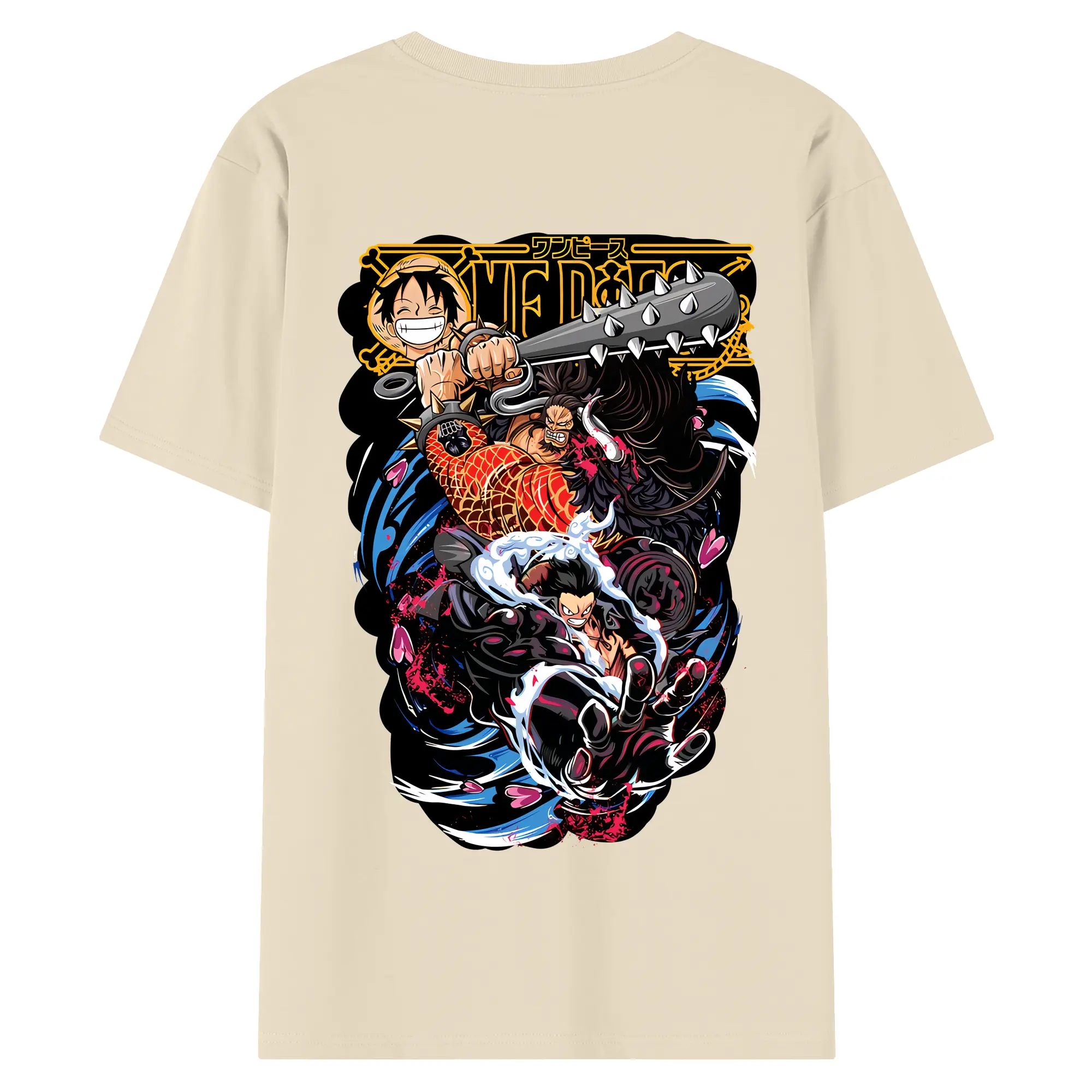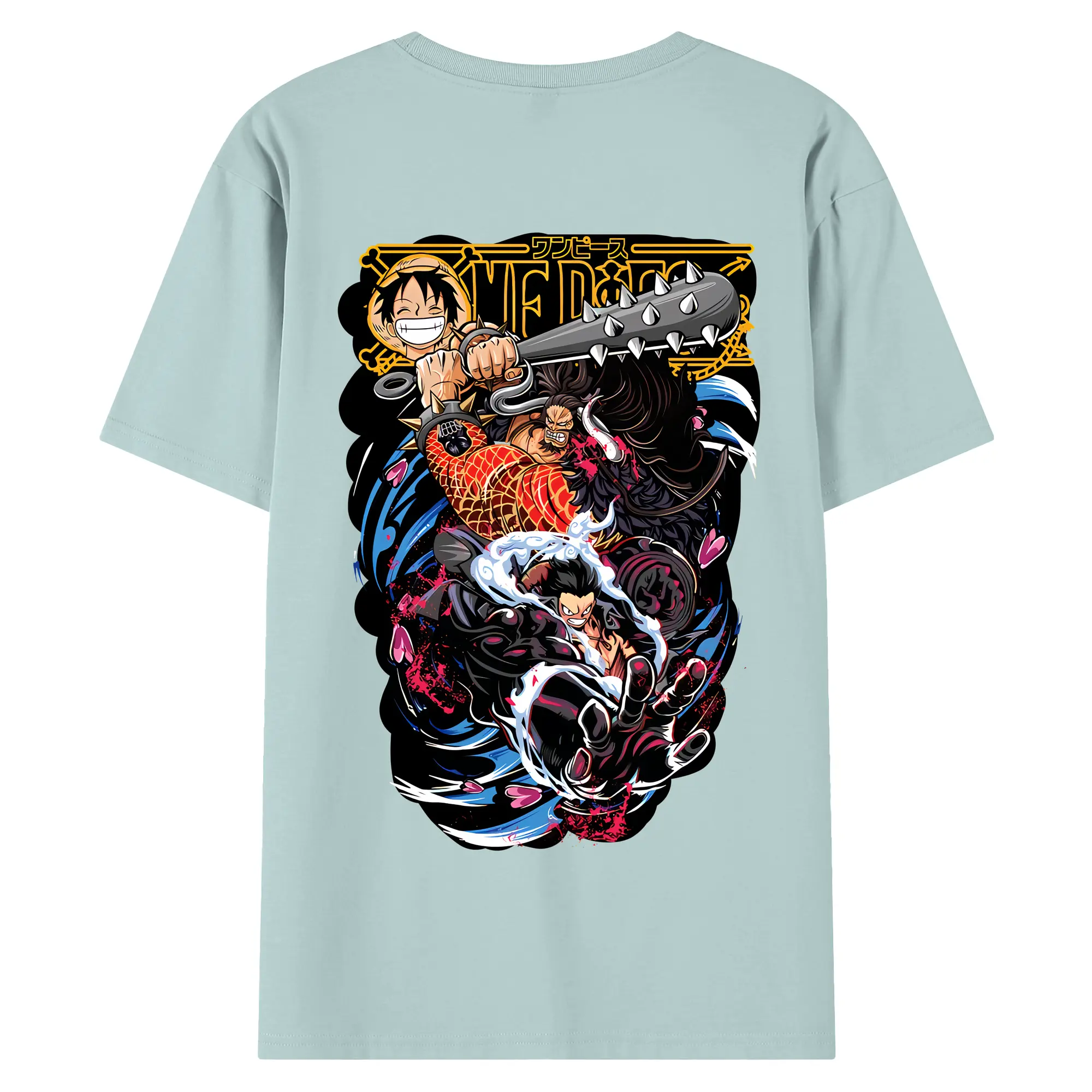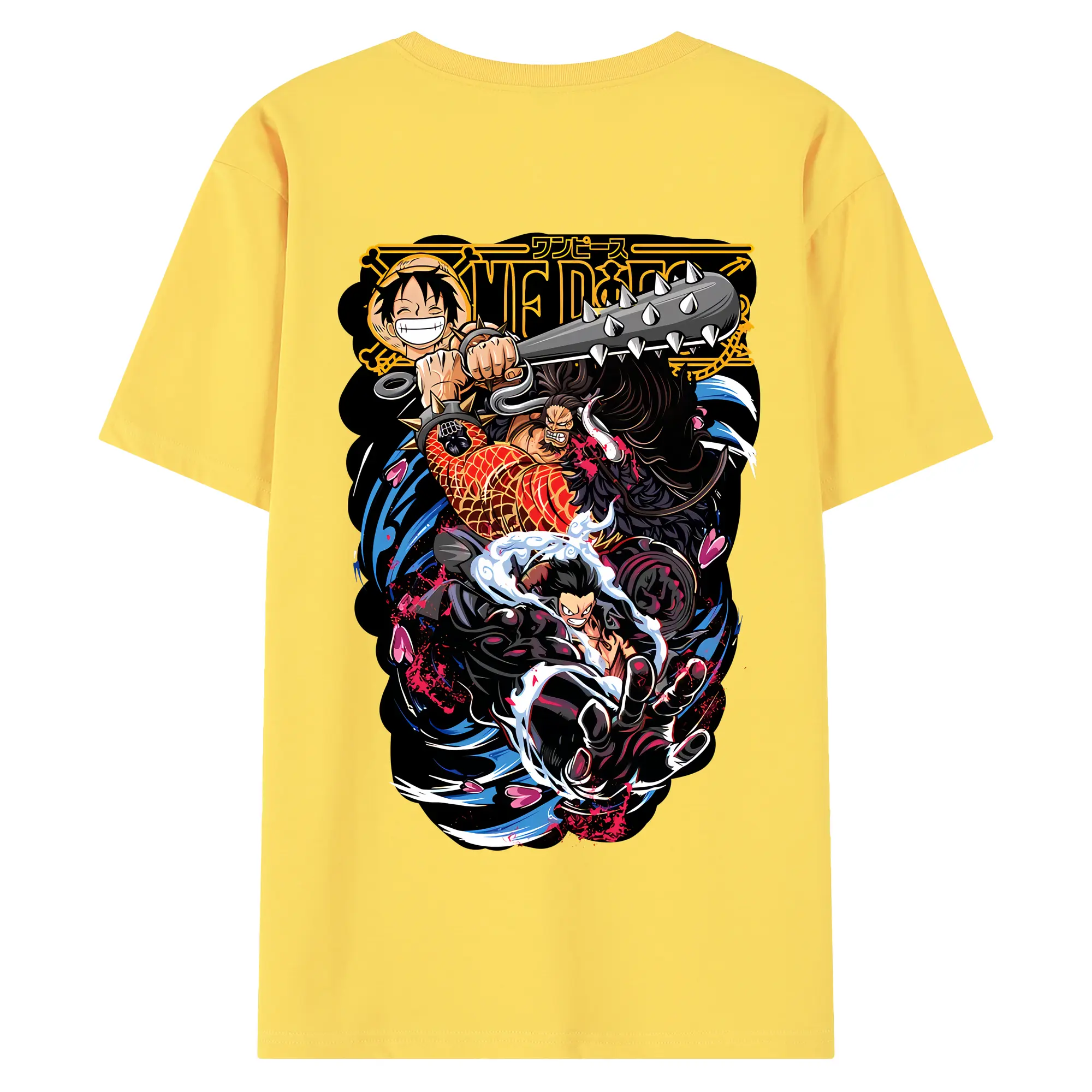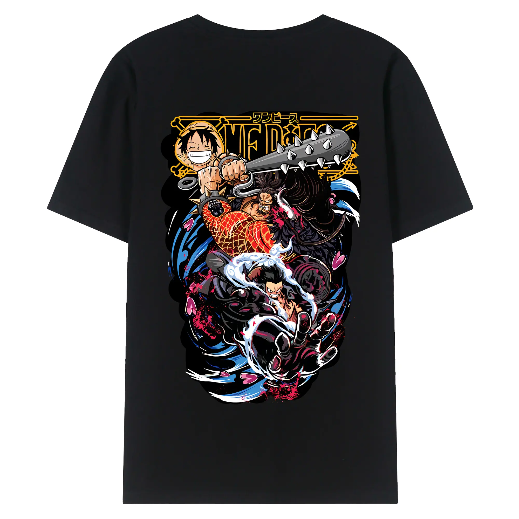 ワンピース グッズ モンキー・D・ルフィ - 綿100% ヴィンテージ風 半袖Tシャツ ・ 背面プリント ・ 柔らか肌触り ・ 通気性 快適 ・ スポーツ カジュアル 外出用