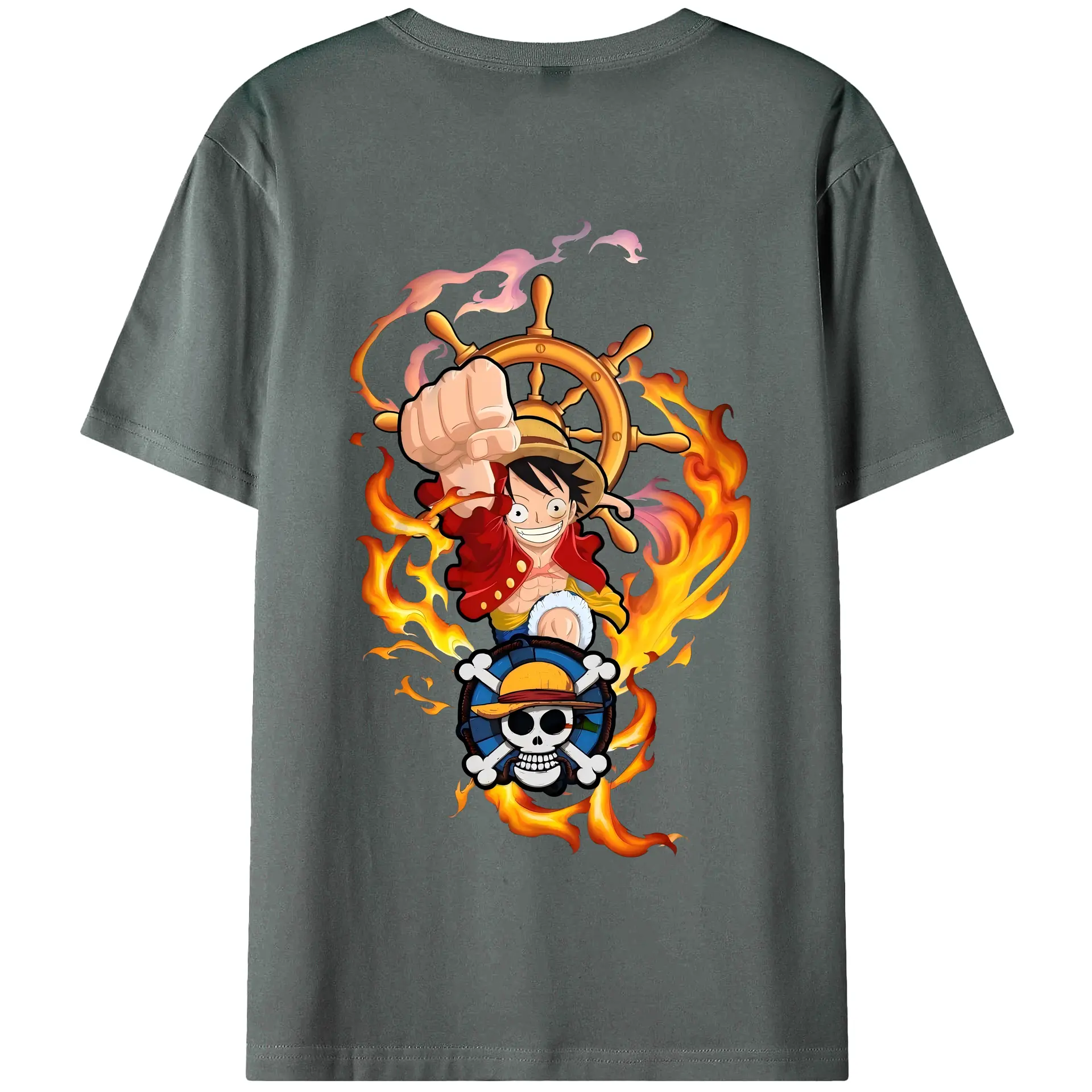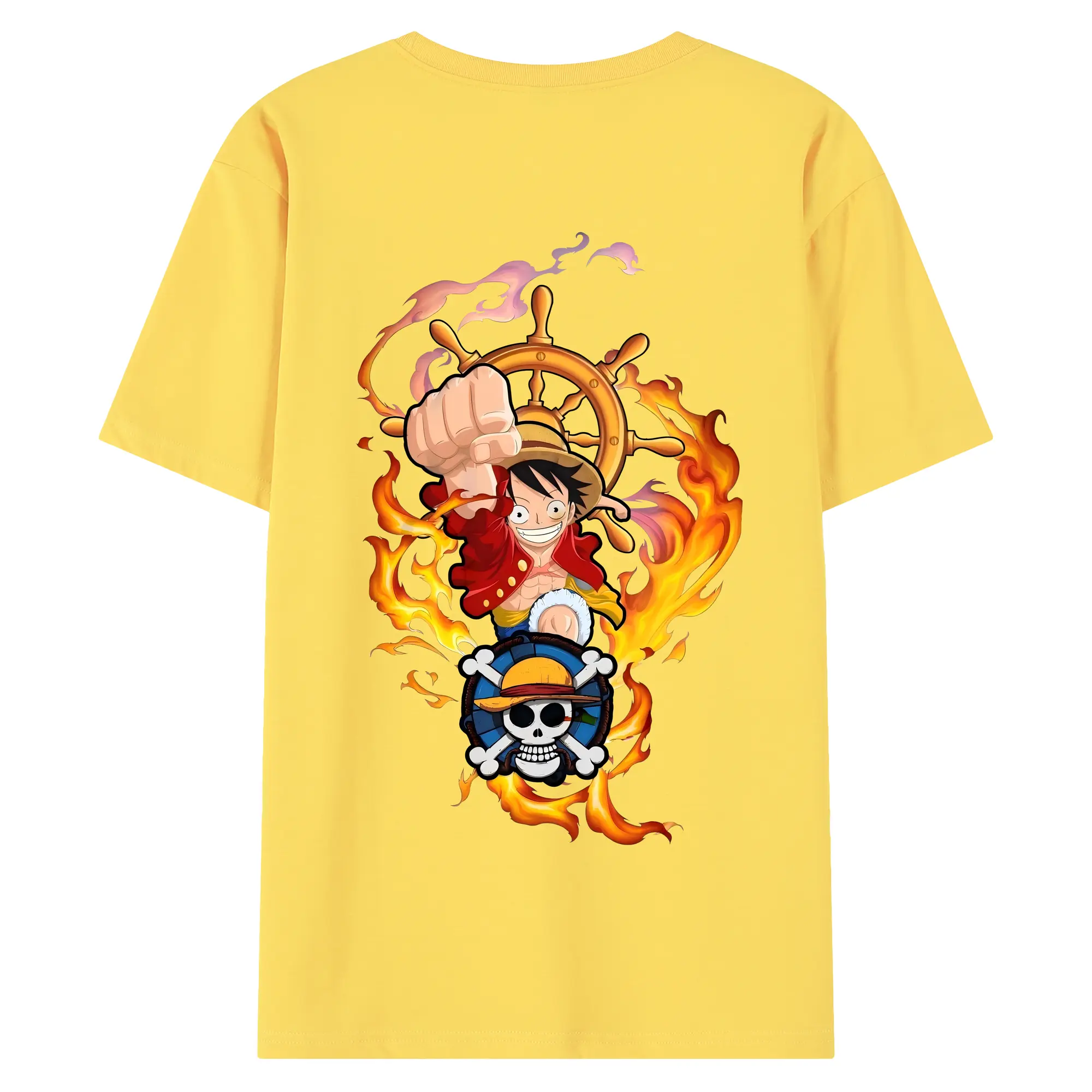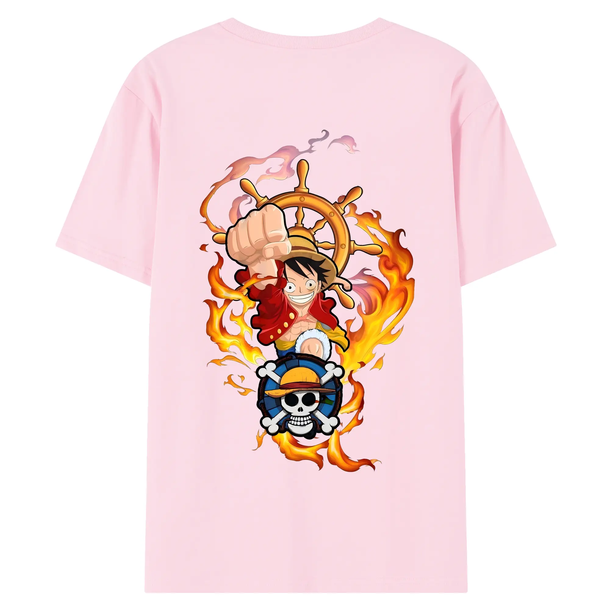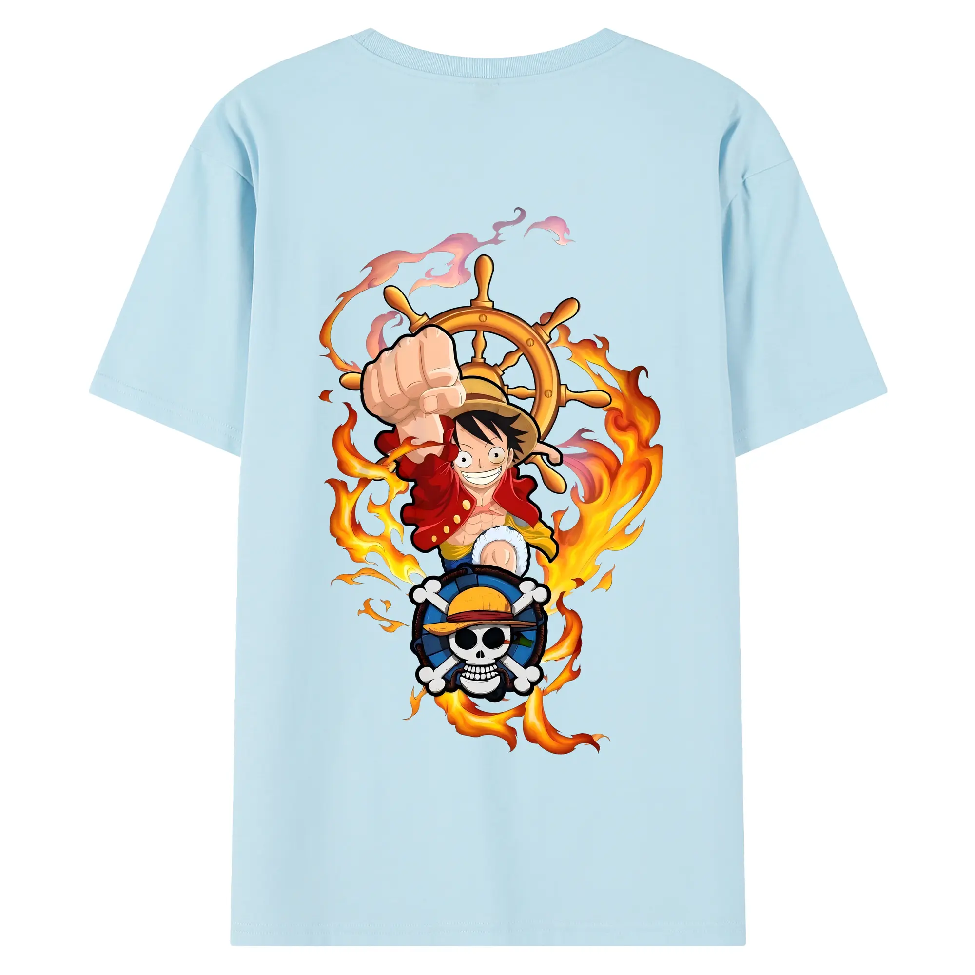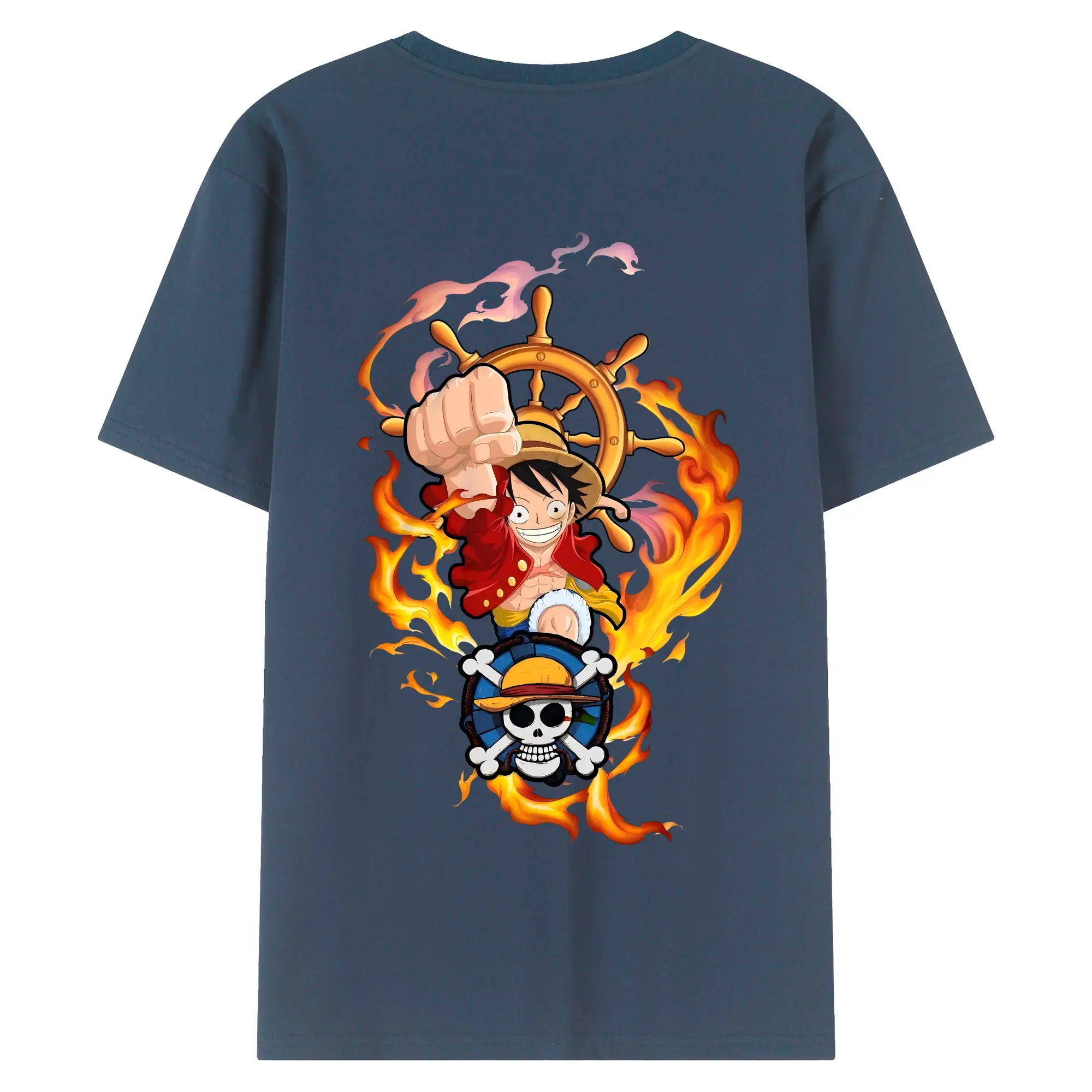 ワンピース グッズ モンキー・D・ルフィ - 綿100% 半袖Tシャツ ・ フロントプリント ・ 快適 通気性 ・ 日常使い 散歩 スポーツ用