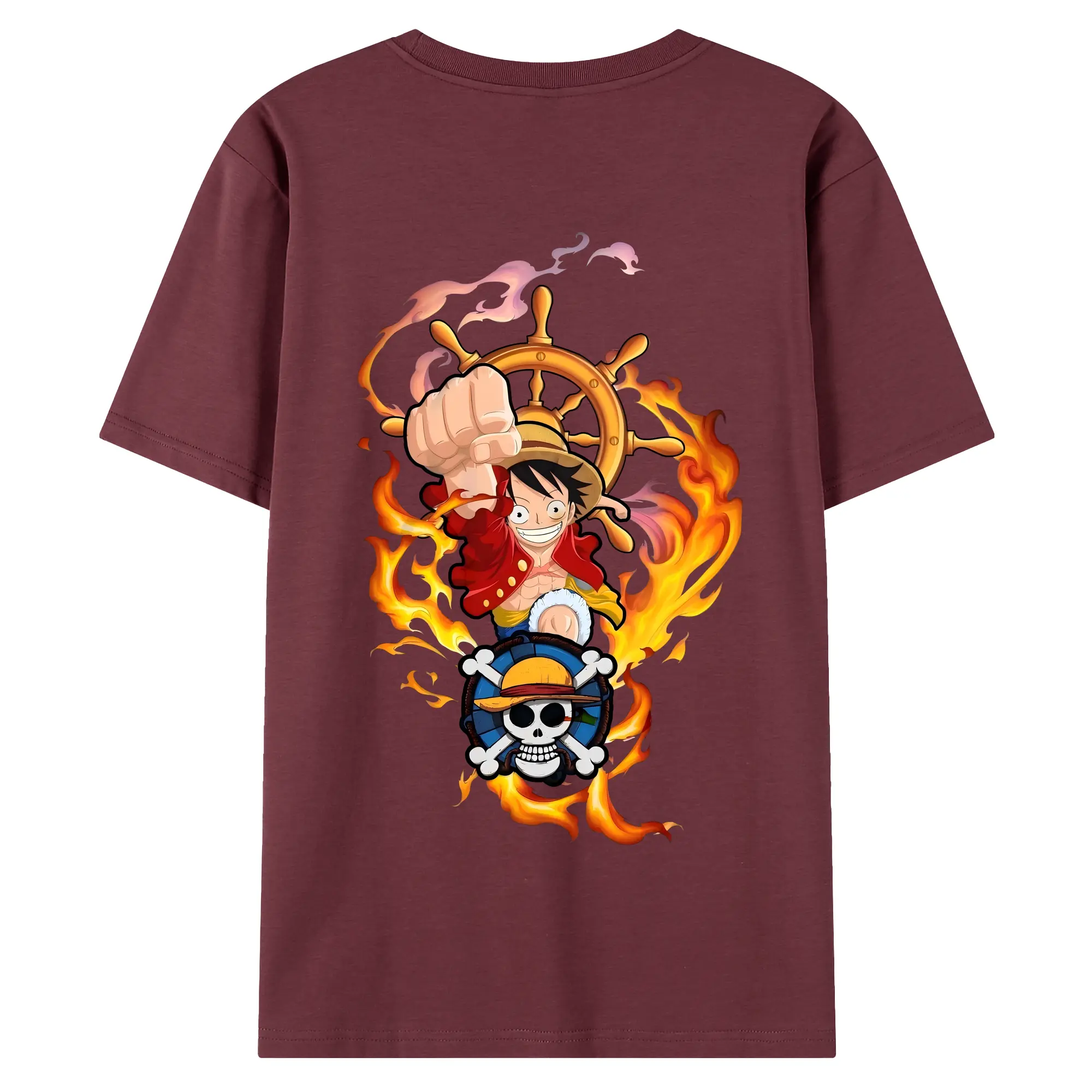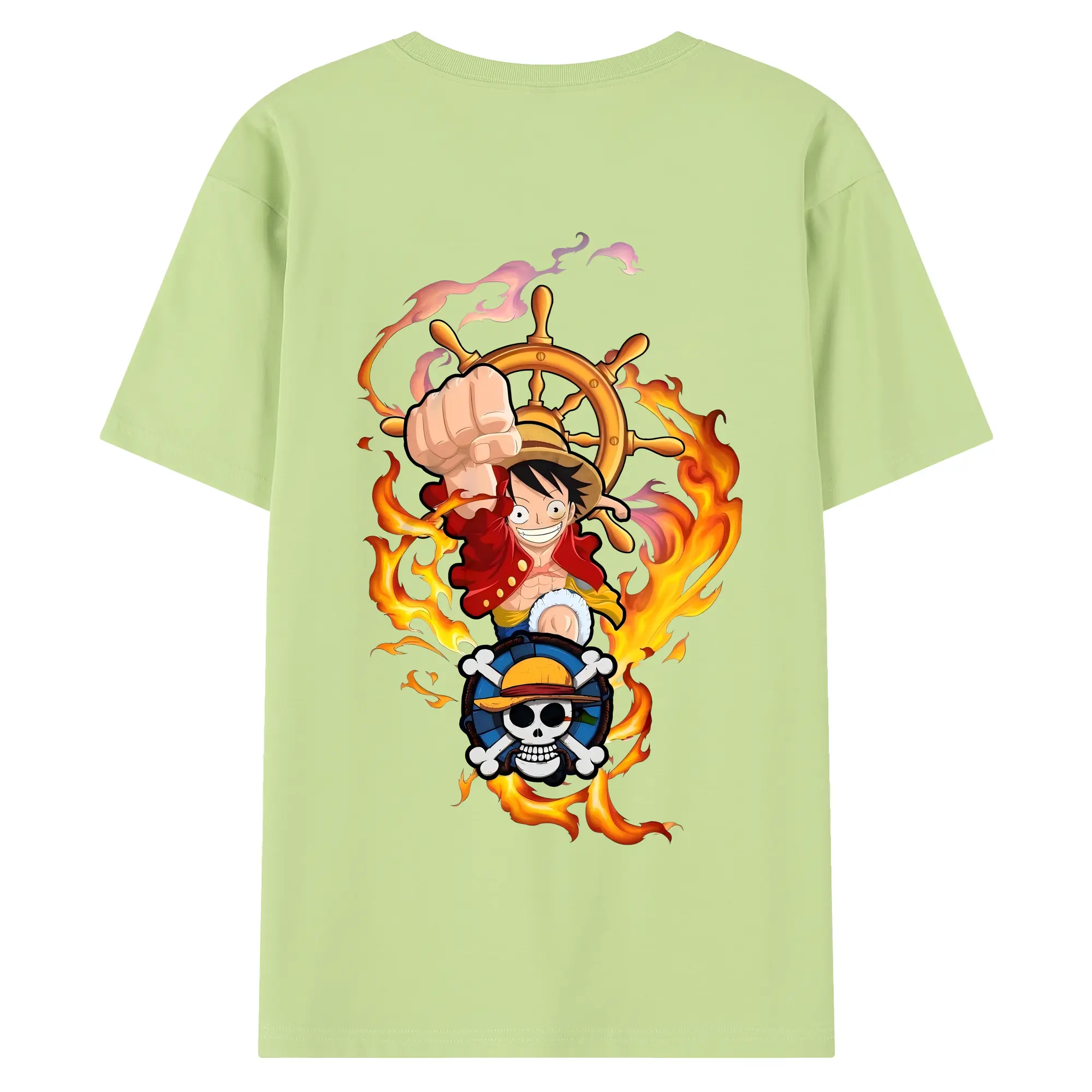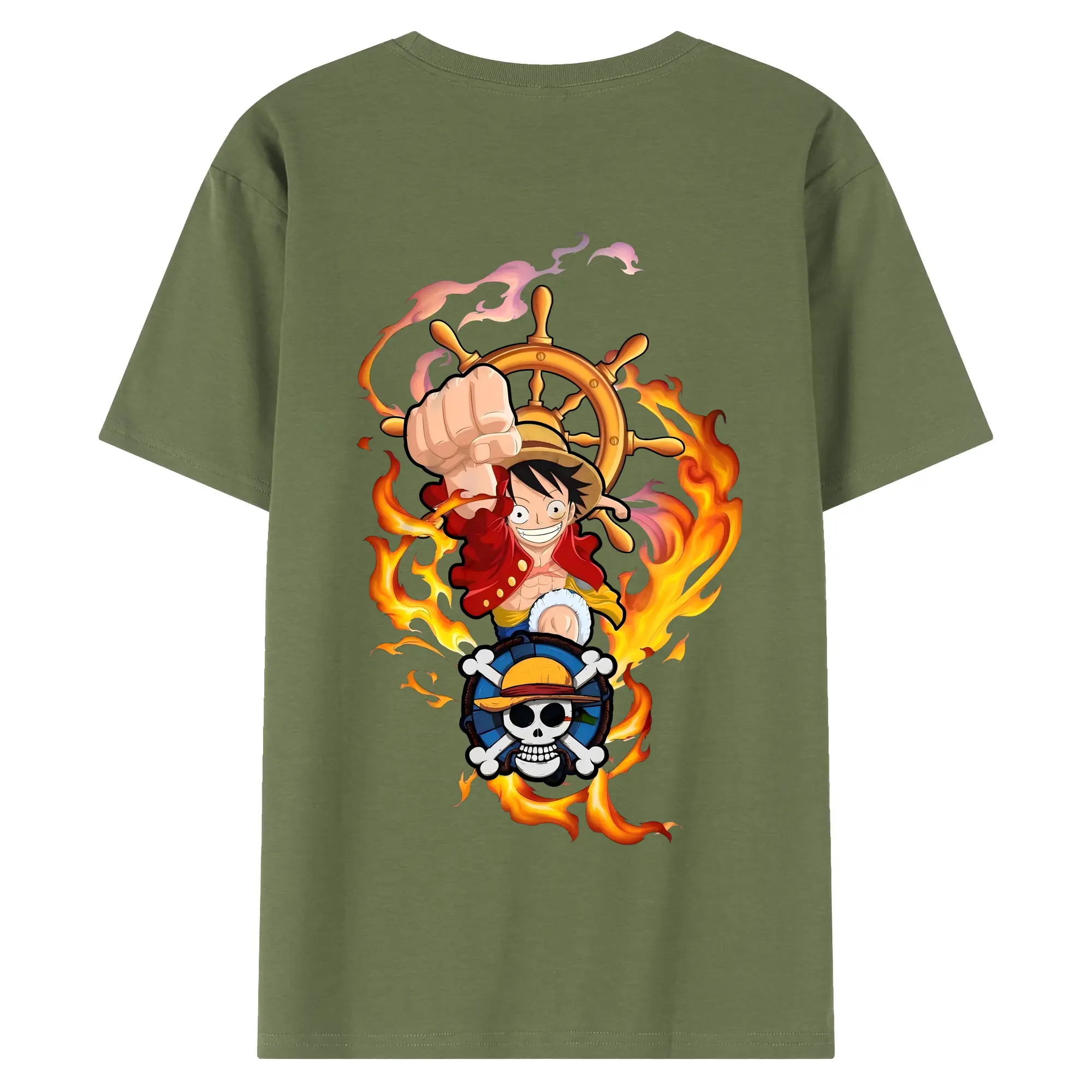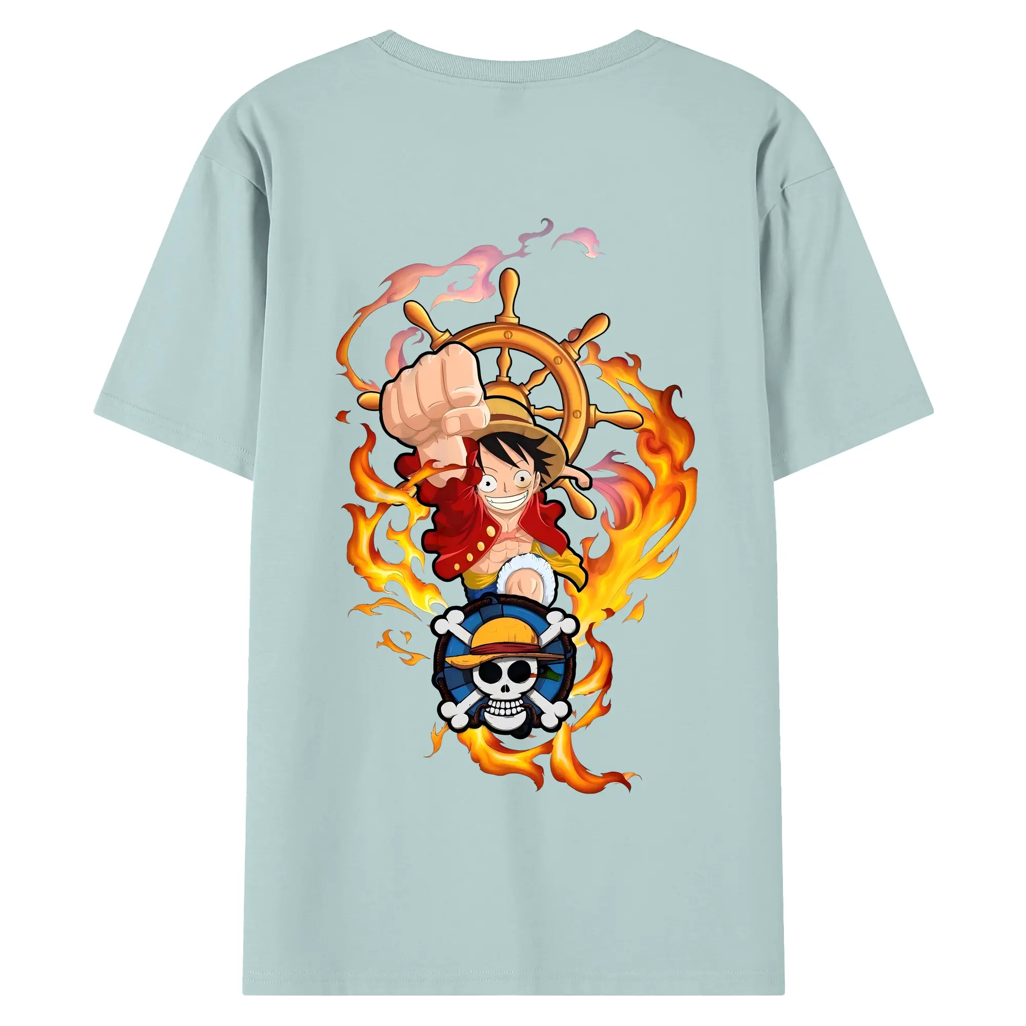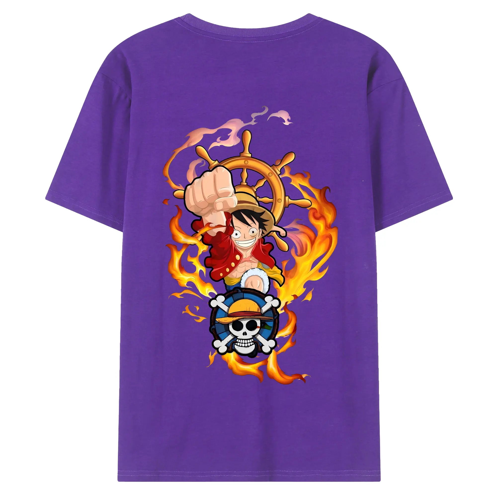 ワンピース グッズ モンキー・D・ルフィ - 綿100% 半袖Tシャツ ・ フロントプリント ・ 快適 通気性 ・ 日常使い 散歩 スポーツ用