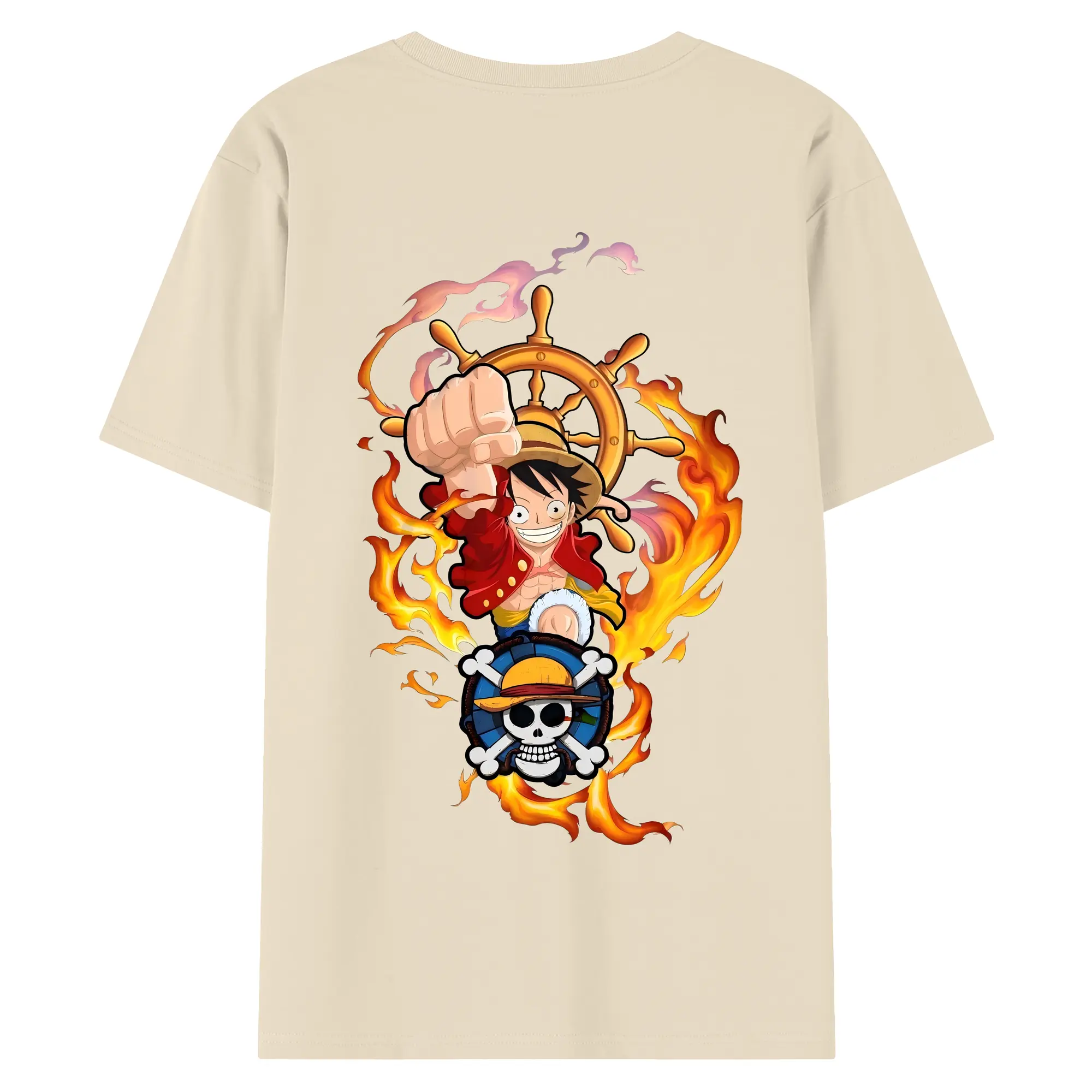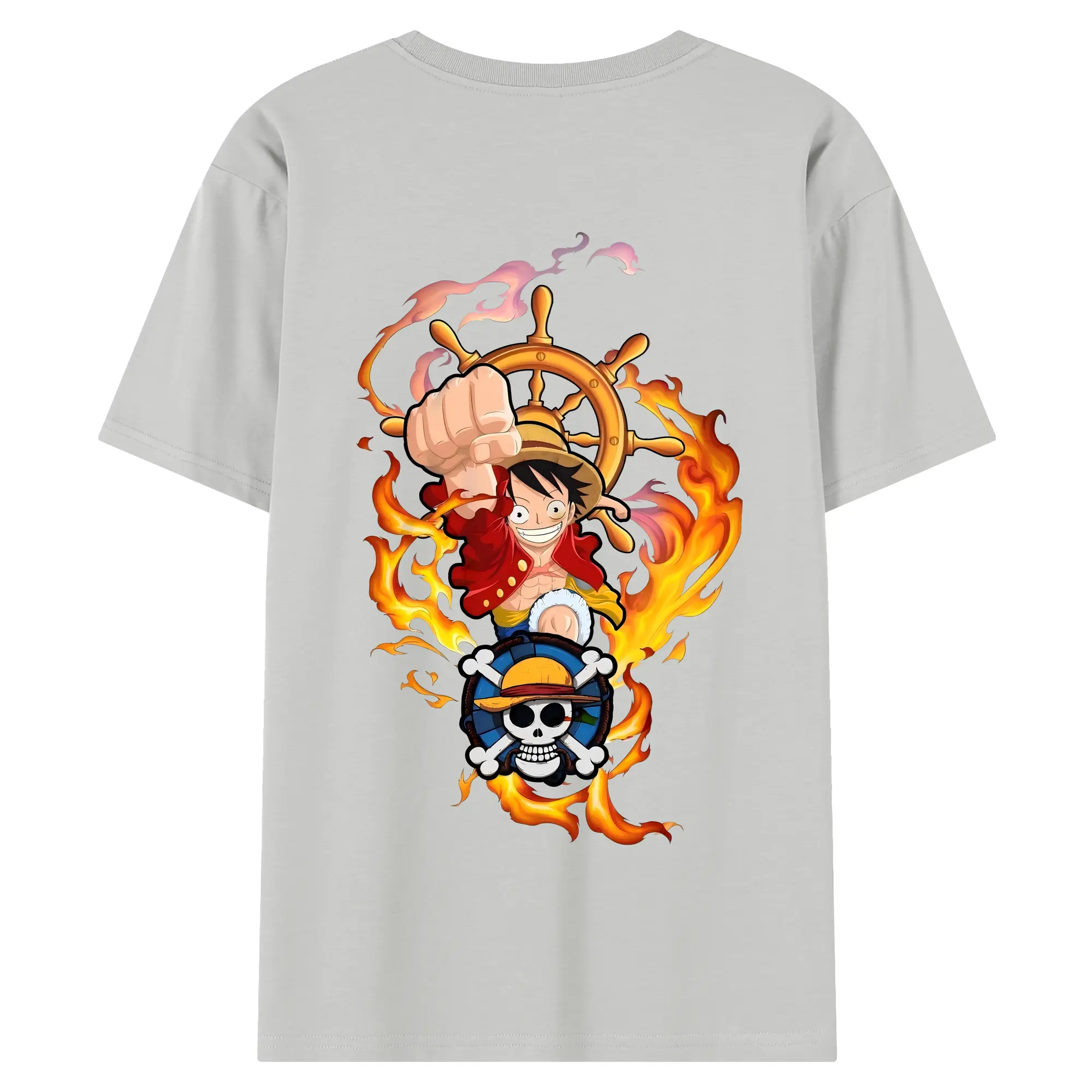ワンピース グッズ モンキー・D・ルフィ - 綿100% ヴィンテージ風 半袖Tシャツ ・ 背面プリント ・ 柔らか肌触り ・ 通気性 快適 ・ スポーツ カジュアル 外出用