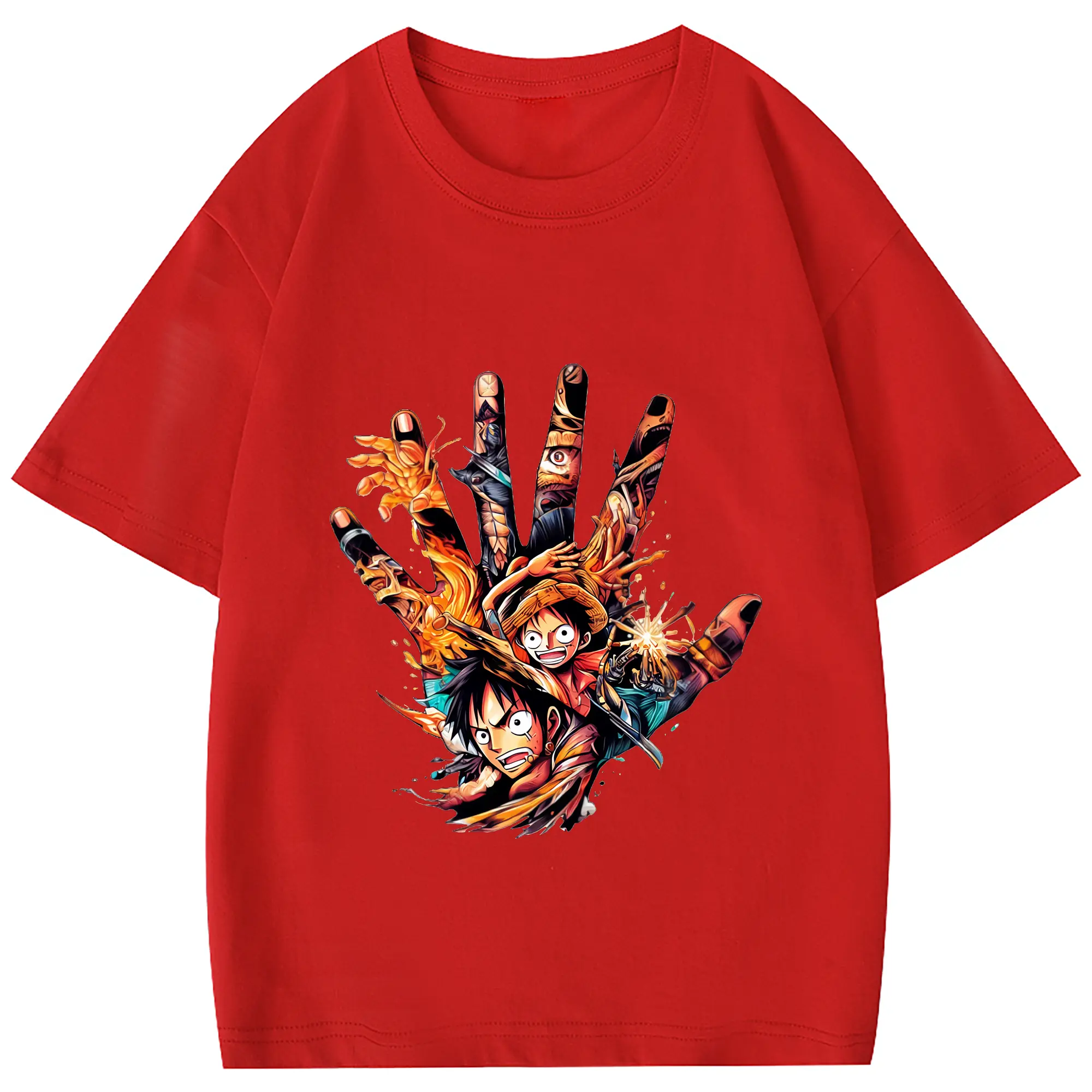 ワンピース グッズ モンキー・D・ルフィ - 綿100% 半袖Tシャツ ・ フロントプリント ・ 快適 通気性 ・ 日常使い 散歩 スポーツ用