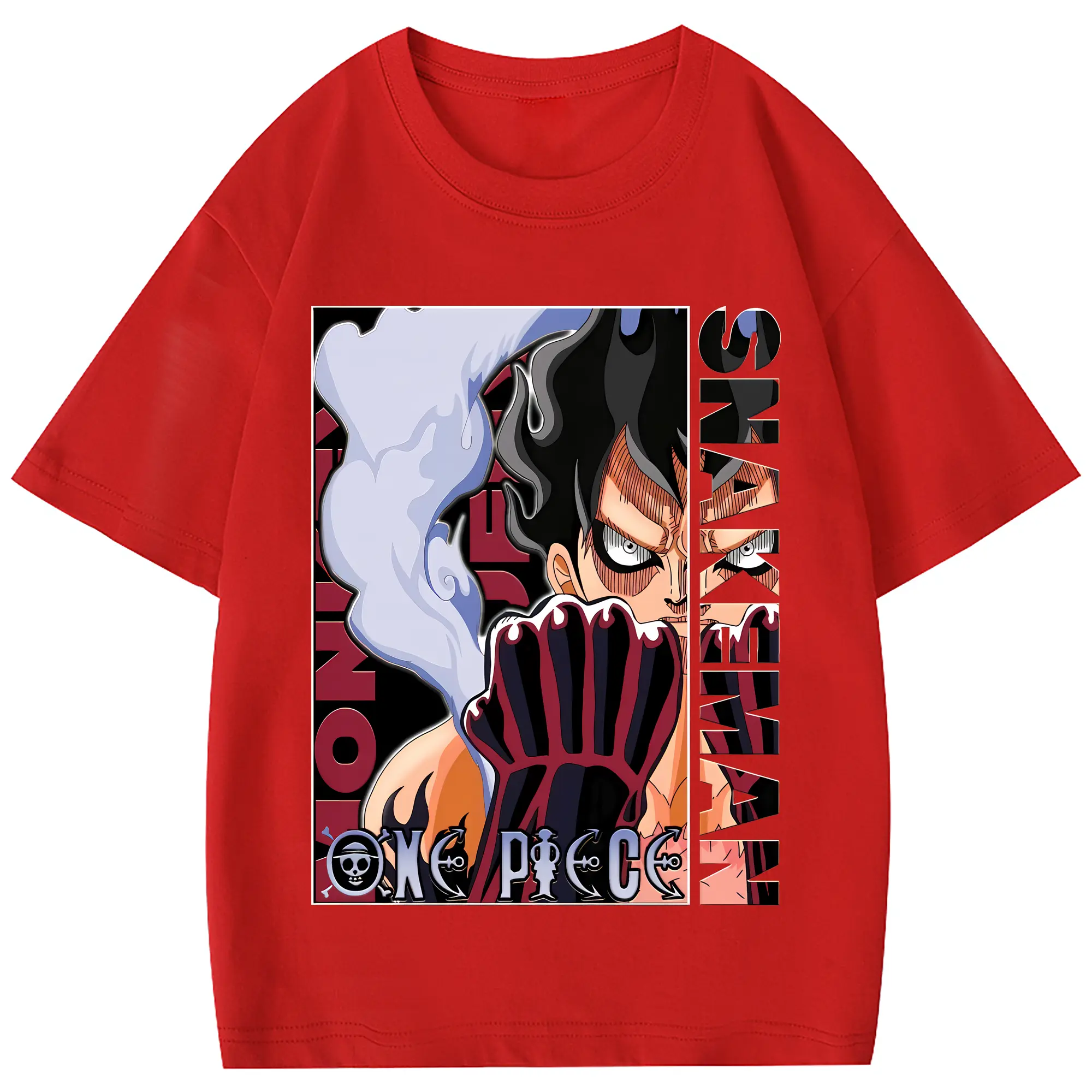 ワンピース グッズ モンキー・D・ルフィ - 綿100% 半袖Tシャツ ・ フロントプリント ・ 快適 通気性 ・ 日常使い 散歩 スポーツ用
