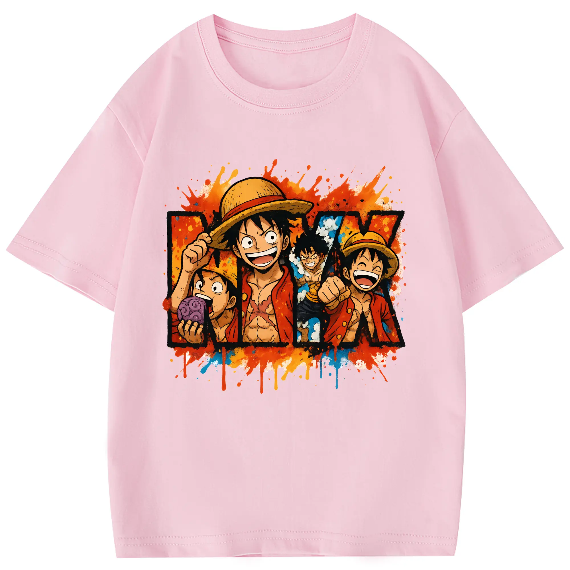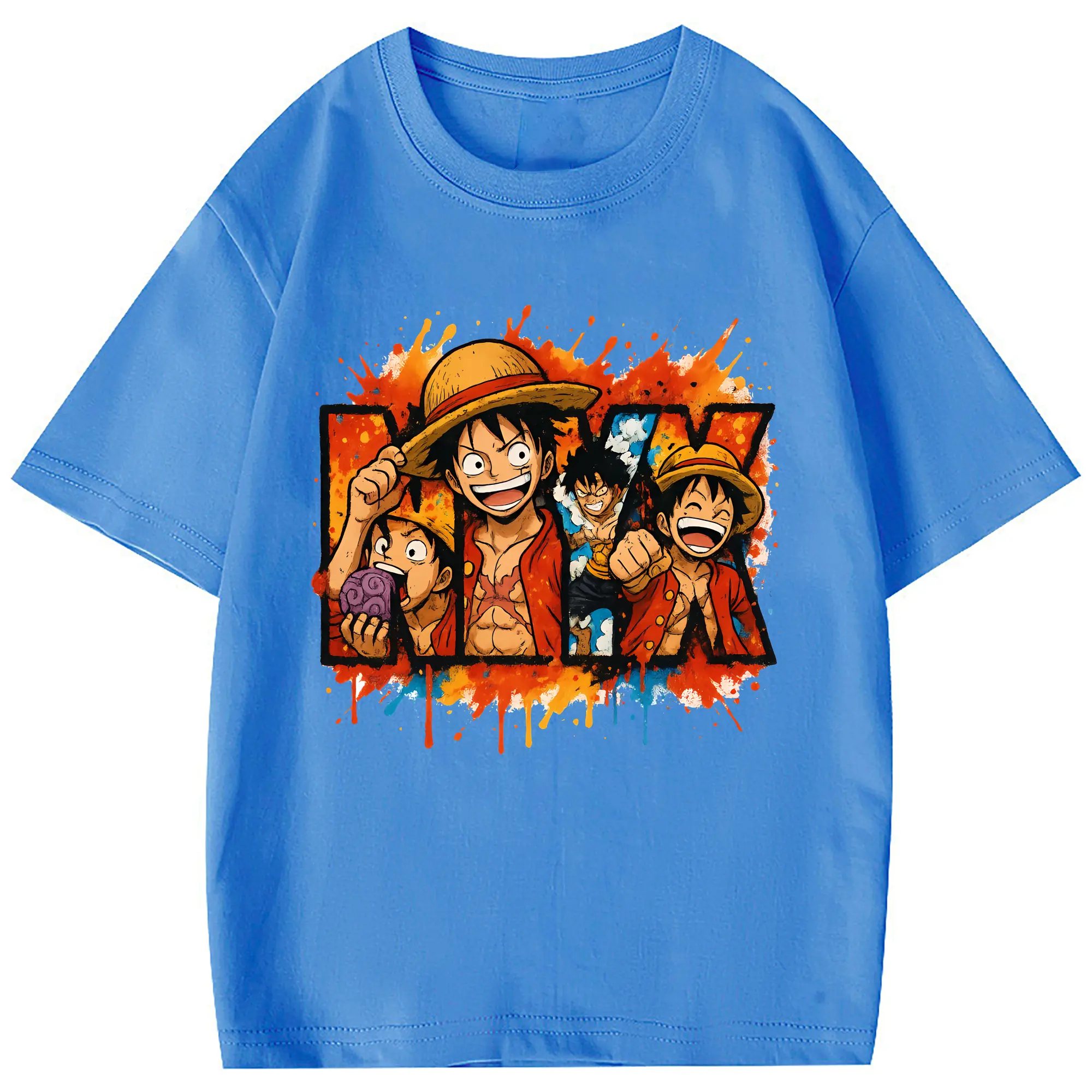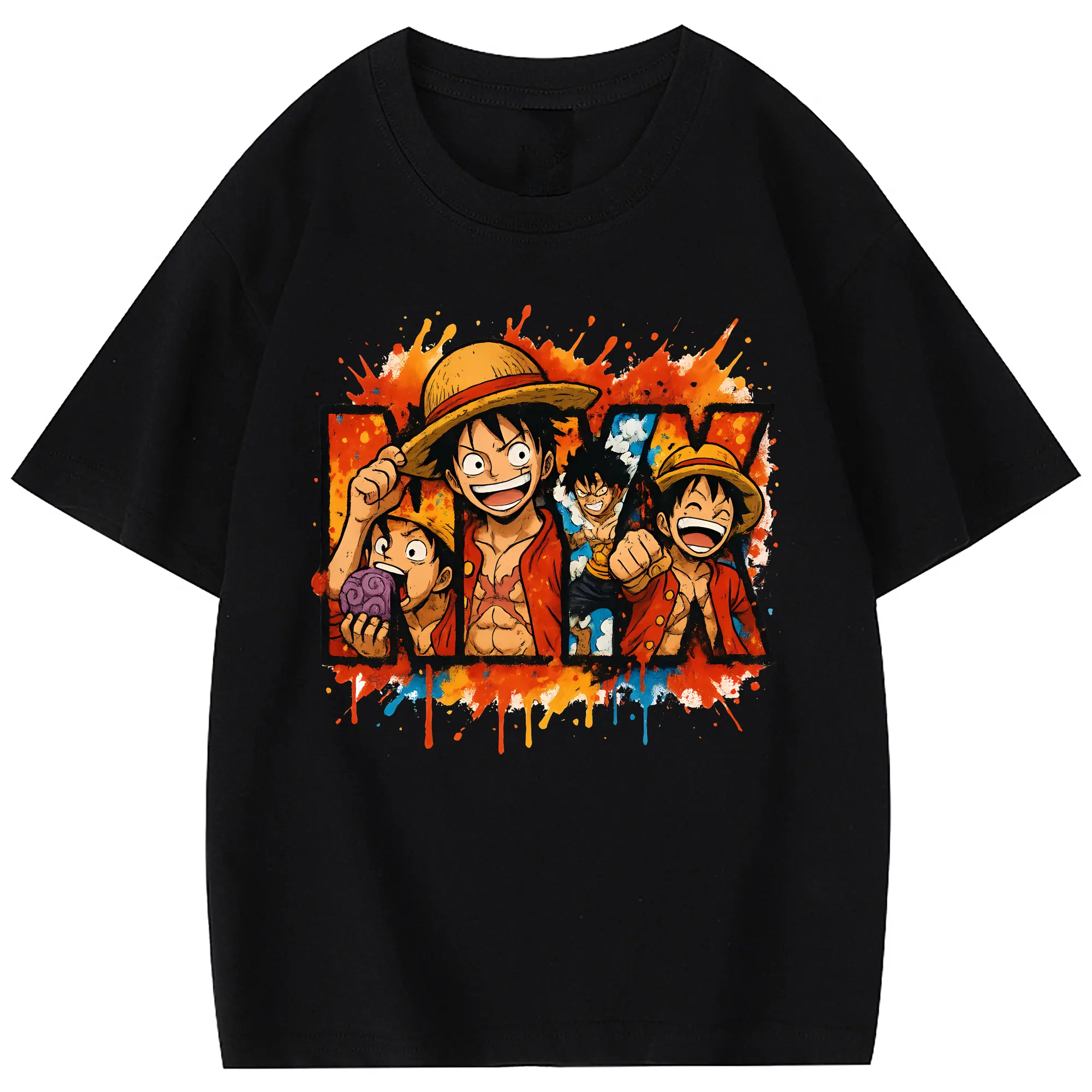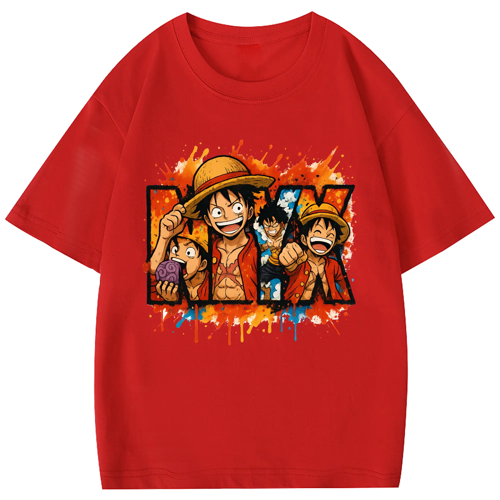 ワンピース グッズ モンキー・D・ルフィ - 綿100% 半袖Tシャツ ・ フロントプリント ・ 快適 通気性 ・ 日常使い 散歩 スポーツ用