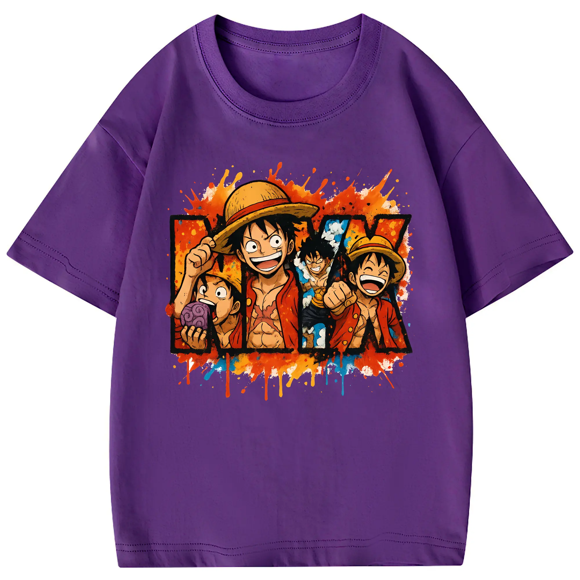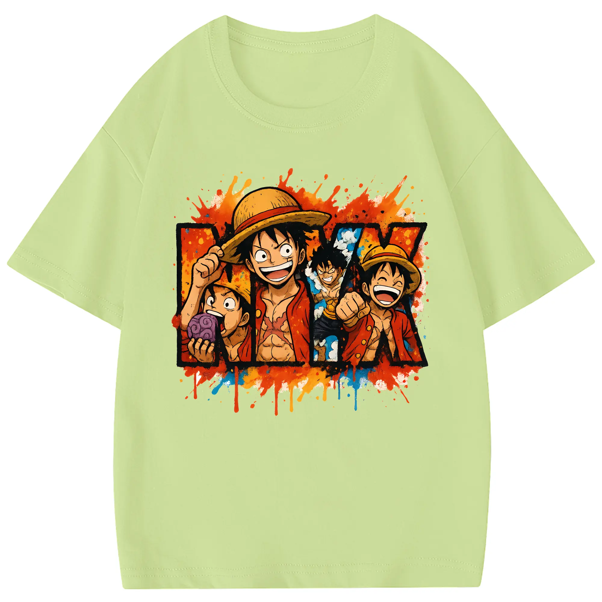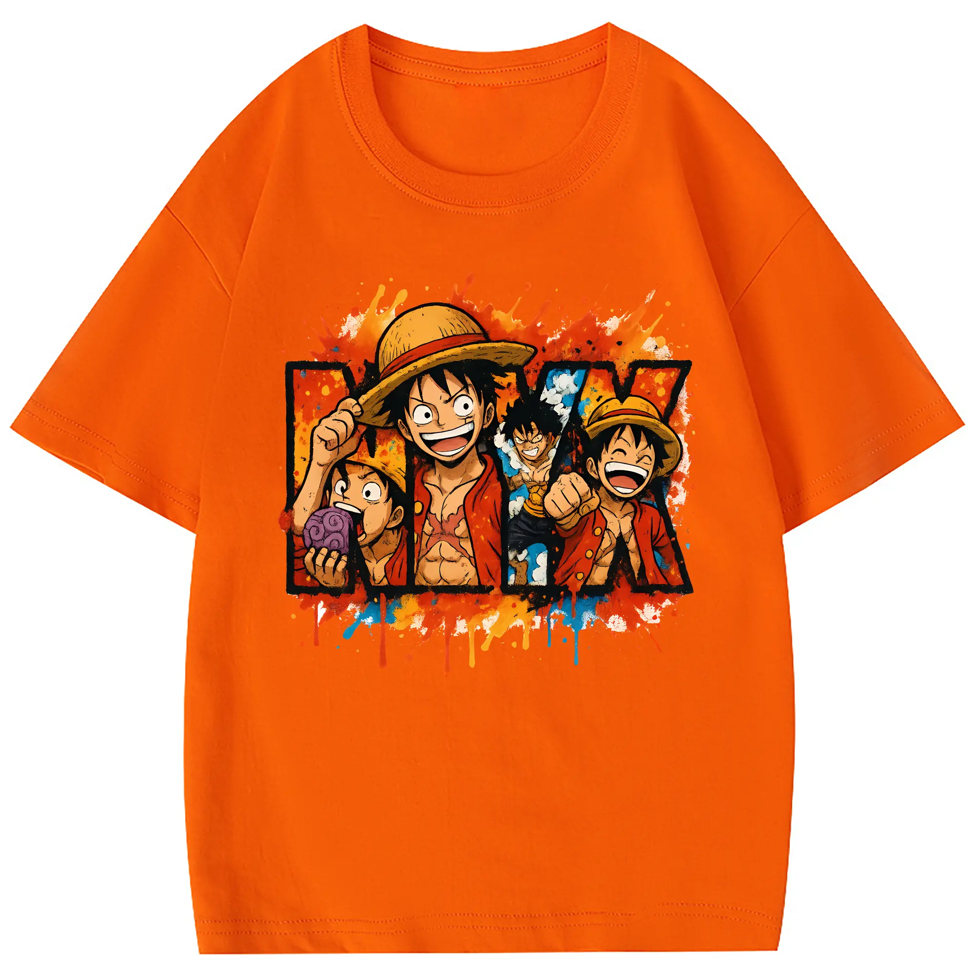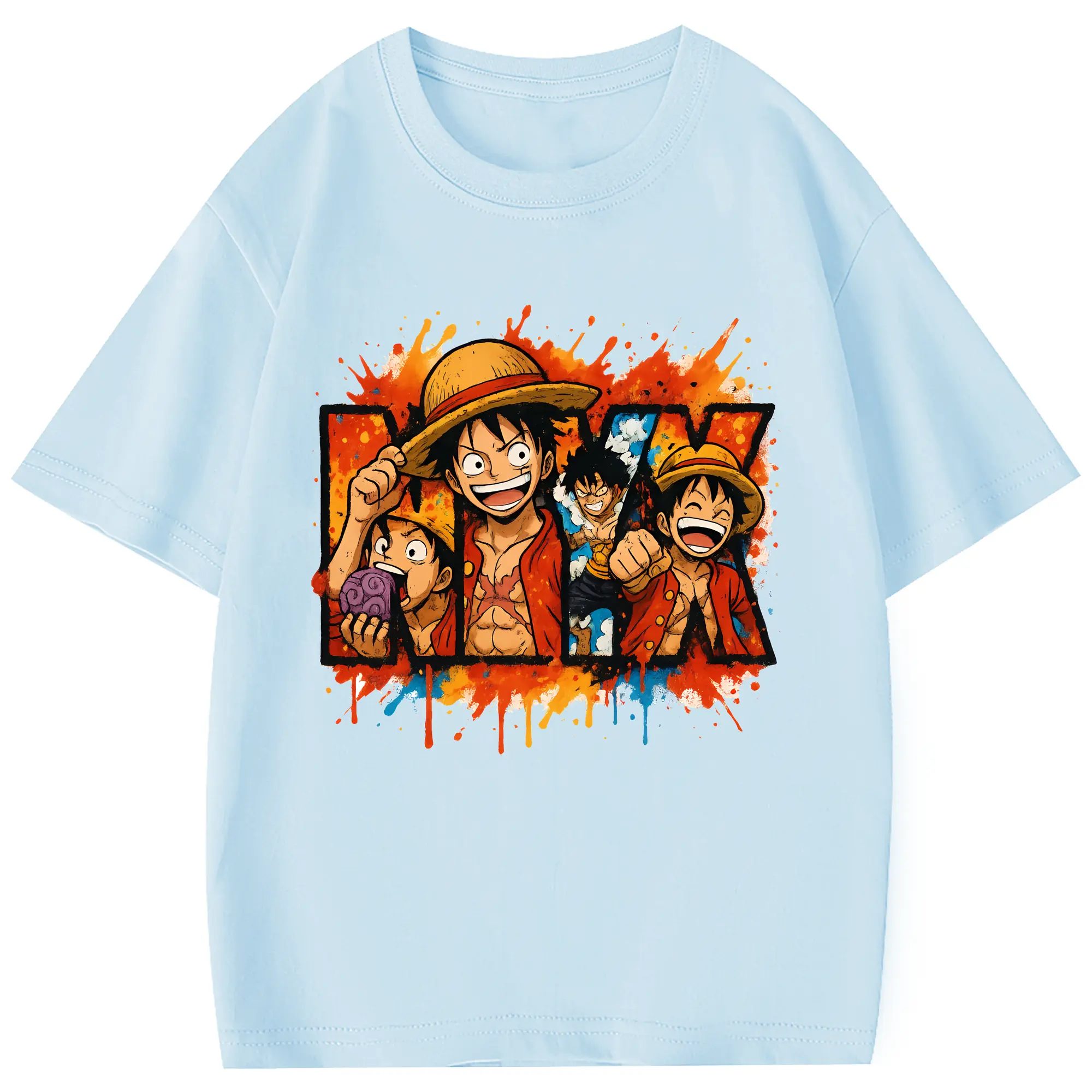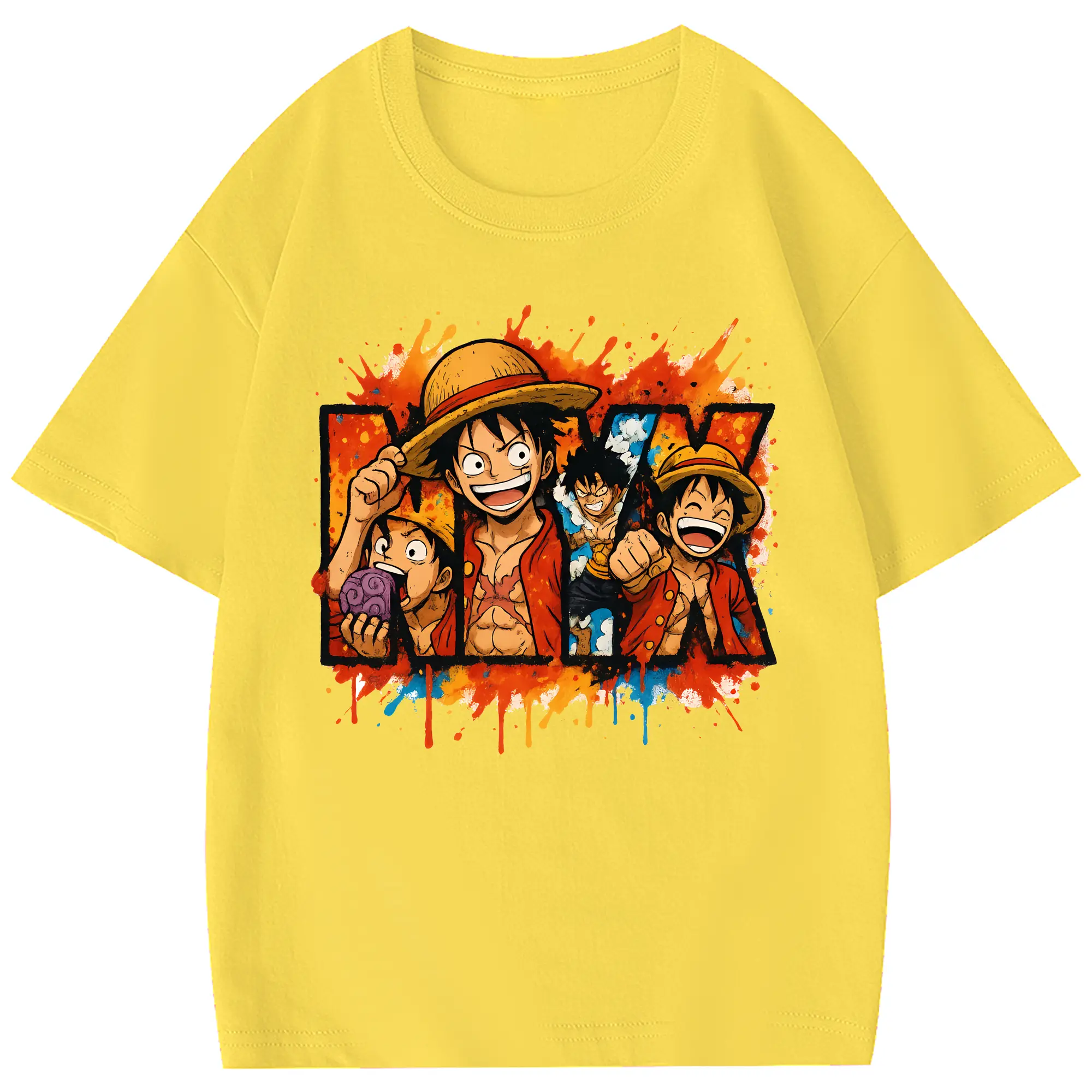 ワンピース グッズ モンキー・D・ルフィ - 綿100% 半袖Tシャツ ・ フロントプリント ・ 快適 通気性 ・ 日常使い 散歩 スポーツ用