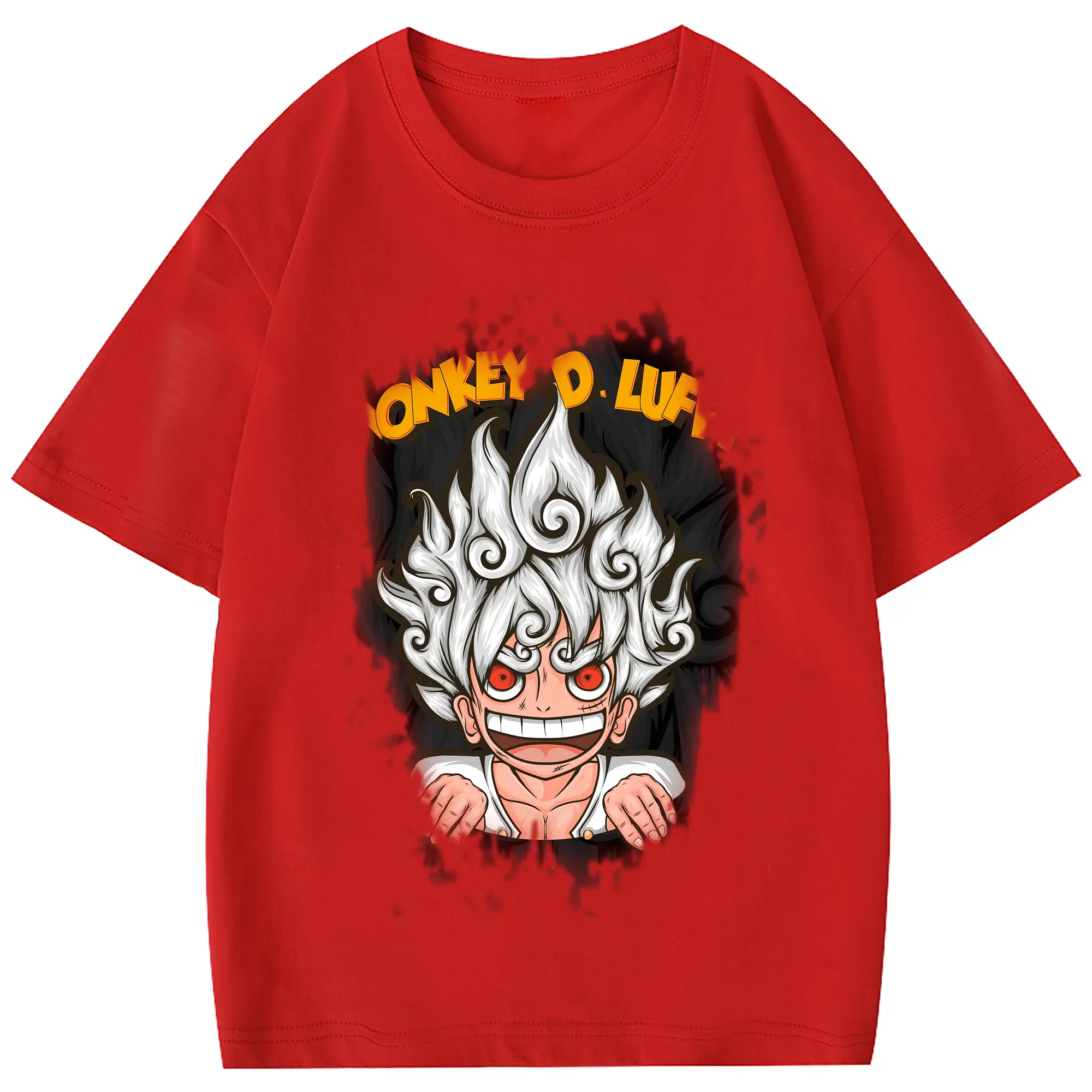 ワンピース グッズ モンキー・D・ルフィ - 綿100% 半袖Tシャツ ・ フロントプリント ・ 快適 通気性 ・ 日常使い 散歩 スポーツ用