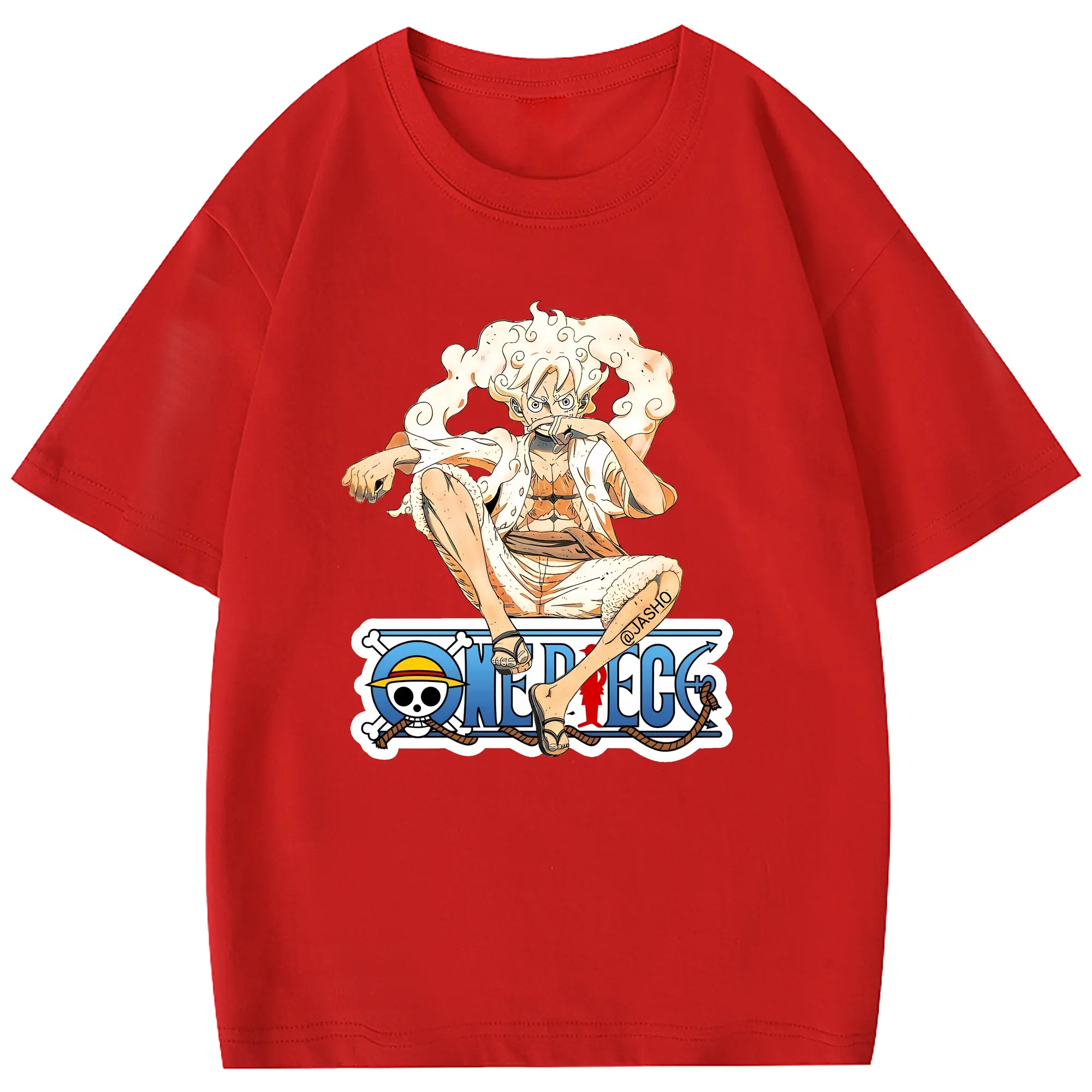 ワンピース グッズ モンキー・D・ルフィ - 綿100% 半袖Tシャツ ・ フロントプリント ・ 快適 通気性 ・ 日常使い 散歩 スポーツ用
