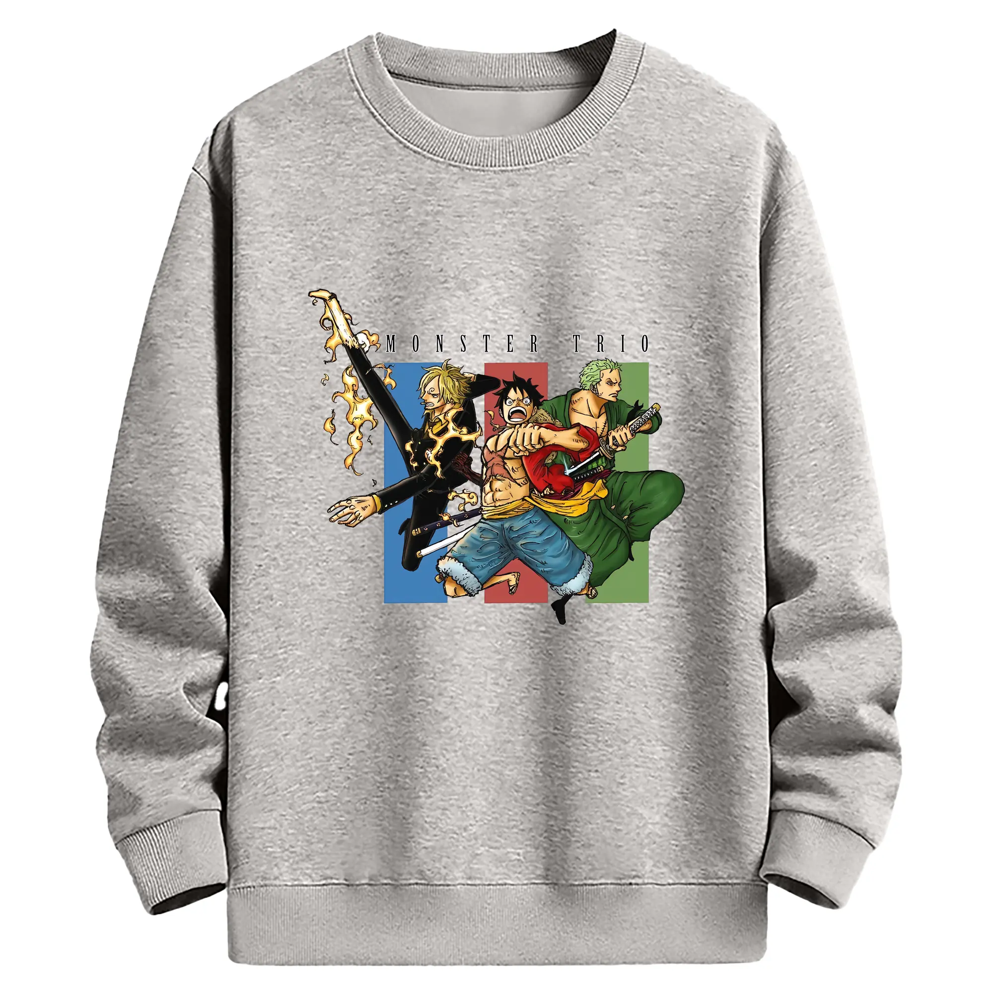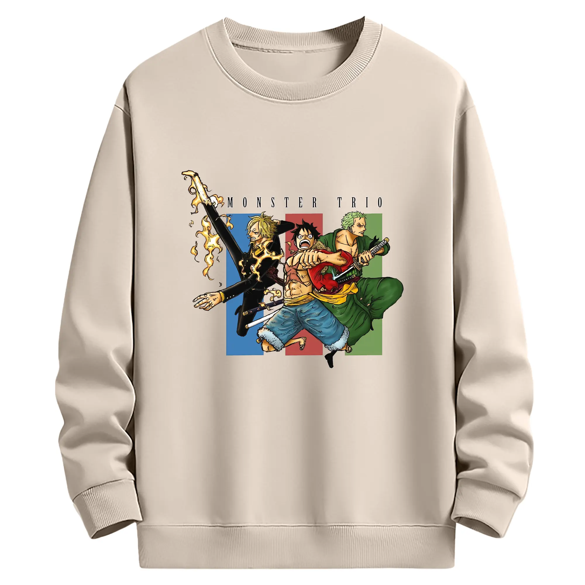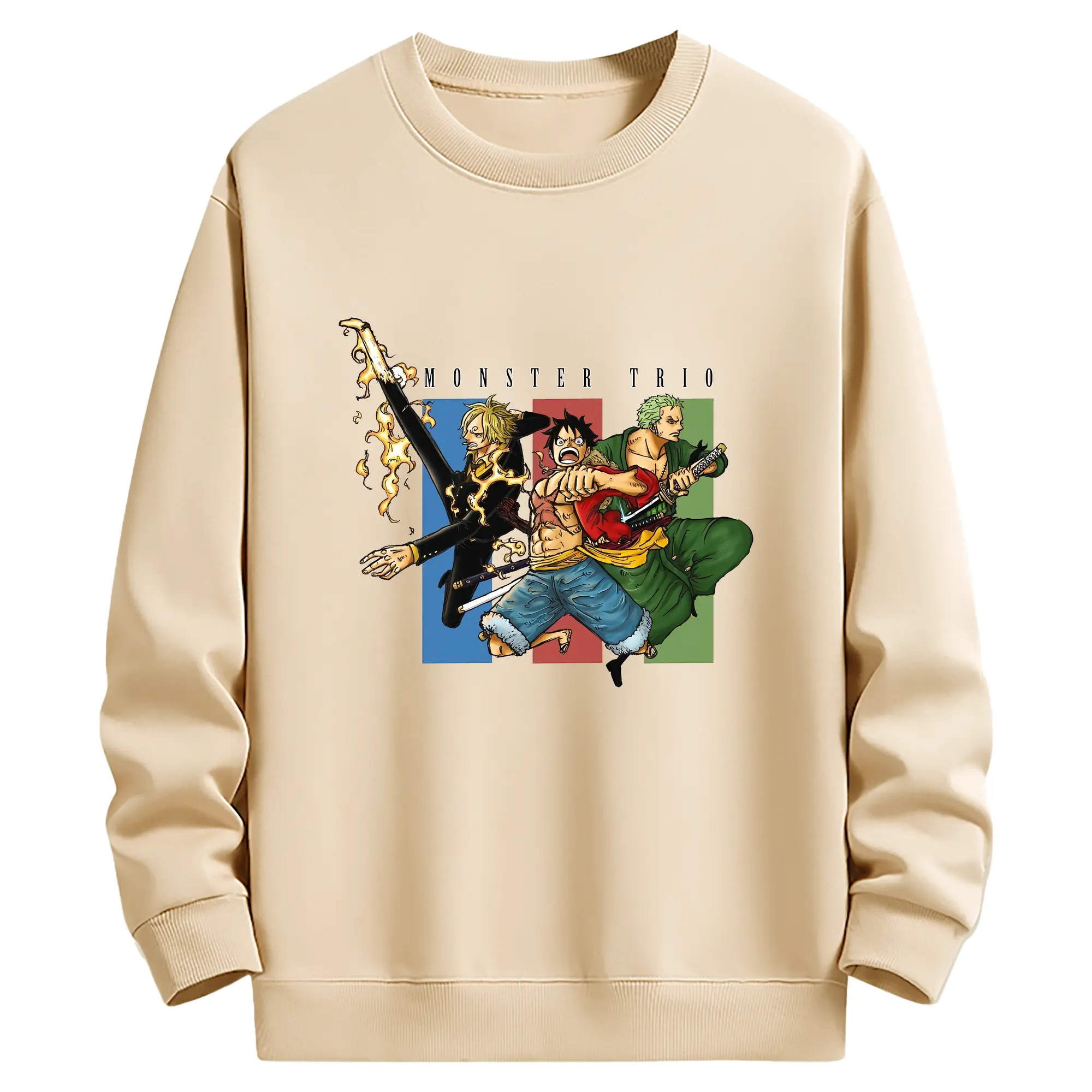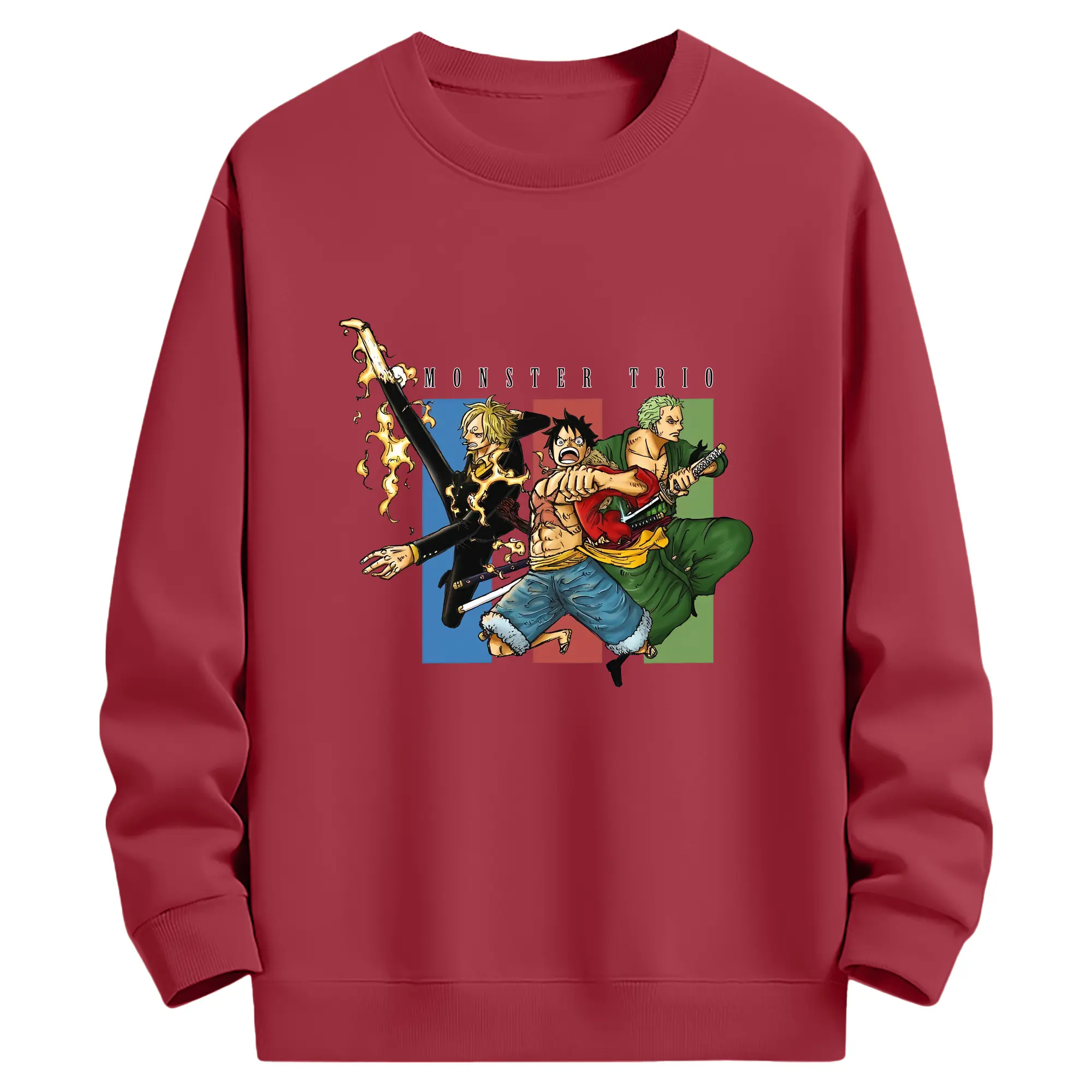 ワンピース グッズ モンキー・D・ルフィ - 薄手 クルーネック スウェット 裏毛260g · ポリエステル 春秋向け カジュアル 男女兼用 · トレーナー デイリー スポーツ 散歩に最適