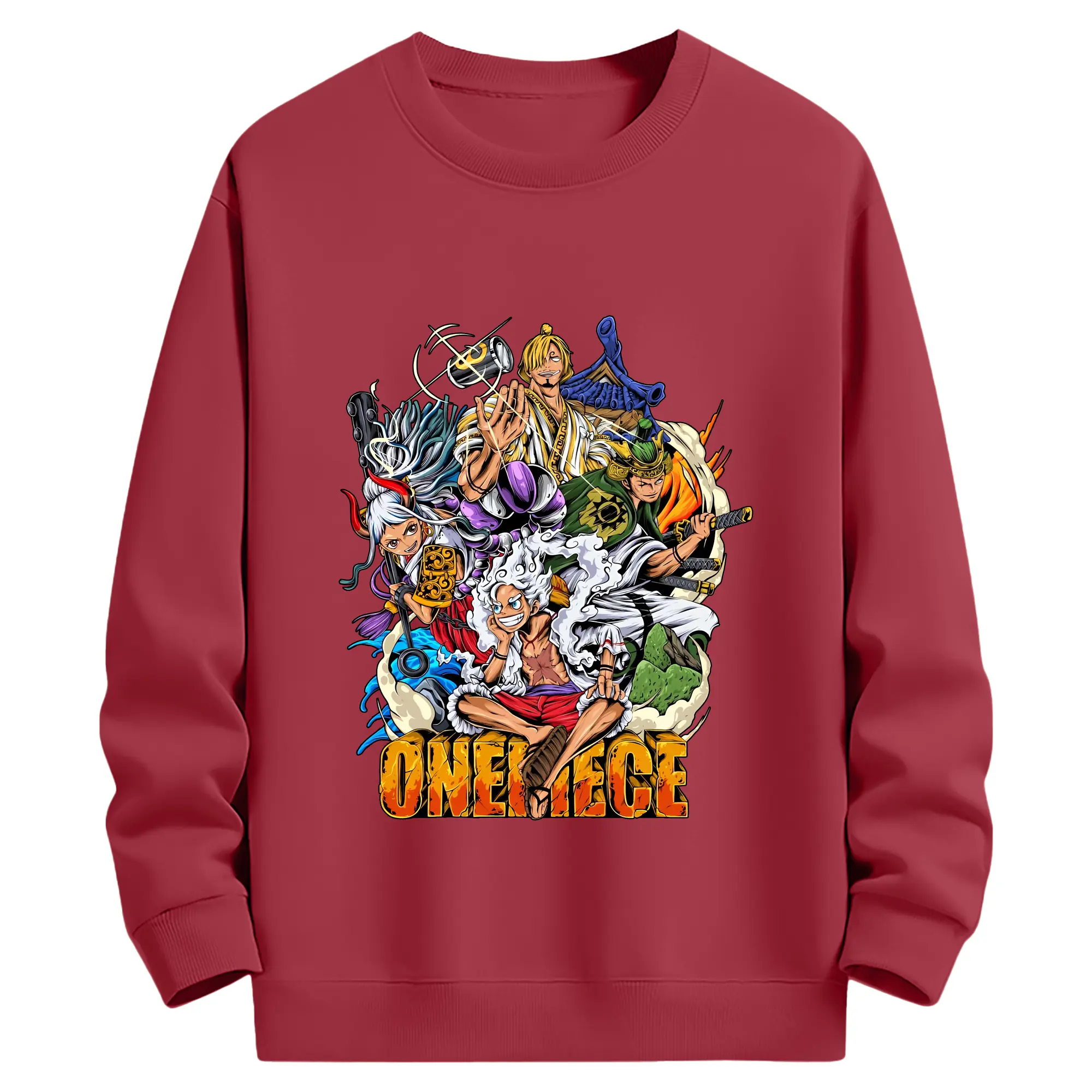 ワンピース グッズ モンキー・D・ルフィ - 薄手 クルーネック スウェット 裏毛260g · ポリエステル 春秋向け カジュアル 男女兼用 · トレーナー デイリー スポーツ 散歩に最適