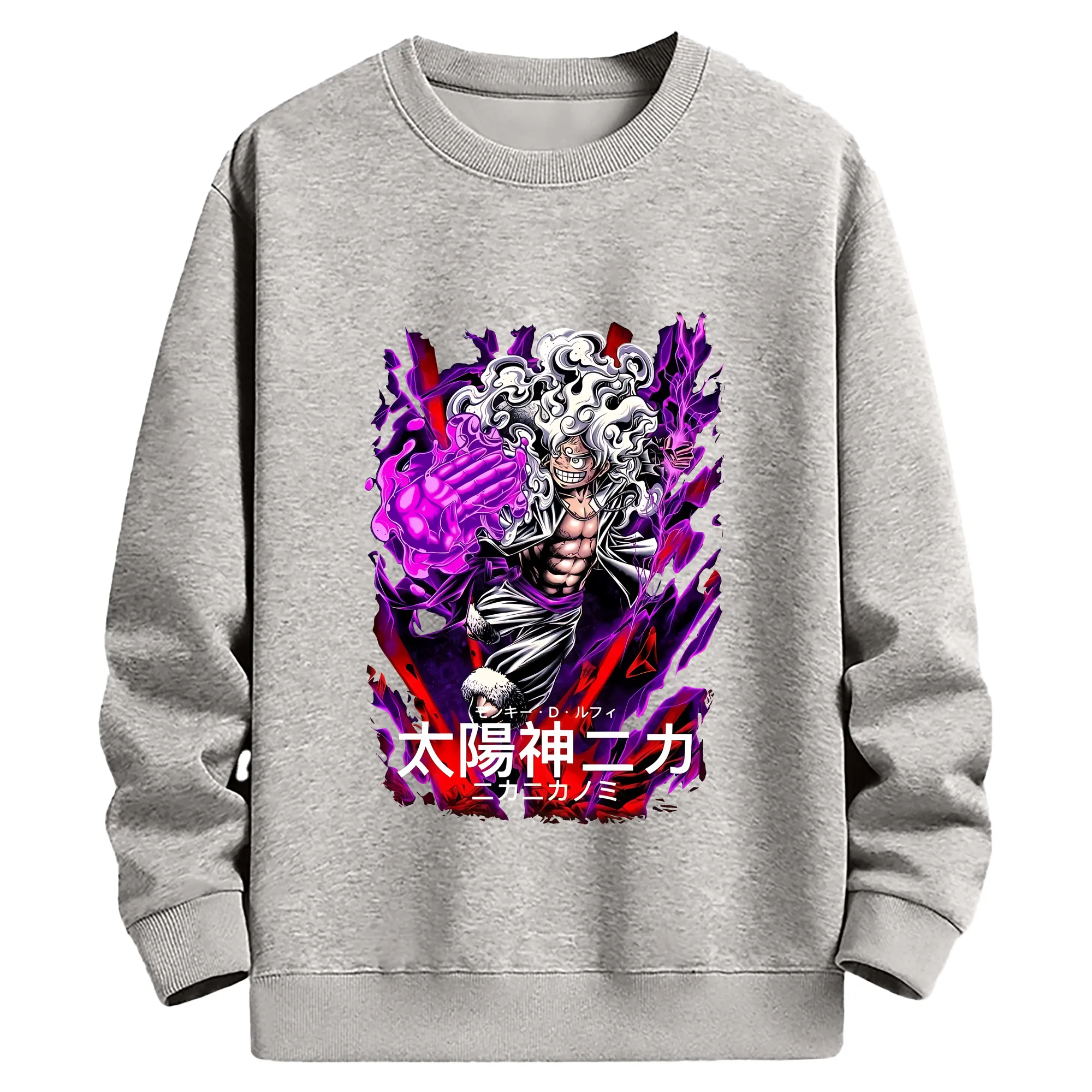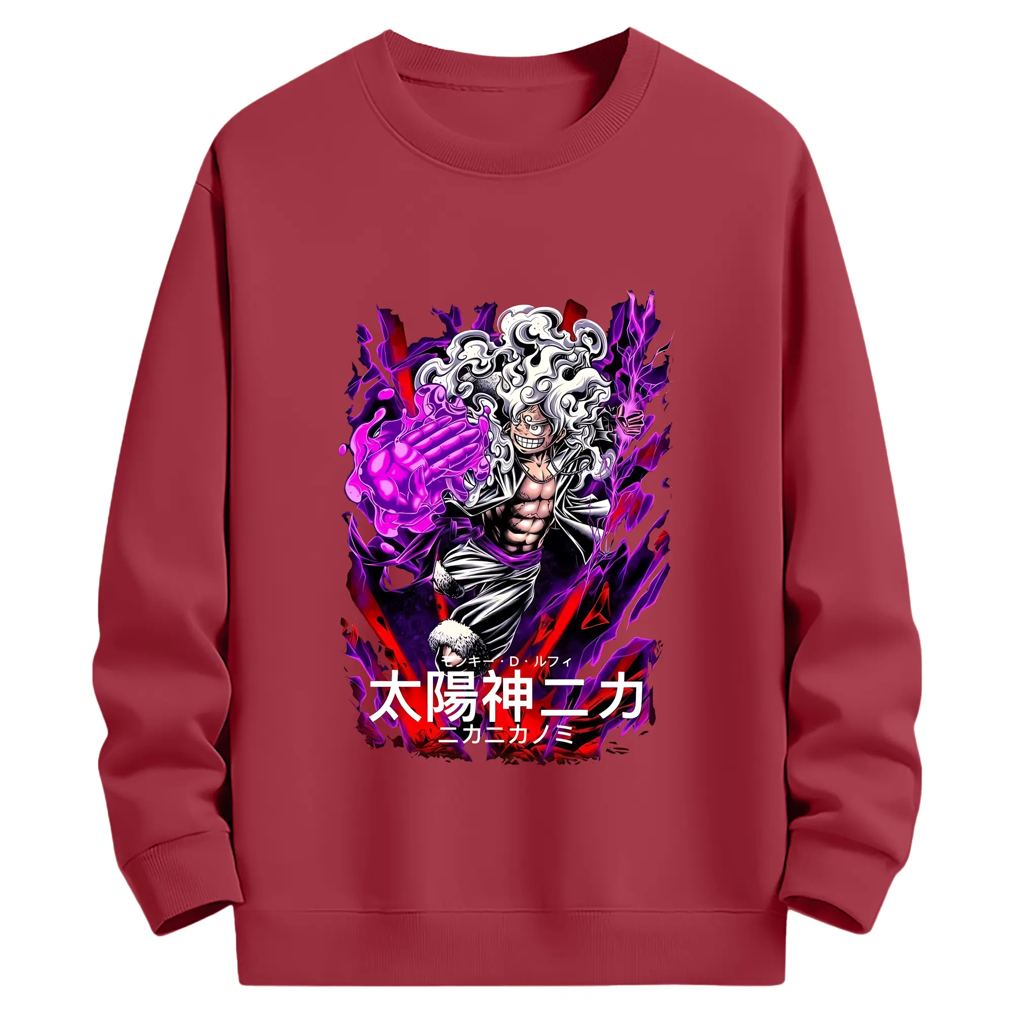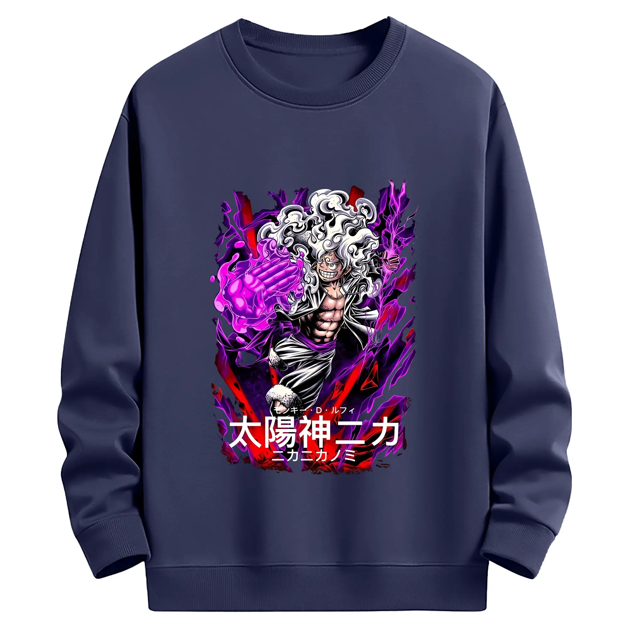 ワンピース グッズ モンキー・D・ルフィ - 薄手 クルーネック スウェット 裏毛260g · ポリエステル 春秋向け カジュアル 男女兼用 · トレーナー デイリー スポーツ 散歩に最適