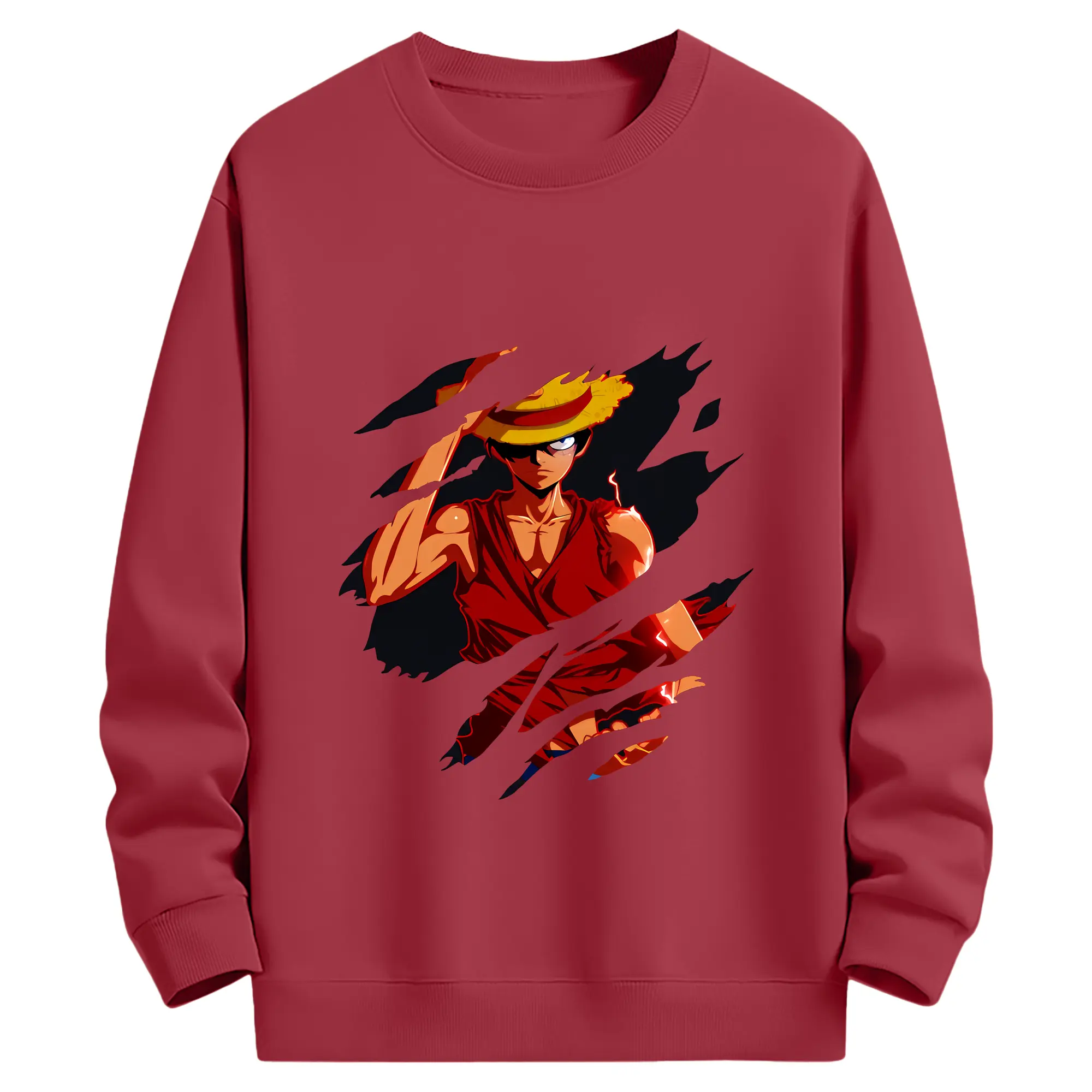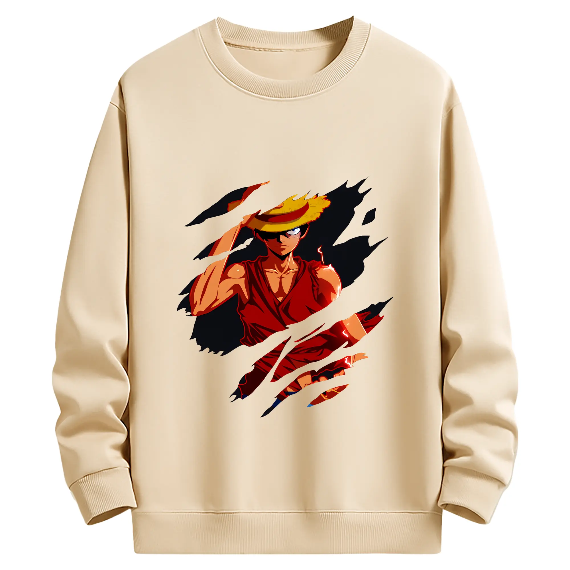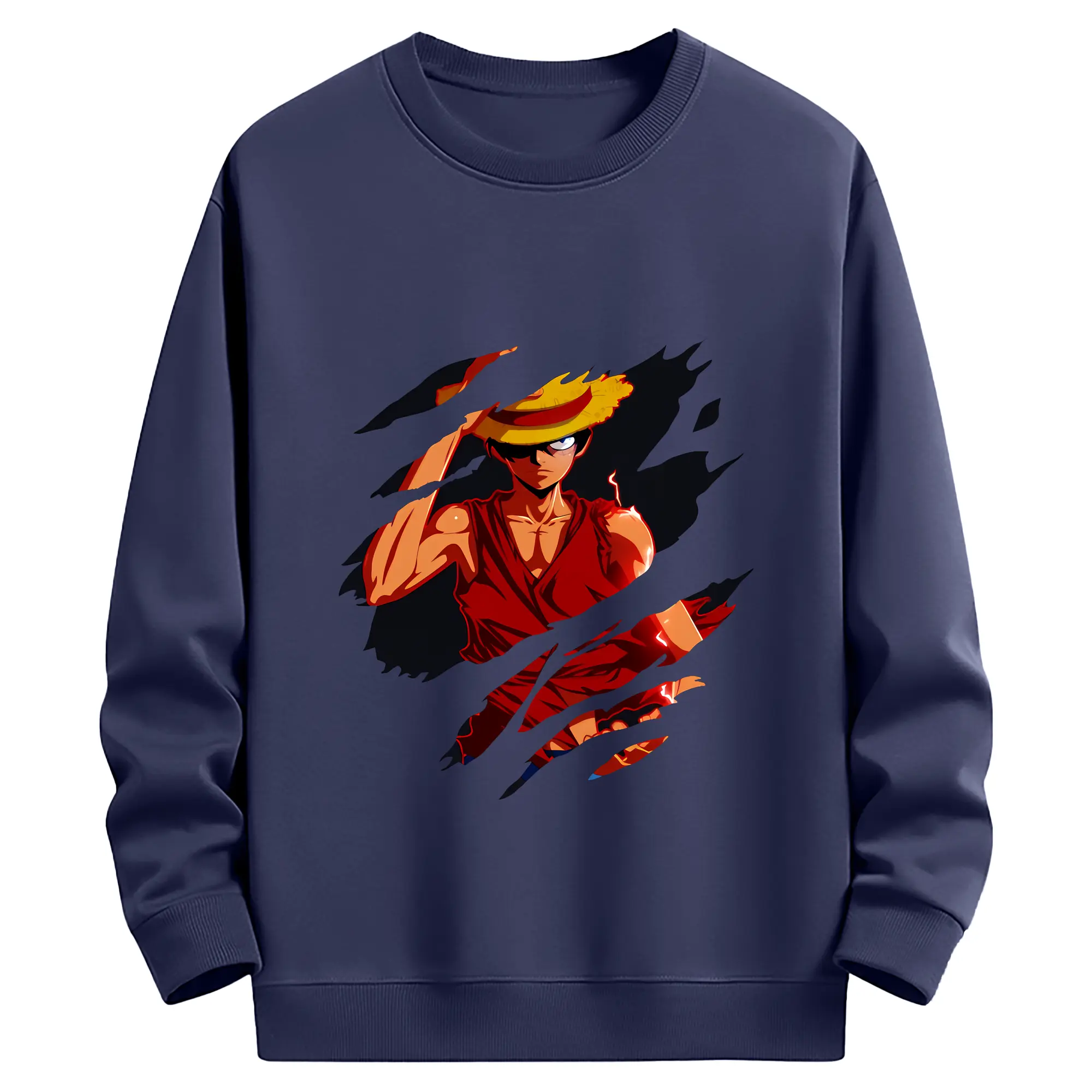 ワンピース グッズ モンキー・D・ルフィ - 薄手 クルーネック スウェット 裏毛260g · ポリエステル 春秋向け カジュアル 男女兼用 · トレーナー デイリー スポーツ 散歩に最適