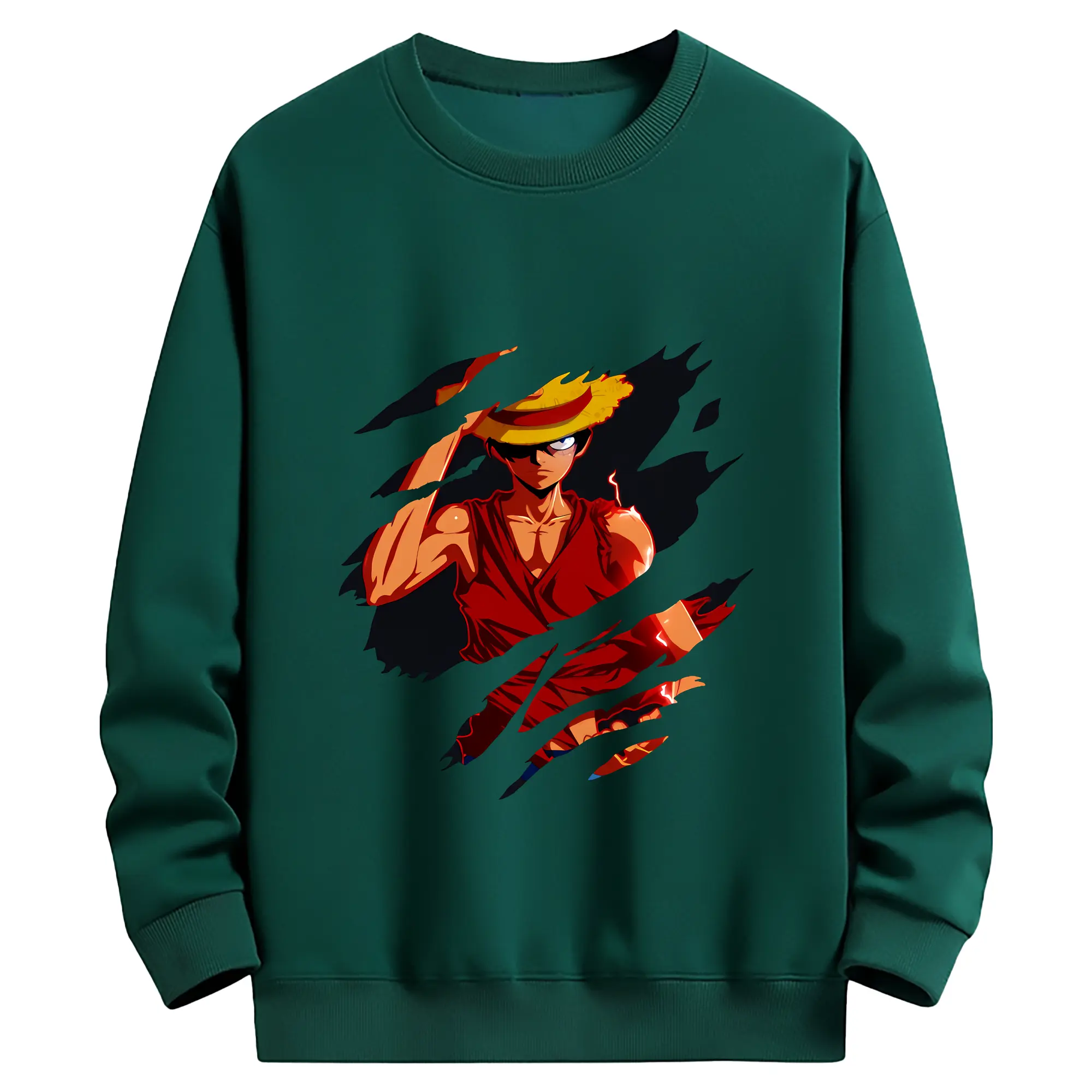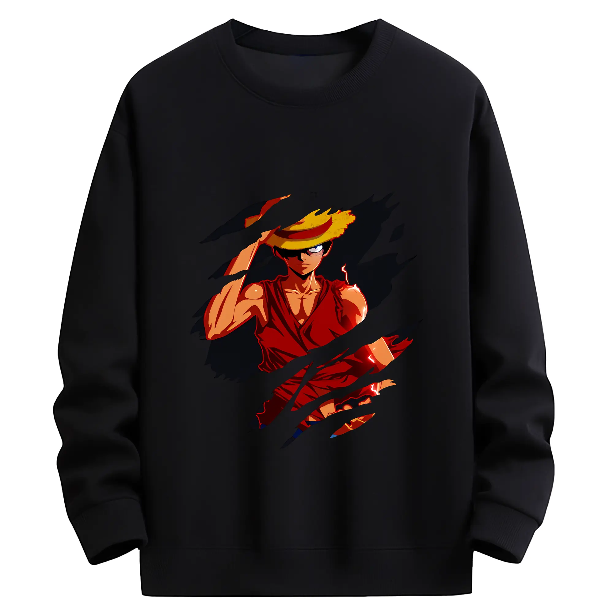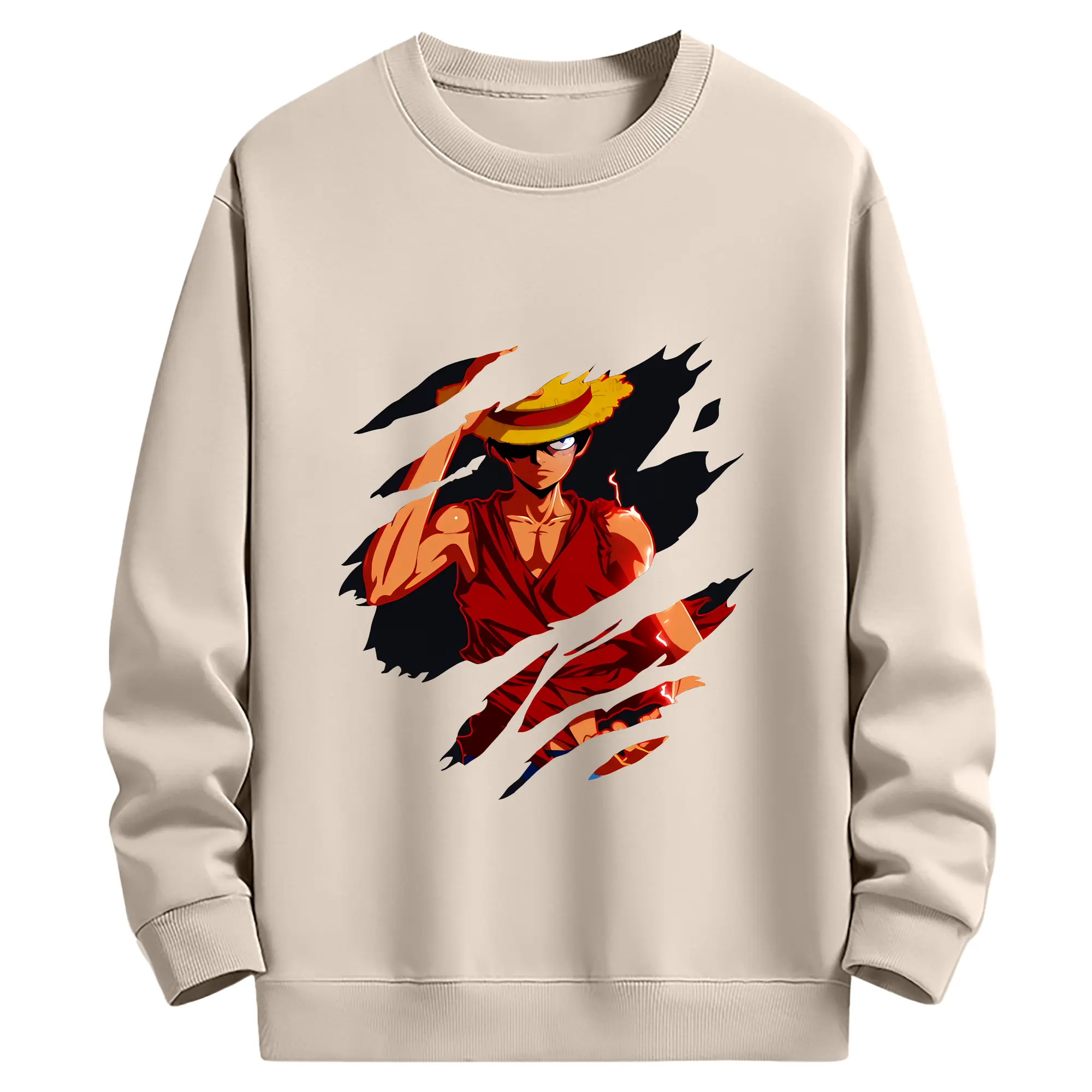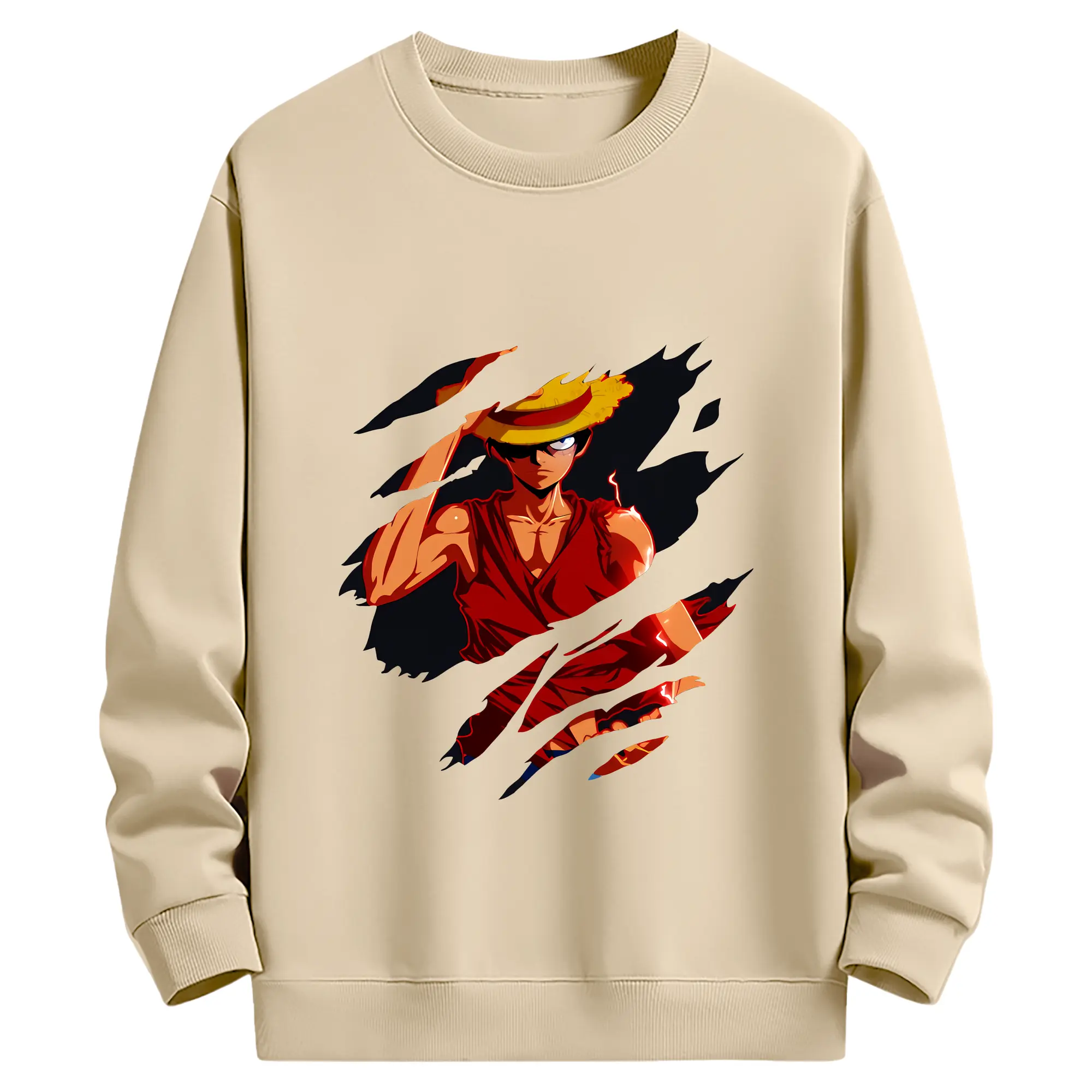 ワンピース グッズ モンキー・D・ルフィ - 薄手 クルーネック スウェット 裏毛260g · ポリエステル 春秋向け カジュアル 男女兼用 · トレーナー デイリー スポーツ 散歩に最適