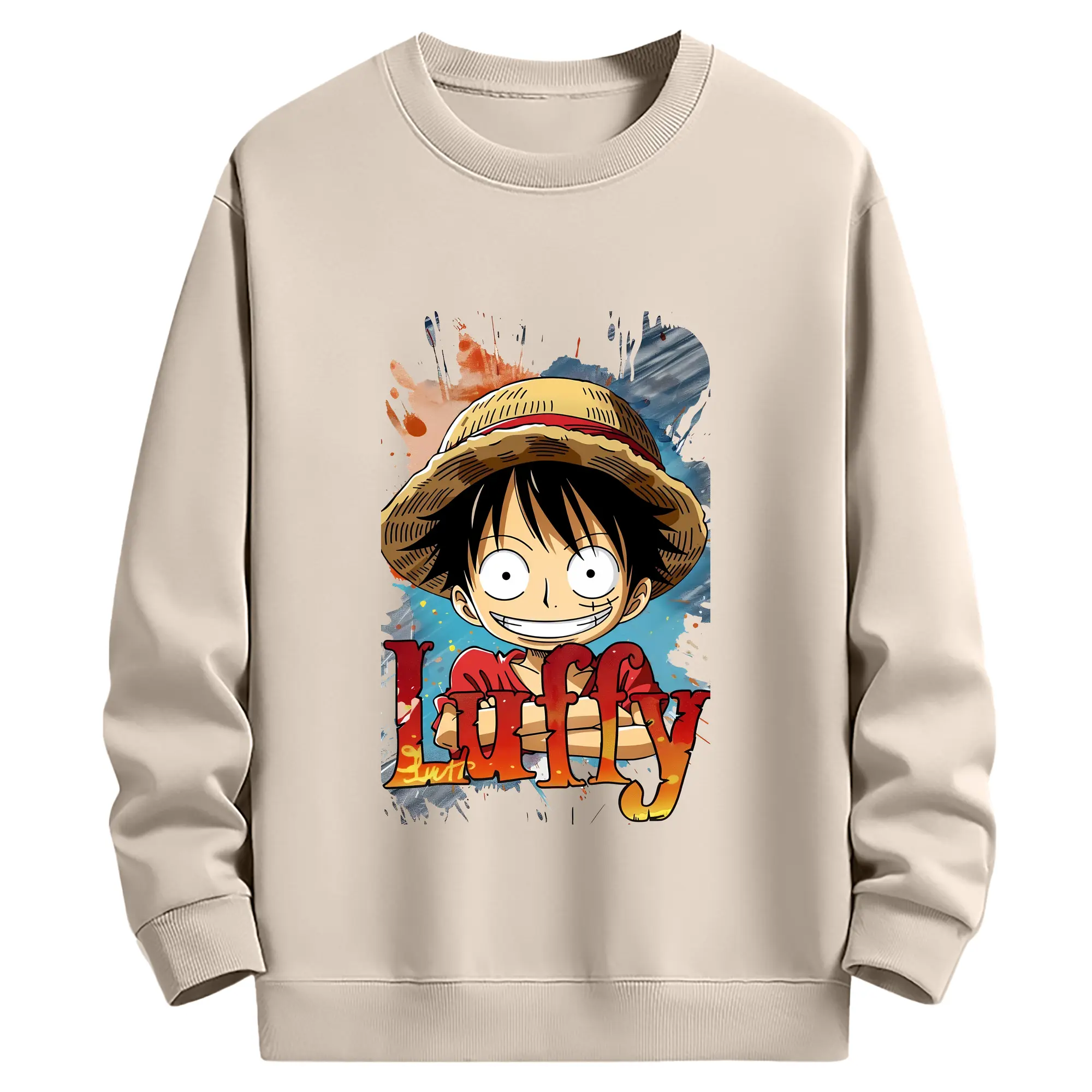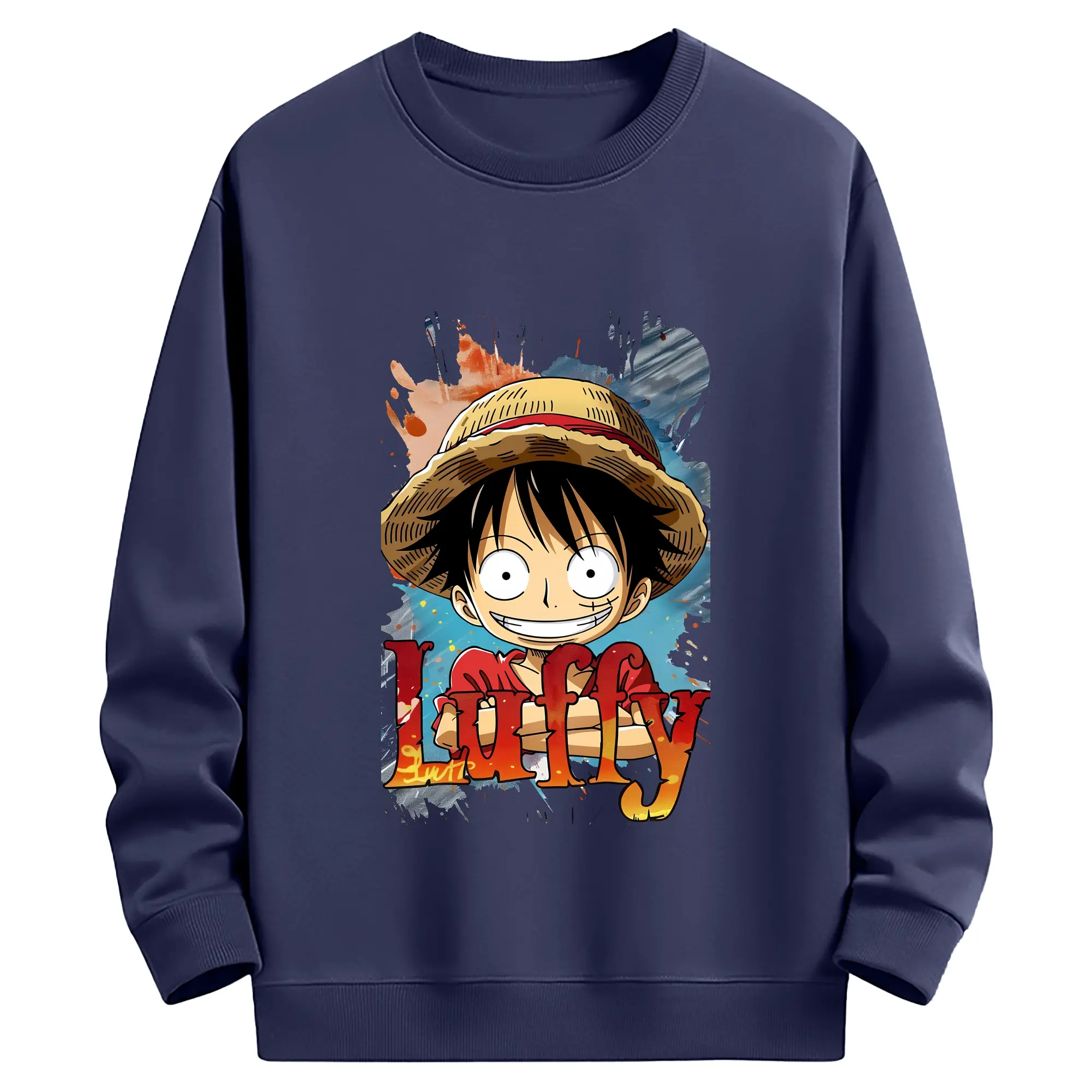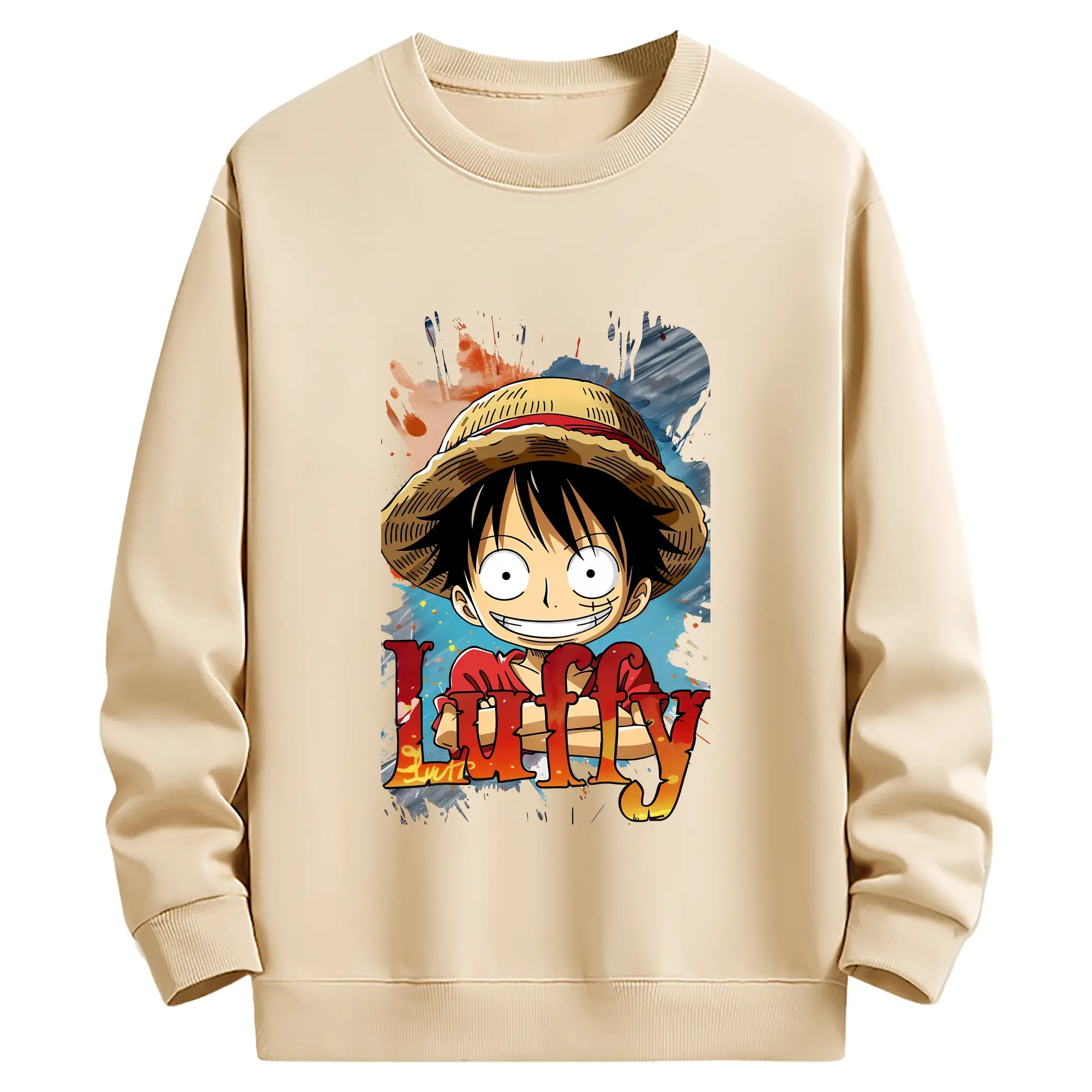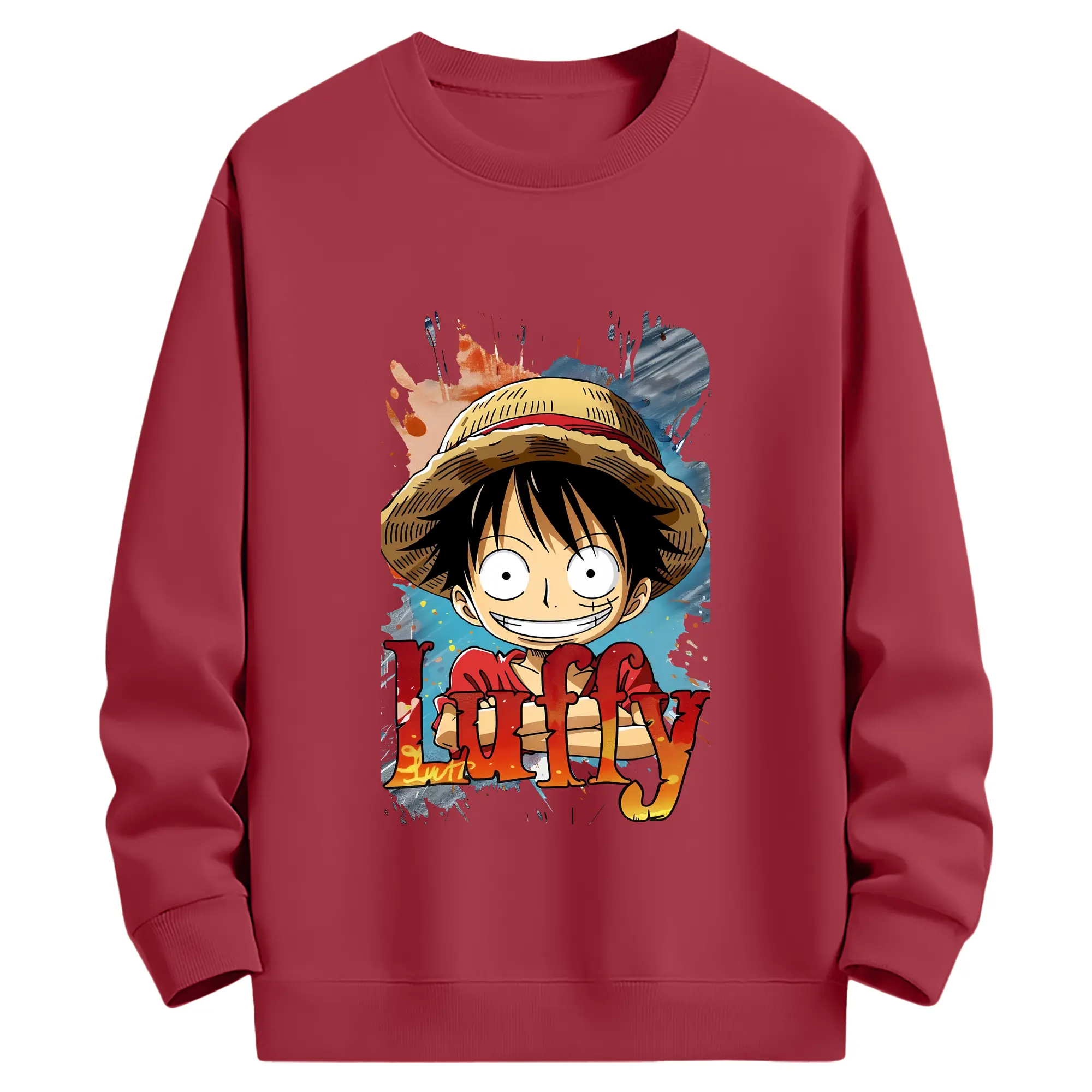 ワンピース グッズ モンキー・D・ルフィ - 薄手 クルーネック スウェット 裏毛260g · ポリエステル 春秋向け カジュアル 男女兼用 · トレーナー デイリー スポーツ 散歩に最適