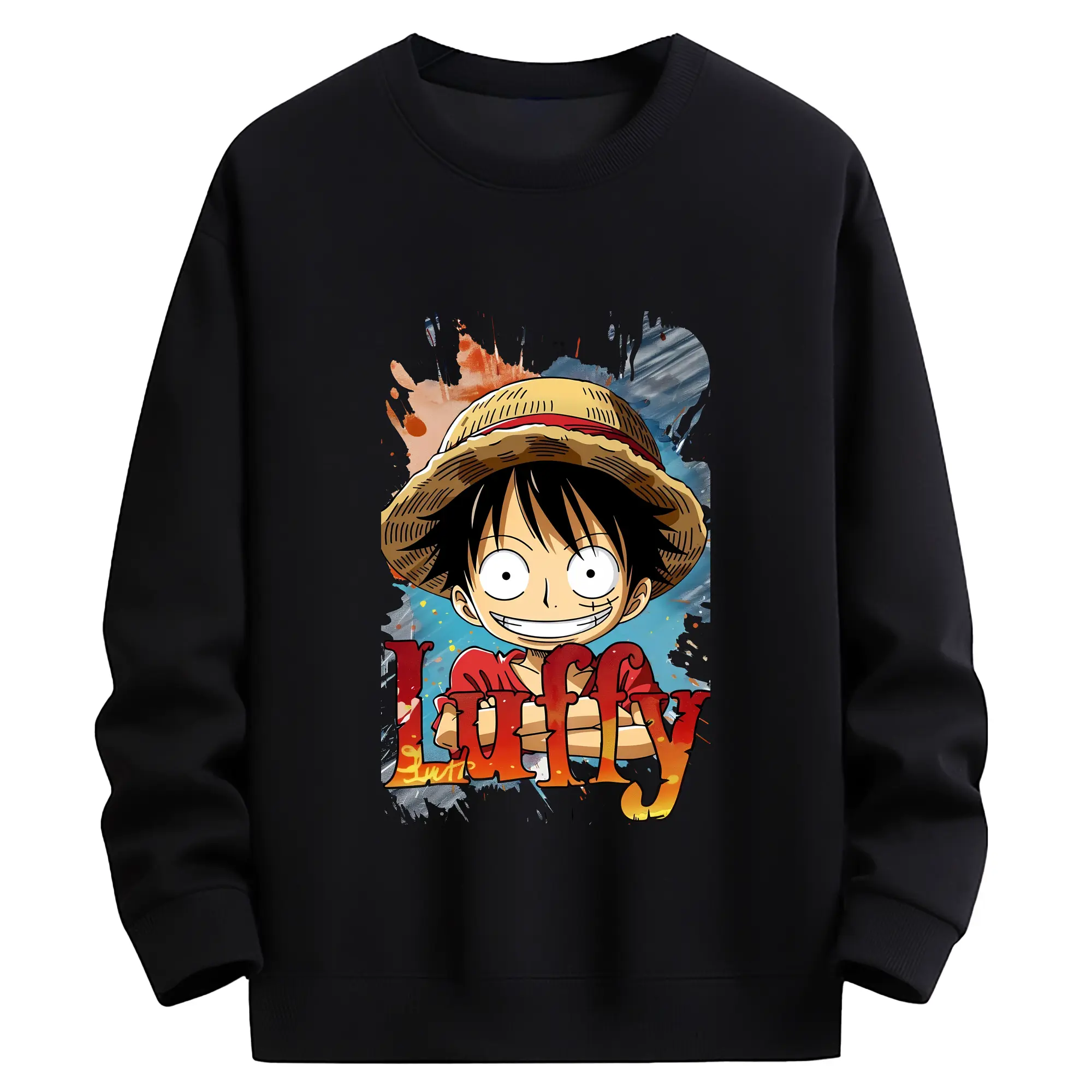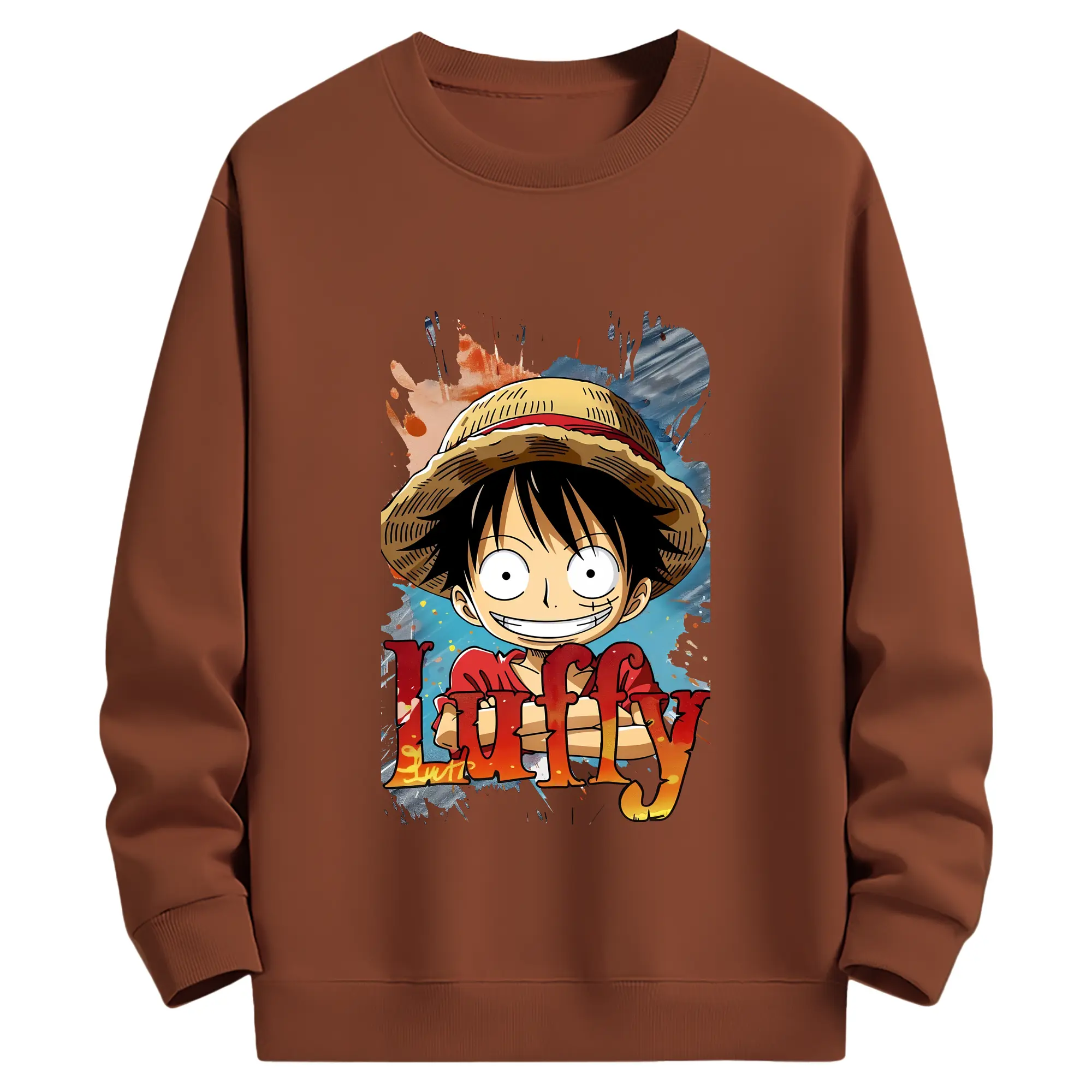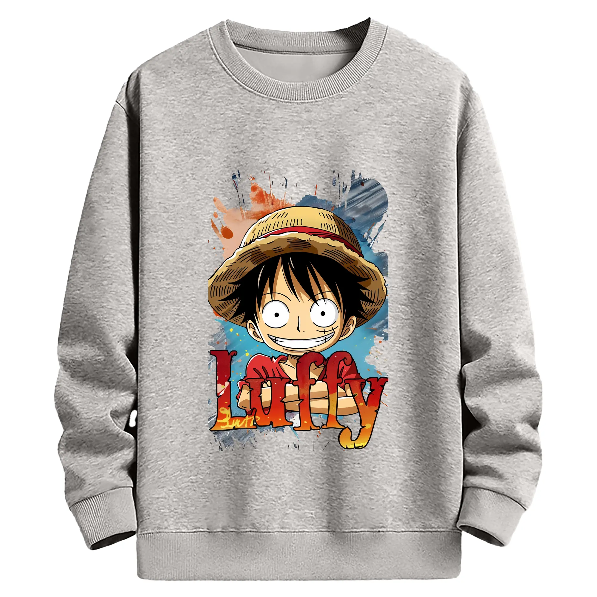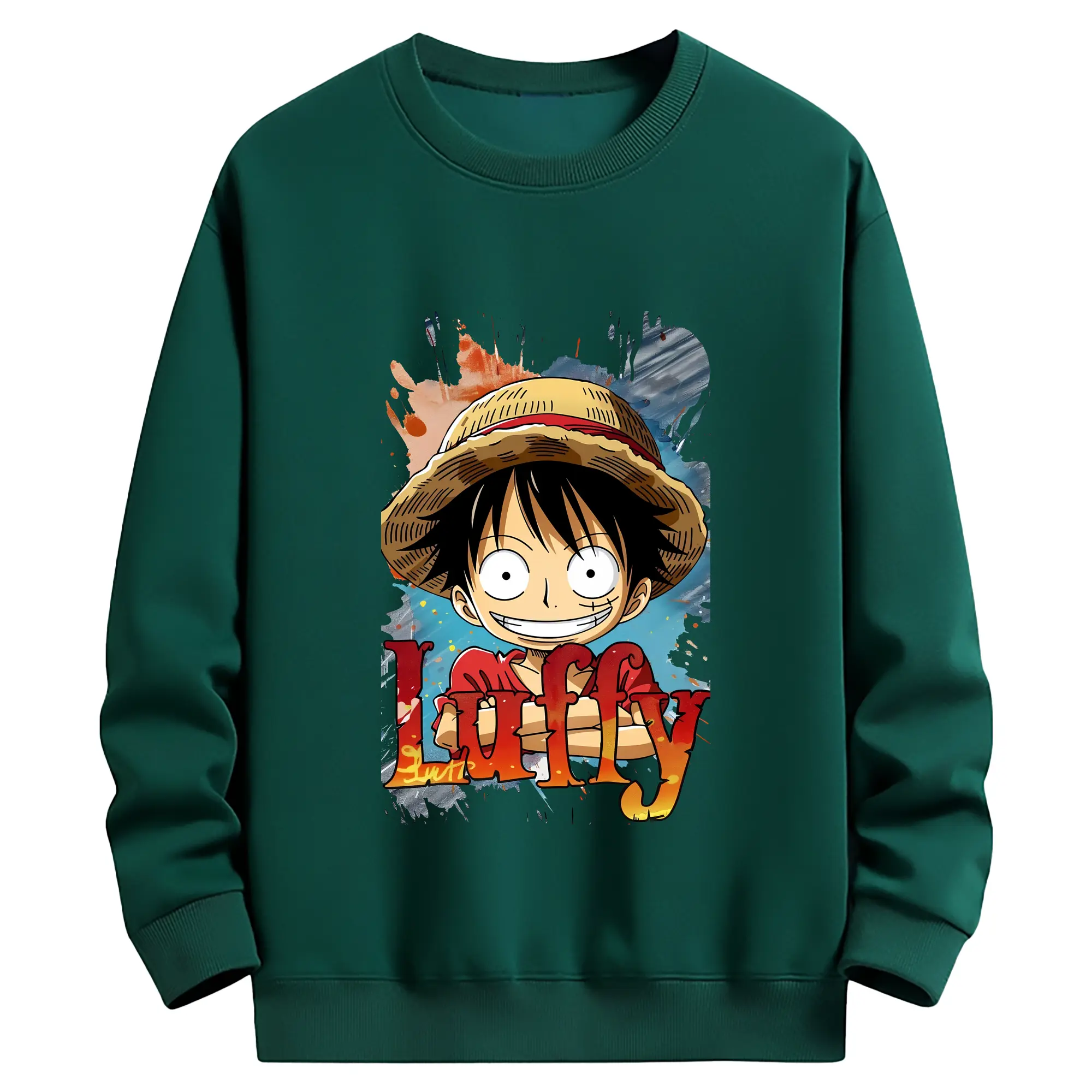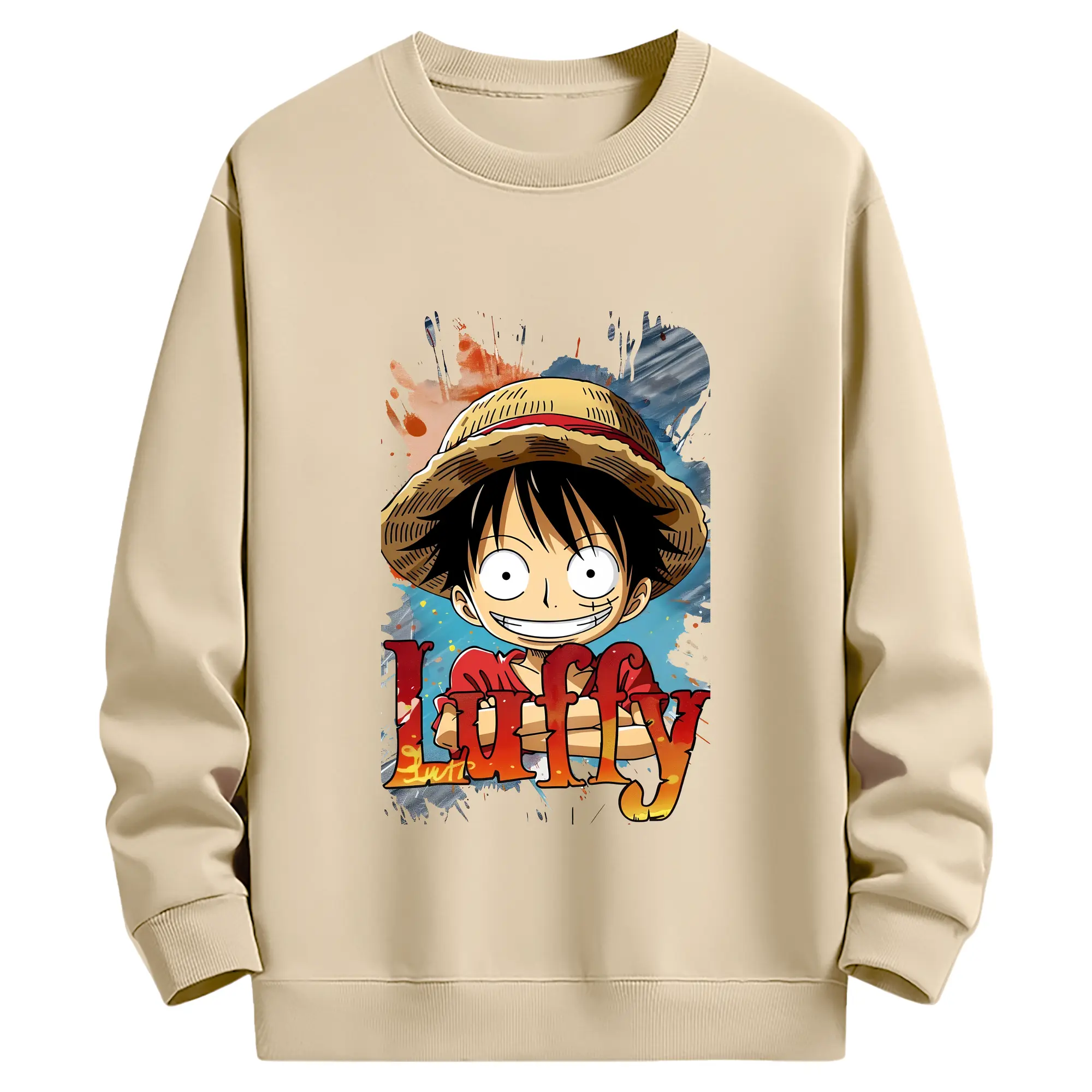 ワンピース グッズ モンキー・D・ルフィ - 薄手 クルーネック スウェット 裏毛260g · ポリエステル 春秋向け カジュアル 男女兼用 · トレーナー デイリー スポーツ 散歩に最適