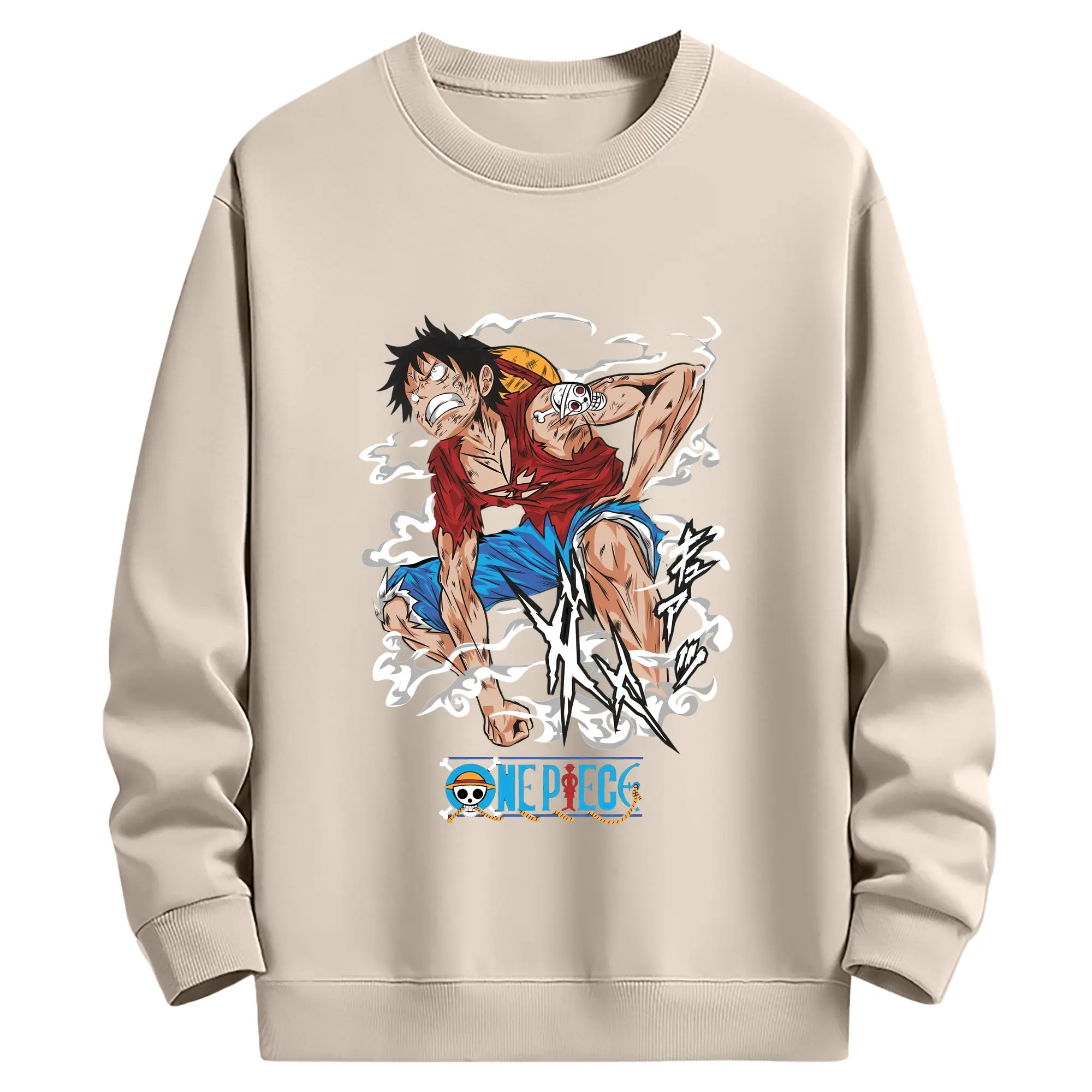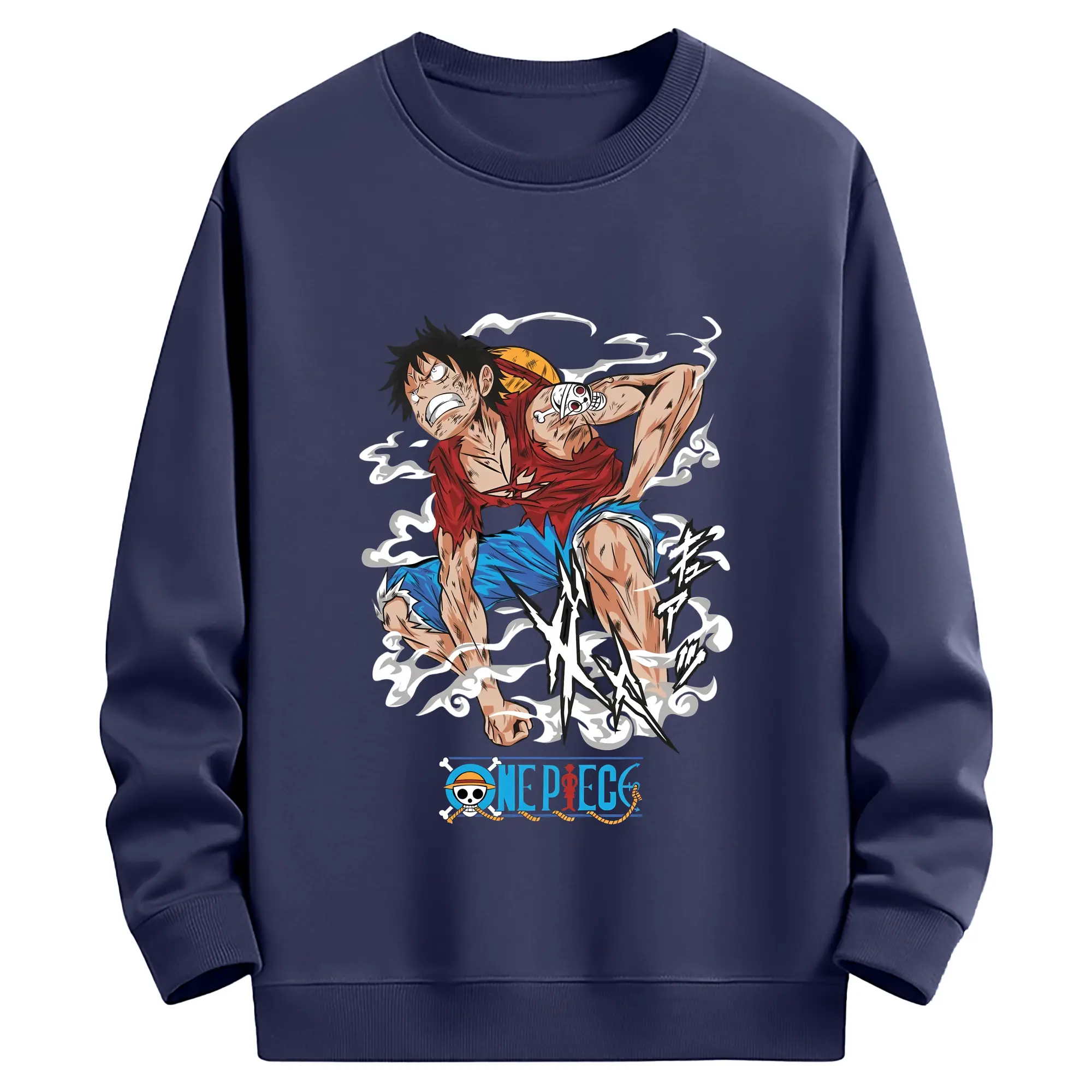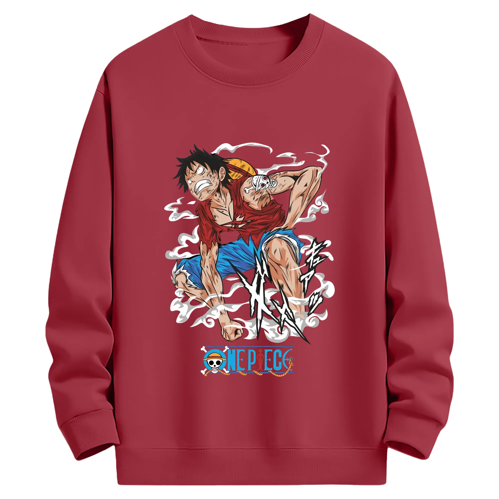 ワンピース グッズ モンキー・D・ルフィ - 薄手 クルーネック スウェット 裏毛260g · ポリエステル 春秋向け カジュアル 男女兼用 · トレーナー デイリー スポーツ 散歩に最適
