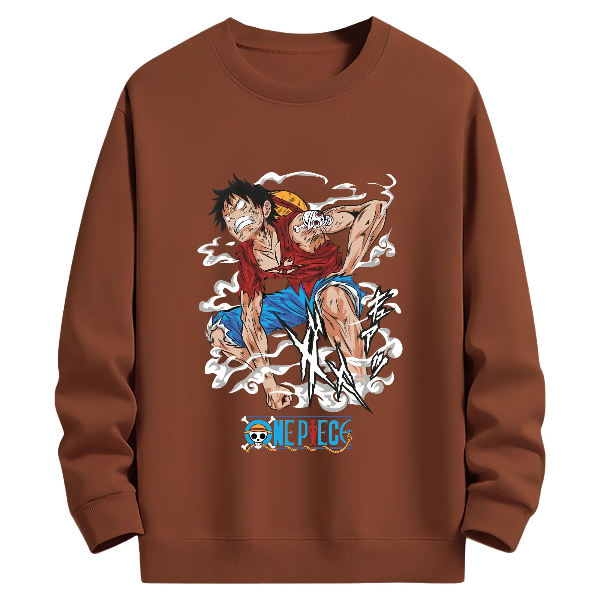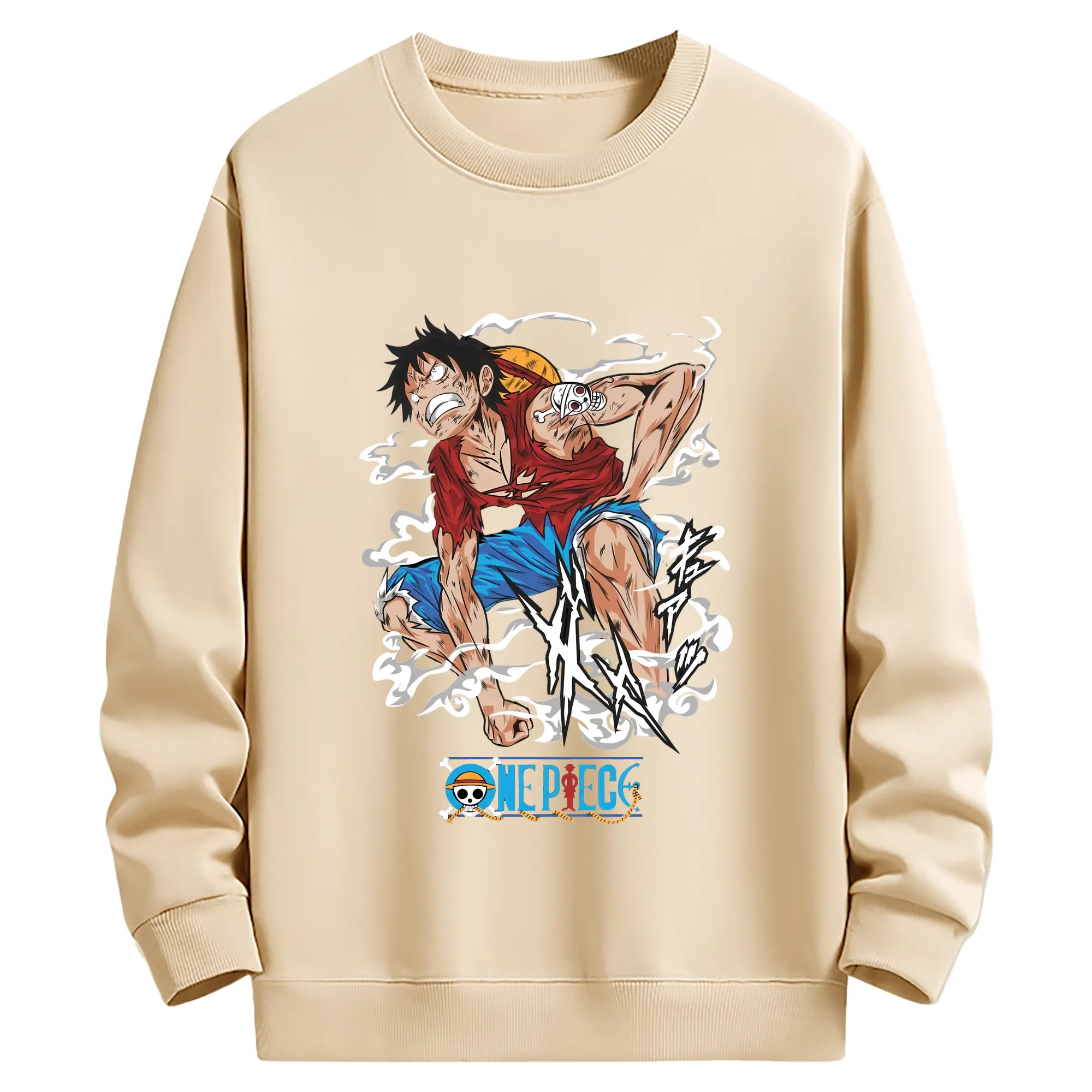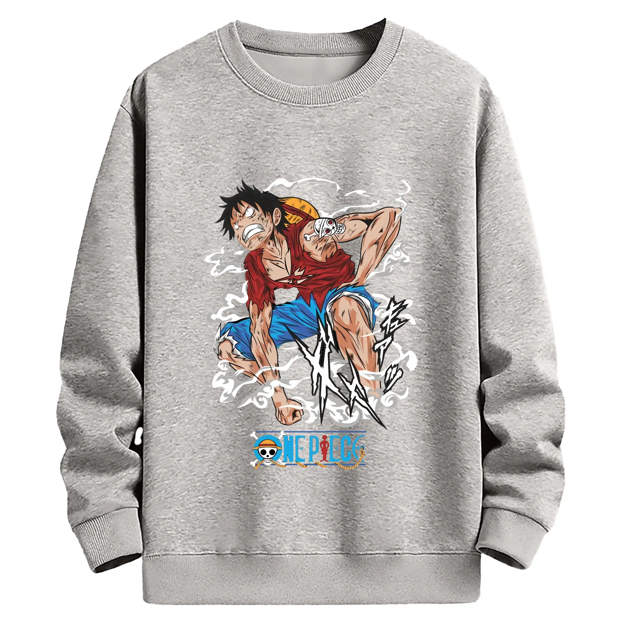 ワンピース グッズ モンキー・D・ルフィ - 薄手 クルーネック スウェット 裏毛260g · ポリエステル 春秋向け カジュアル 男女兼用 · トレーナー デイリー スポーツ 散歩に最適