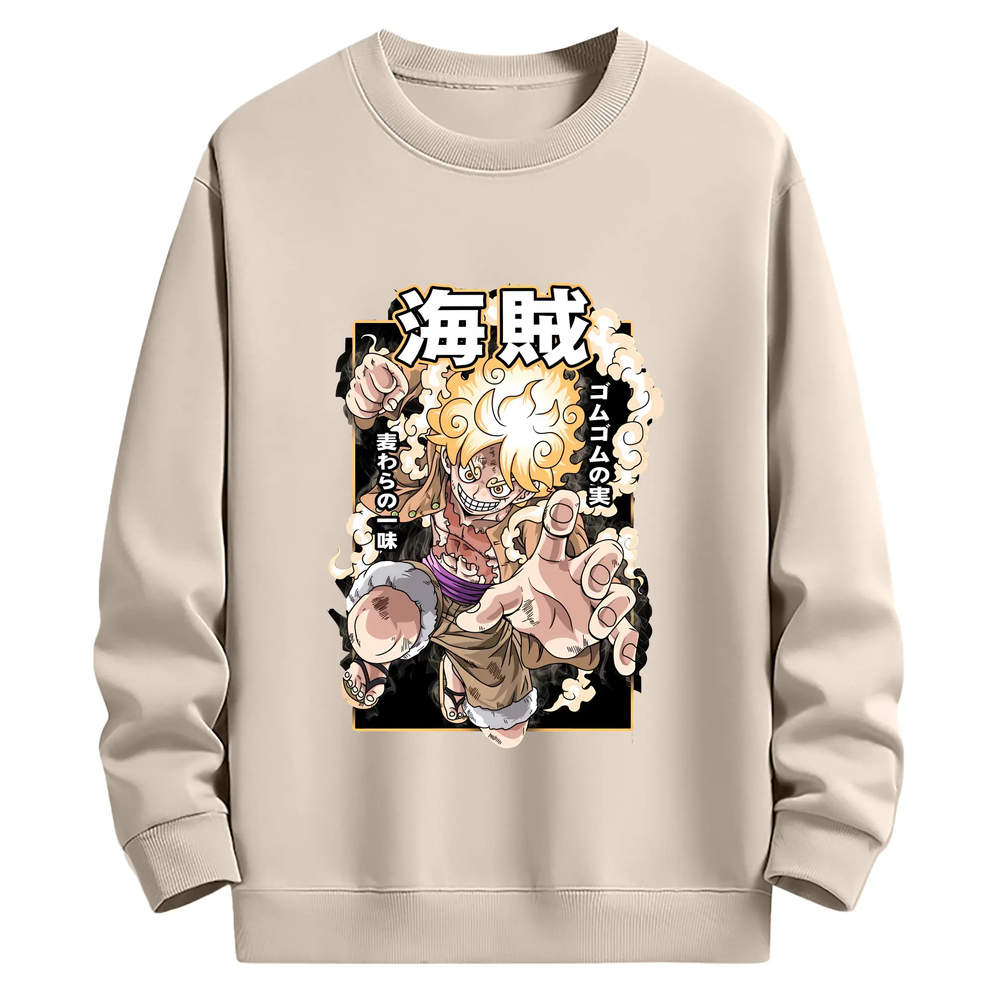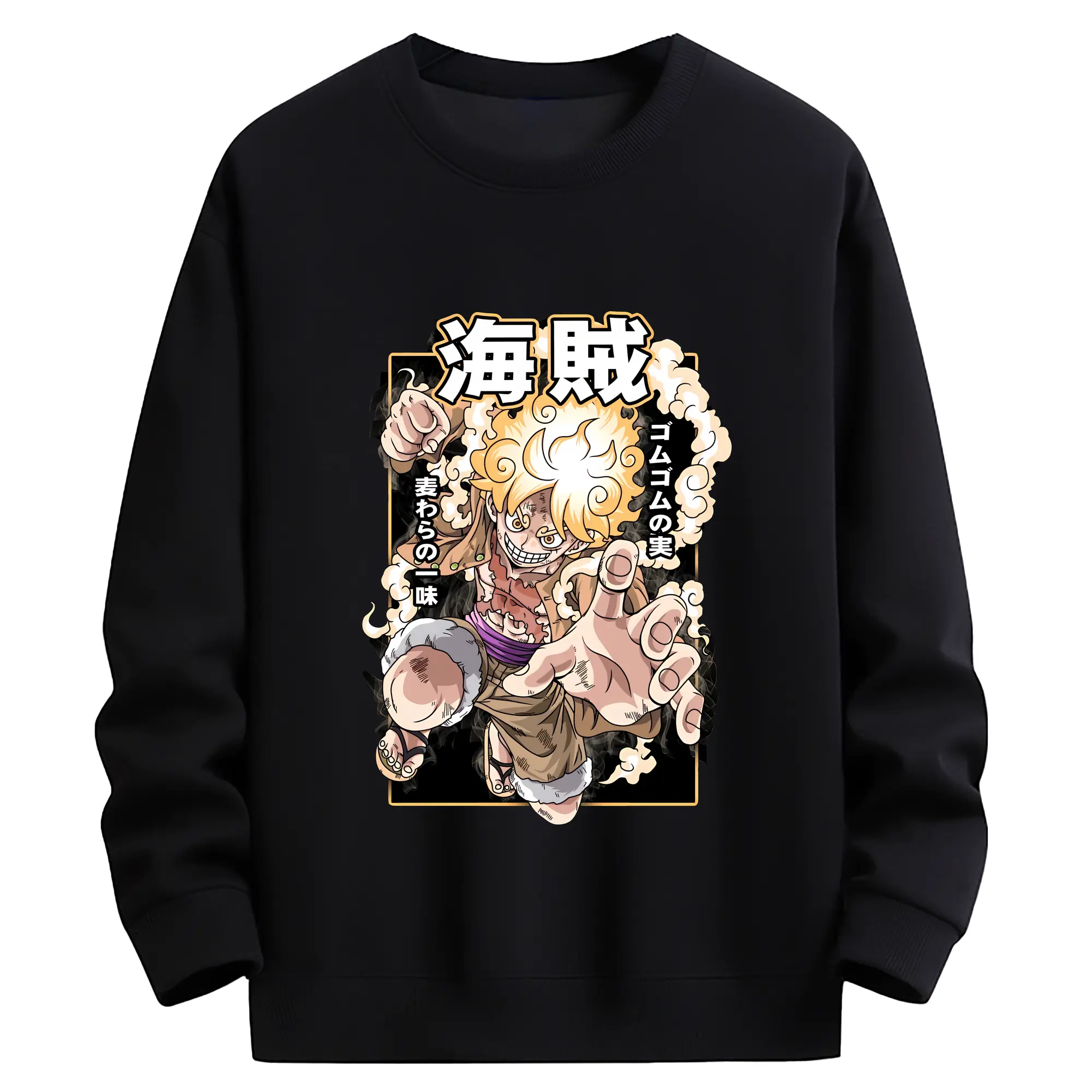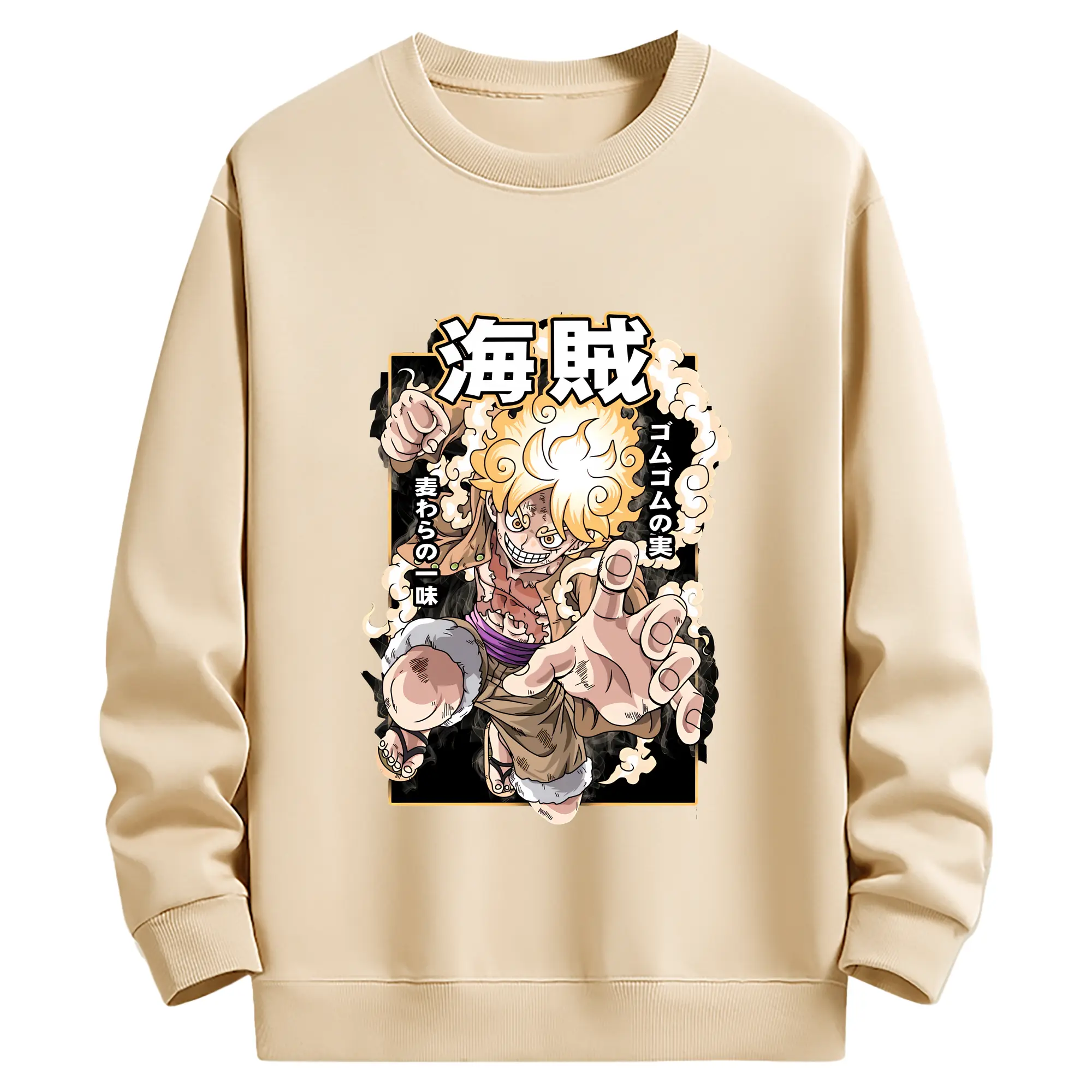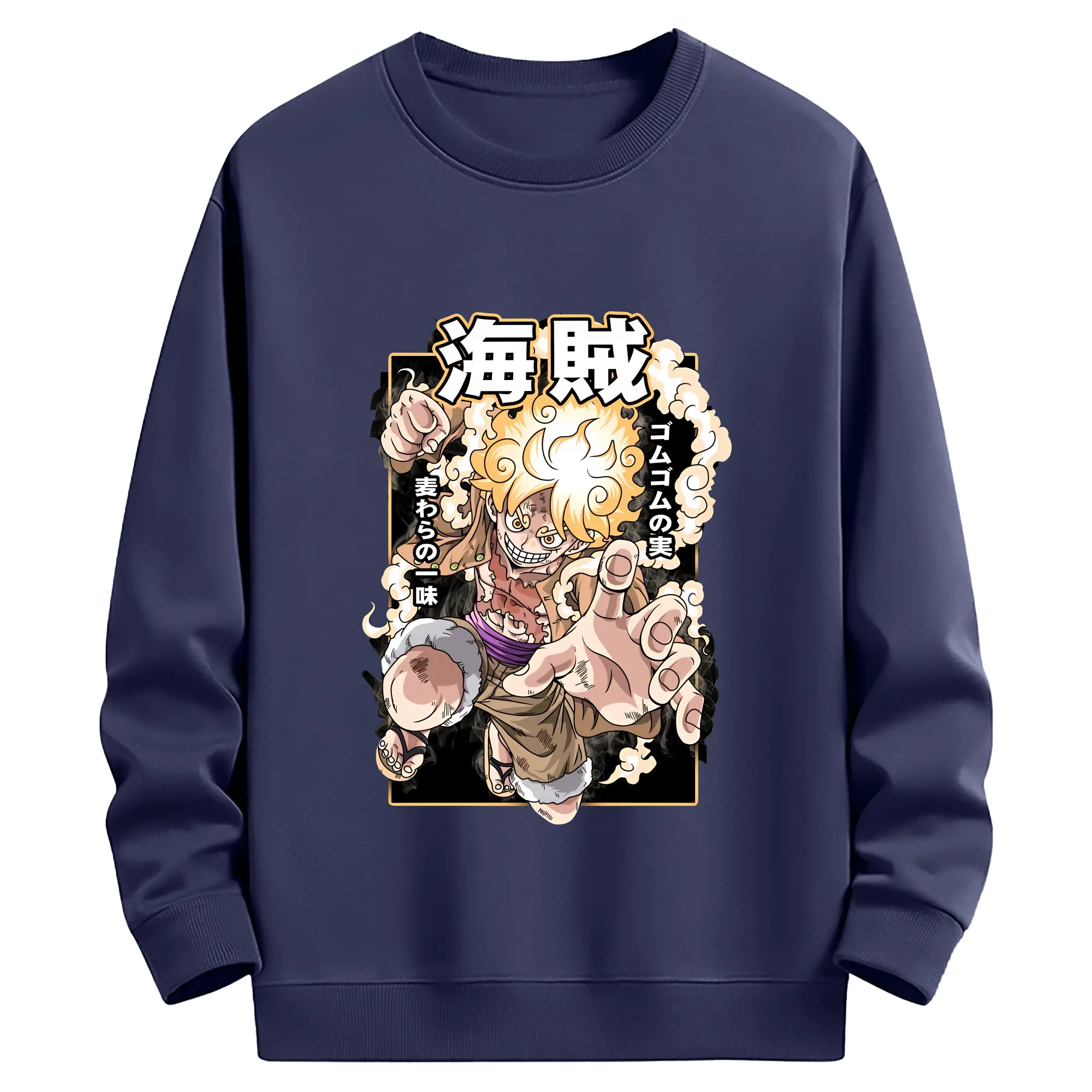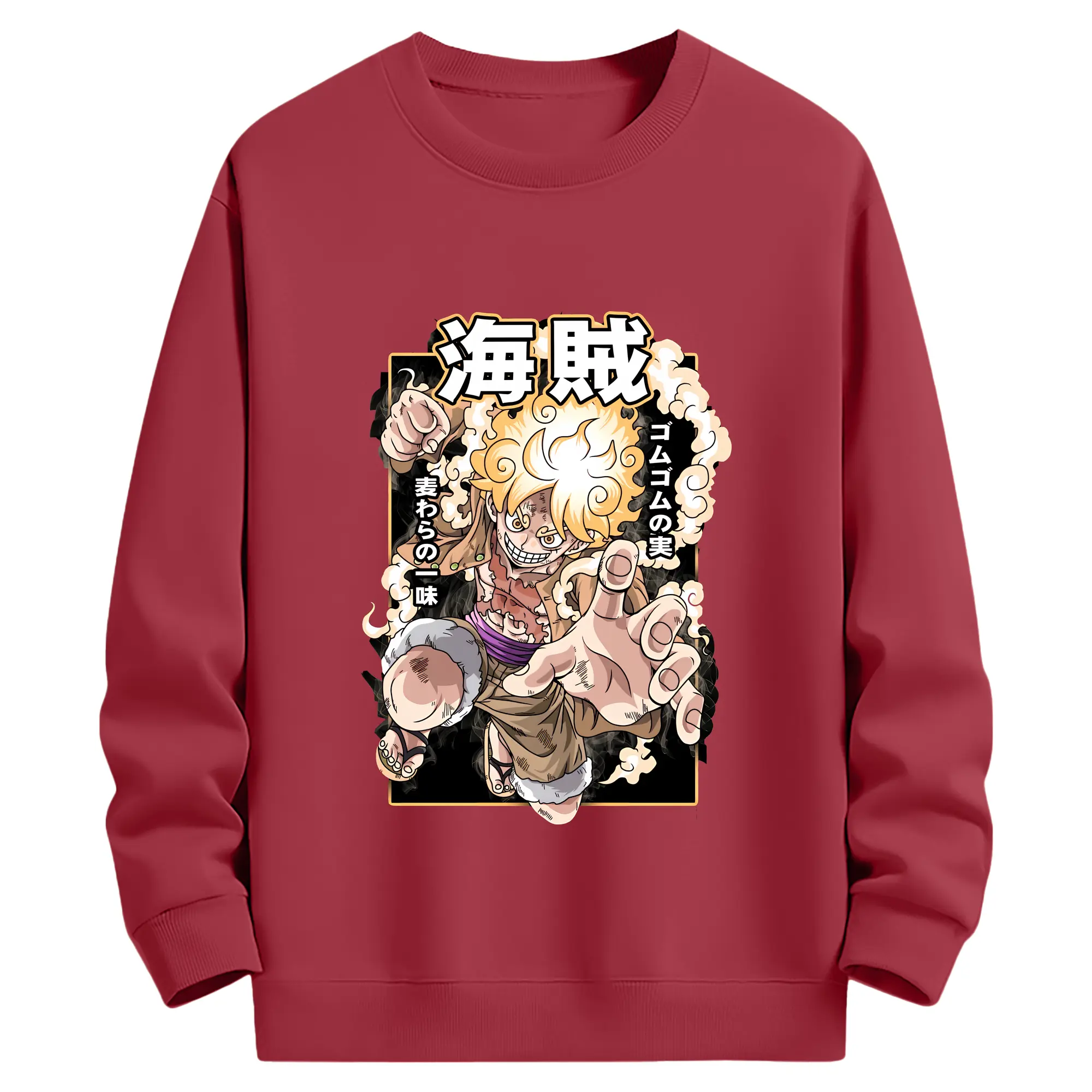 ワンピース グッズ モンキー・D・ルフィ - 薄手 クルーネック スウェット 裏毛260g · ポリエステル 春秋向け カジュアル 男女兼用 · トレーナー デイリー スポーツ 散歩に最適