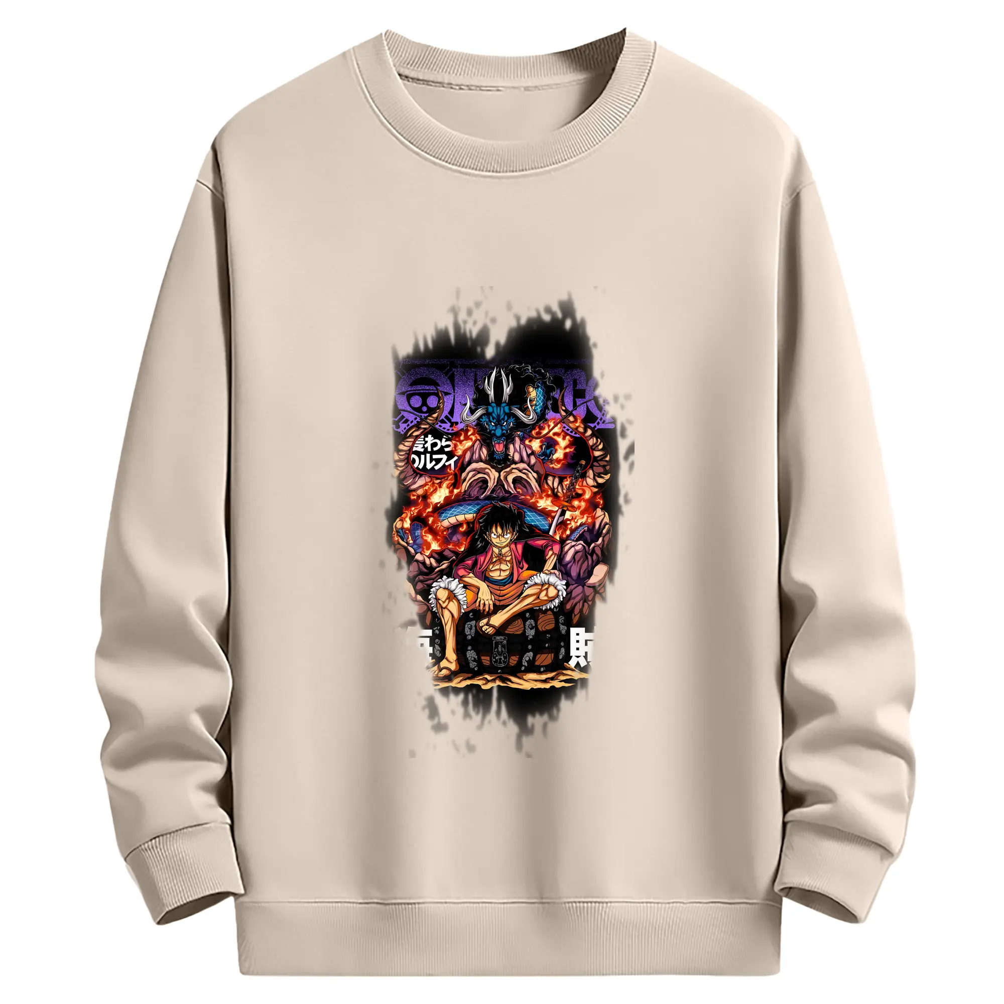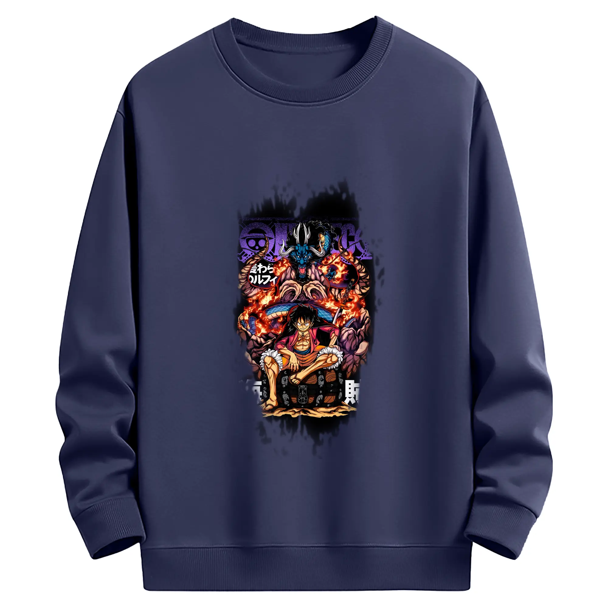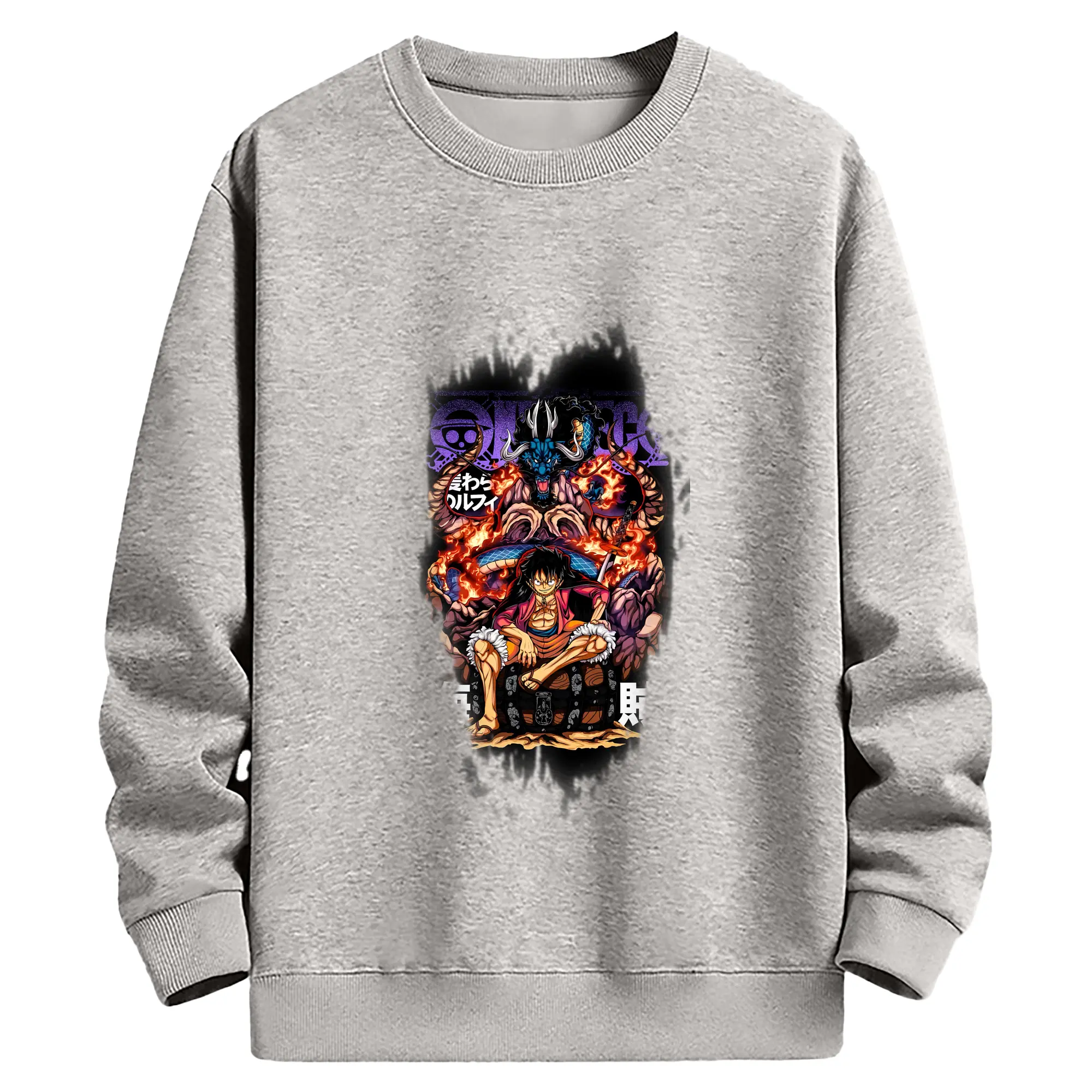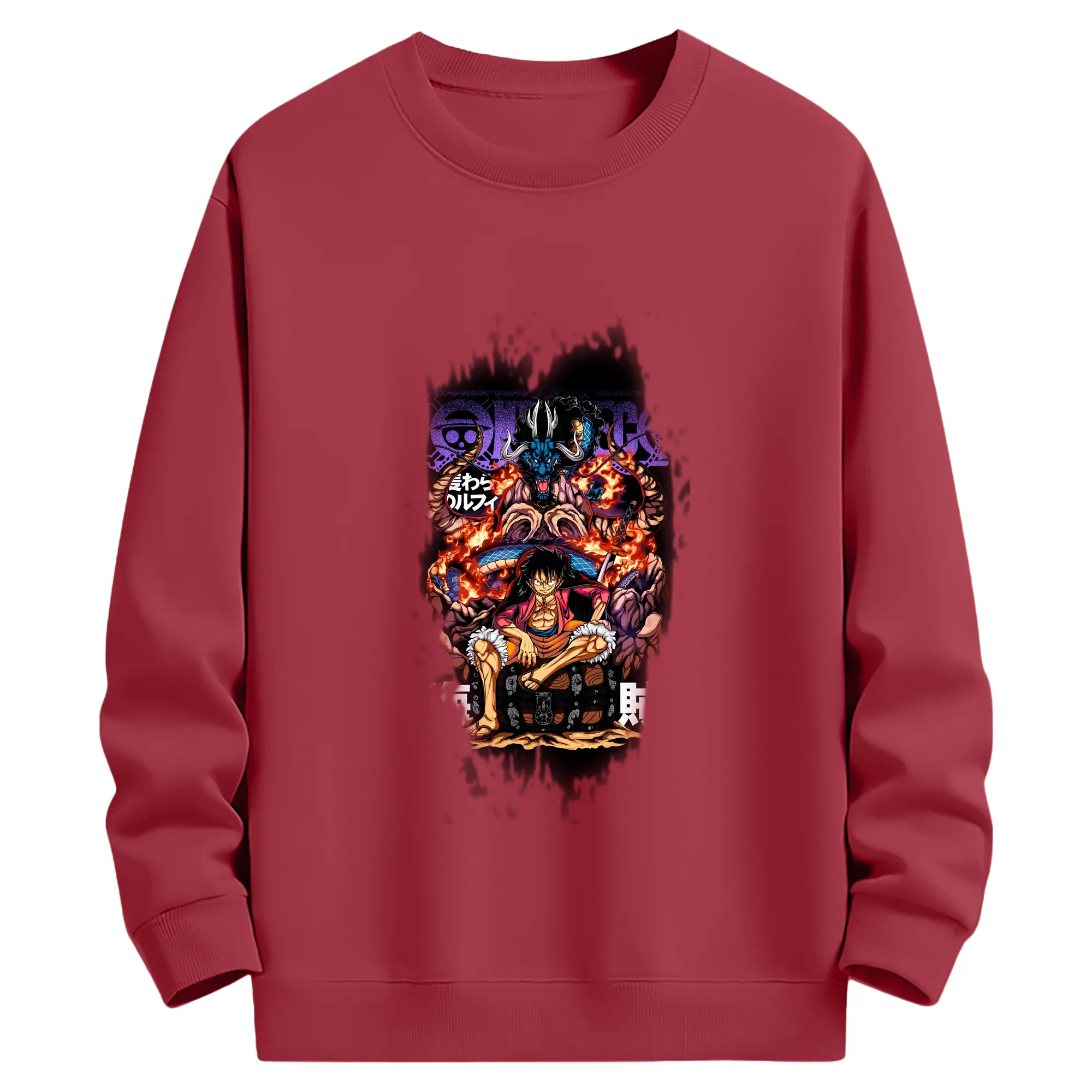 ワンピース グッズ モンキー・D・ルフィ - 薄手 クルーネック スウェット 裏毛260g · ポリエステル 春秋向け カジュアル 男女兼用 · トレーナー デイリー スポーツ 散歩に最適