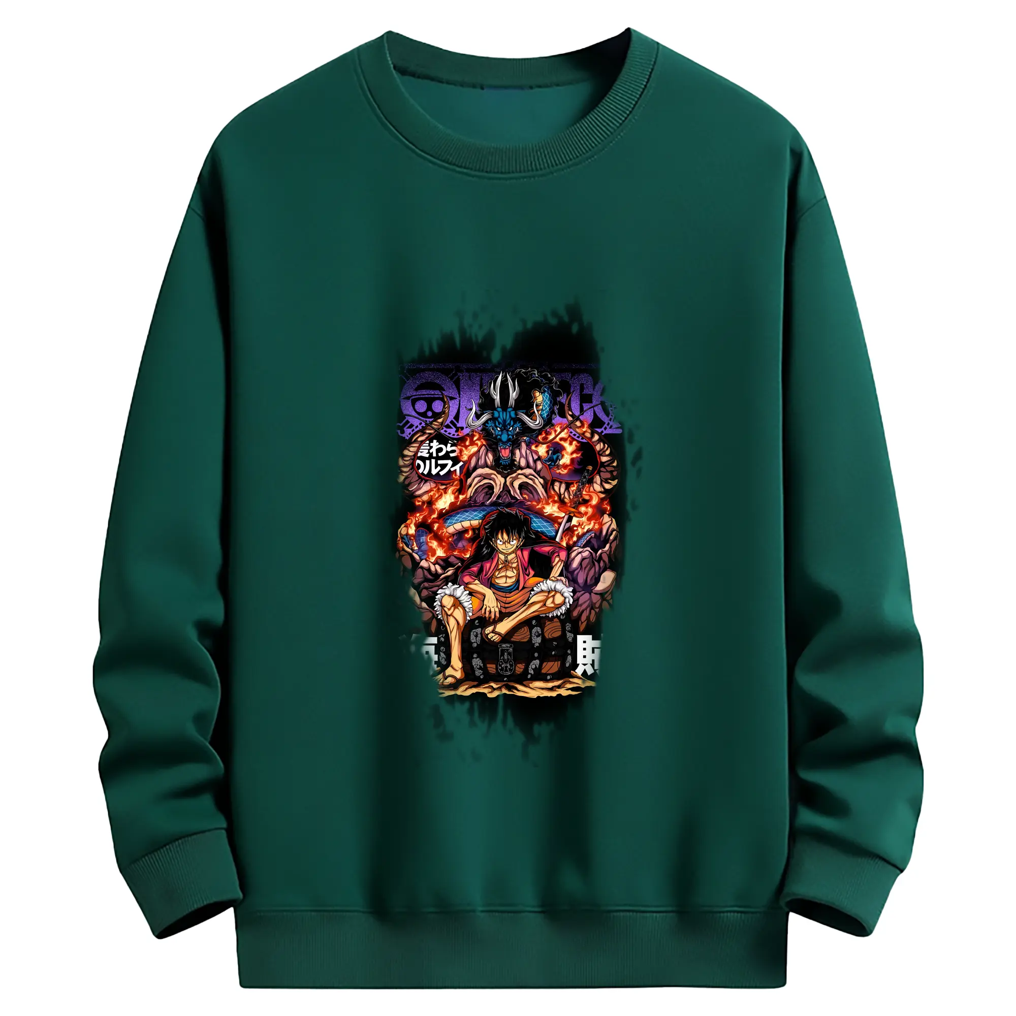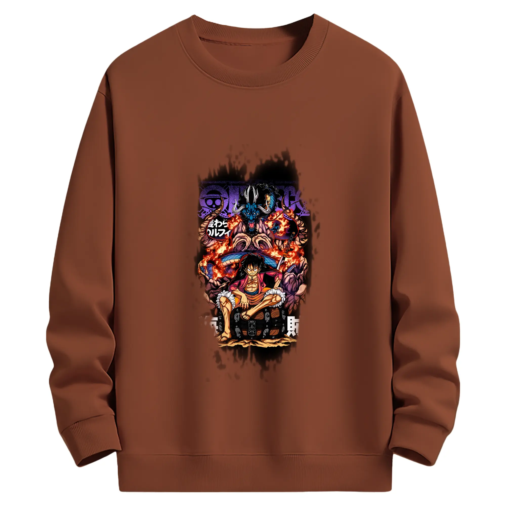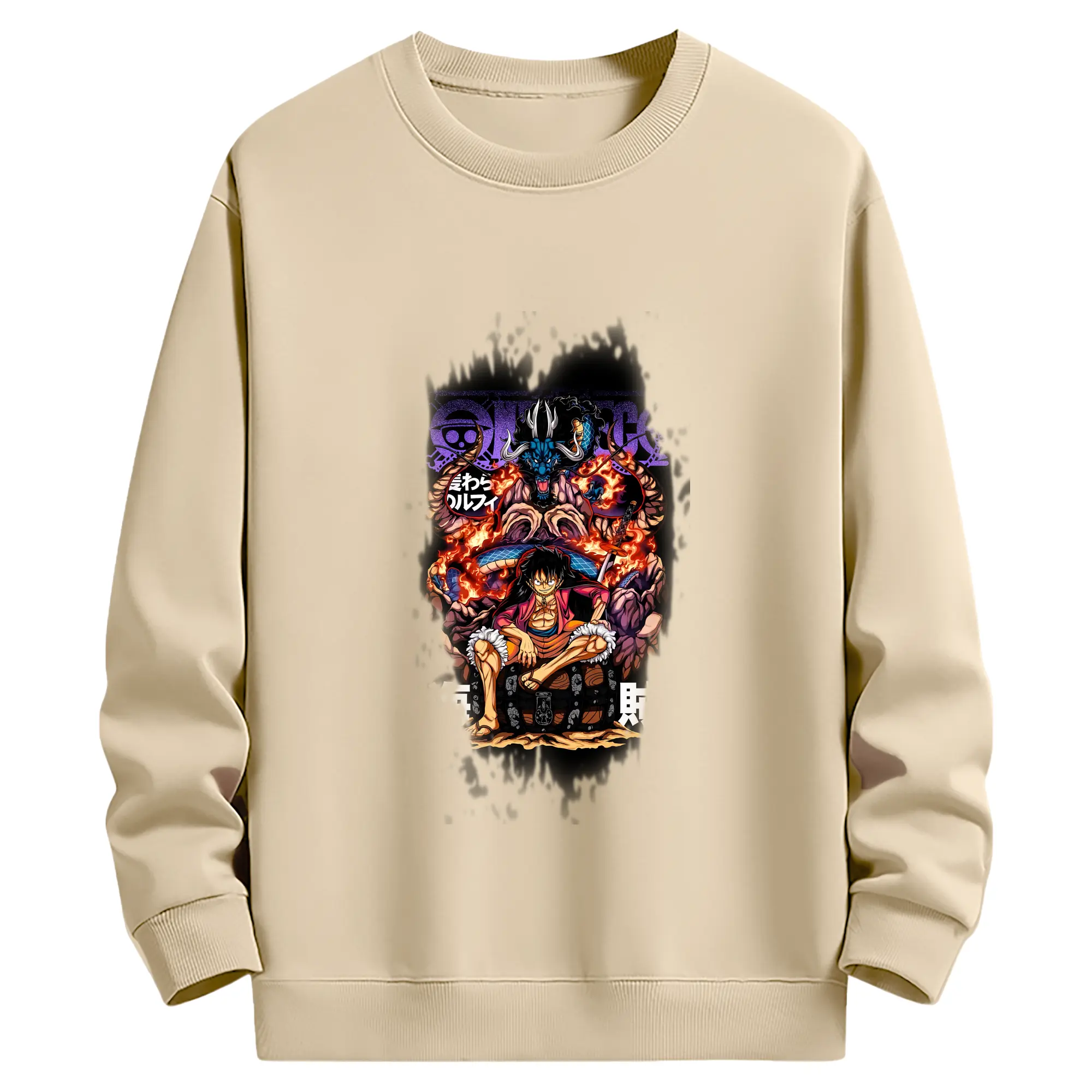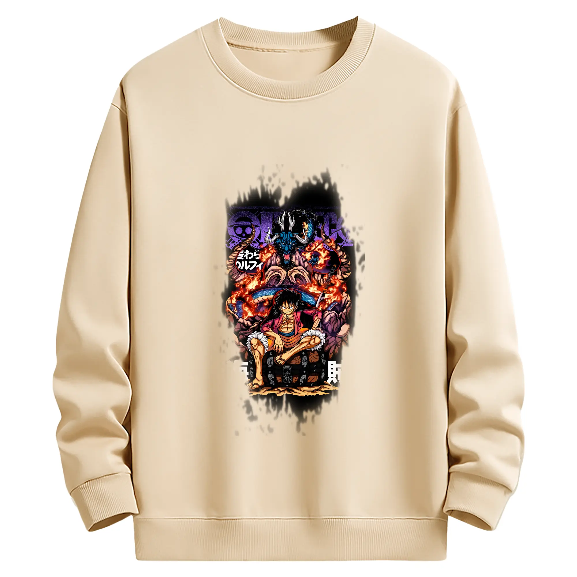 ワンピース グッズ モンキー・D・ルフィ - 薄手 クルーネック スウェット 裏毛260g · ポリエステル 春秋向け カジュアル 男女兼用 · トレーナー デイリー スポーツ 散歩に最適